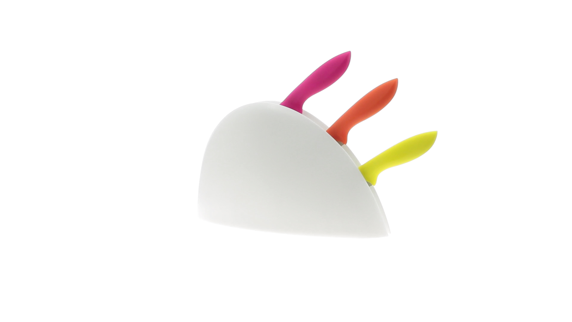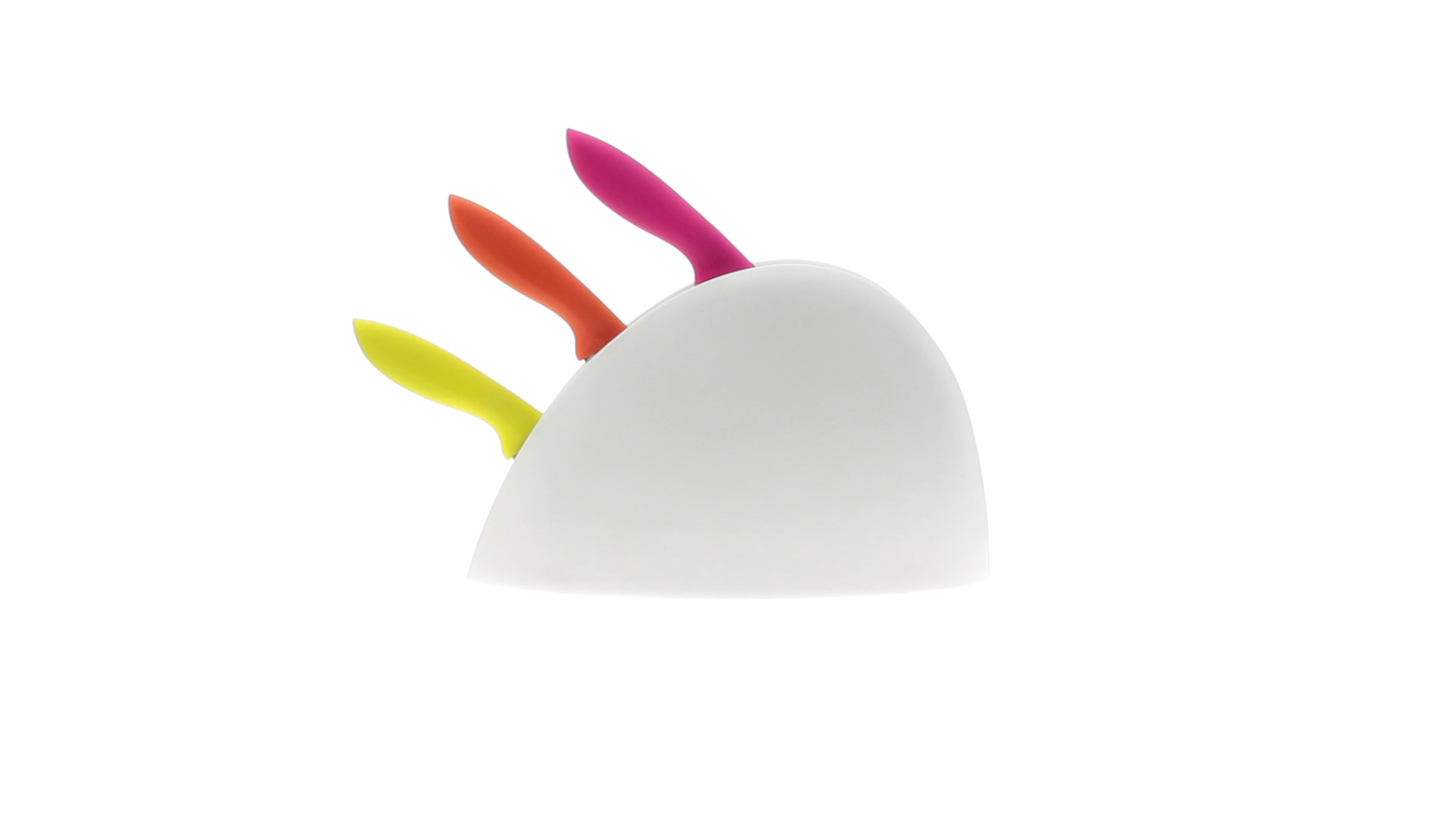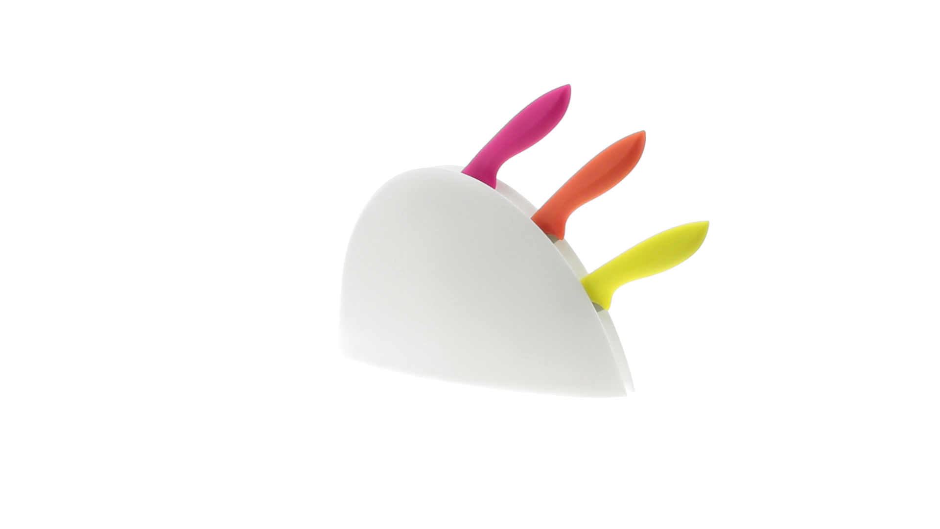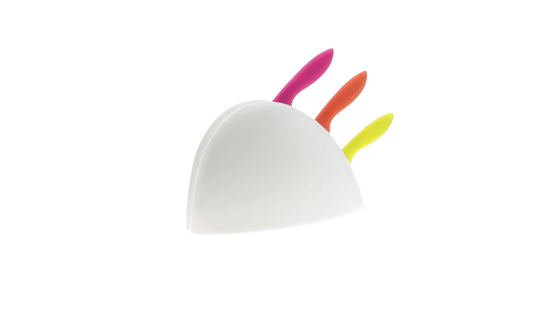 Messerset mit Messern von verschiedener Grösse und unterschiedlichen Klingen aus Edelstahl. Mit weichem, ergonomischem Griff in lebendigen Farben und robustem Messerblock. Präsentiert in einer individuellen Box.