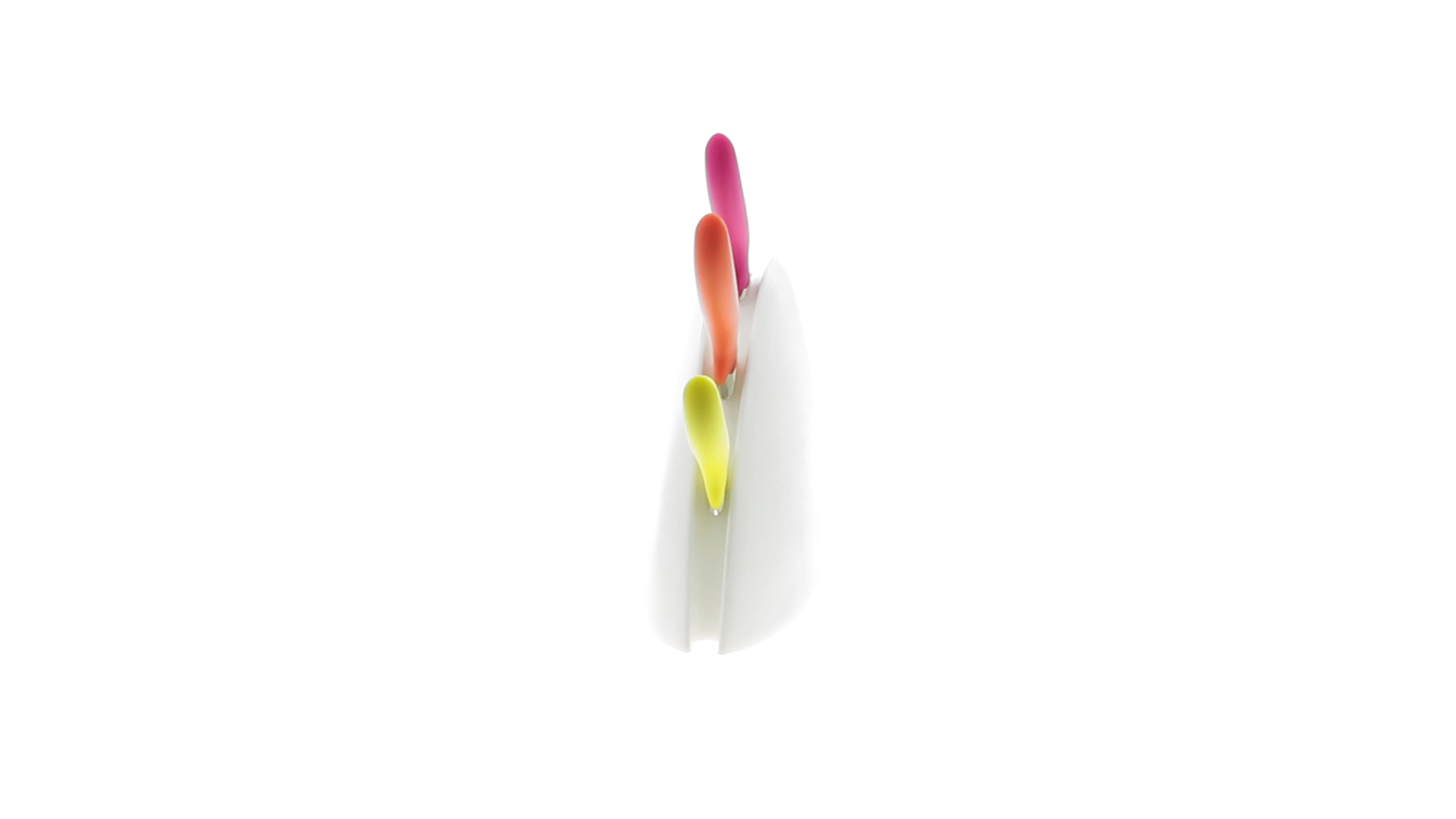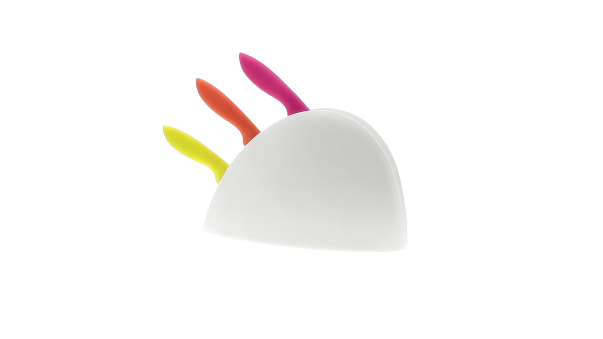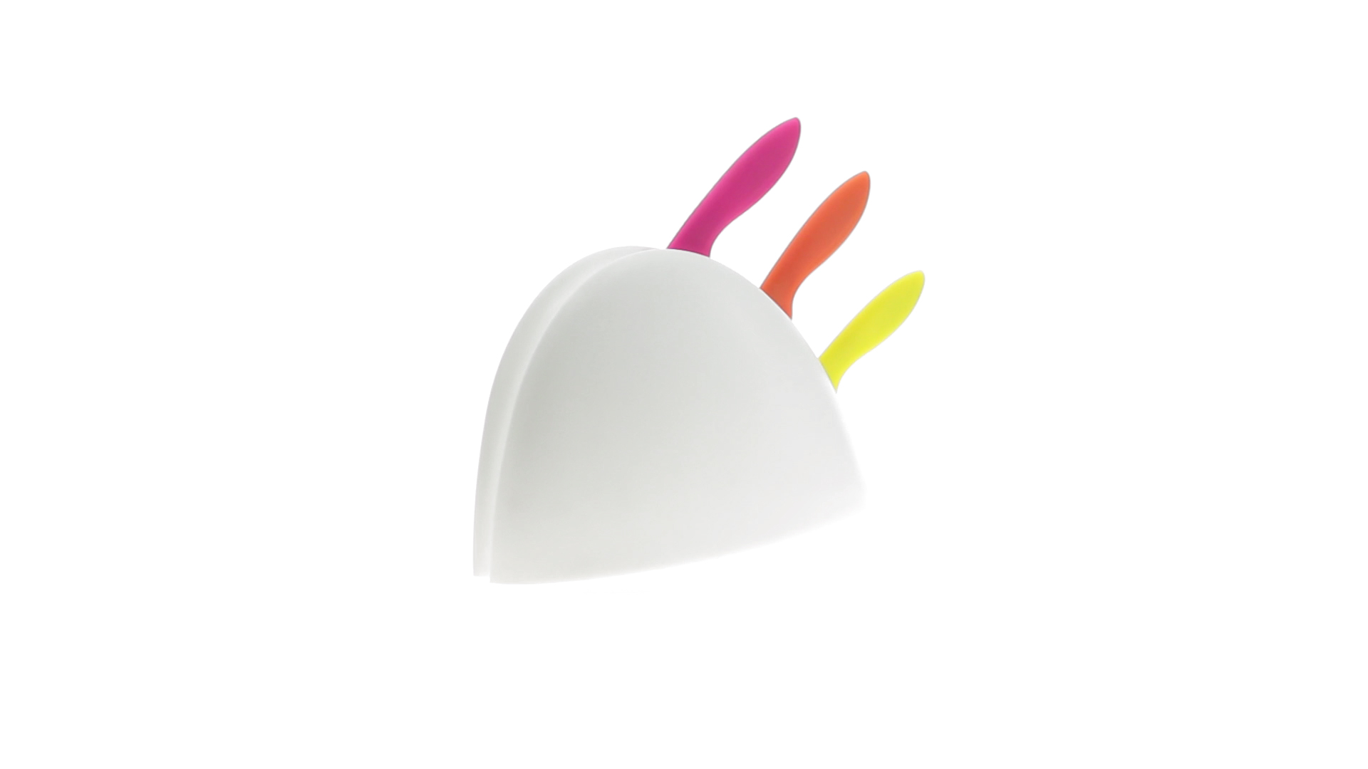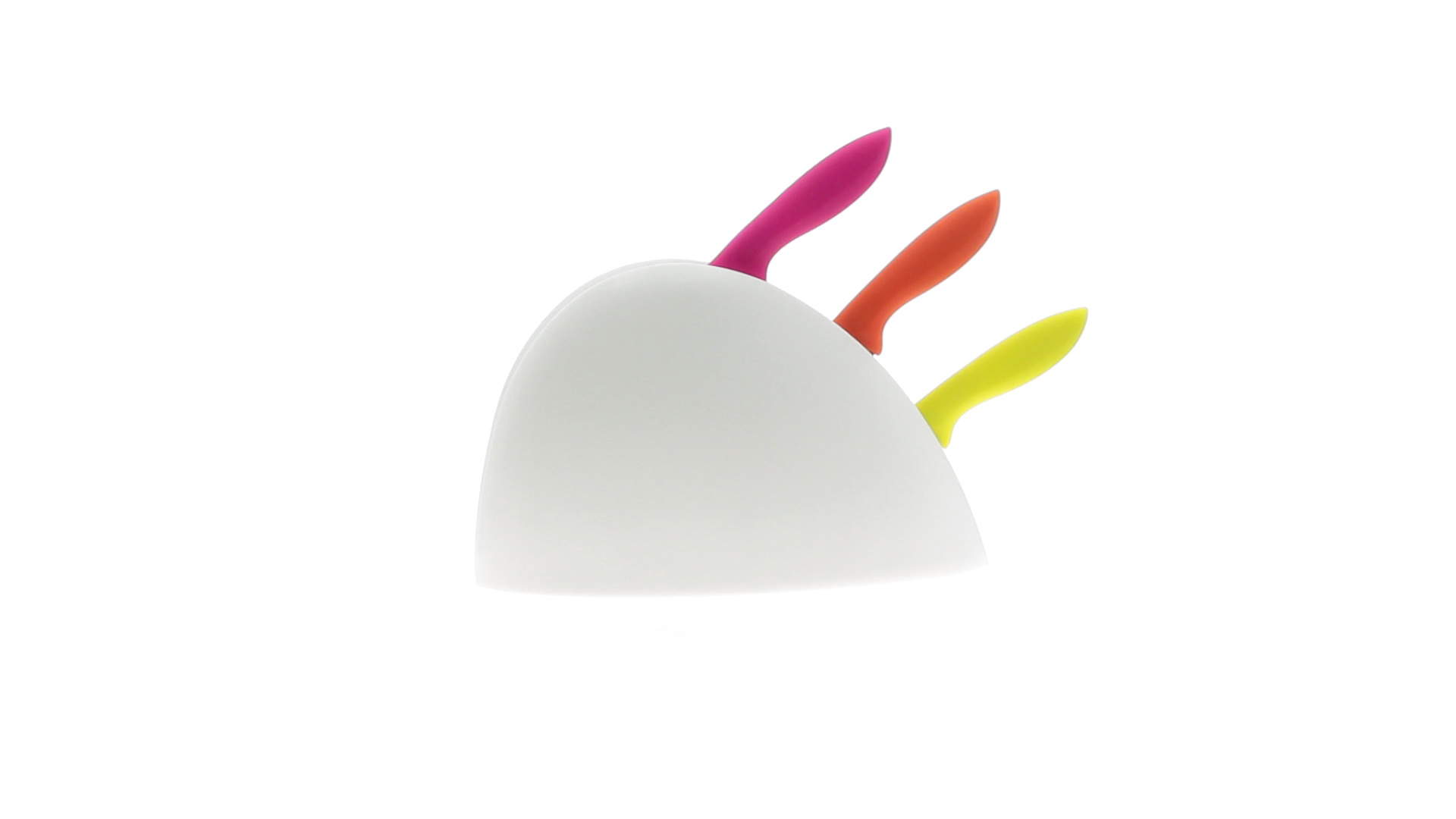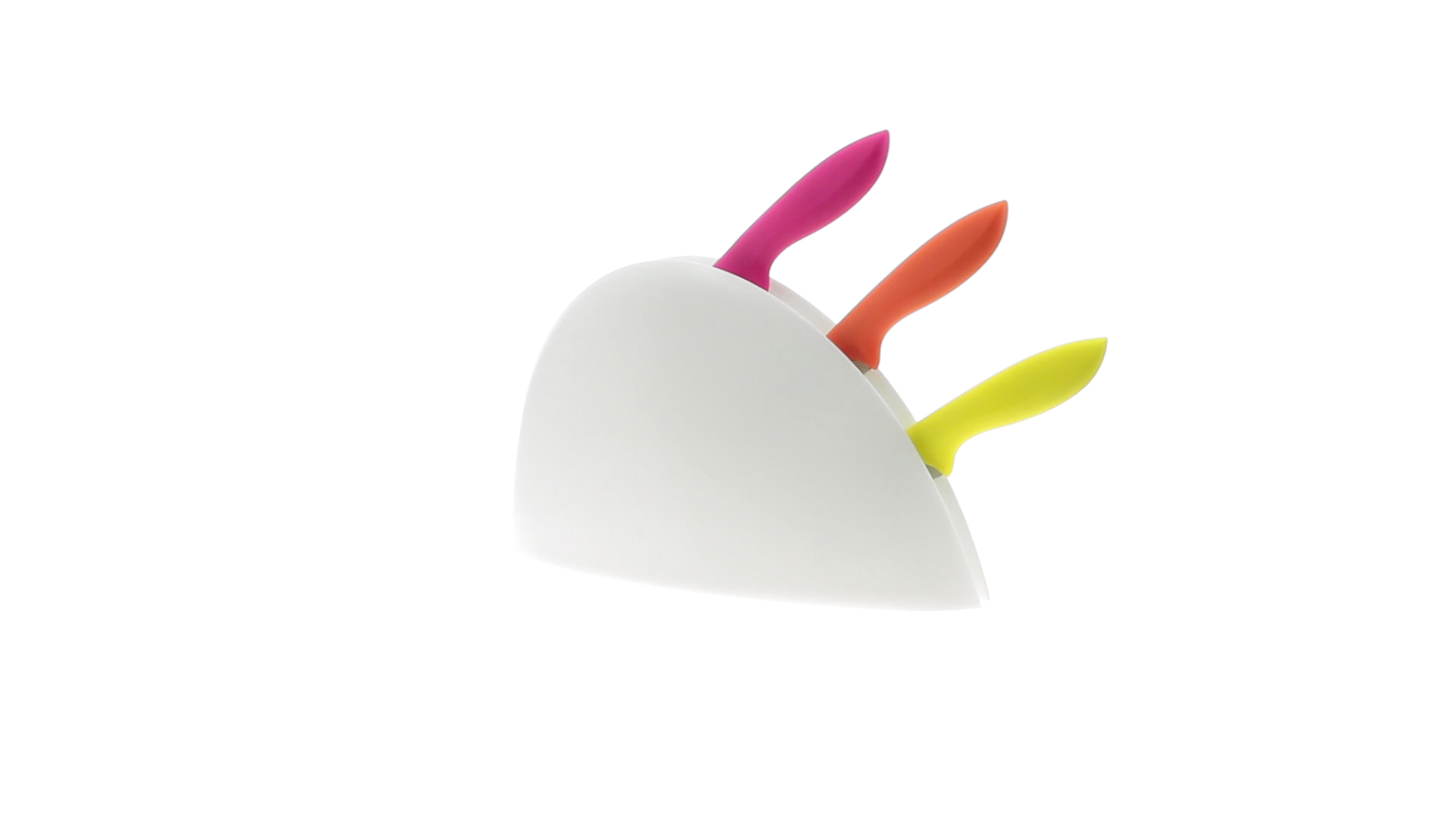 Messerset mit Messern von verschiedener Grösse und unterschiedlichen Klingen aus Edelstahl. Mit weichem, ergonomischem Griff in lebendigen Farben und robustem Messerblock. Präsentiert in einer individuellen Box.
