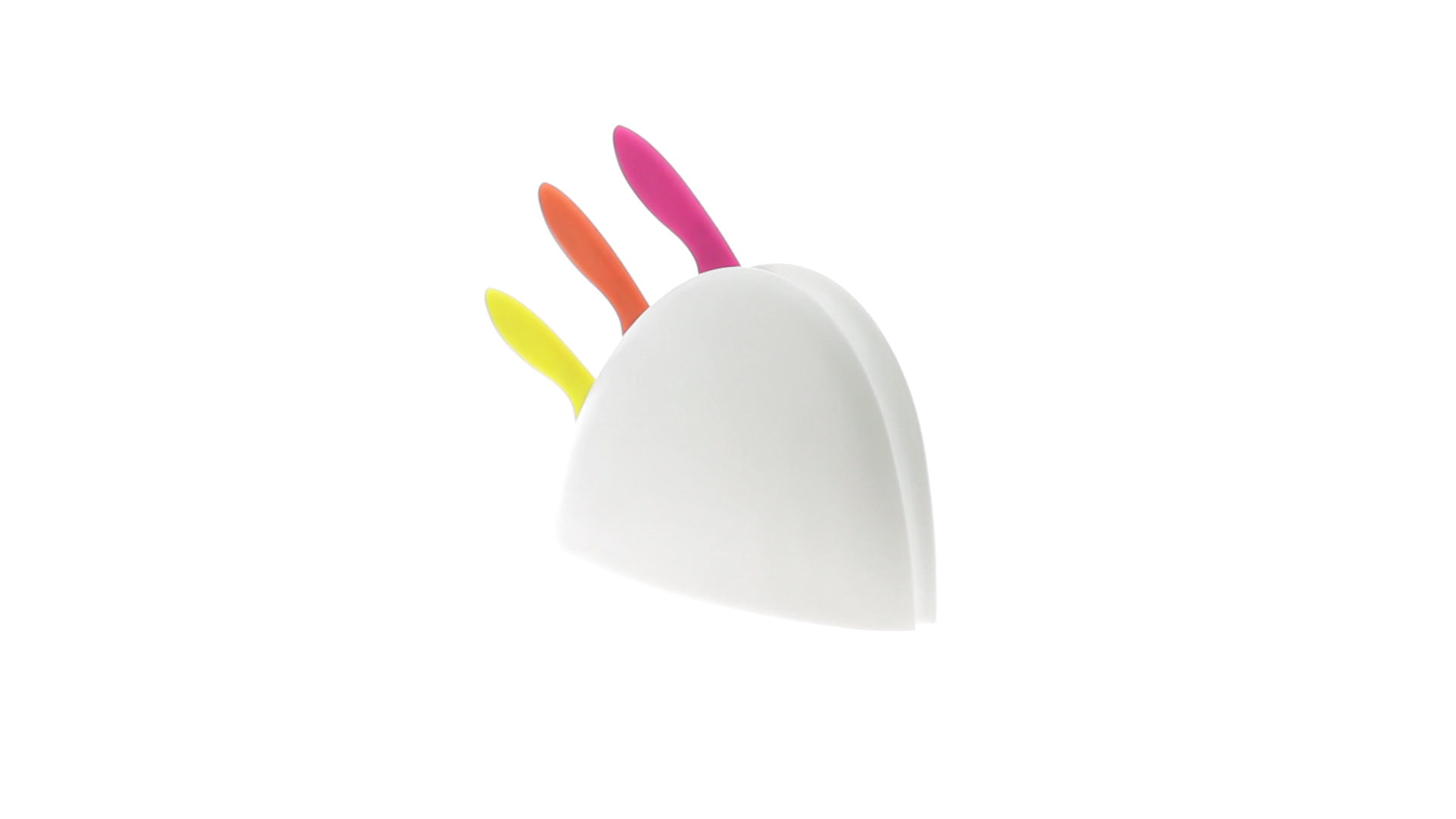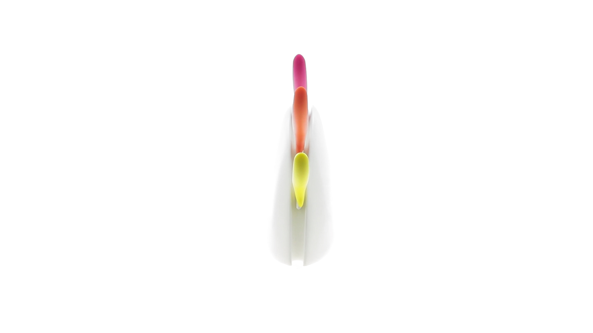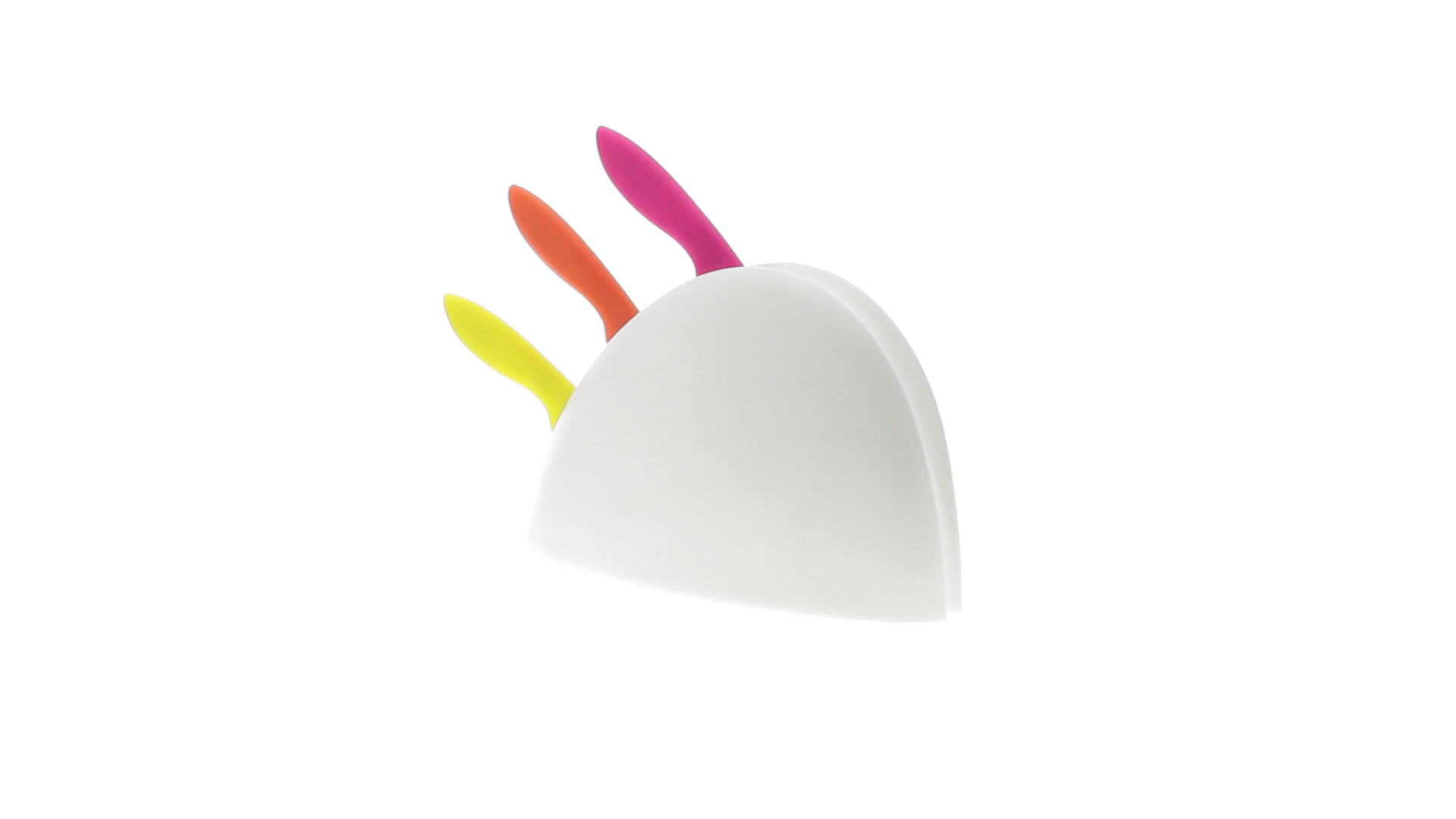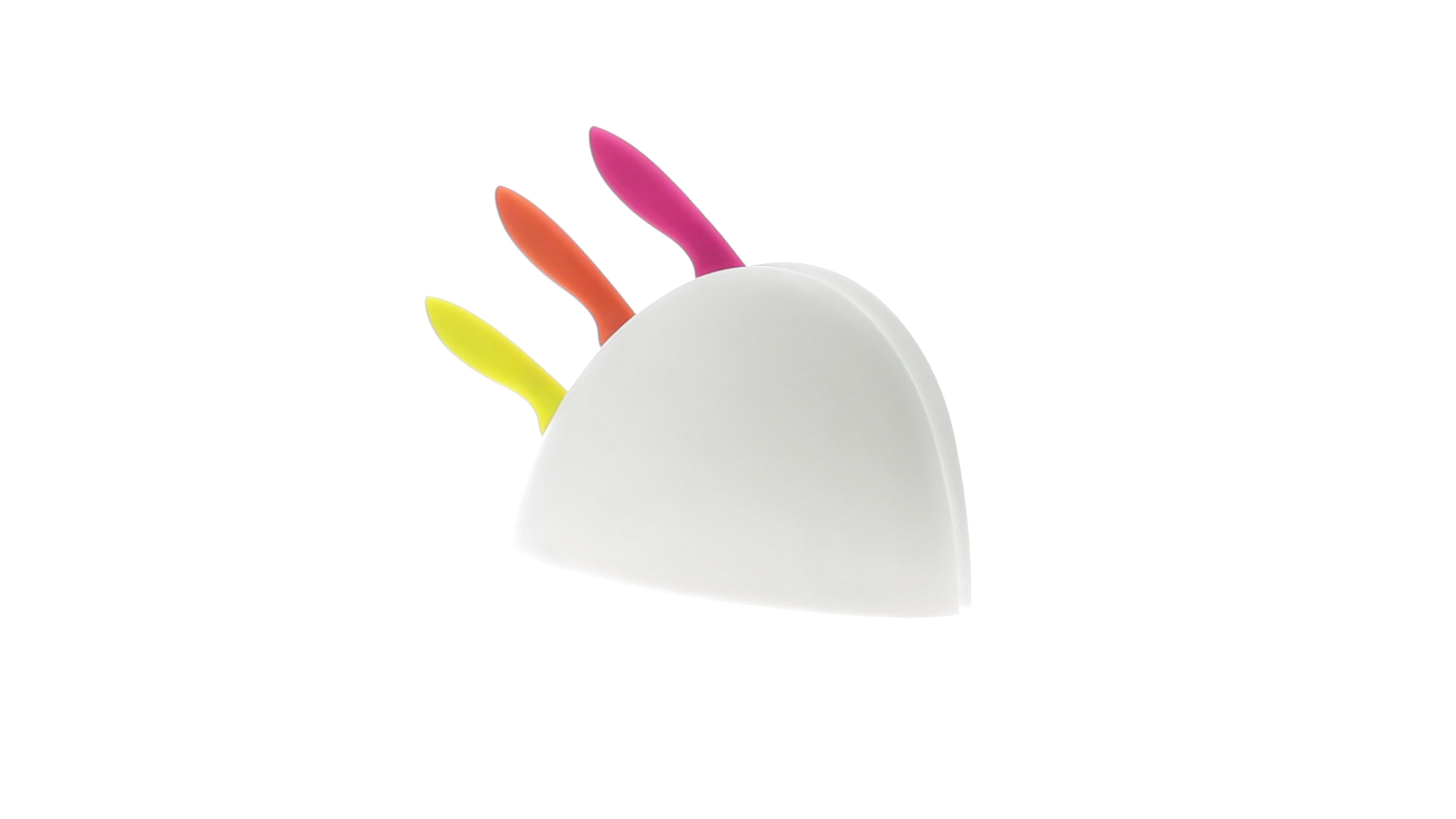 Messerset mit Messern von verschiedener Grösse und unterschiedlichen Klingen aus Edelstahl. Mit weichem, ergonomischem Griff in lebendigen Farben und robustem Messerblock. Präsentiert in einer individuellen Box.