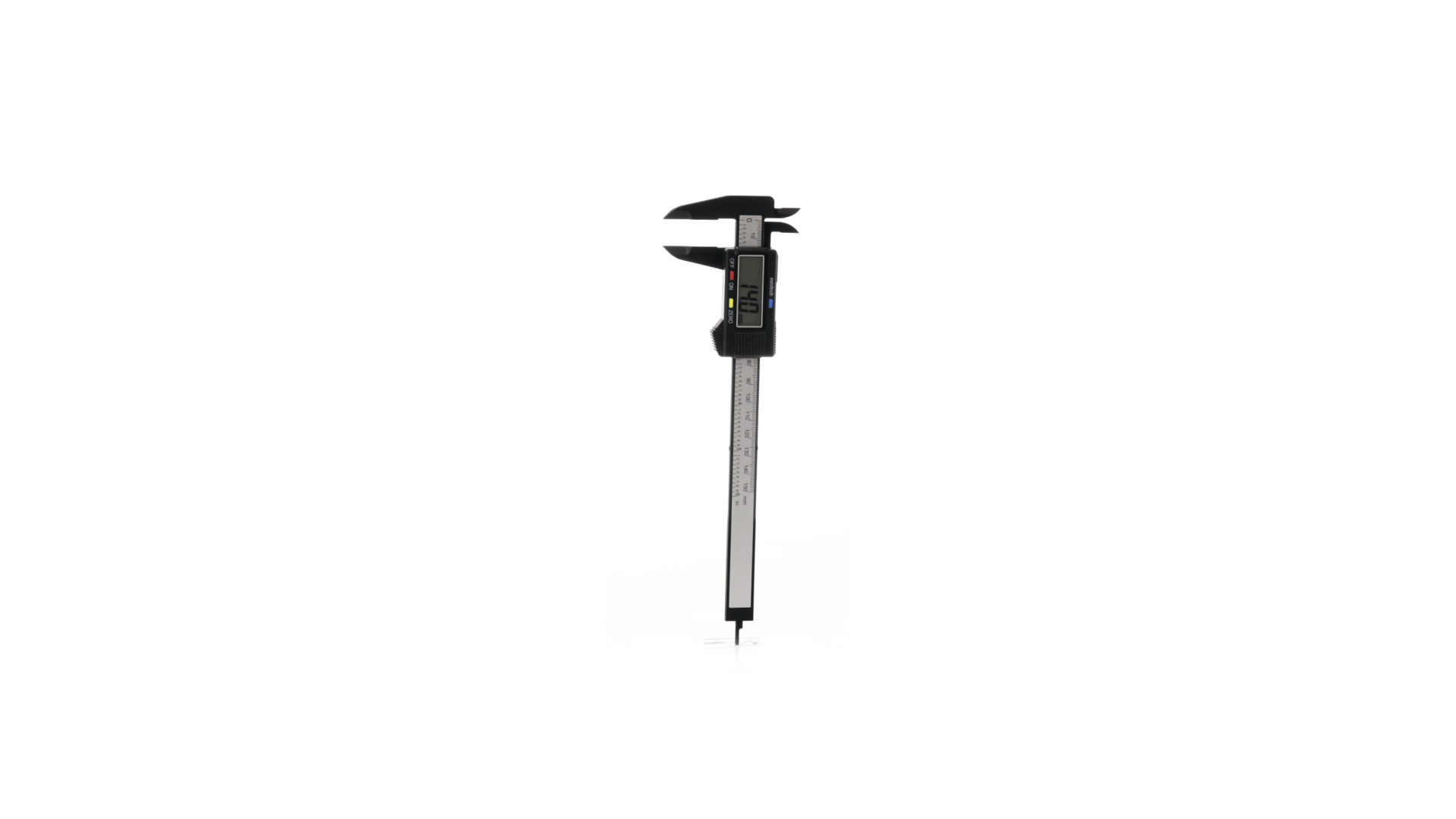 Messschieber mit digitalem und analogem Messmodus. Mit LCD-Display und ON/OFF-Tasten, ZERO für die Einstellung und eine andere, um die mm oder Zoll zu wählen. Inklusive Sonde zur Messung der Tiefe und Tasterzirkel für die Messung der Innenseite von Objekten. Messbereich bis zu 150 mm, mit Anleitung in Englisch und Spanisch und in einer individuellen Kraft-Design-Box präsentiert.