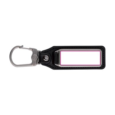 Rechteckiger Metallschlüsselanhänger mit Haken. Einseitiges Doming.