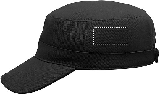 Military Cap aus 260g/m² gebürsteter Baumwolle mit Polyester-Schweissband und verstellbarem Klettverschluss.
