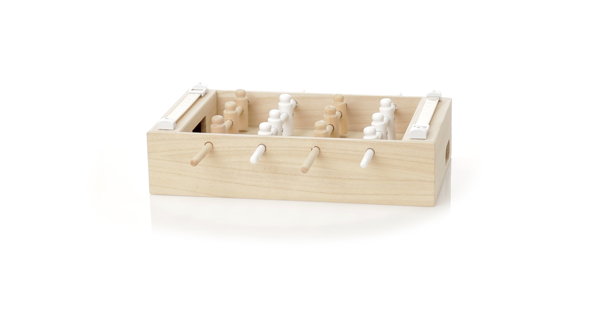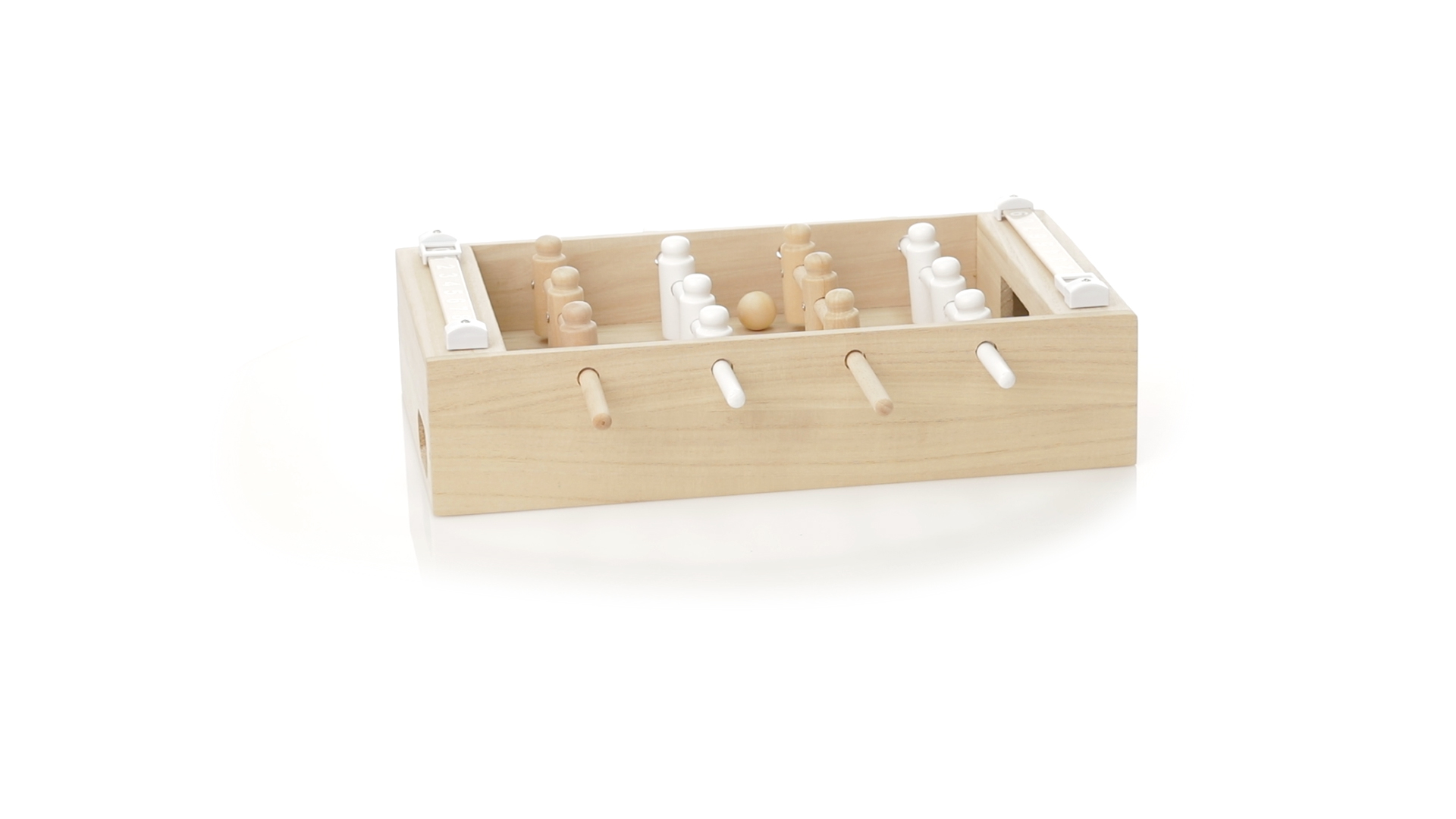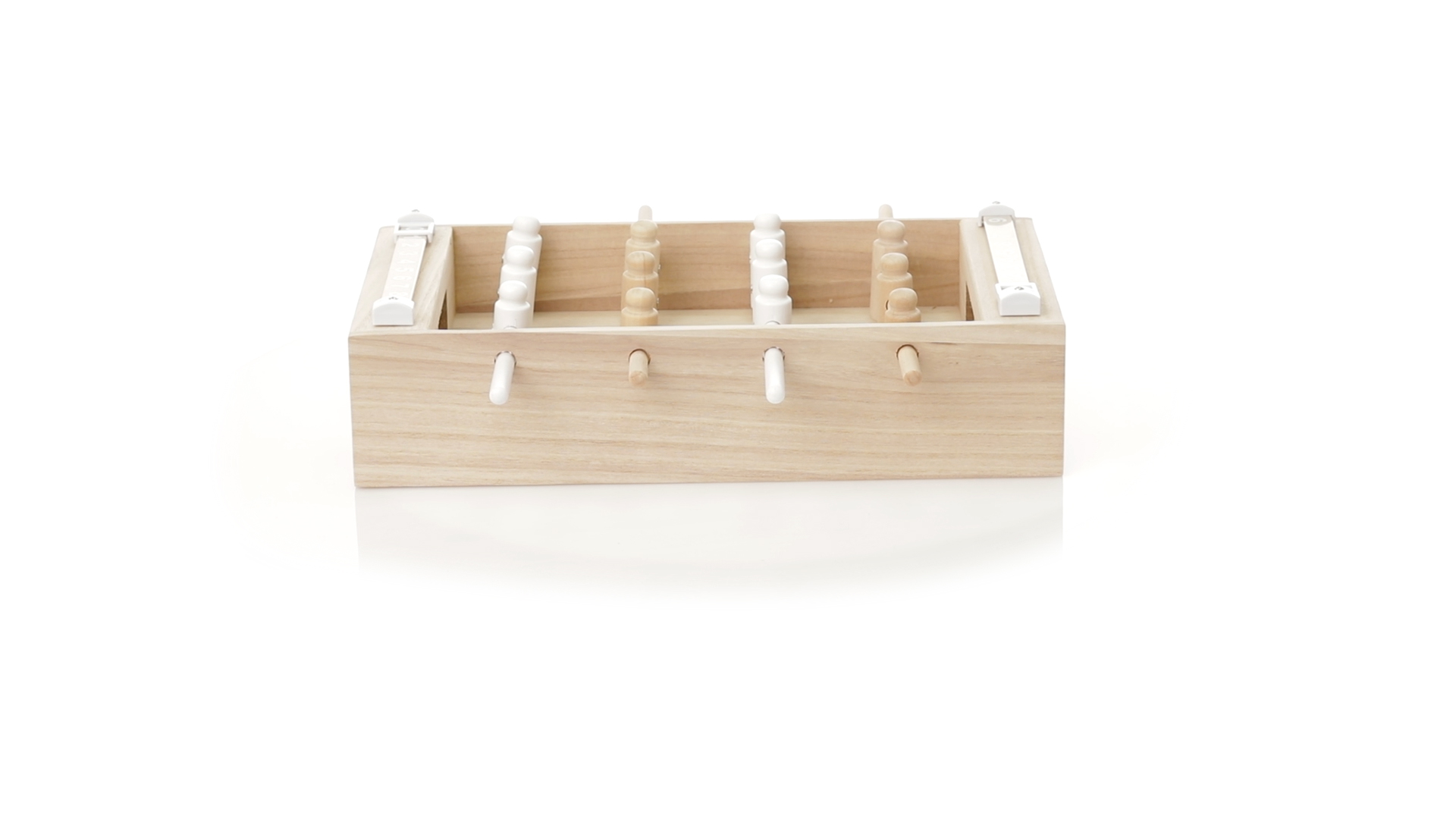 Mini-Fussballtisch, hergestellt aus widerstandsfähigem Holz. Inklusive 2 Bällen und Torschützen aus Weizenstroh, was die Verwendung von natürlichen Rohstoffen fördert und die Schadstoffemissionen reduziert. Testen Sie Ihre Fähigkeiten mit diesem lustigen und süchtig machenden Spiel. Präsentiert in einer attraktiven, individuellen Schachtel mit Kraftlackierung.