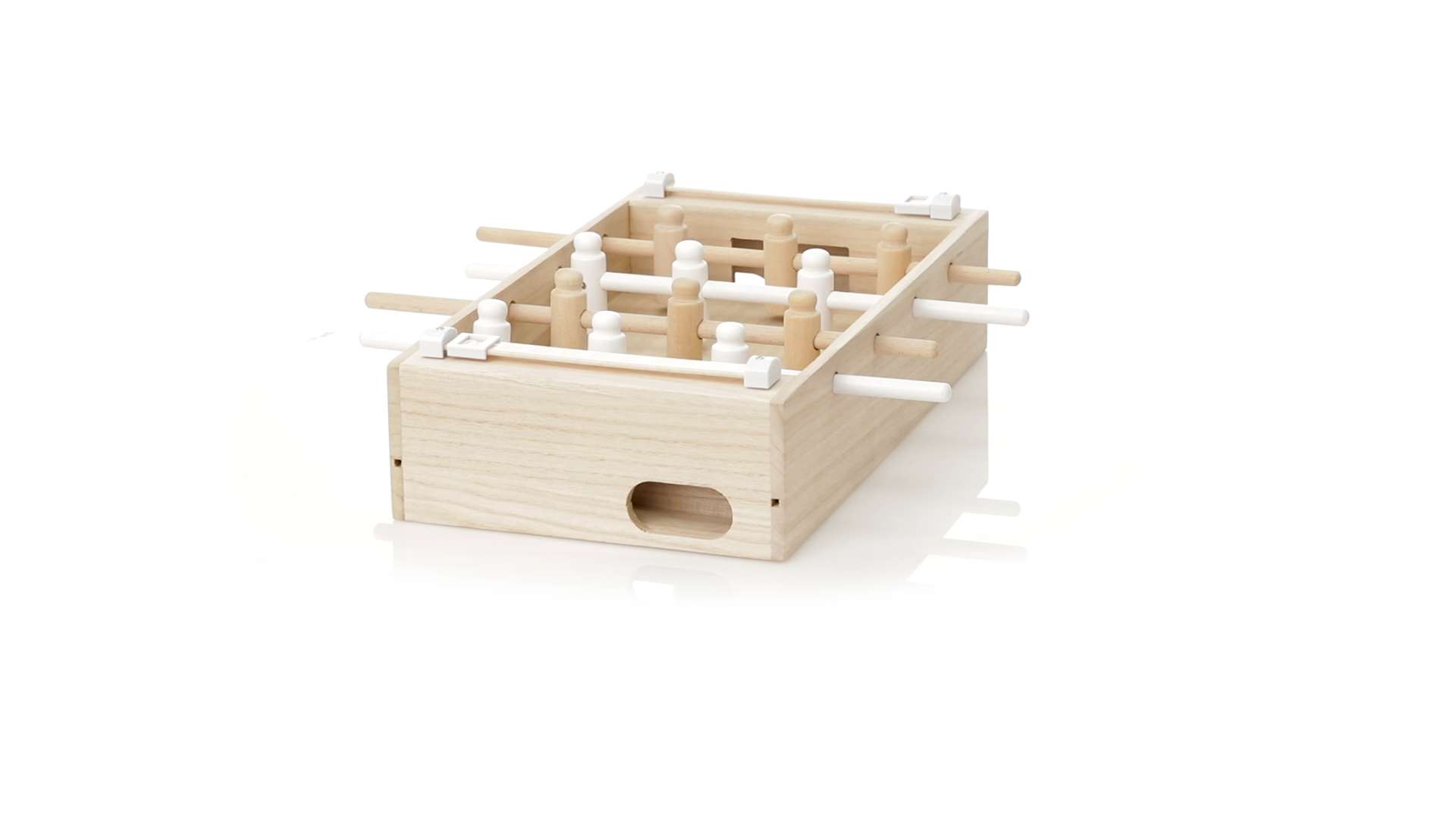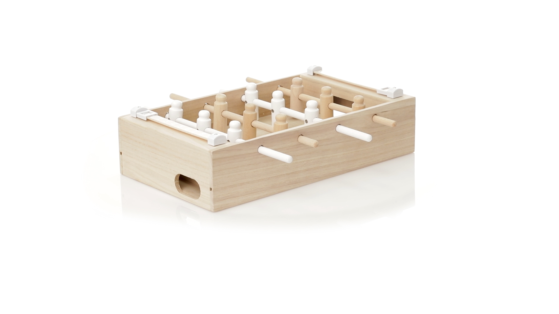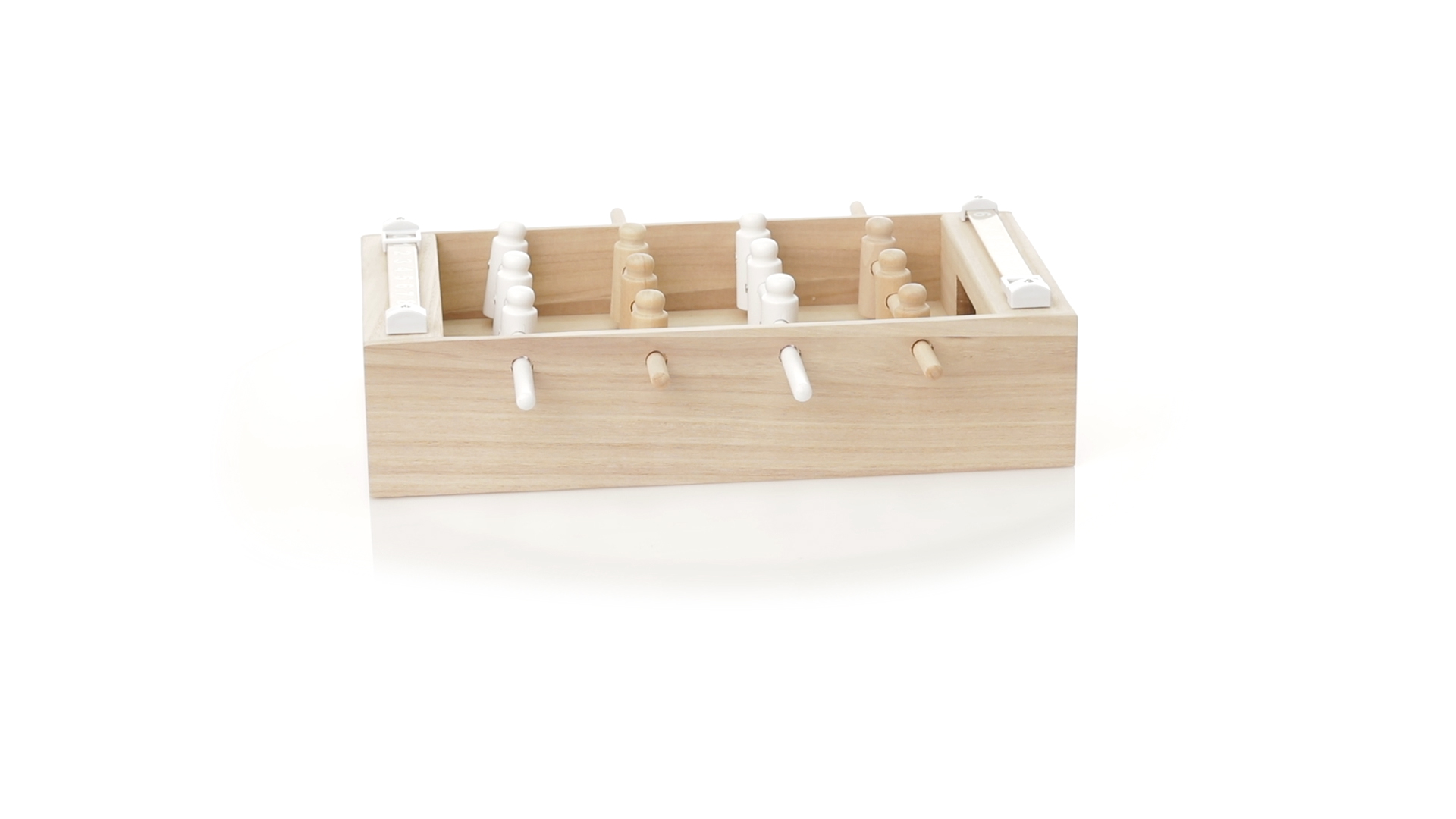 Mini-Fussballtisch, hergestellt aus widerstandsfähigem Holz. Inklusive 2 Bällen und Torschützen aus Weizenstroh, was die Verwendung von natürlichen Rohstoffen fördert und die Schadstoffemissionen reduziert. Testen Sie Ihre Fähigkeiten mit diesem lustigen und süchtig machenden Spiel. Präsentiert in einer attraktiven, individuellen Schachtel mit Kraftlackierung.