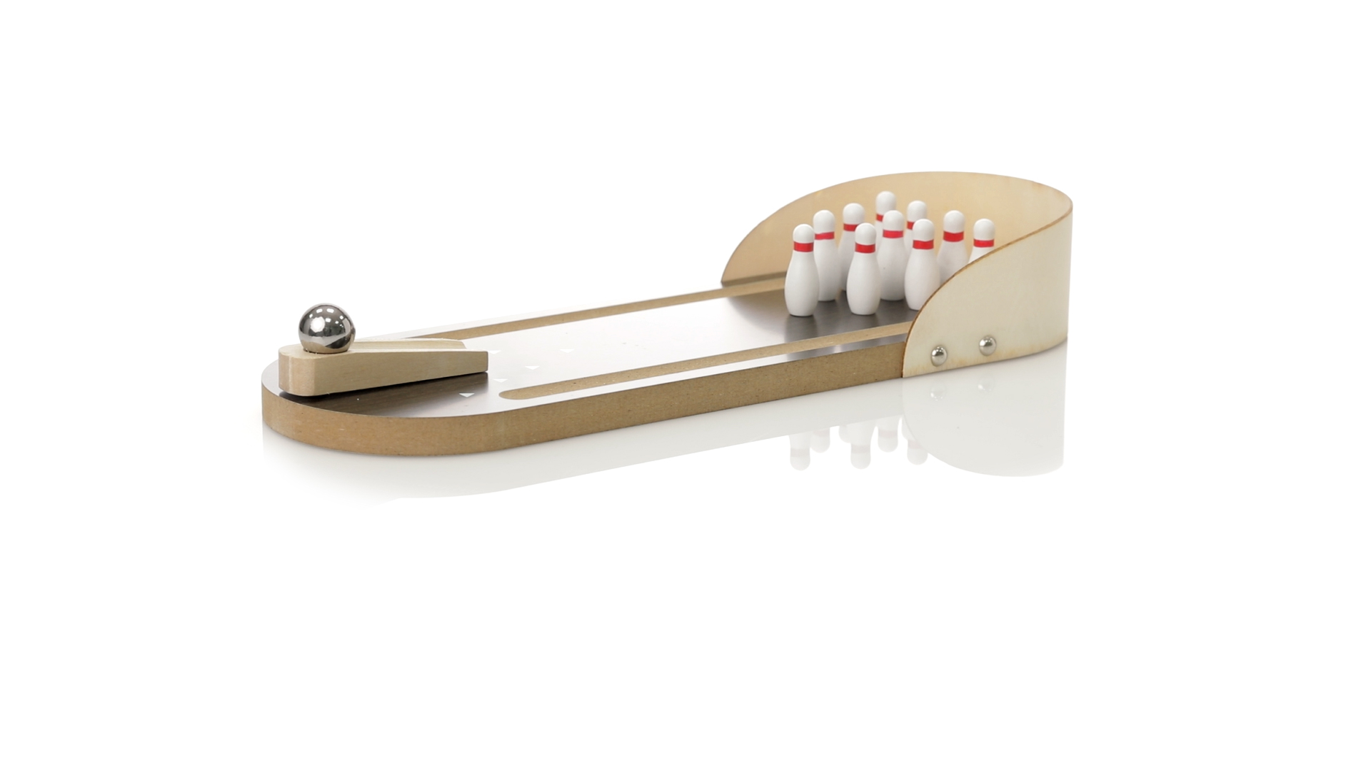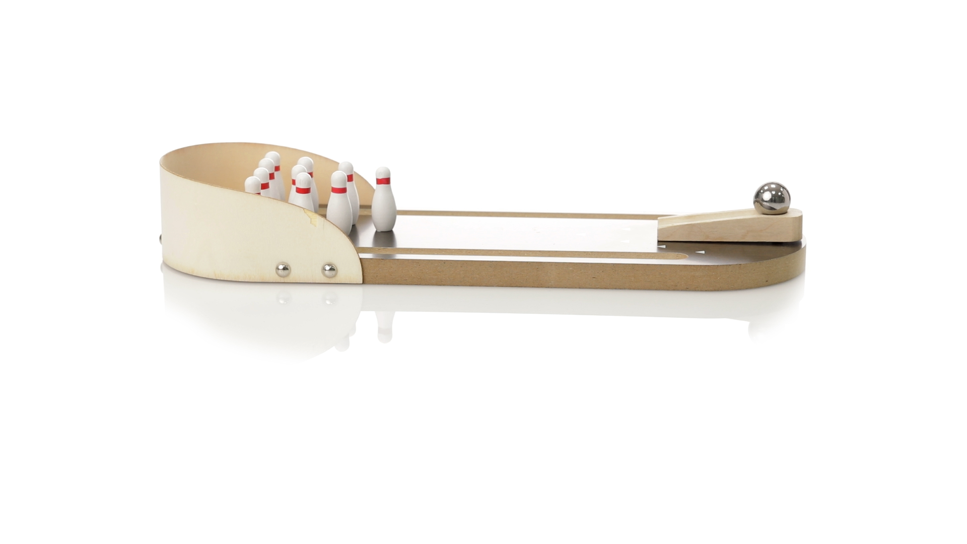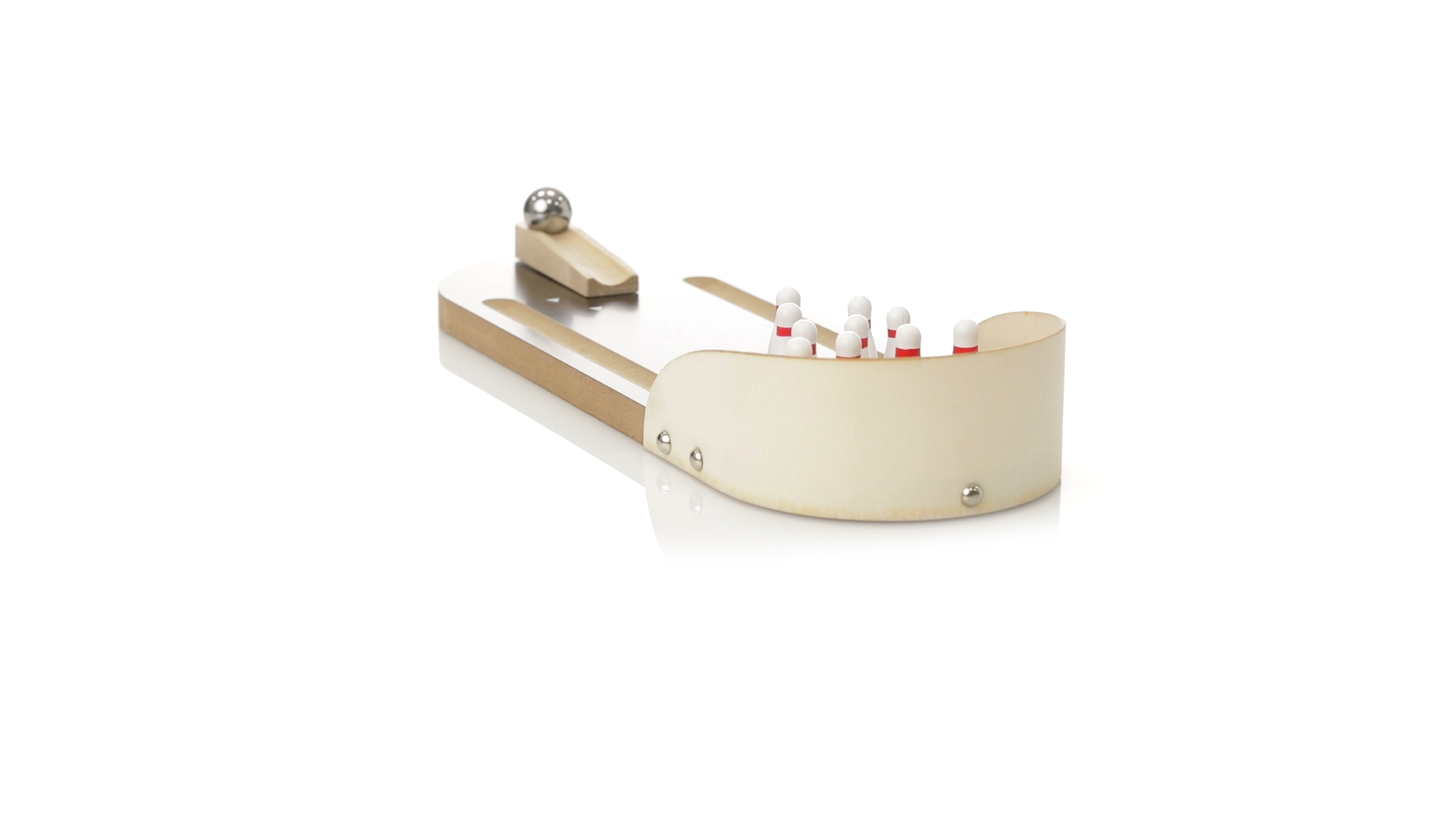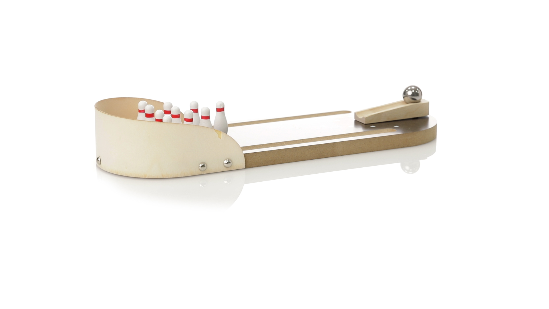 Mini-Bowlingspiel, hergestellt aus widerstandsfähigem Holz. Enthält 10 Pins und Metallkugel, mit verstellbarer Abschussrampe. Testen Sie Ihre Fähigkeiten mit diesem lustigen und süchtig machenden Spiel. Präsentiert in einer attraktiven, individuell gestalteten Box mit Kraftlackierung.