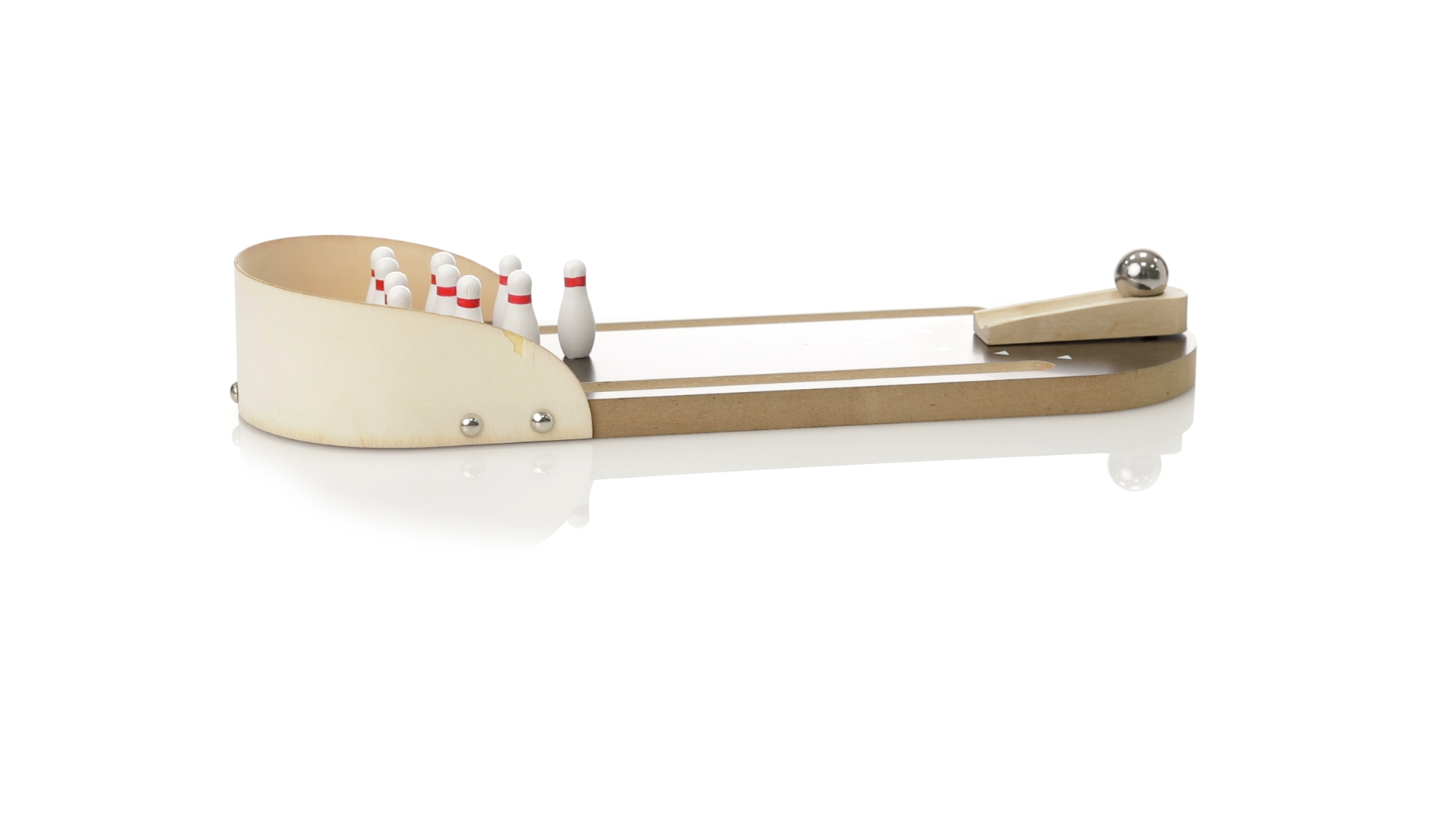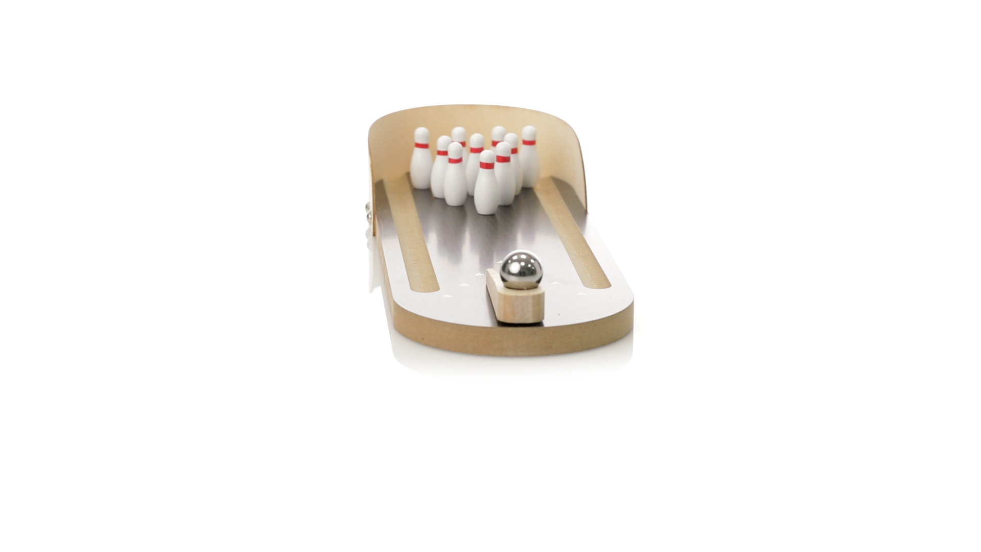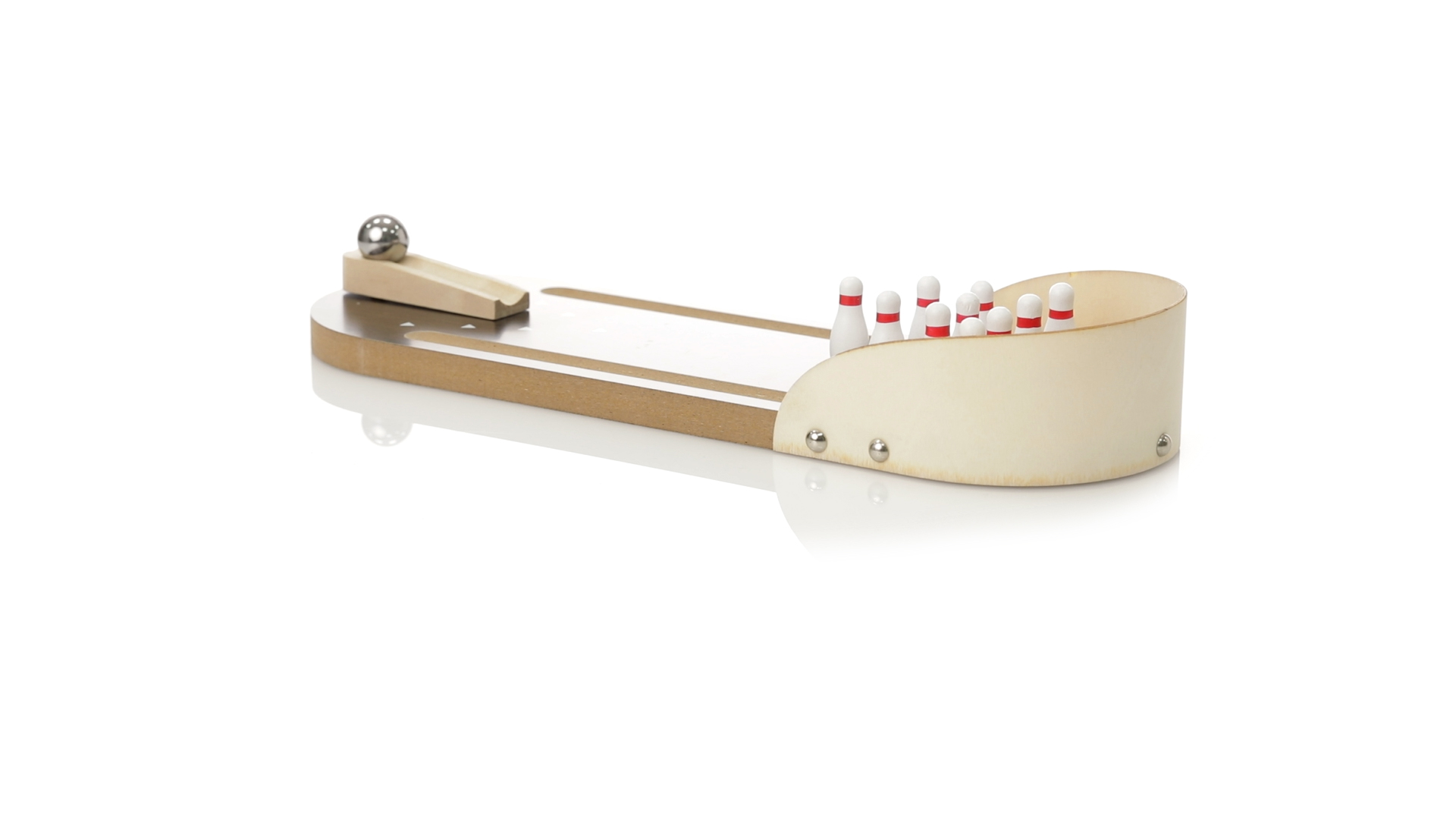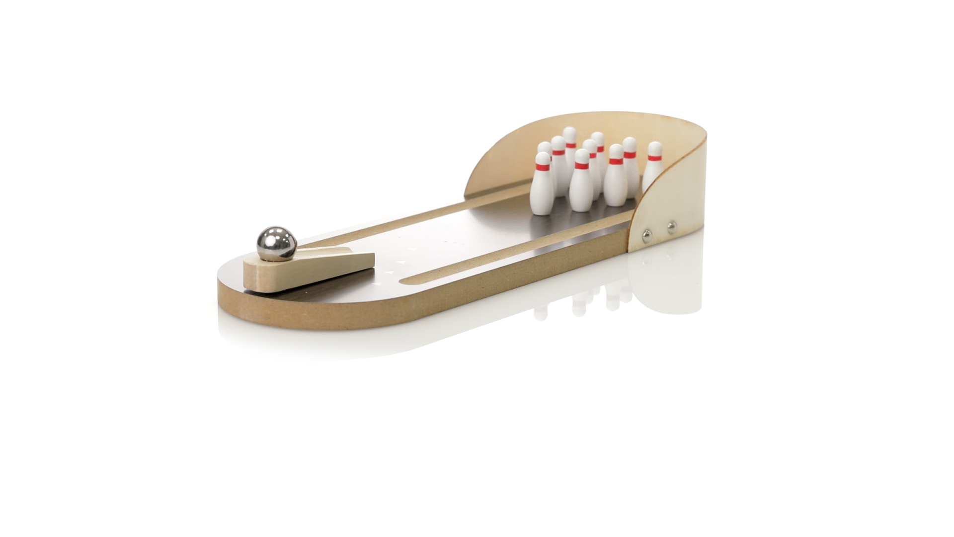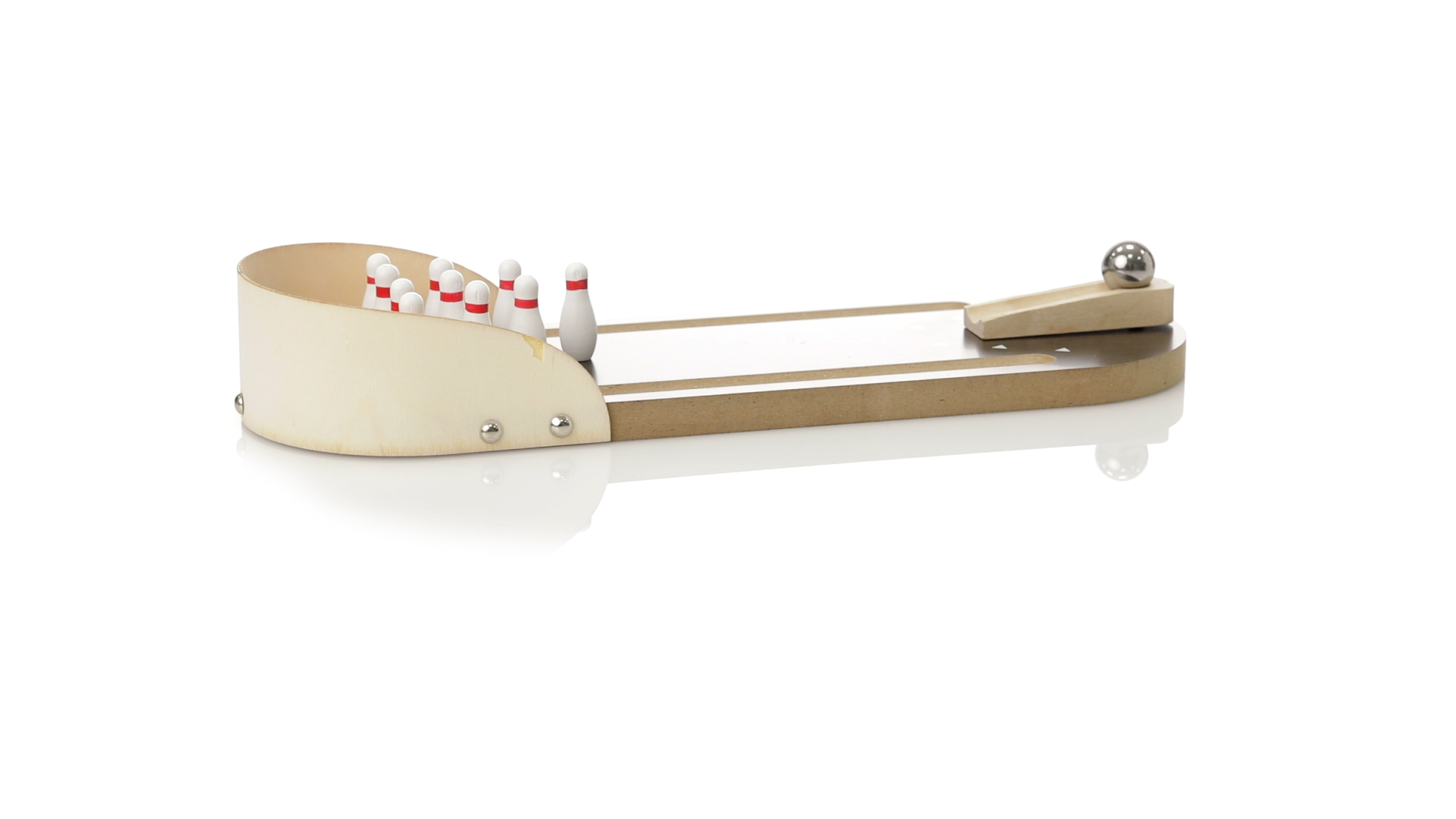 Mini-Bowlingspiel, hergestellt aus widerstandsfähigem Holz. Enthält 10 Pins und Metallkugel, mit verstellbarer Abschussrampe. Testen Sie Ihre Fähigkeiten mit diesem lustigen und süchtig machenden Spiel. Präsentiert in einer attraktiven, individuell gestalteten Box mit Kraftlackierung.