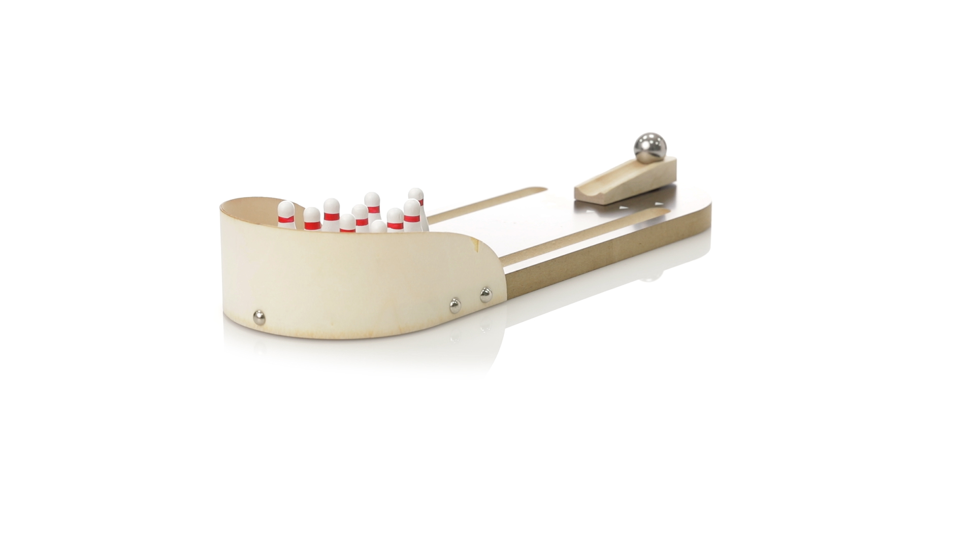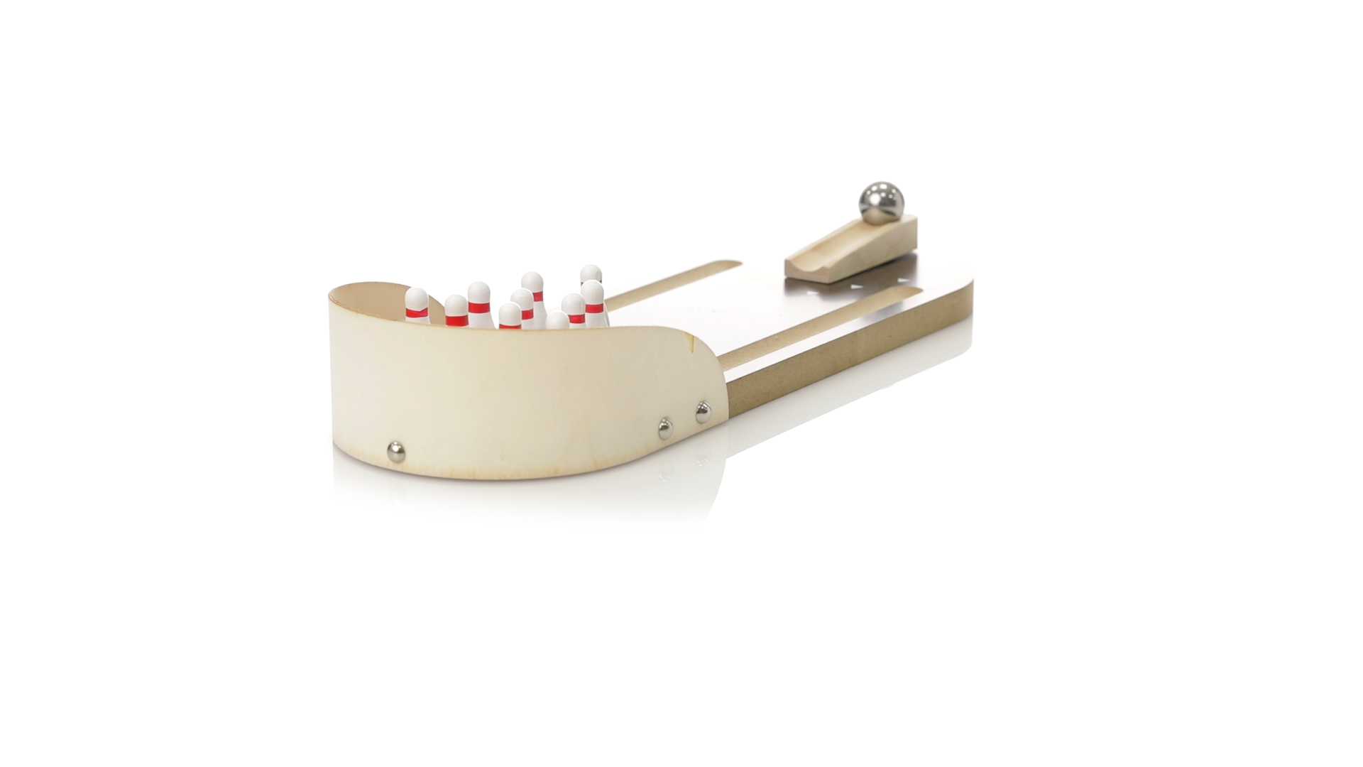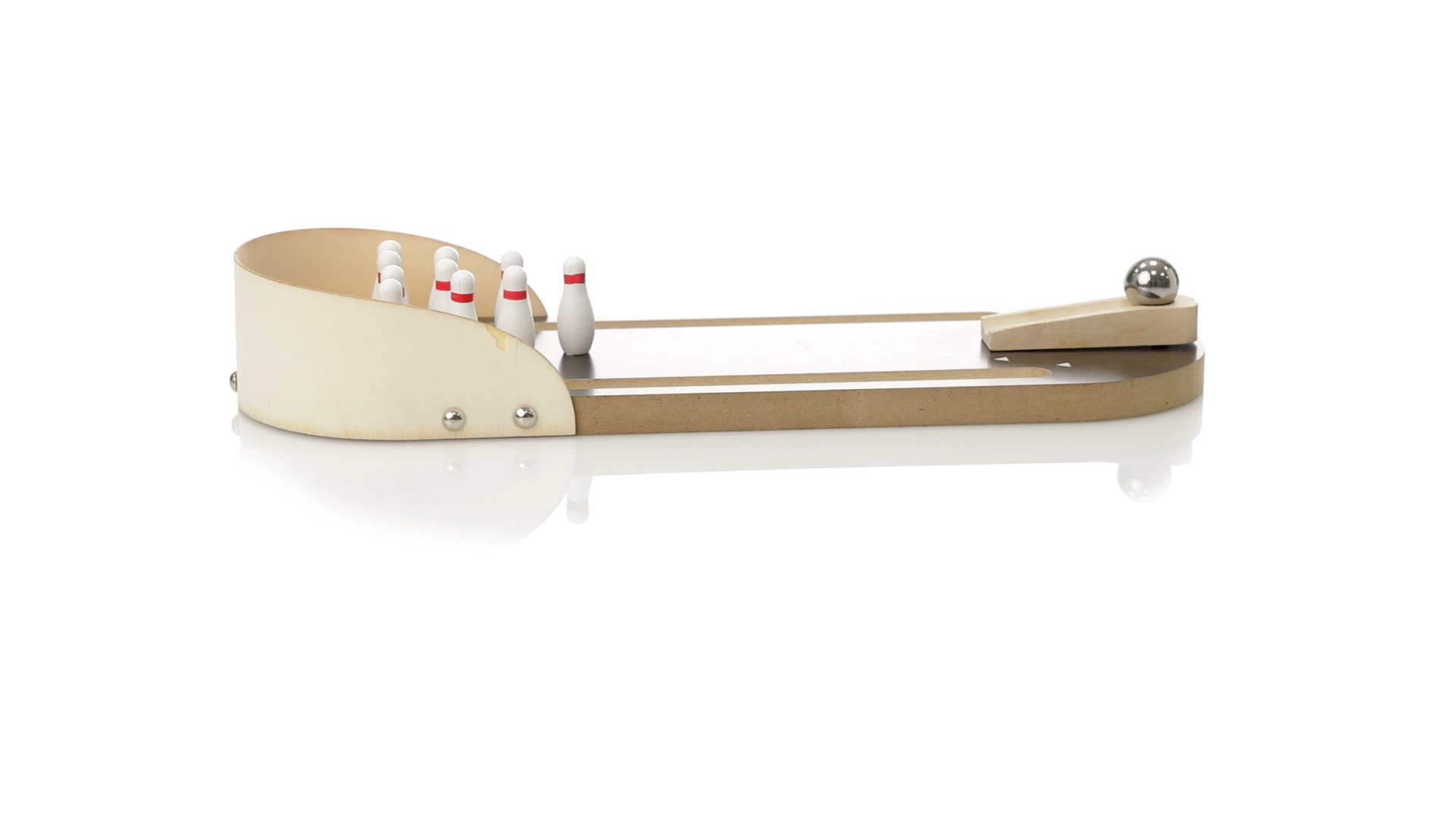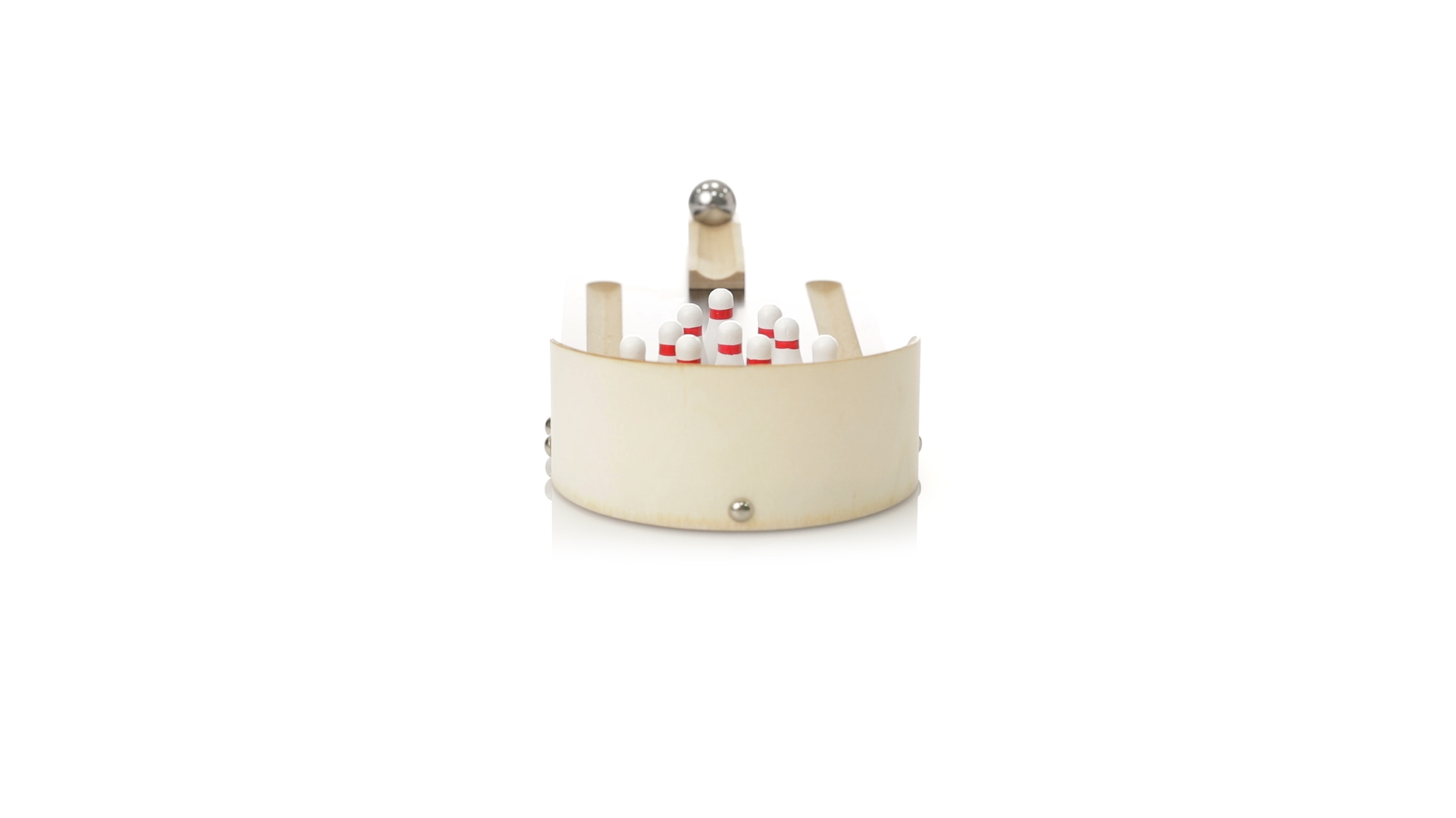 Mini-Bowlingspiel, hergestellt aus widerstandsfähigem Holz. Enthält 10 Pins und Metallkugel, mit verstellbarer Abschussrampe. Testen Sie Ihre Fähigkeiten mit diesem lustigen und süchtig machenden Spiel. Präsentiert in einer attraktiven, individuell gestalteten Box mit Kraftlackierung.