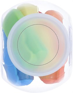 Mini-Textmarkerset bestehend aus jeweils einem Marker in blau, pink, grün, orange und gelb in einer Bonboniere aus PET.