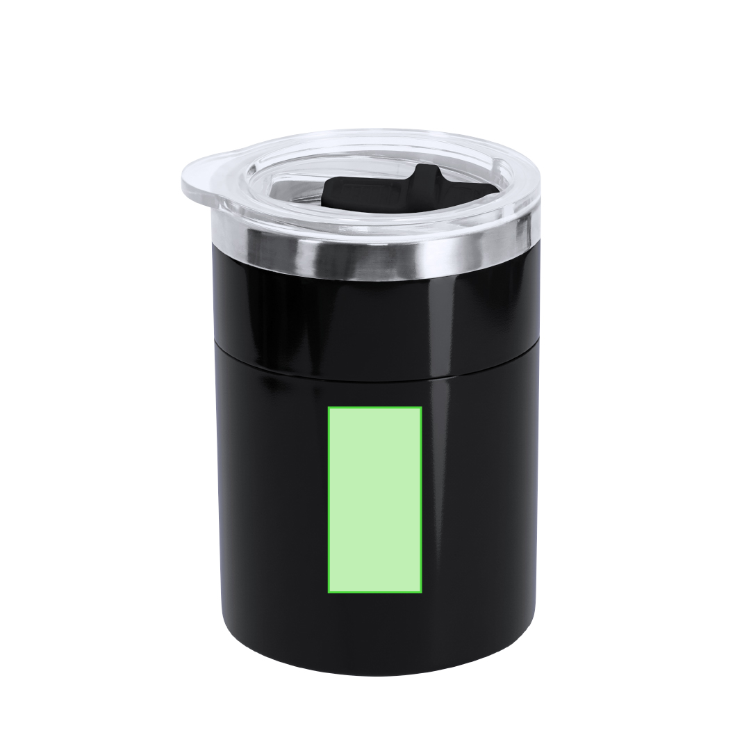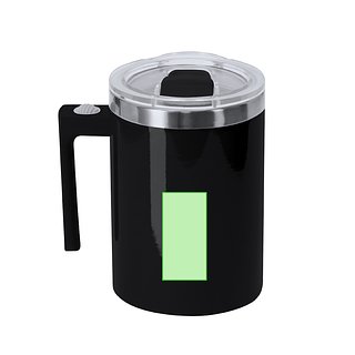 Rührbecher aus widerstandsfähigem Edelstahl mit einem Fassungsvermögen von 400 ml. Enthält Deckel mit schiebbarer Düse. Die Innenbasis verfügt über einen elektrischen Rührer, der mit 2 AAA-Batterien betrieben wird (nicht enthalten). Mit Ein-/Aus-Knopf am Griff.