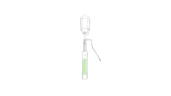 Patentierter Teleskop-Selfie-Stick mit 3,5-mm-Klinkenstecker, Anti-Rotationssystem und komfortablem ergonomischem Griff mit eingebautem Auslöser. Mit Polsterung in der Halterung für optimalen Halt und Schutz des Smartphones sowie Einstellmutter zum Fixieren des gewünschten Aufnahmewinkels für noch mehr Möglichkeiten. Verfügbar in einer Vielzahl von Farben. Kompatibel mit allen Arten von Smartphones und speziell für den Tampondruck entwickelt. Präsentiert in einer attraktiven Designbox.