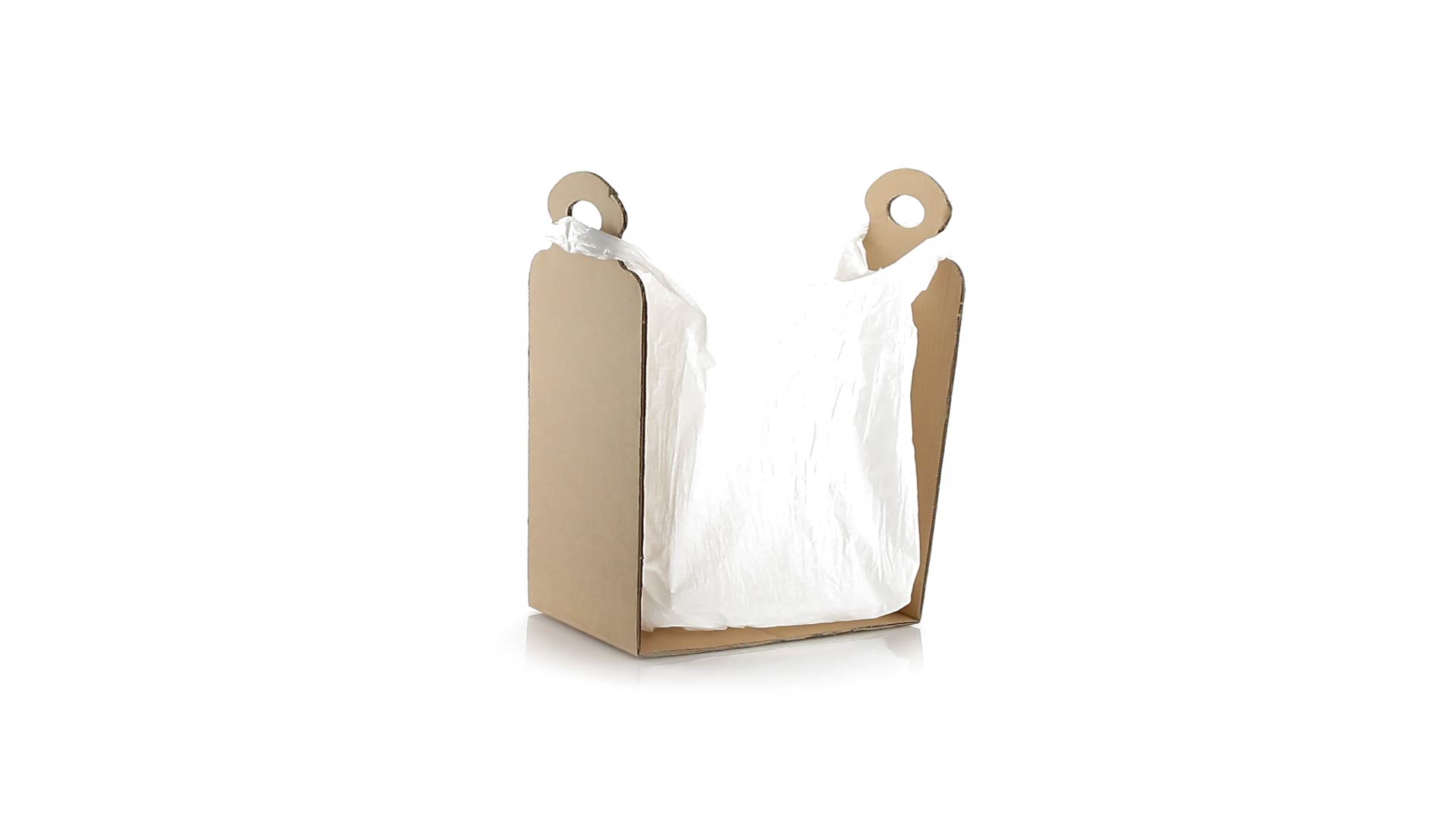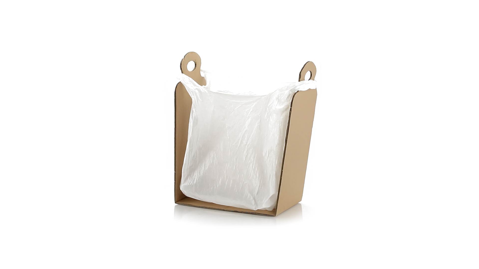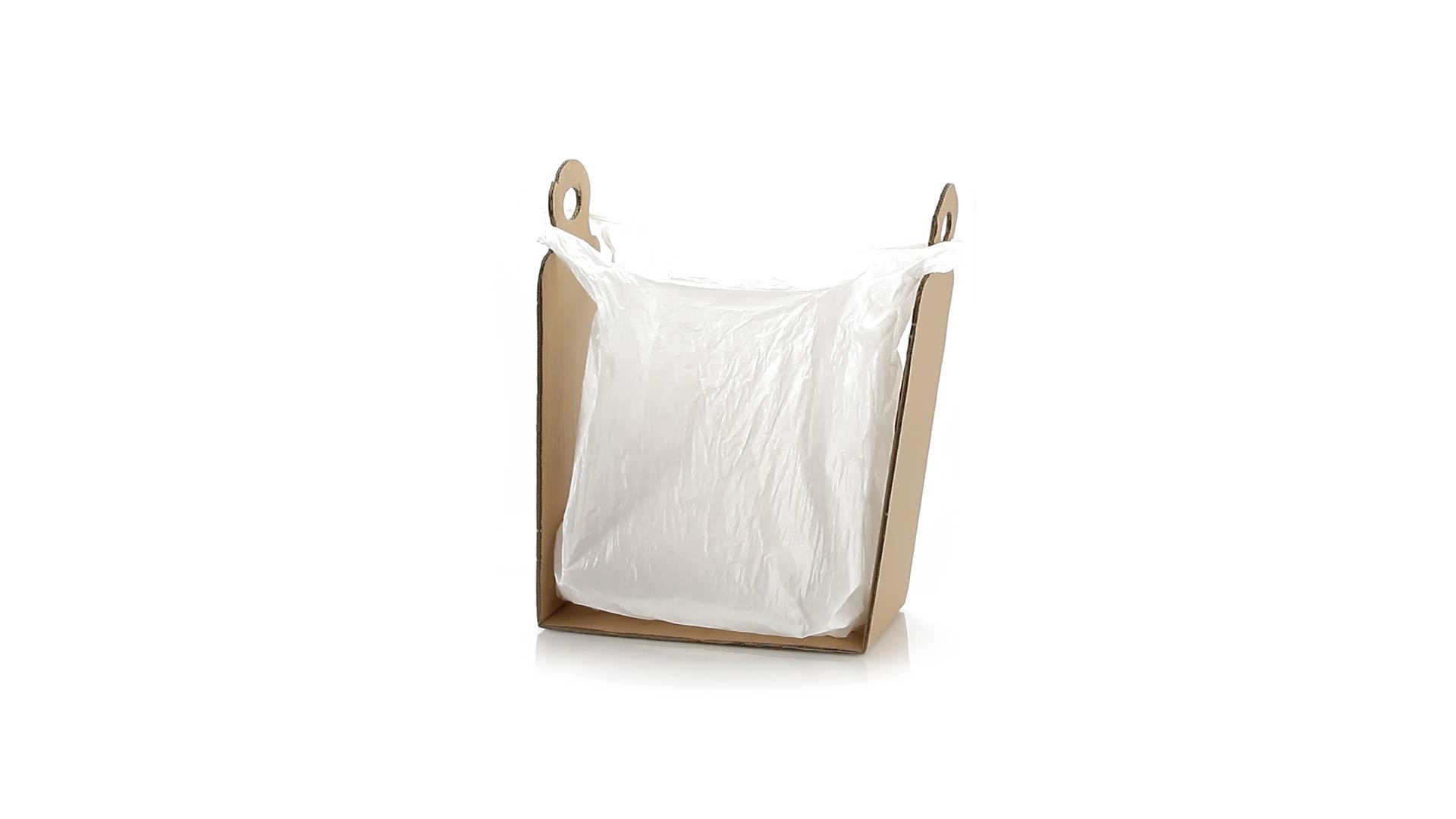 Müllbeutelhalter aus robustem Karton für eine Vielzahl von Beutelgrössen.