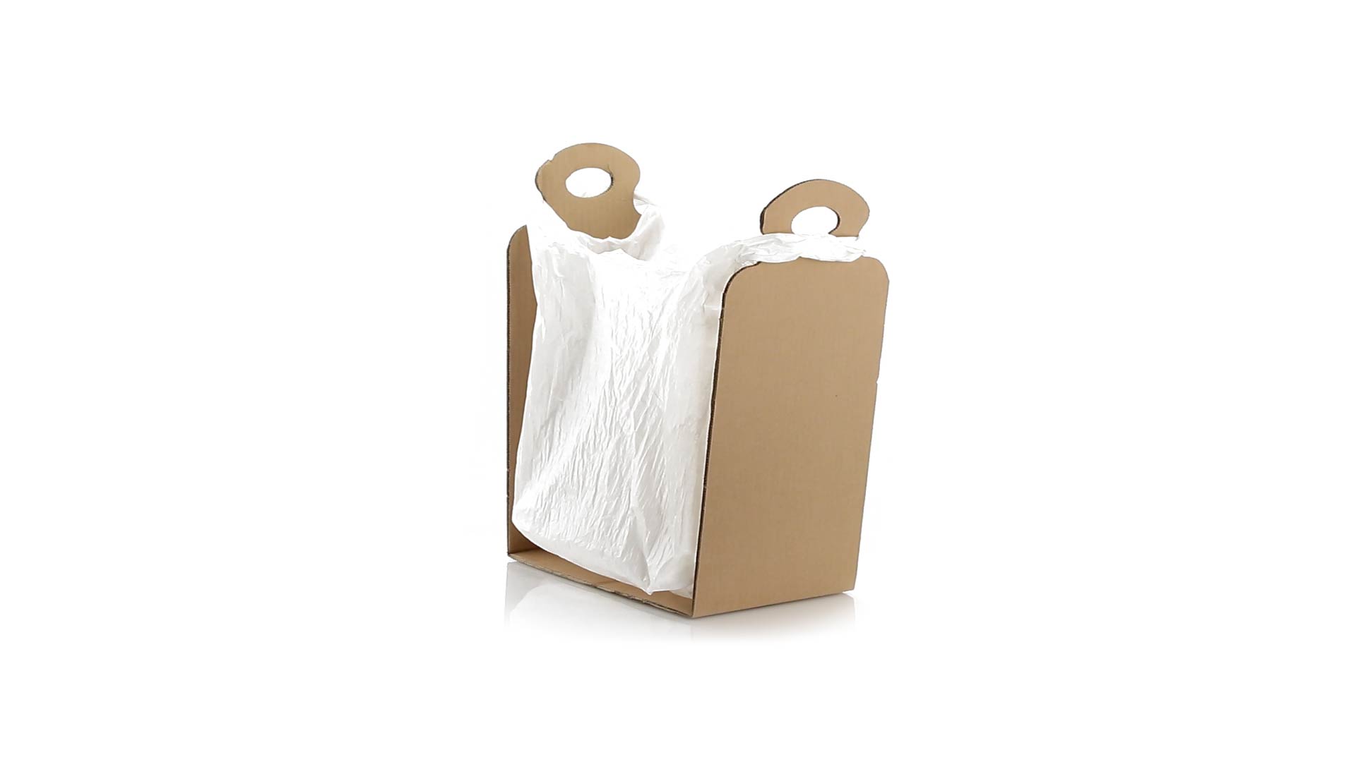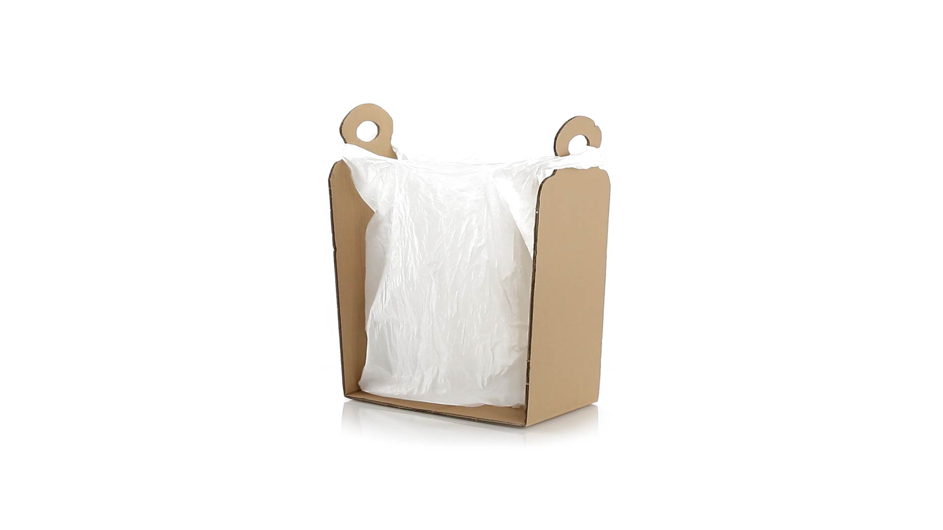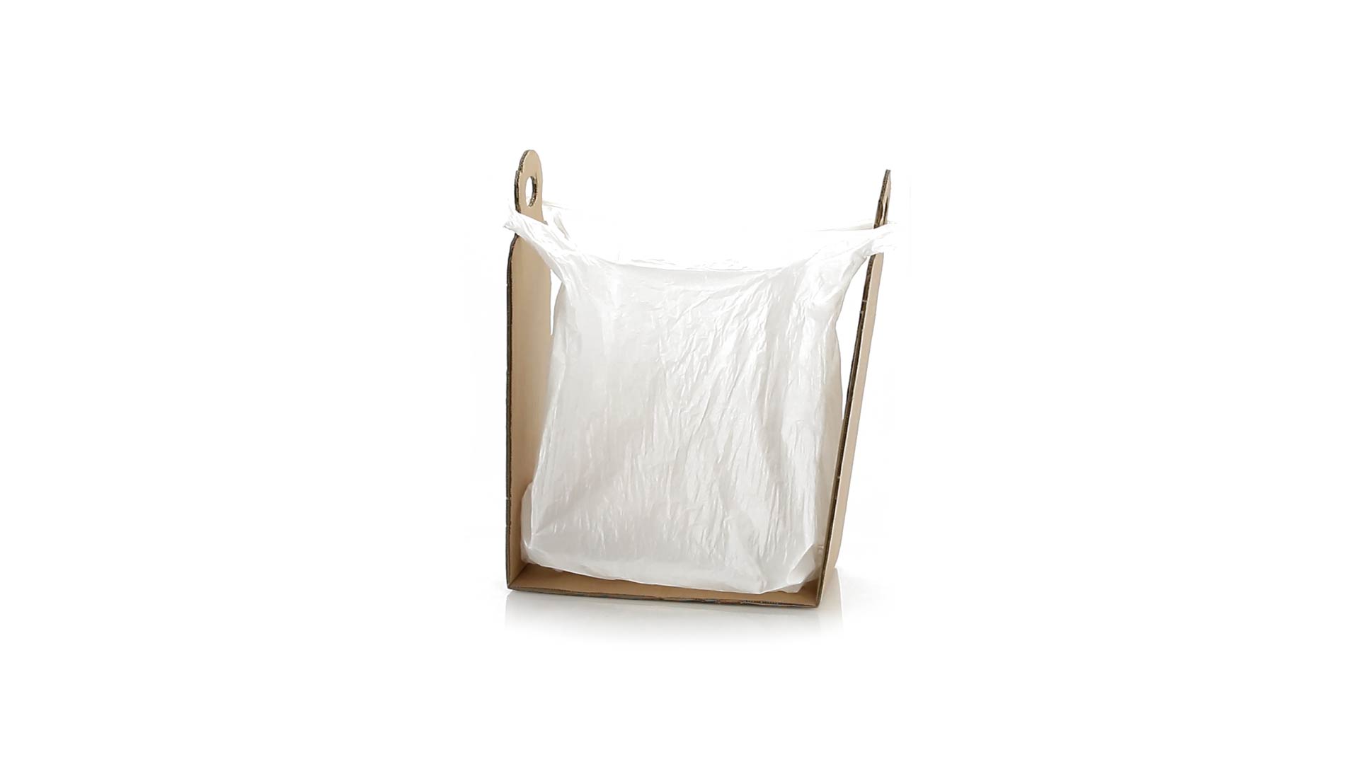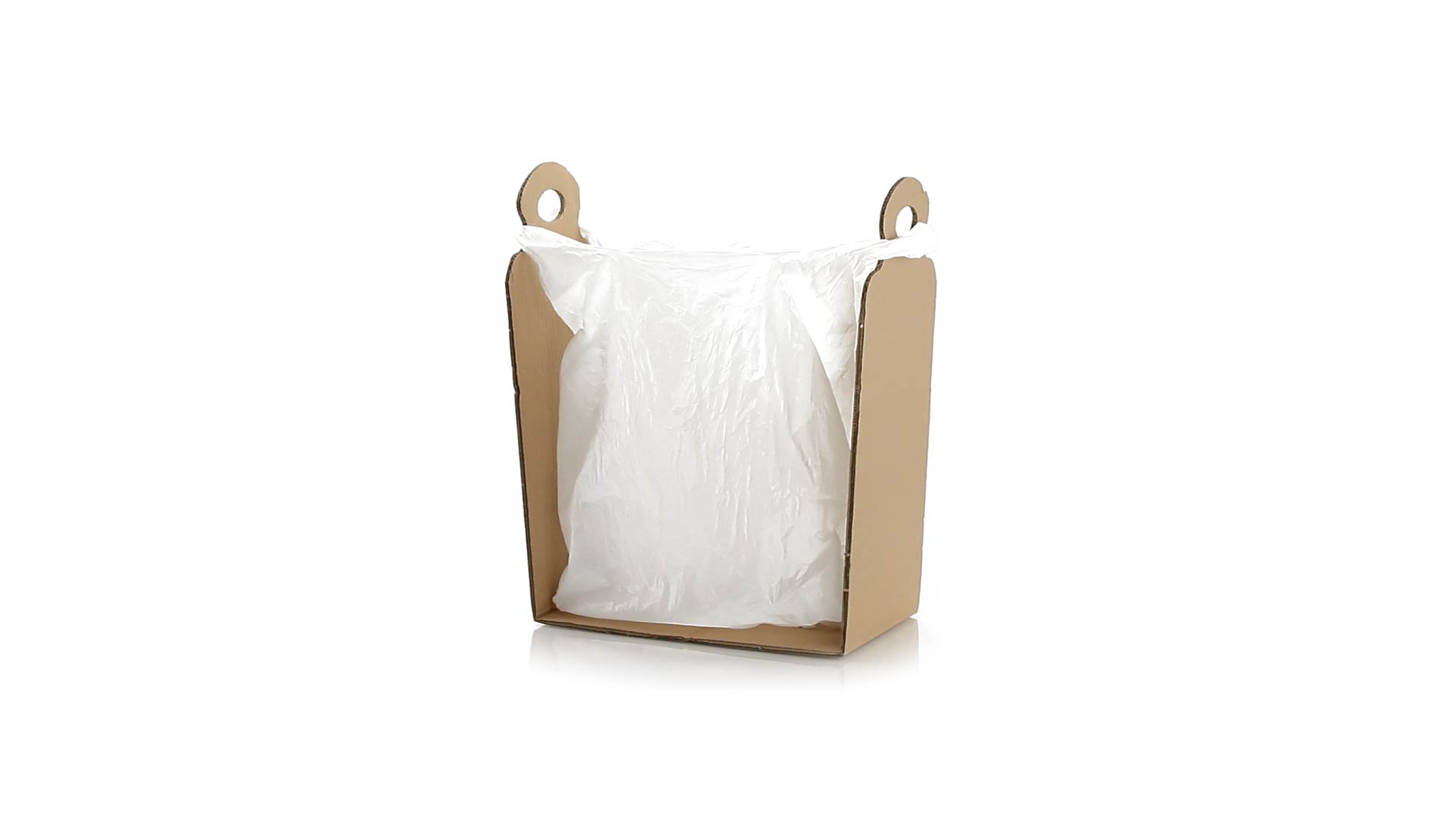 Müllbeutelhalter aus robustem Karton für eine Vielzahl von Beutelgrössen.
