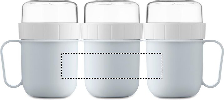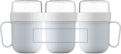 Brunch- oder Müslibecher für unterwegs. 2 PP-Behälter, um die Zutaten getrennt aufzubewahren. Deckel aus PS. Füllmenge: 450 ml und 160 ml. Auslaufsicher.