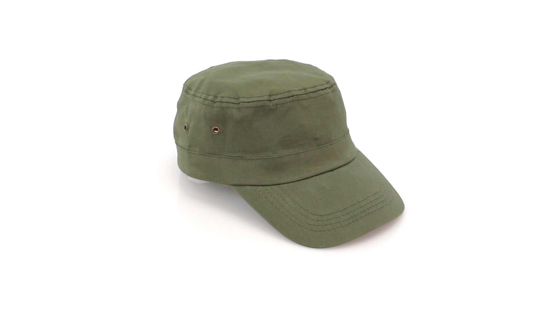 Kappe im Militär-Stil aus gekämmter Baumwolle in schlichten Farben. Mit seitlichen, mit Metallösen verstärkten Belüftungsöffnungen und verstellbarem Klettverschluss.