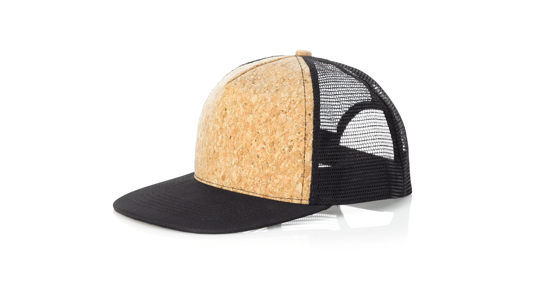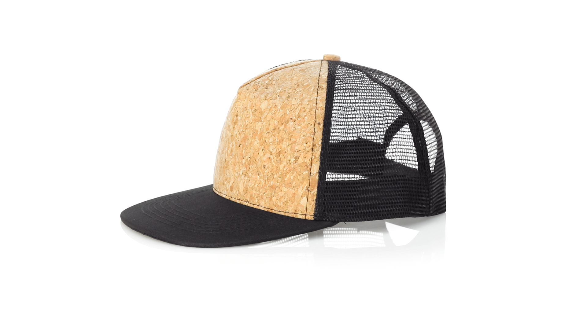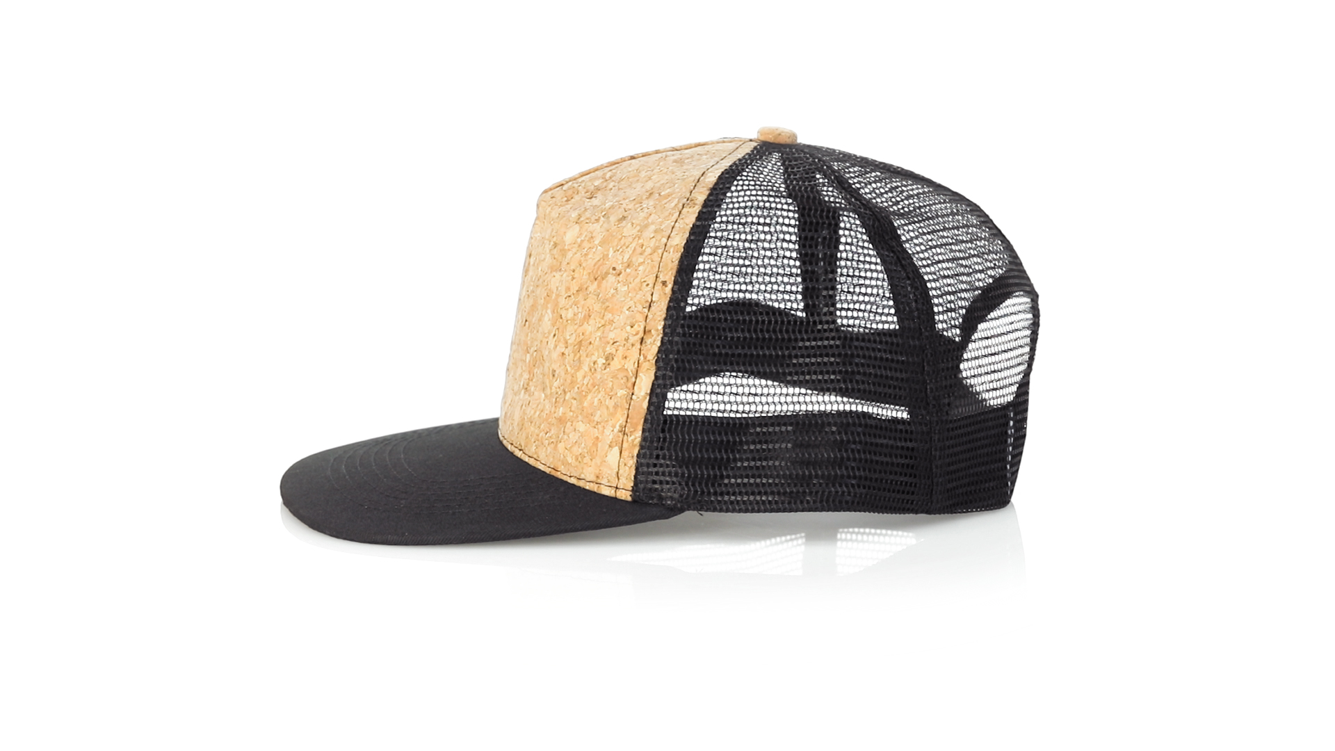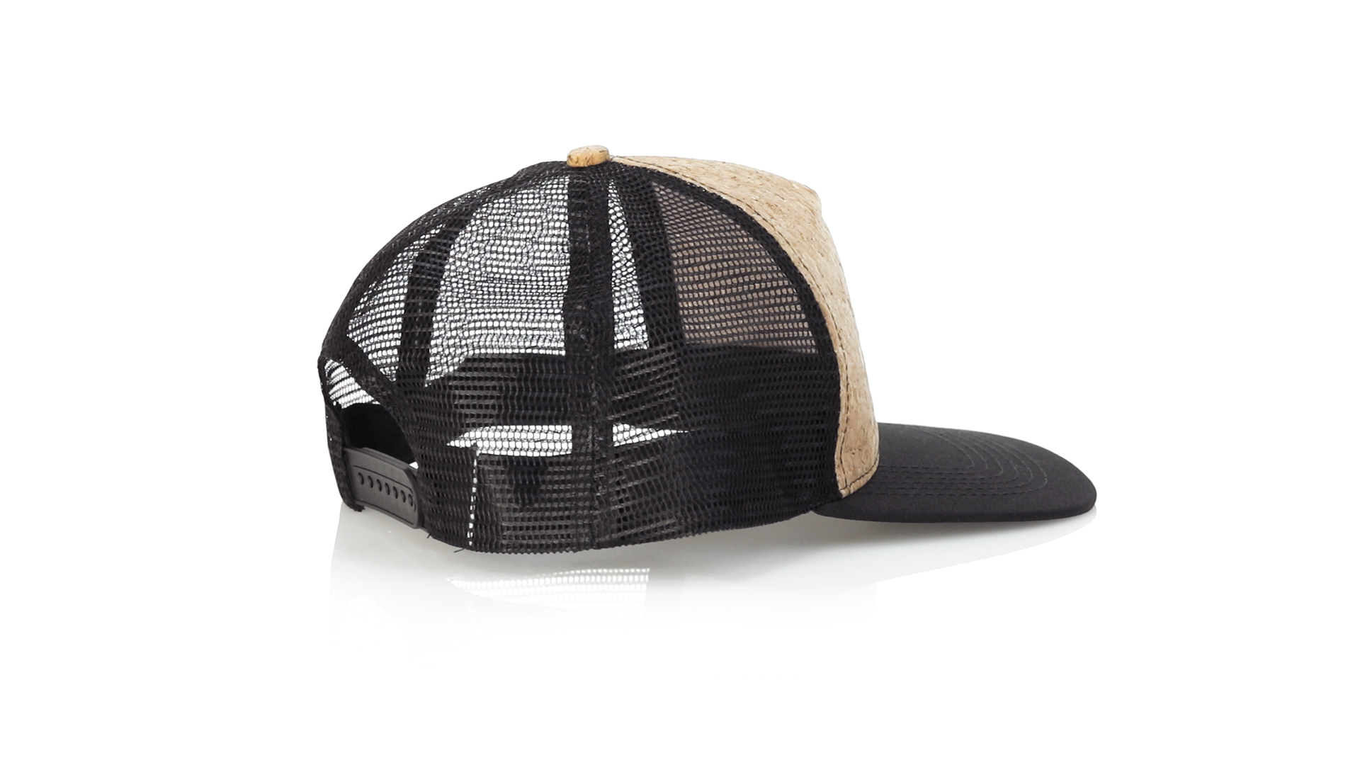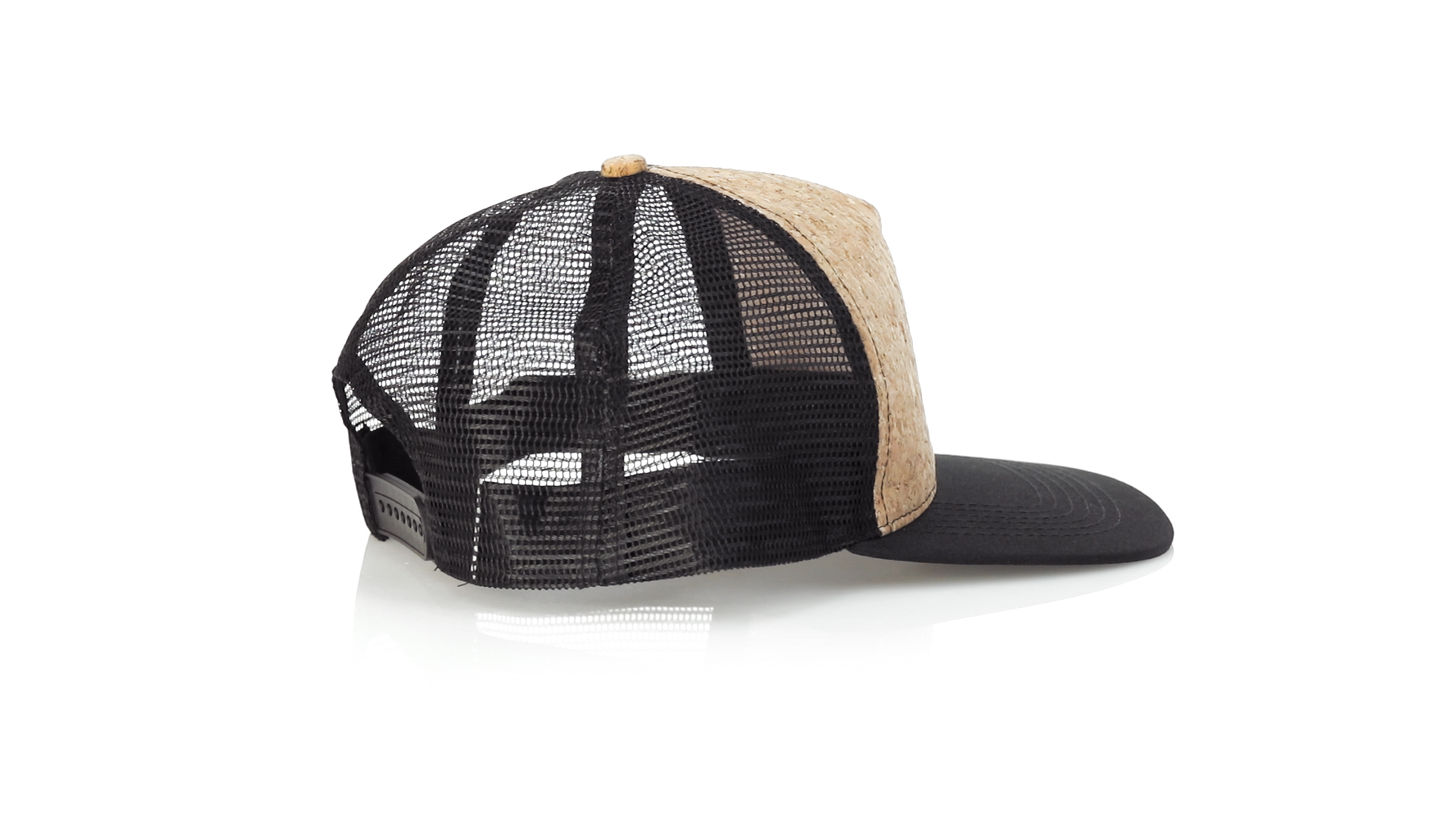 Mütze aus usnerer Naturlinie. 5 Panel in Kombination aus Naturkork mit Netzgewebe. Verstellbarer Kunststoffverschluss.