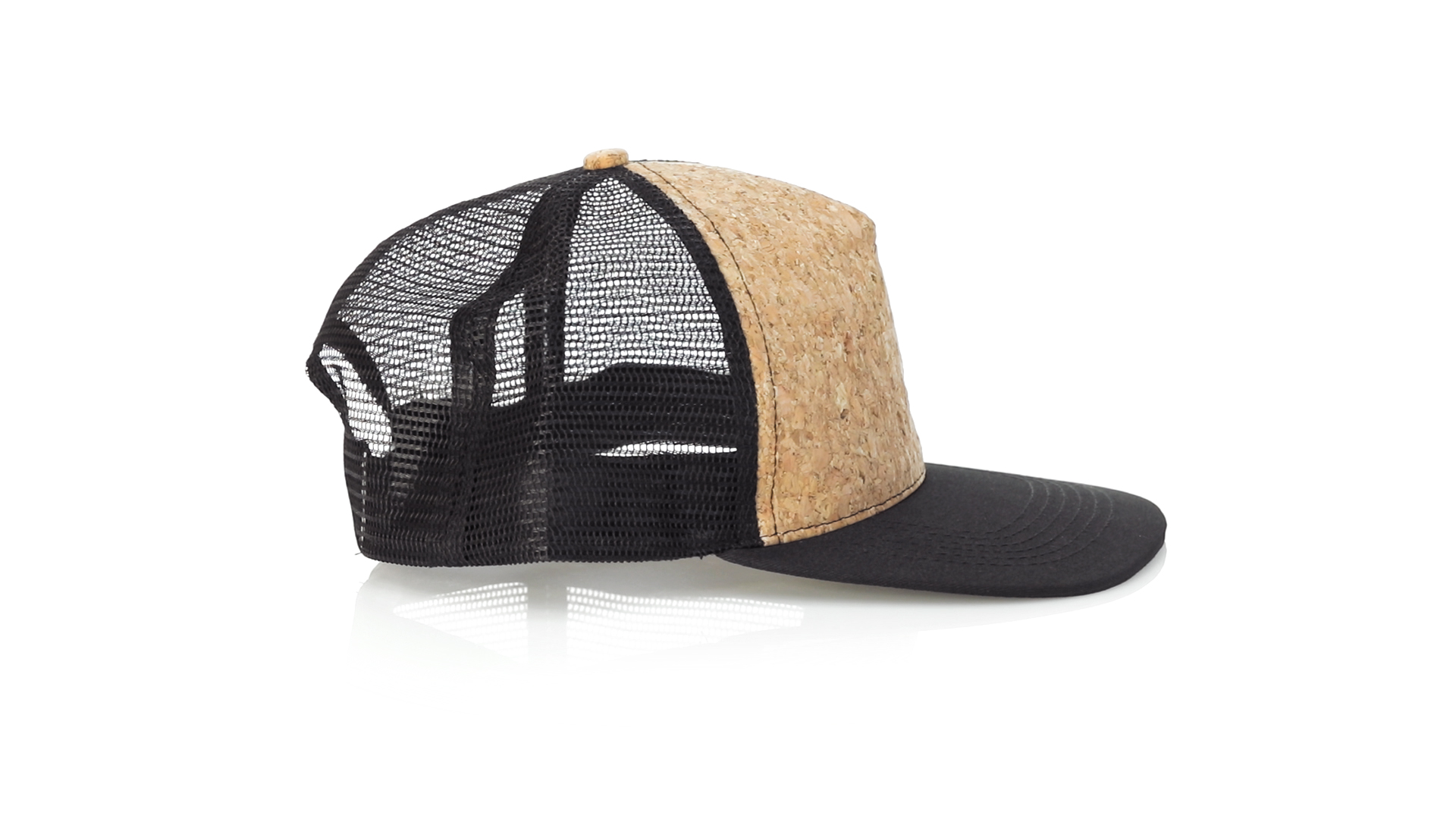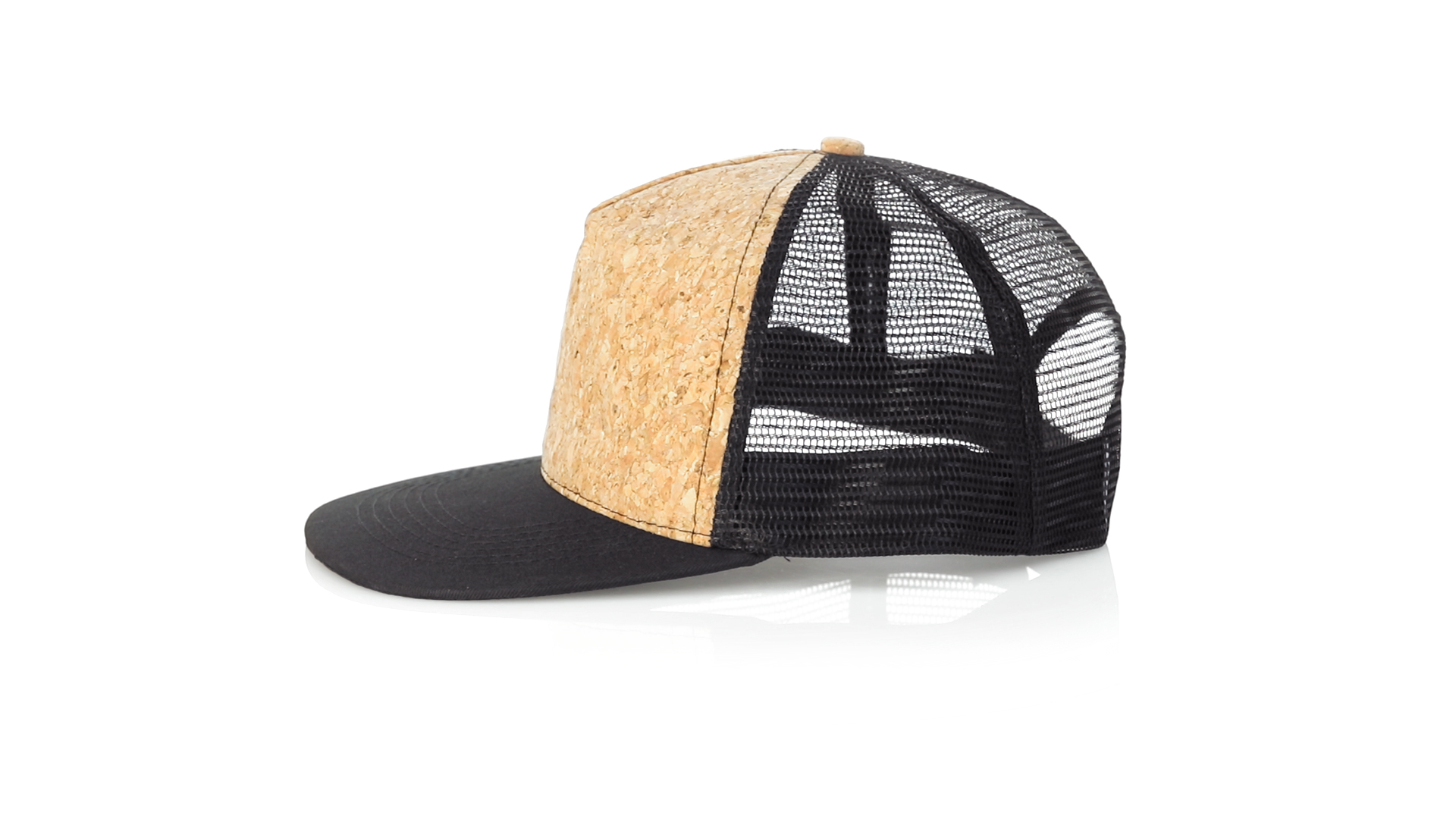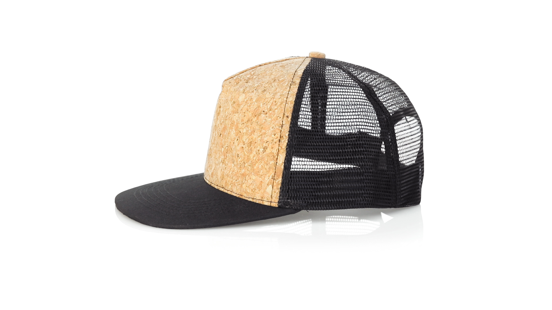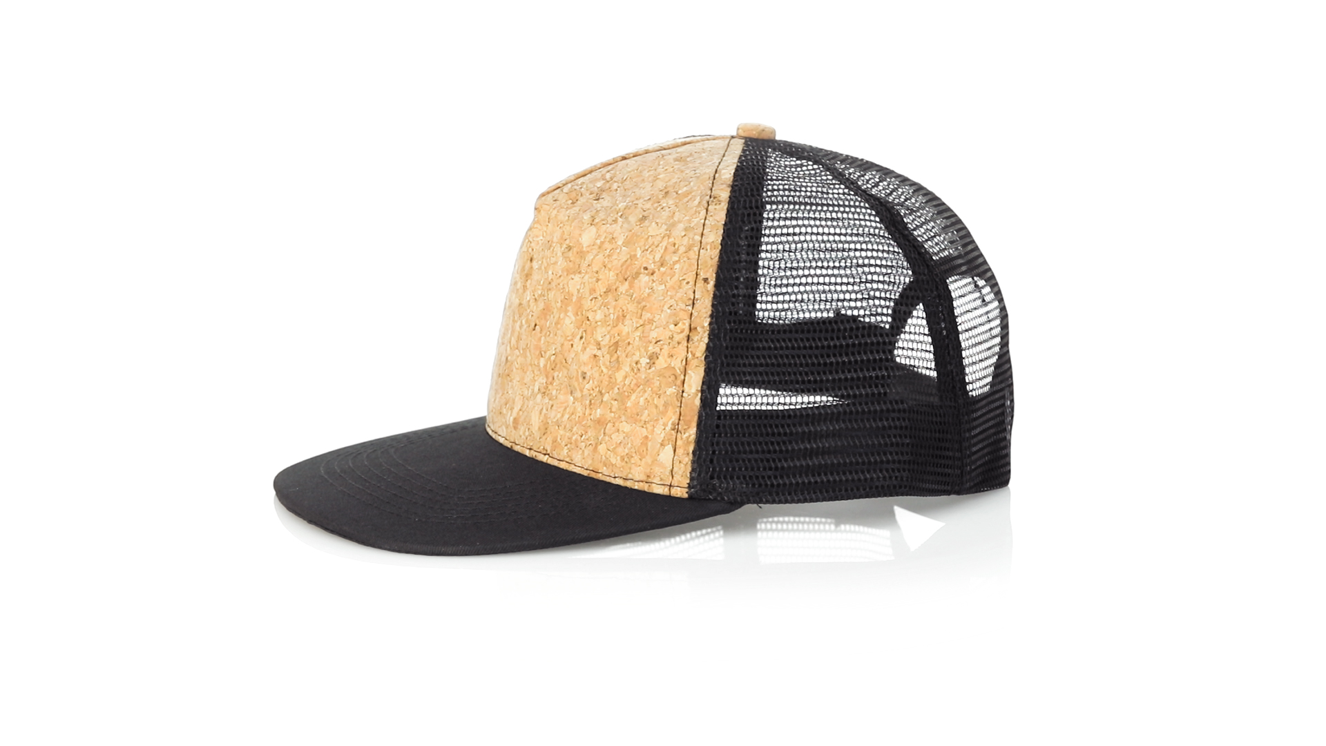 Mütze aus usnerer Naturlinie. 5 Panel in Kombination aus Naturkork mit Netzgewebe. Verstellbarer Kunststoffverschluss.