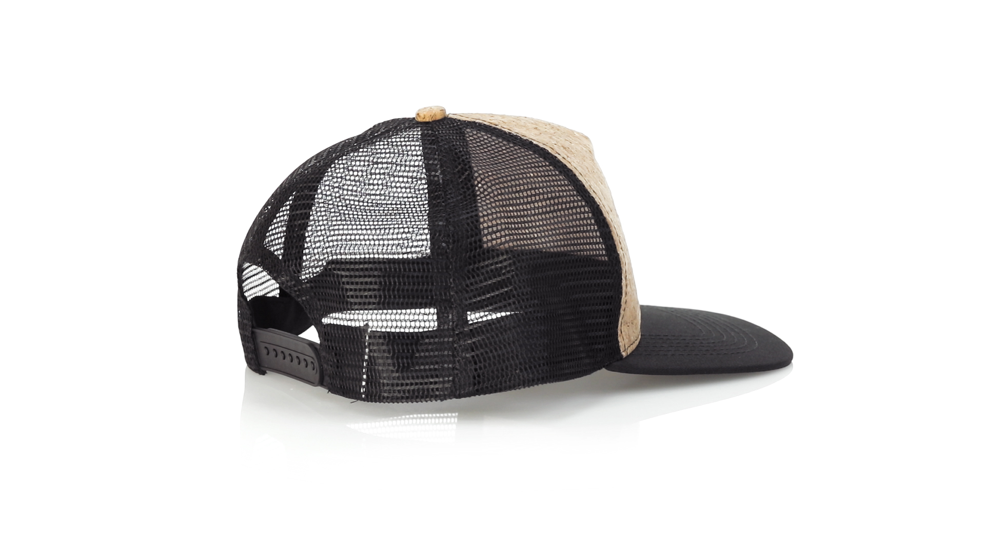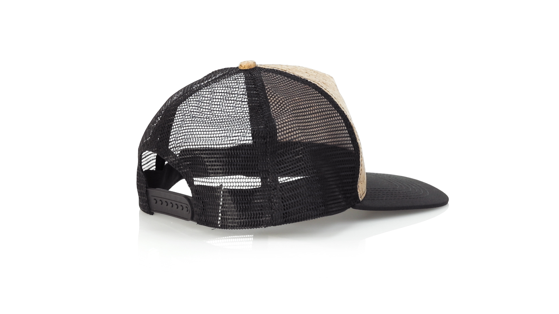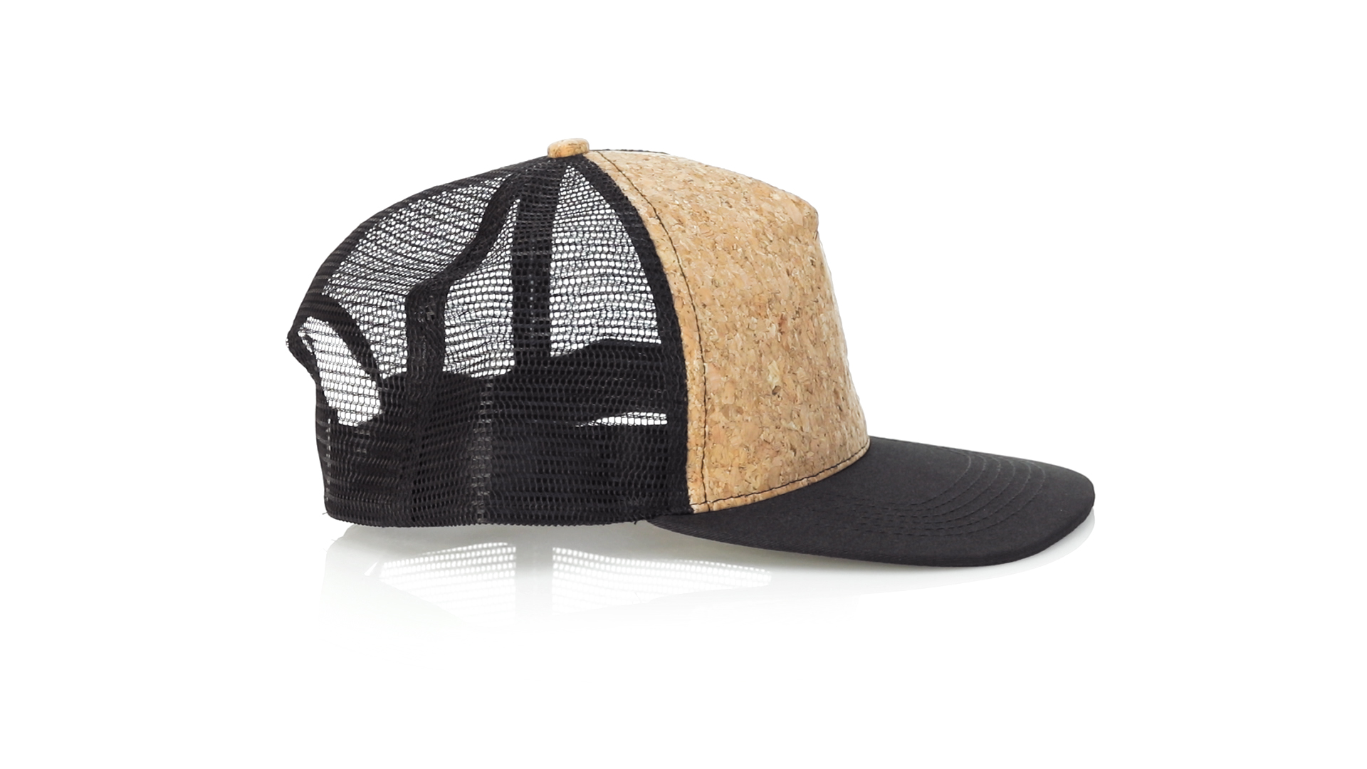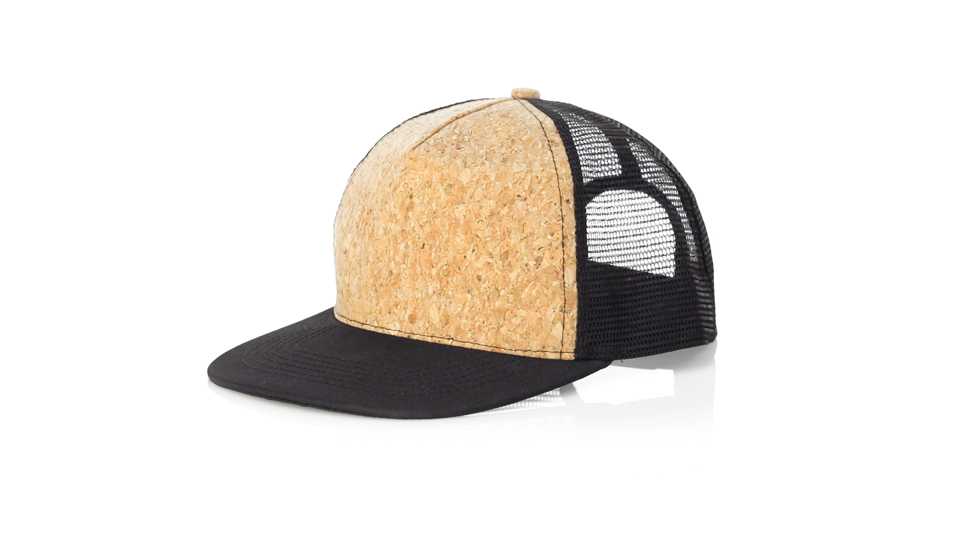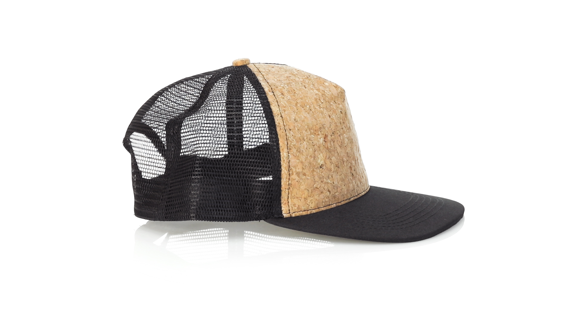 Mütze aus usnerer Naturlinie. 5 Panel in Kombination aus Naturkork mit Netzgewebe. Verstellbarer Kunststoffverschluss.