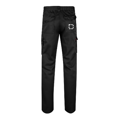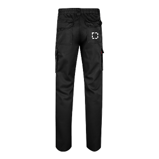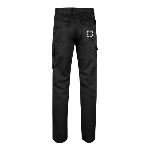Multi-Pocket-Stretchhose (240 g/m²) aus Baumwolle (46%), EME (38%) und Polyester (16%). Schmale Passform, elastischer Bund und sechs Taschen (2 französische Taschen, 2 seitliche Zwickeltaschen und 2 Gesässzwickeltaschen). Grösse: 34, 36, 38, 40, 42, 44, 46, 48, 50, 52, 54, 56, 58, 60, 62, 64