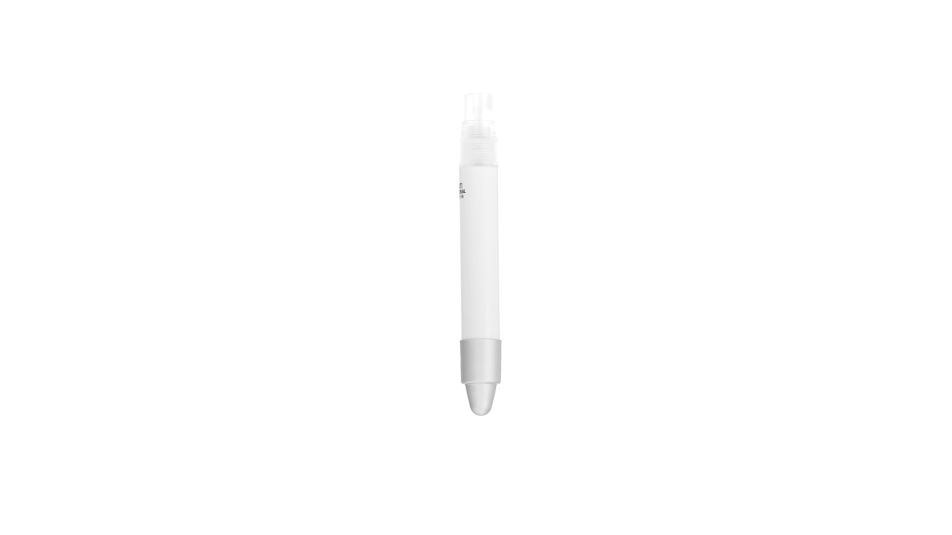Antibakterieller Kugelschreiber mit integriertem nachfüllbarem Zerstäuber und Schutzkappe mit grauem Griffel. Glatte Oberfläche aus robustem, glänzendem ABS mit verchromten Beschlägen und blauer Tintenschrift. Kapazität des Zerstäubers 3ml. Flüssigkeit nicht enthalten.Produkte mit antibakteriellen Behandlungen sind in der Lage, die auf den Materialoberflächen vorhandenen bakteriellen Belastungen drastisch zu reduzieren, dank der Einbindung statischer, permanenter mikrobieller Wirkstoffe, mit hoher Wirksamkeit zur Hemmung und Verhinderung bakterieller Kontamination.Artikel nach der Norm ISO 22196, der die antibakterielle Aktivität in Kunststoffmaterialien und nicht porösen Oberflächen bestimmt, was es ermöglicht, die Wirksamkeit der mikrobiellen Hemmung, die die Additive auf den behandelten Objekten haben, durch eine quantitative Bewertung zu kennen.