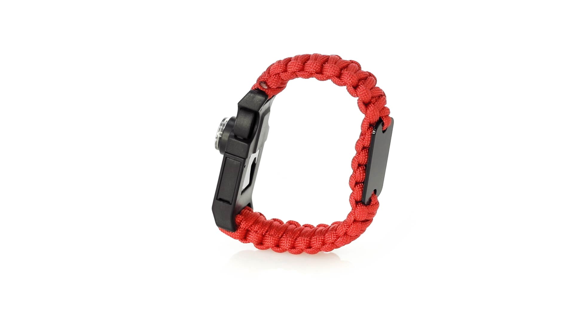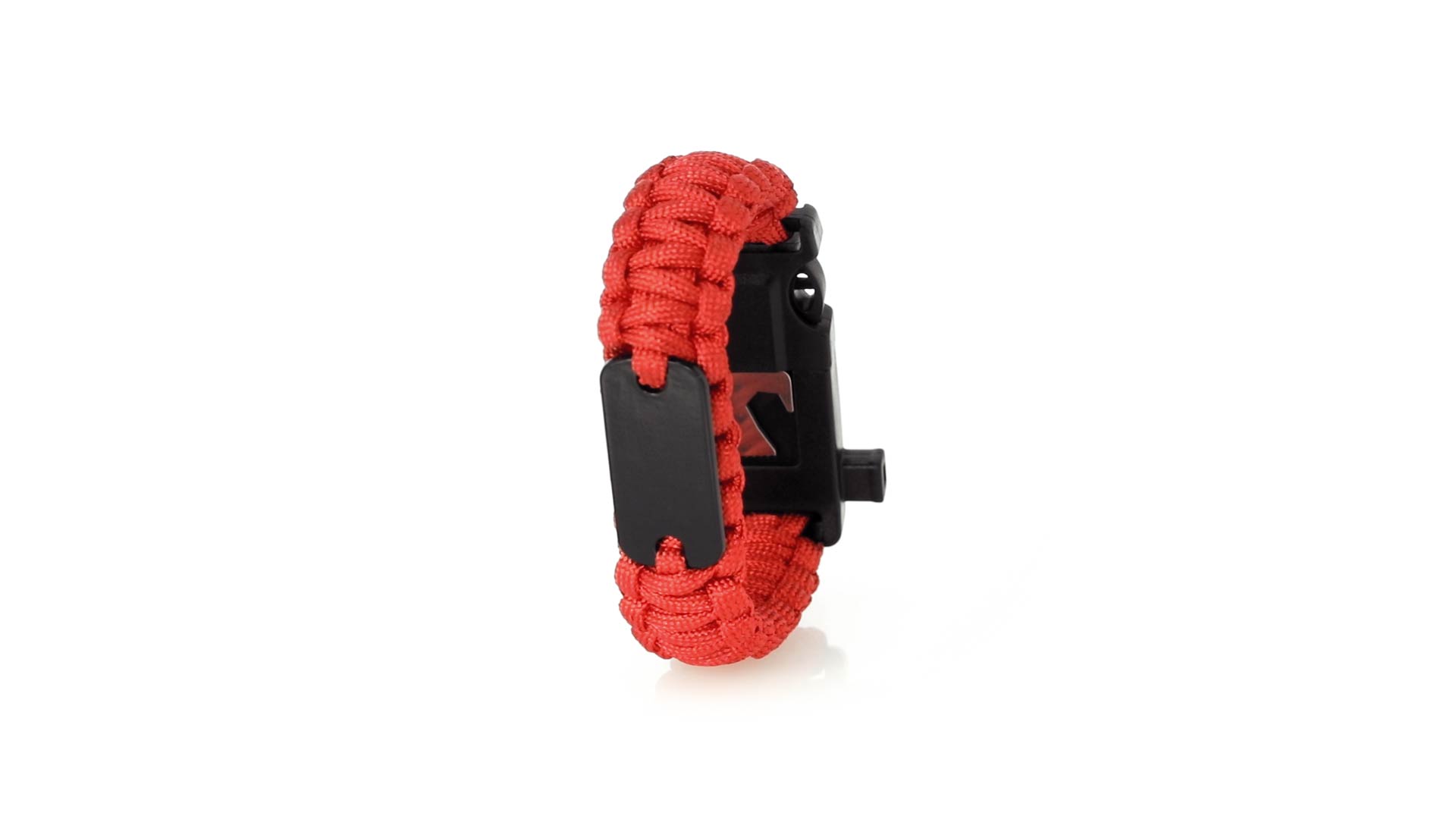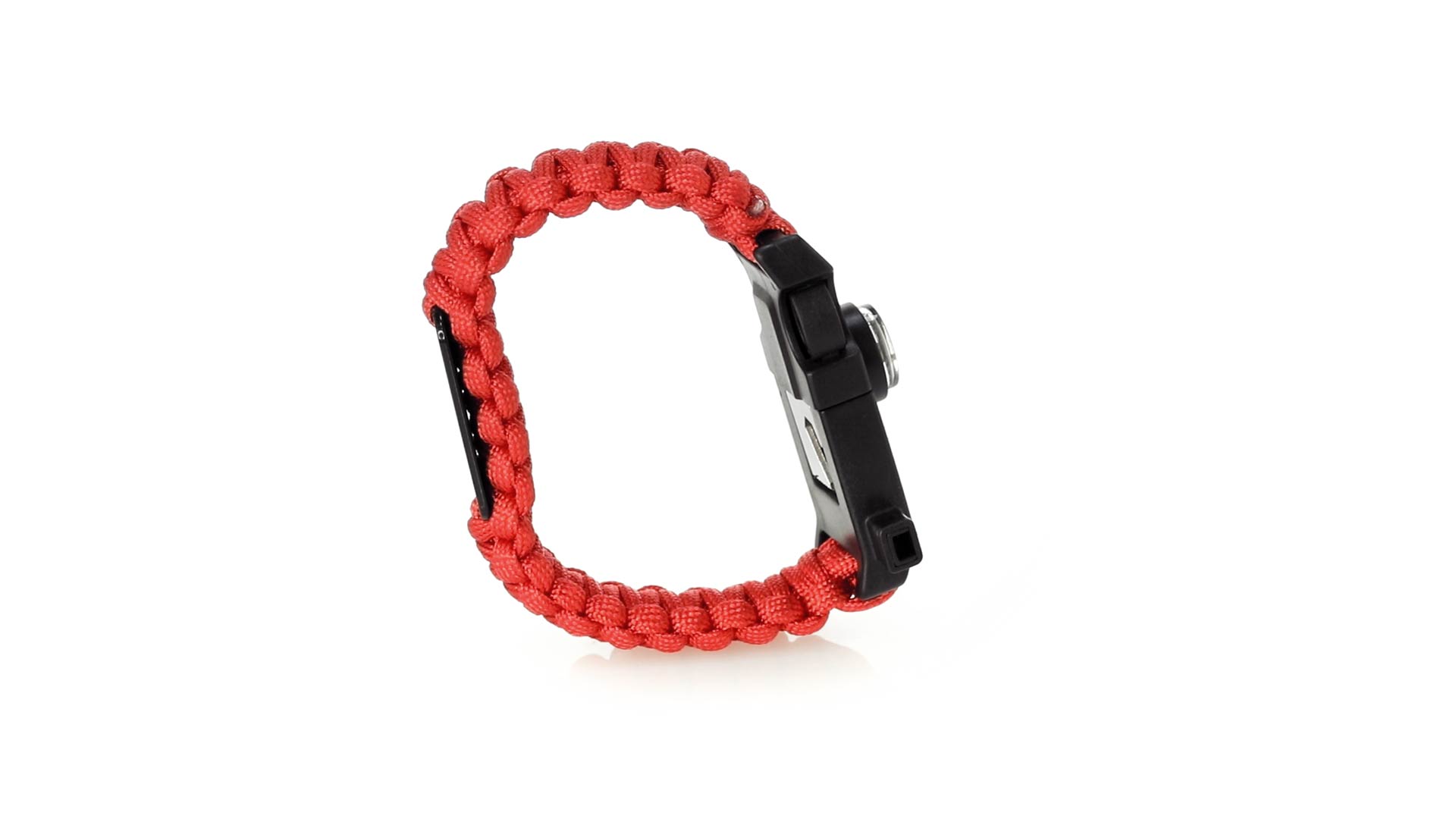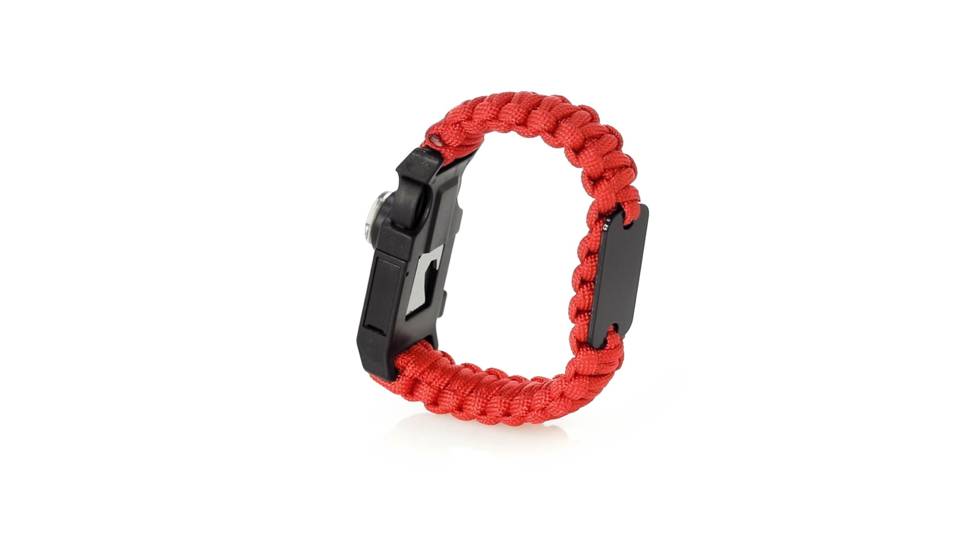 Multifunktionsarmband für Abenteuerlustige. Aus widerstandsfähigem Nylonmaterial, mit 5 Funktionen: Armband, Kompass, Pfeife, Feuersteinschaber und Öffner. Erhältlich in einer breiten Palette von Farben, mit Sicherheitsschnalle.