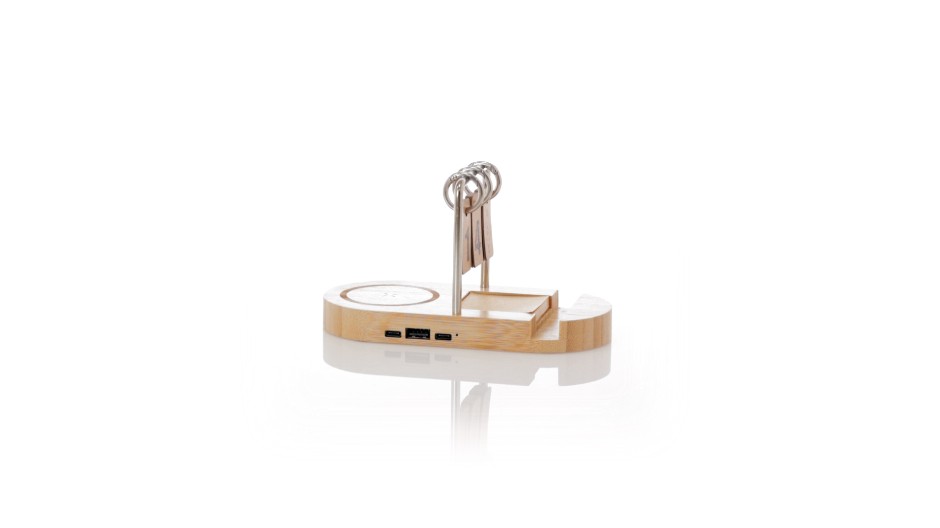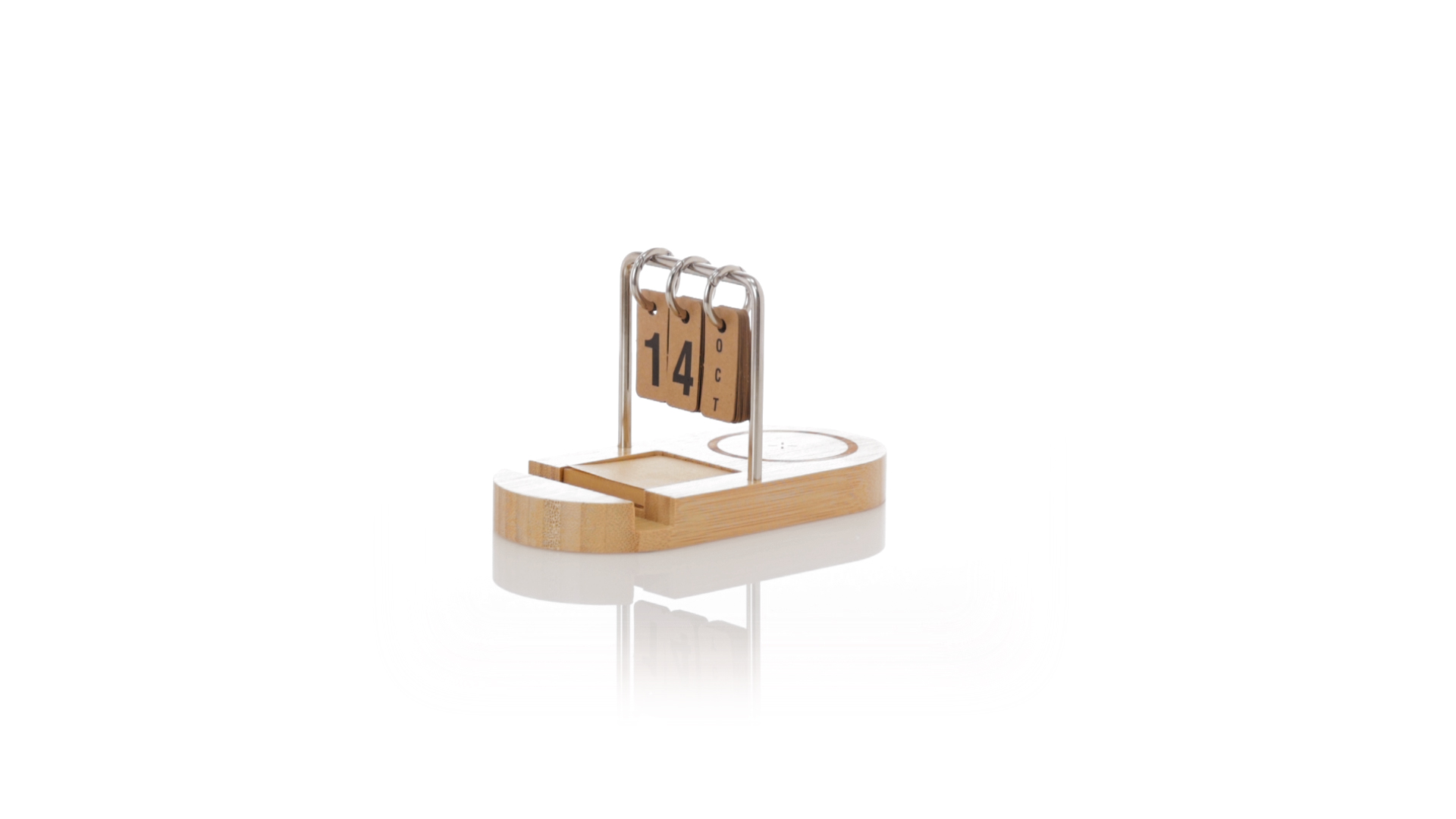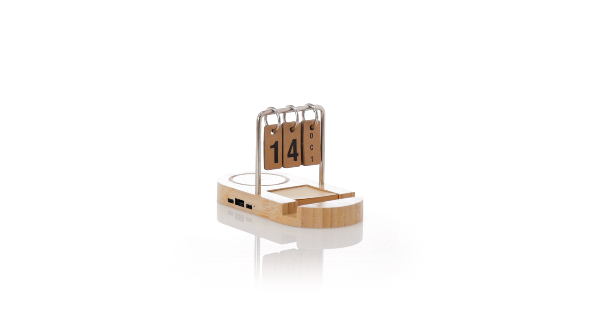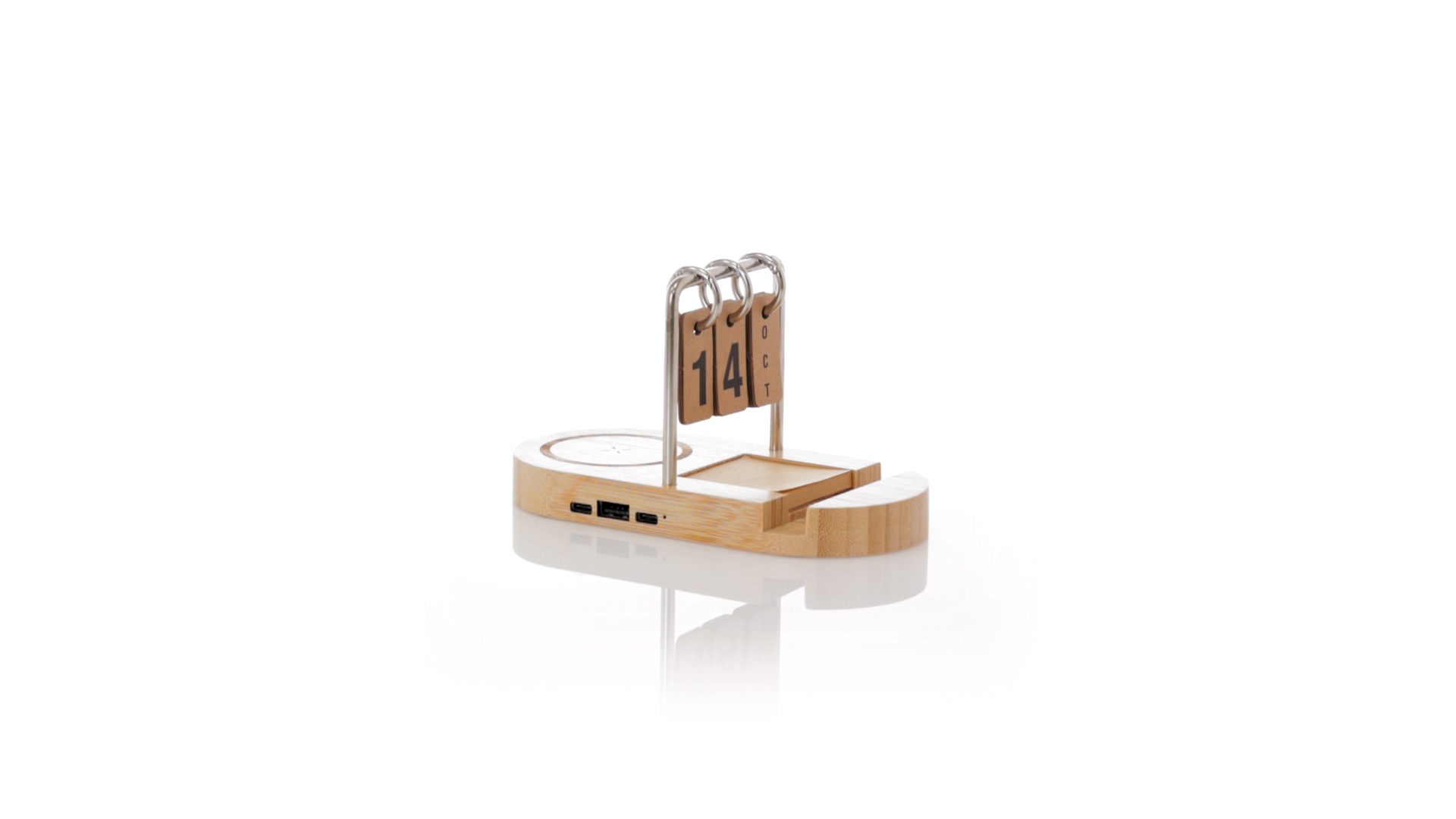 Multifunktionales kabelloses Ladegerät 15W aus Bambus. Inklusive Smartphone-Halter und ewigem Kalender sowie einem 4,5x4,5 cm Pad mit 50 Haftnotizen in Kraft-Finish. USB-Ausgang und Typ-C-Eingang und -Ausgang ermöglichen das gleichzeitige Laden von bis zu 3 Geräten (1 über kabelloses Laden, 1 über Typ-C-Kabel und 1 über USB-Kabel). Kompatibel mit Geräten mit kabelloser Ladetechnologie. Grosse Branding-Oberfläche und in einer individuellen Kraft-Box präsentiert.Materialien wie Bambus fördern die Verwendung natürlicher Rohstoffe und reduzieren die Schadstoffemissionen. Es stammt von einer sehr widerstandsfähigen und vielseitigen Pflanze mit schnellem Wachstum und Regeneration, was es zu einer ausgezeichneten Alternative zu traditionellem Holz macht.Hergestellt nach RoHS-Standards und in Übereinstimmung mit den folgenden Sicherheitsanforderungen:Überhitzungsschutzsystem.Überladungsschutzsystem.Blockiersystem zur Vermeidung von Kurzschlüssen.