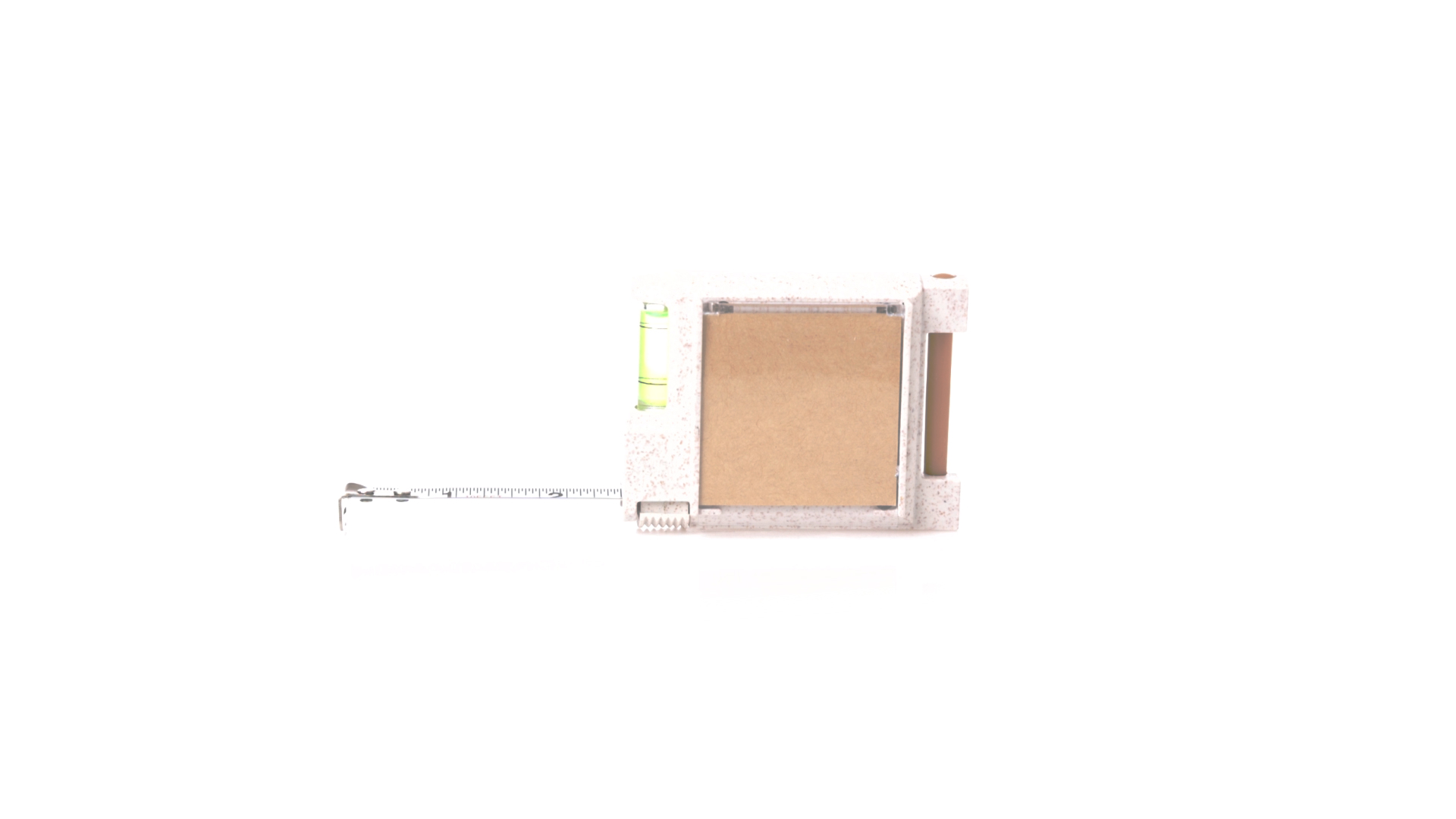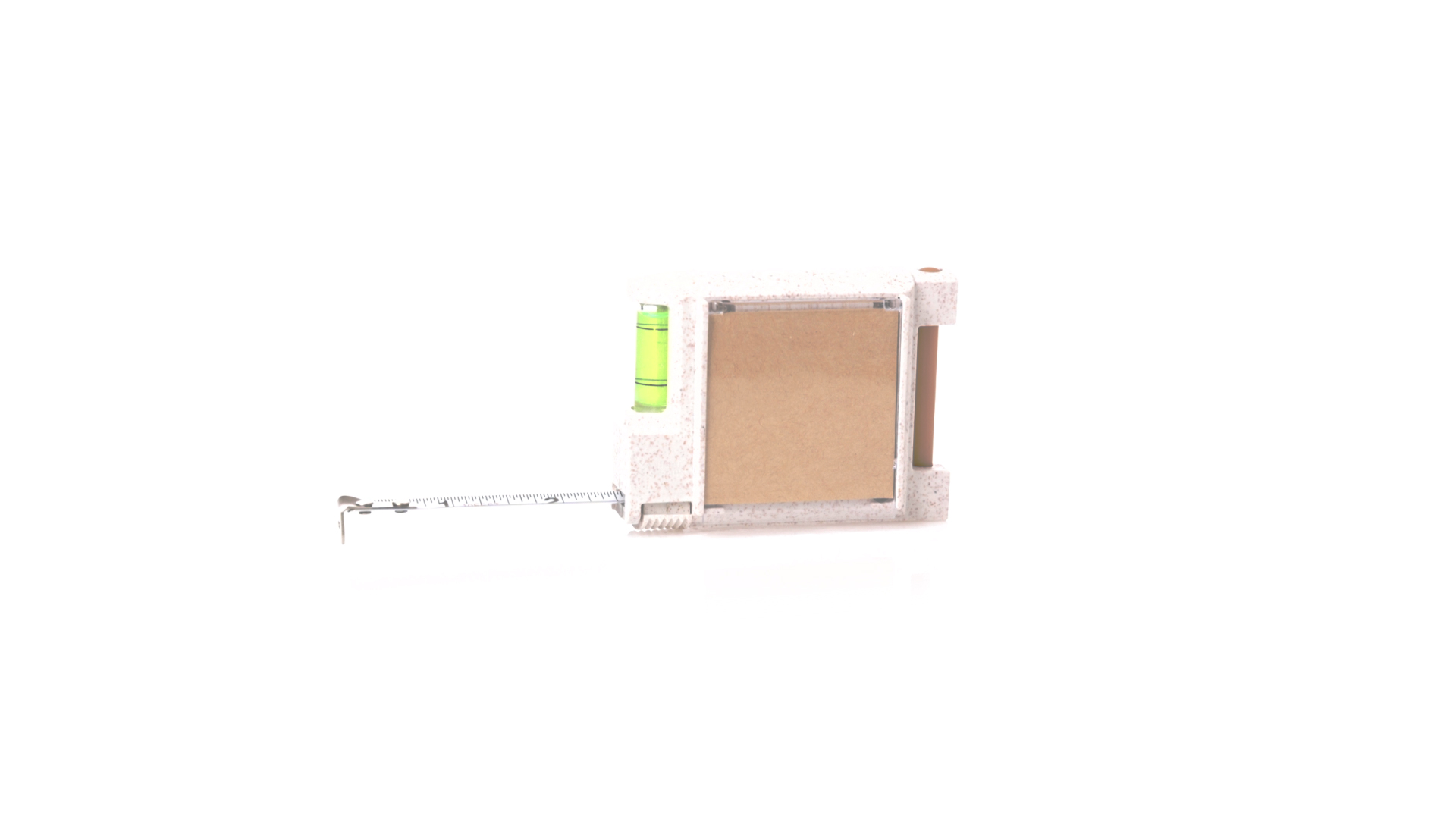 3-Meter-Multifunktions-Flexometer aus der Natur Linie, mit Gehäuse aus Weizenstroh. Mit integrierter Wasserwaage, Kugelschreiberhalter (inklusive Kugelschreiber) und Notizblock mit 12 Haftnotizen in Naturfarbe. Mit Schloss, Gürtelclip aus Metall und Skala mit Zentimeter- und Zollangaben. Präsentiert in einer individuellen Schachtel mit Kraftdesign.Weizenstroh fördert die Verwendung natürlicher Rohstoffe und reduziert die Schadstoffemissionen.