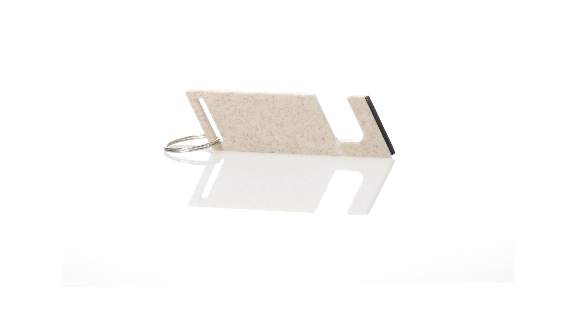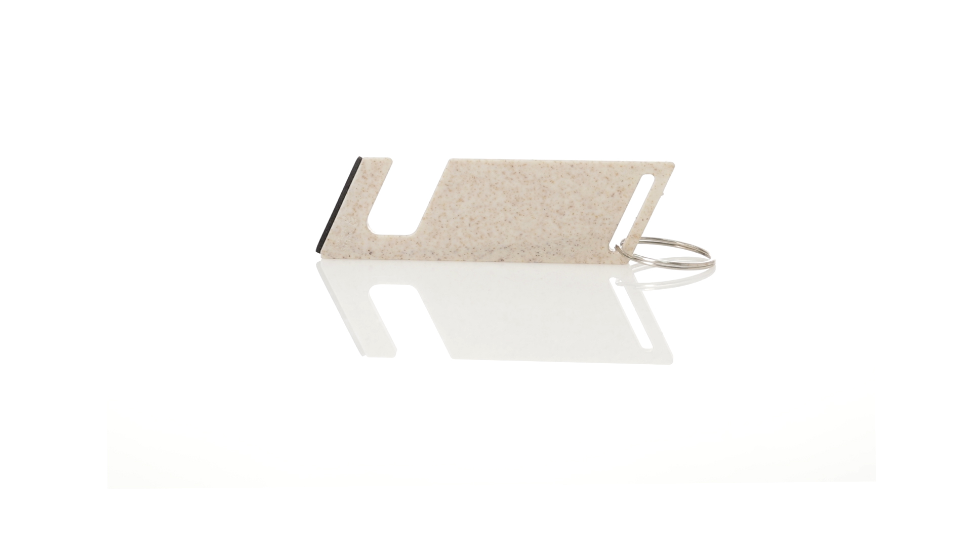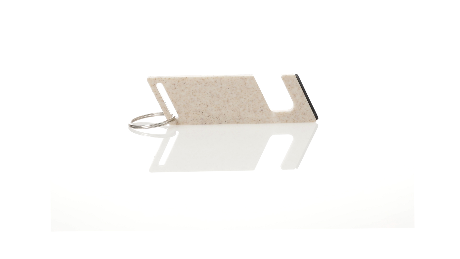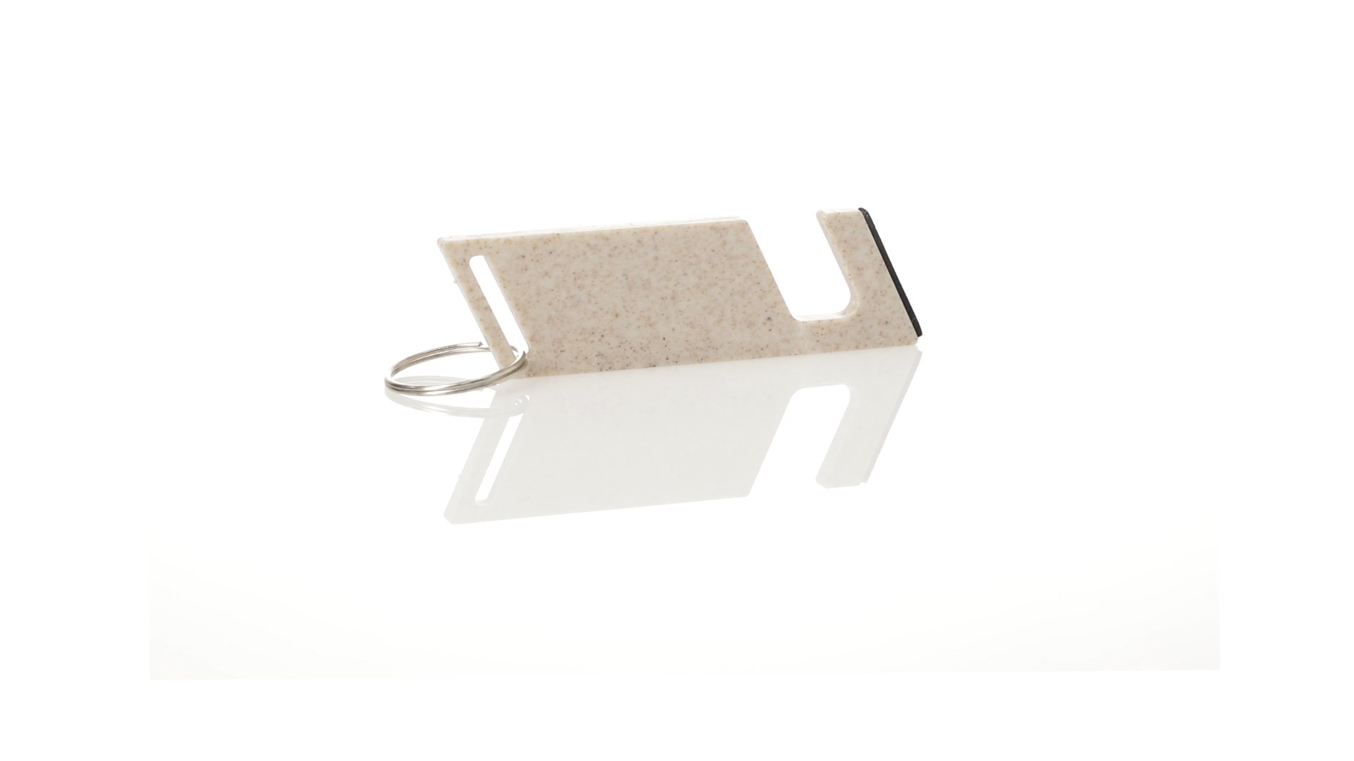 Multifunktionaler Schlüsselanhänger der Linie Natur aus Weizenstroh, der die Verwendung natürlicher Rohstoffe fördert und die Schadstoffemissionen reduziert. Mit integrierter Smartphone-Halterung und Bildschirmreinigungszubehör im Lieferumfang enthalten. Mit unverwechselbarem Weizenstroh.