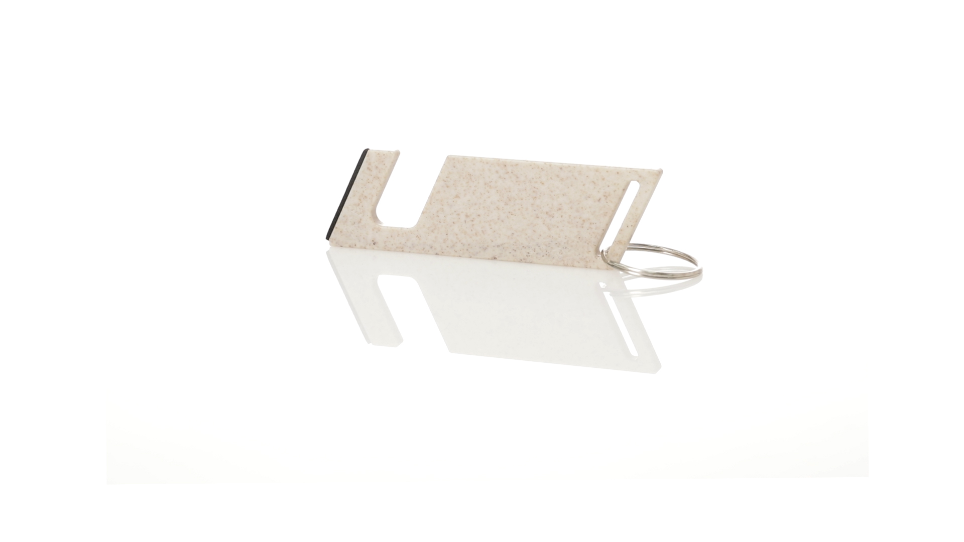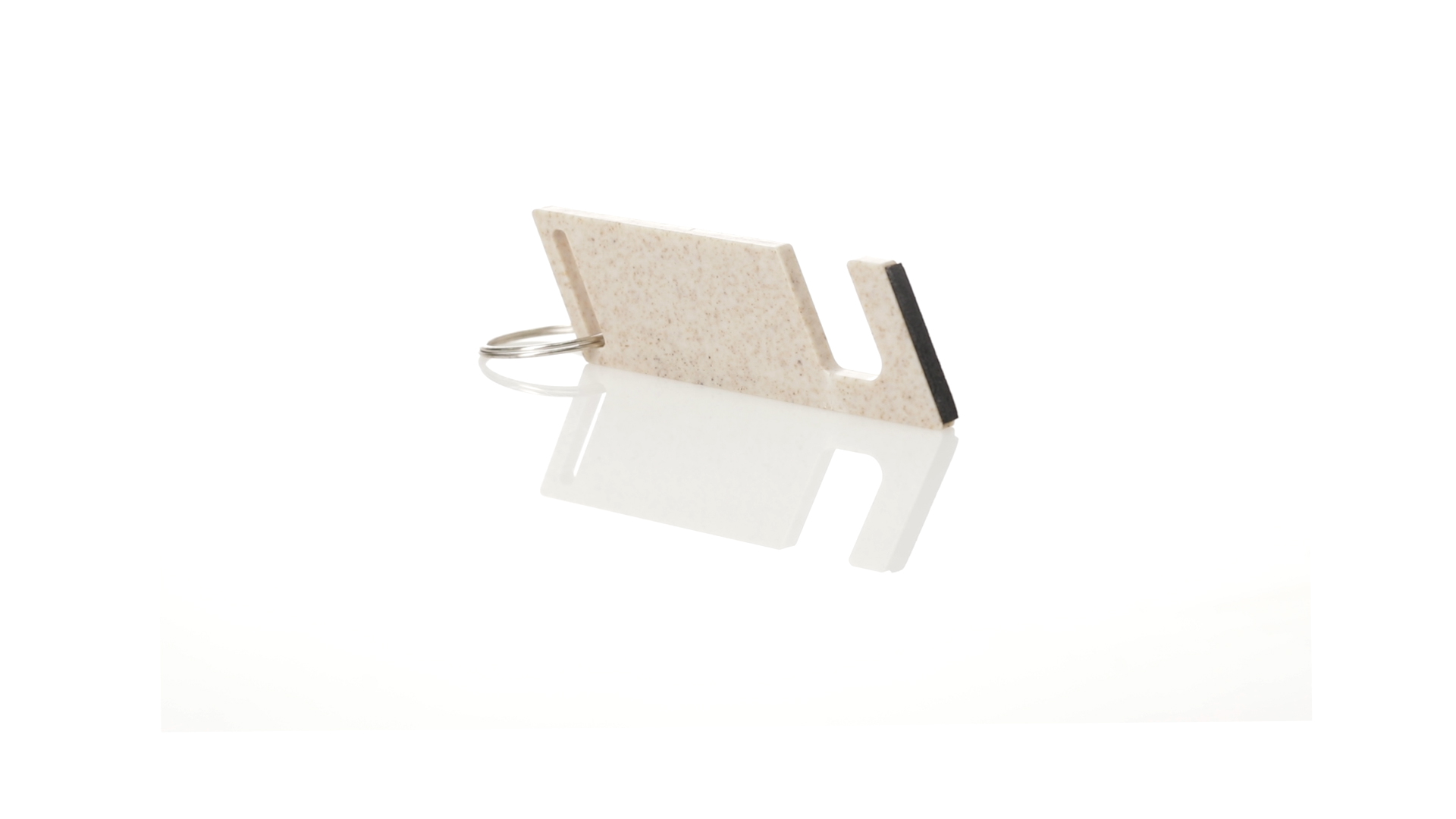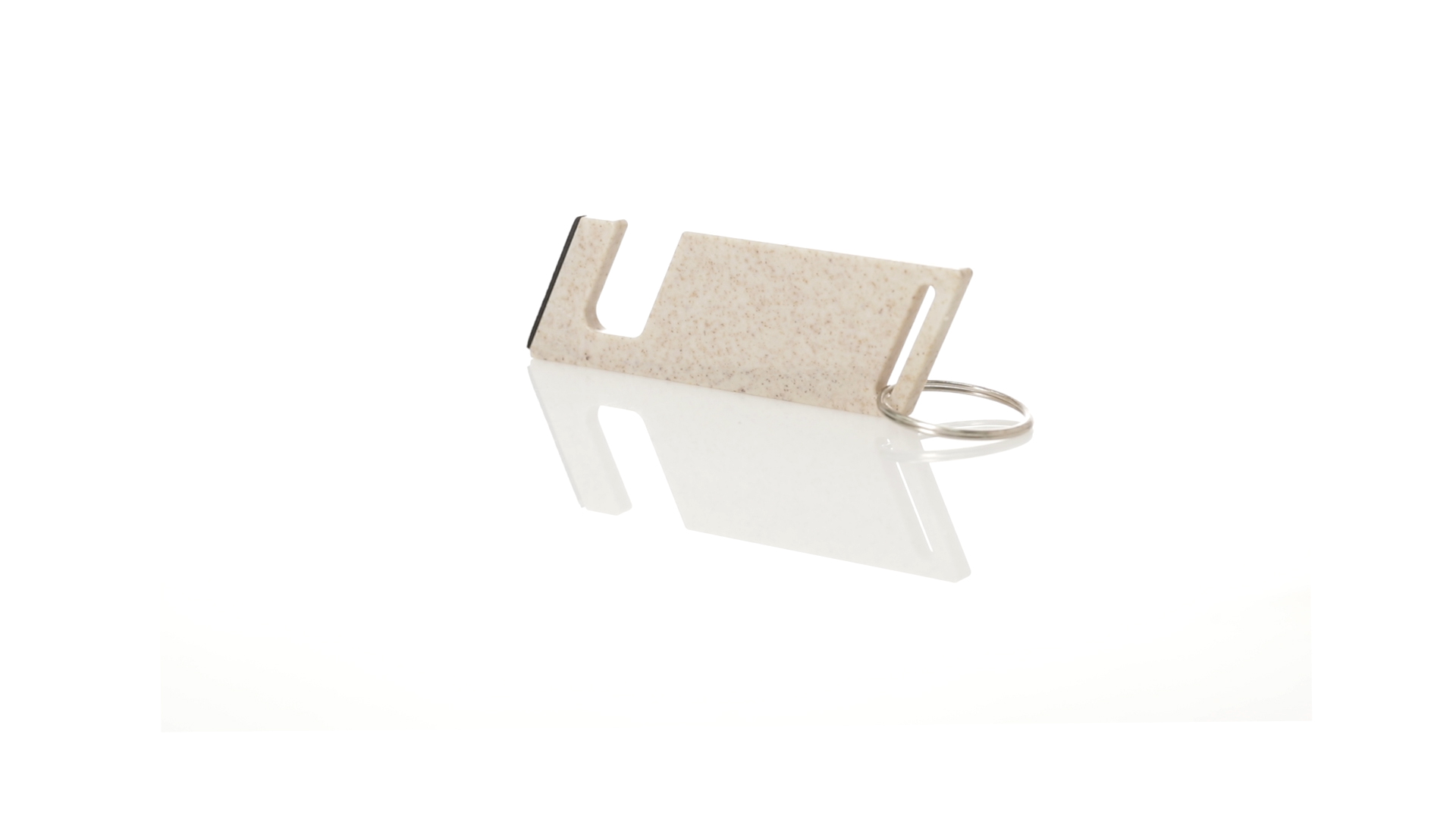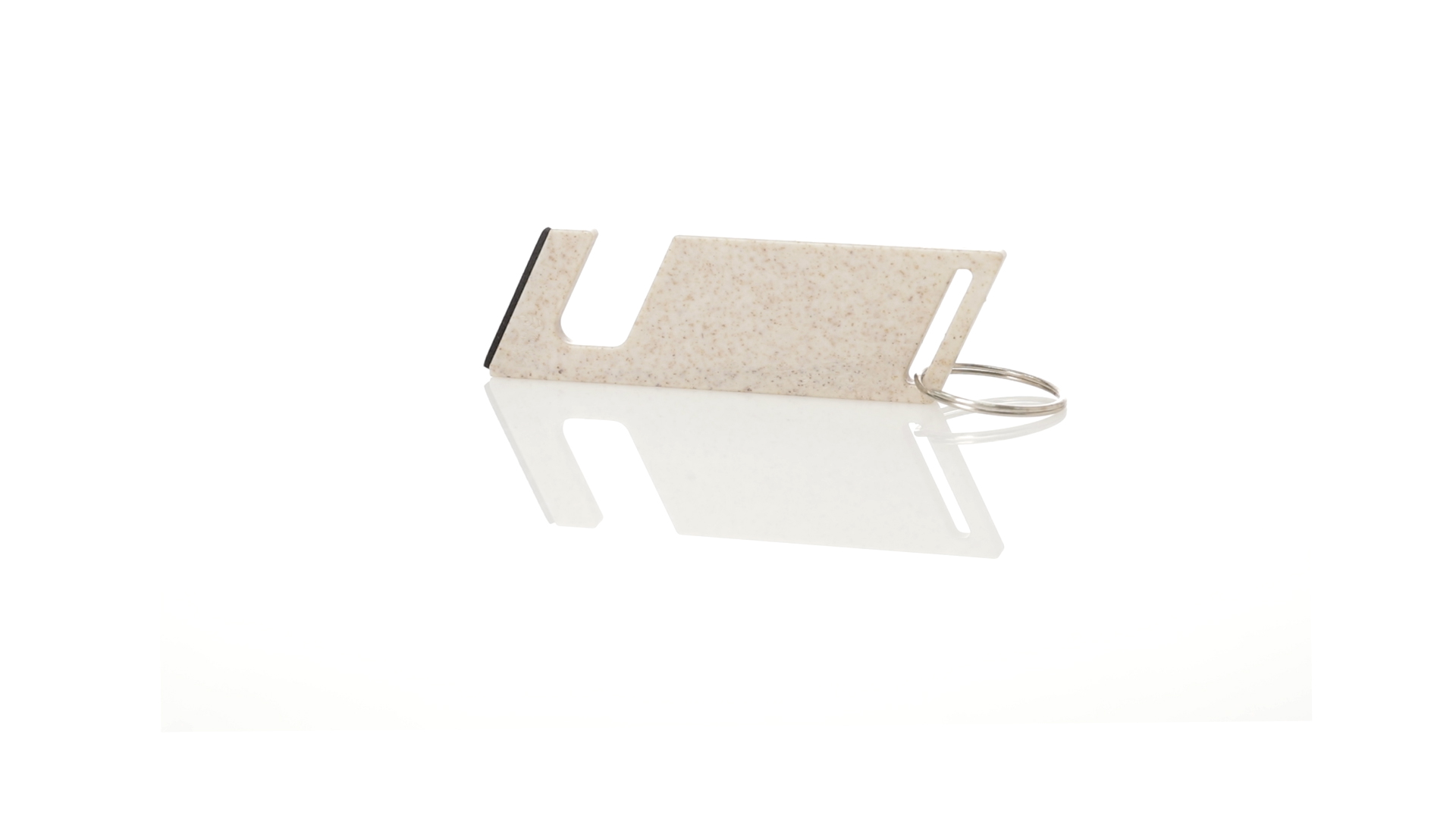 Multifunktionaler Schlüsselanhänger der Linie Natur aus Weizenstroh, der die Verwendung natürlicher Rohstoffe fördert und die Schadstoffemissionen reduziert. Mit integrierter Smartphone-Halterung und Bildschirmreinigungszubehör im Lieferumfang enthalten. Mit unverwechselbarem Weizenstroh.