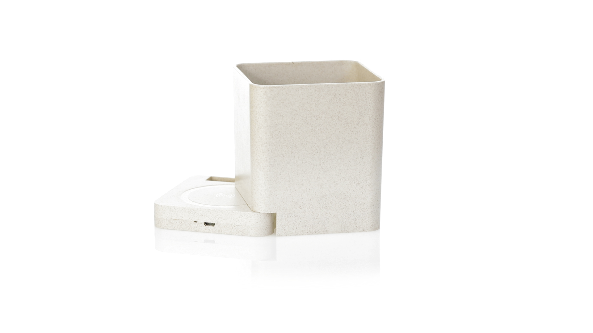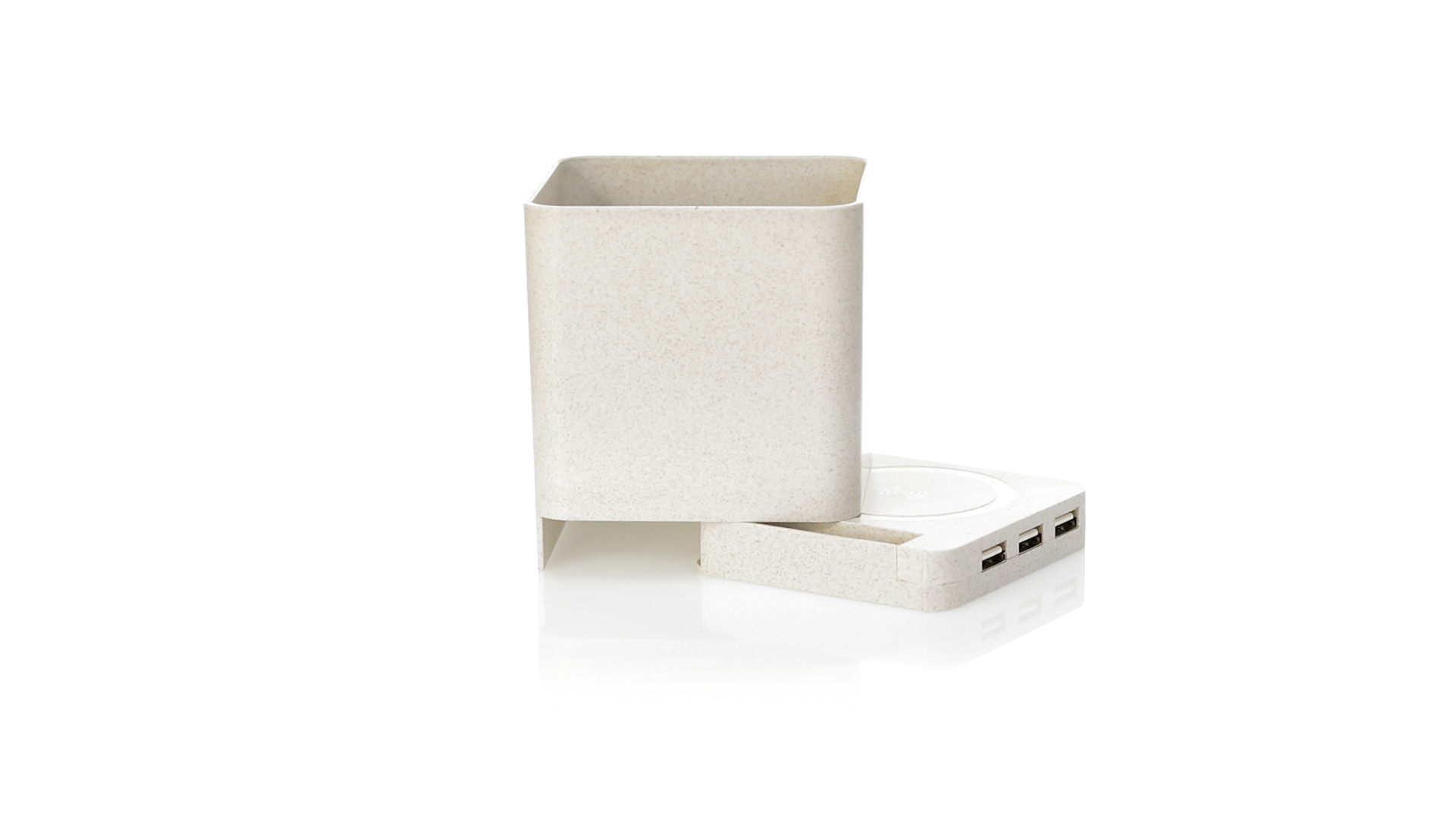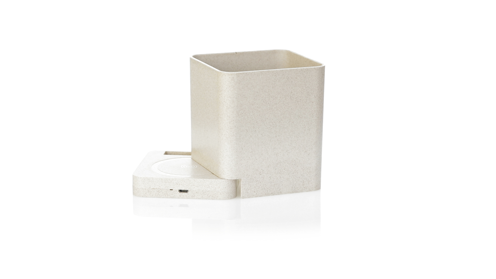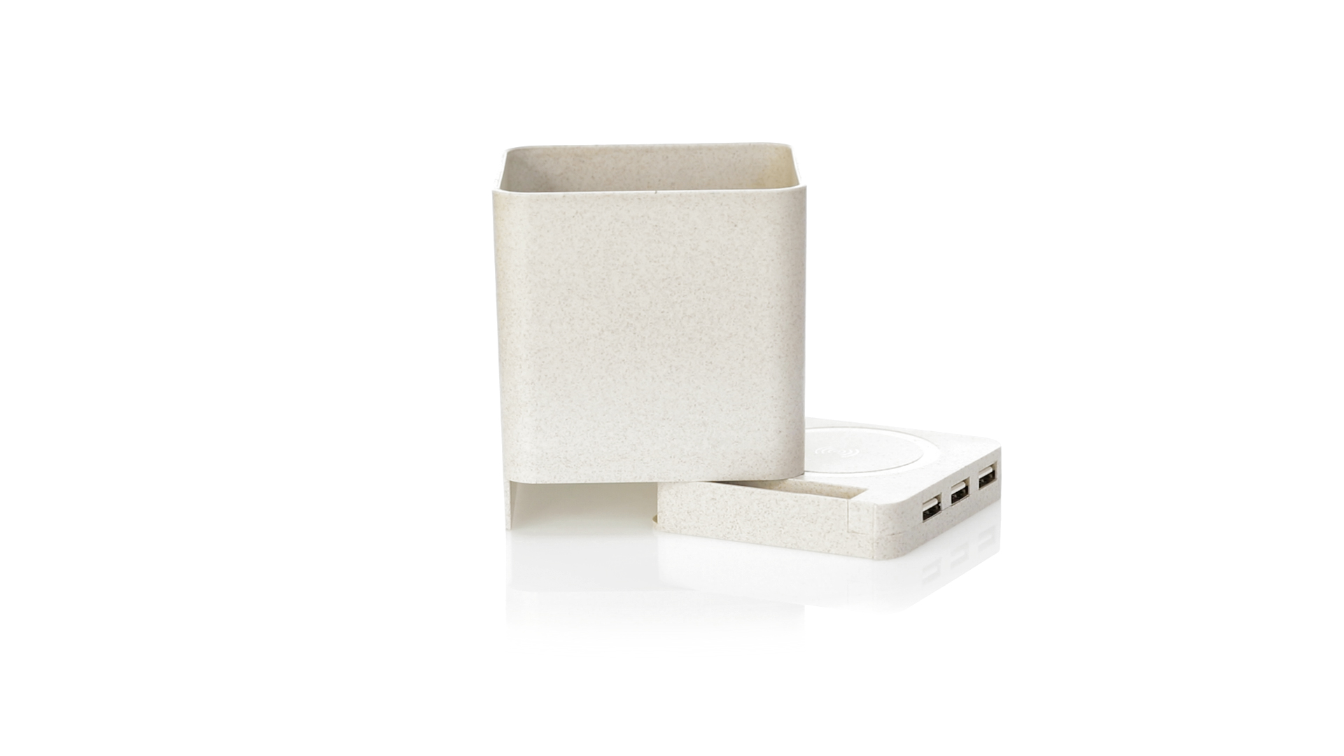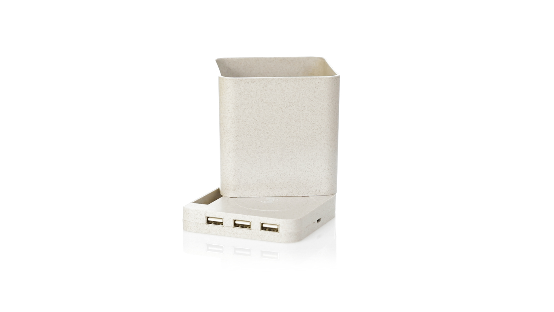 4 in 1 Multifunktionsstifthalter aus unserer Naturlinie. Hergestellt aus Weizenstroh, um die Verwendung natürlicher Rohstoffe zu fördern und Schadstoffemissionen zu reduzieren.Mit Stifthalter, Smartphone-Halter, drahtlosem Ladegerät und USB-Port (3xUSB 2.0) Funktionen. Kompatibel mit Smartphones, die mit drahtloser Ladetechnologie ausgestattet sind. Inklusive 1 Meter langem, weissem Mikro-USB-Kabel. Präsentiert in einer attraktiven Ökodesign-Box. Bedienungsanleitung in Spanisch und Englisch erhältlich.