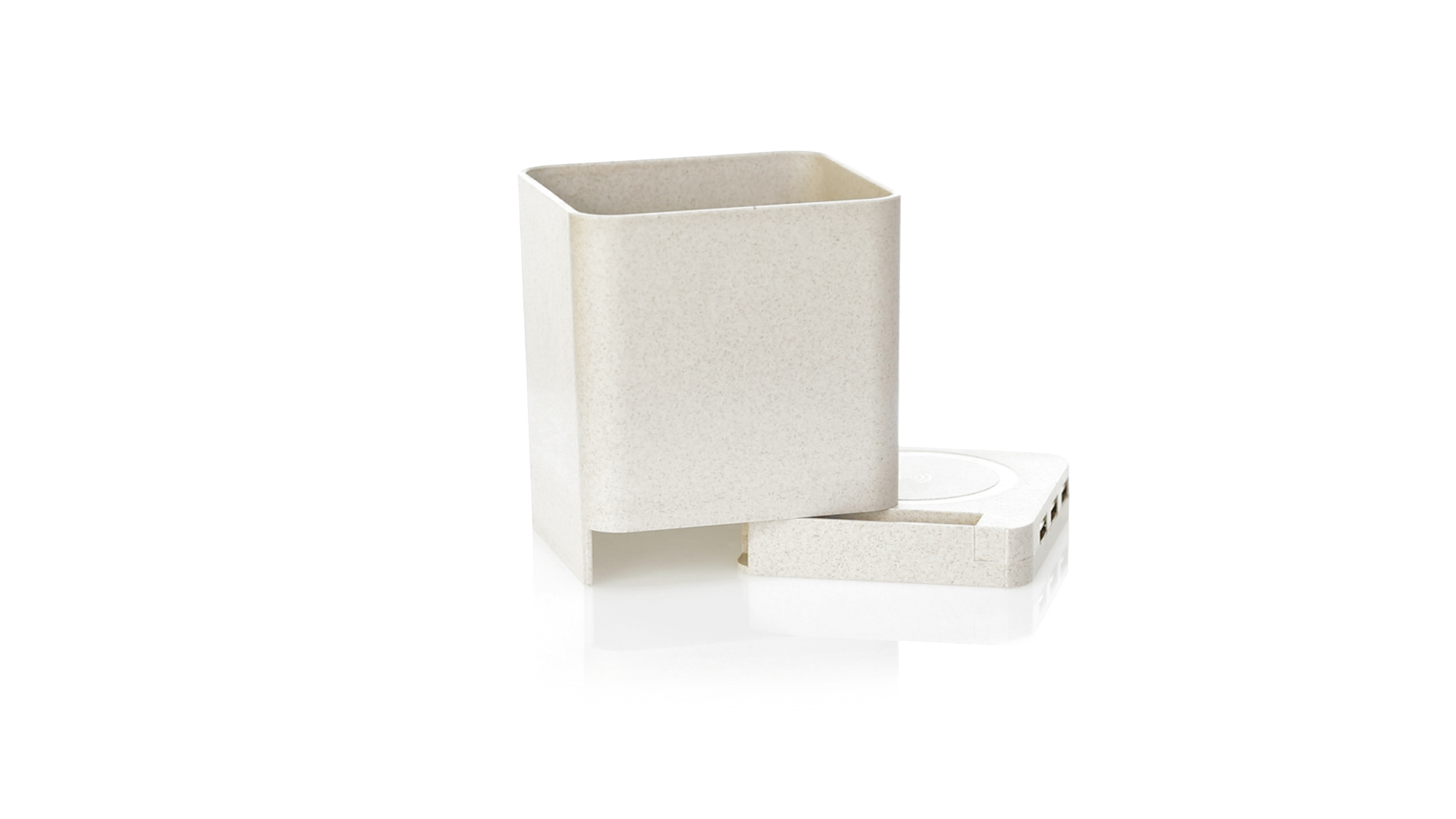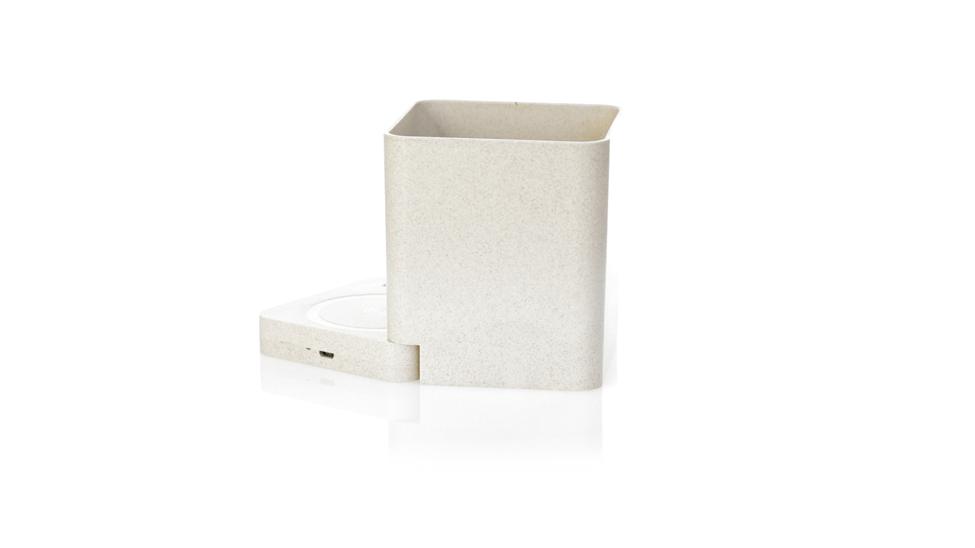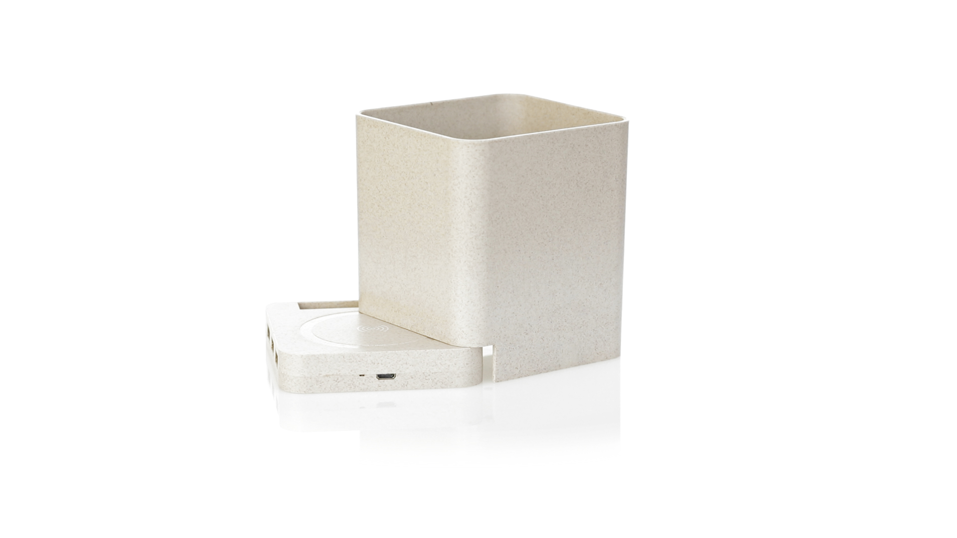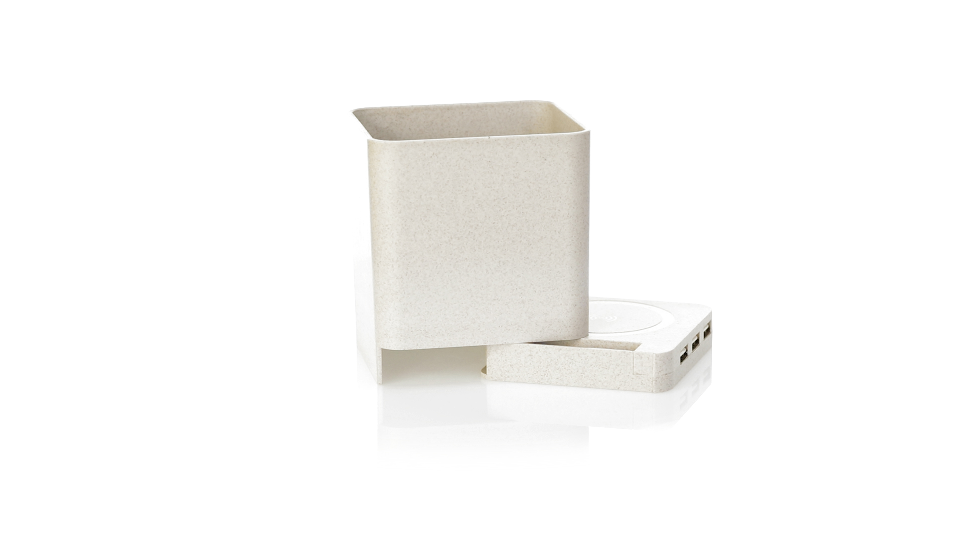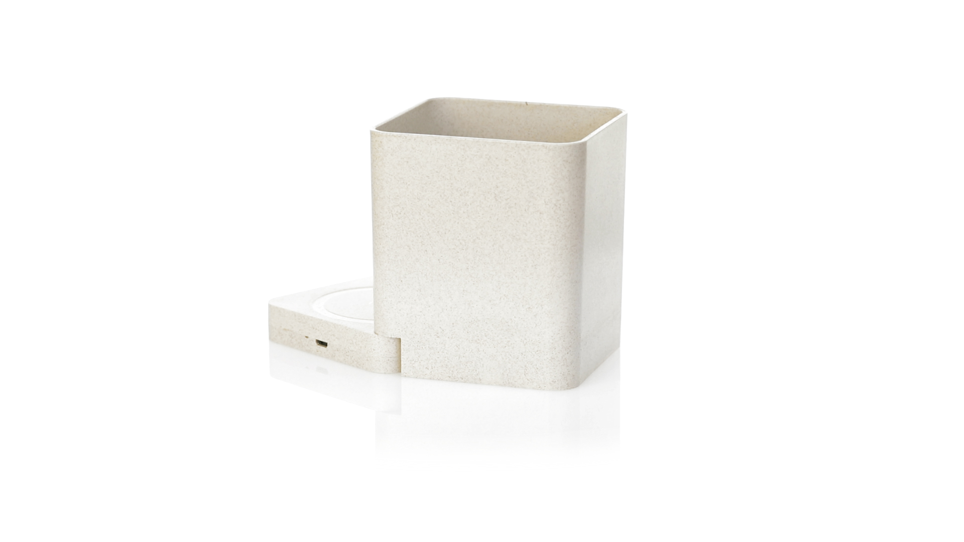4 in 1 Multifunktionsstifthalter aus unserer Naturlinie. Hergestellt aus Weizenstroh, um die Verwendung natürlicher Rohstoffe zu fördern und Schadstoffemissionen zu reduzieren.Mit Stifthalter, Smartphone-Halter, drahtlosem Ladegerät und USB-Port (3xUSB 2.0) Funktionen. Kompatibel mit Smartphones, die mit drahtloser Ladetechnologie ausgestattet sind. Inklusive 1 Meter langem, weissem Mikro-USB-Kabel. Präsentiert in einer attraktiven Ökodesign-Box. Bedienungsanleitung in Spanisch und Englisch erhältlich.
