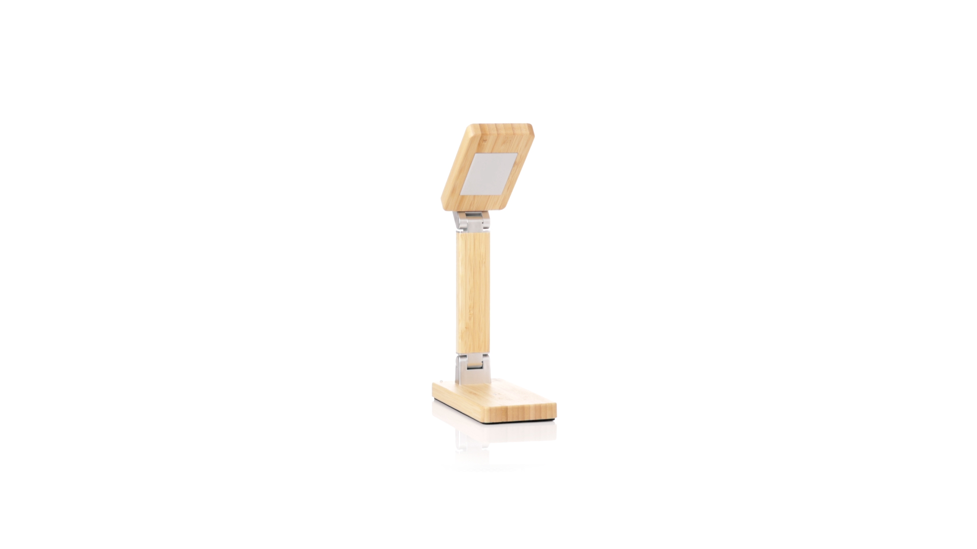 Multifunktionsuhr mit hintergrundbeleuchtetem Touchscreen und integriertem 15-W-Wireless-Ladegerät, mit USB-Ausgang (5 V DC 2 A). Zusammenklappbar und aus Bambus gefertigt, mit Datums-/Uhrzeit- und Alarmfunktionen. Lampe mit 16 LEDs und 3 Leuchtpositionen, mit einstellbarer Lichtintensität. Ladekabel vom Typ C im Lieferumfang enthalten und kompatibel mit Geräten, die mit der kabellosen Qi-Ladetechnologie ausgestattet sind. Präsentiert in einer individuellen Kraftpapier-Designbox, mit Bedienungsanleitung in Englisch und Spanisch. Hergestellt nach RoHS-Standards und unter Einhaltung der folgenden Sicherheitsanforderungen: Überhitzungsschutzsystem. Überladeschutzsystem. Blockiersystem zur Vermeidung von Kurzschlüssen.