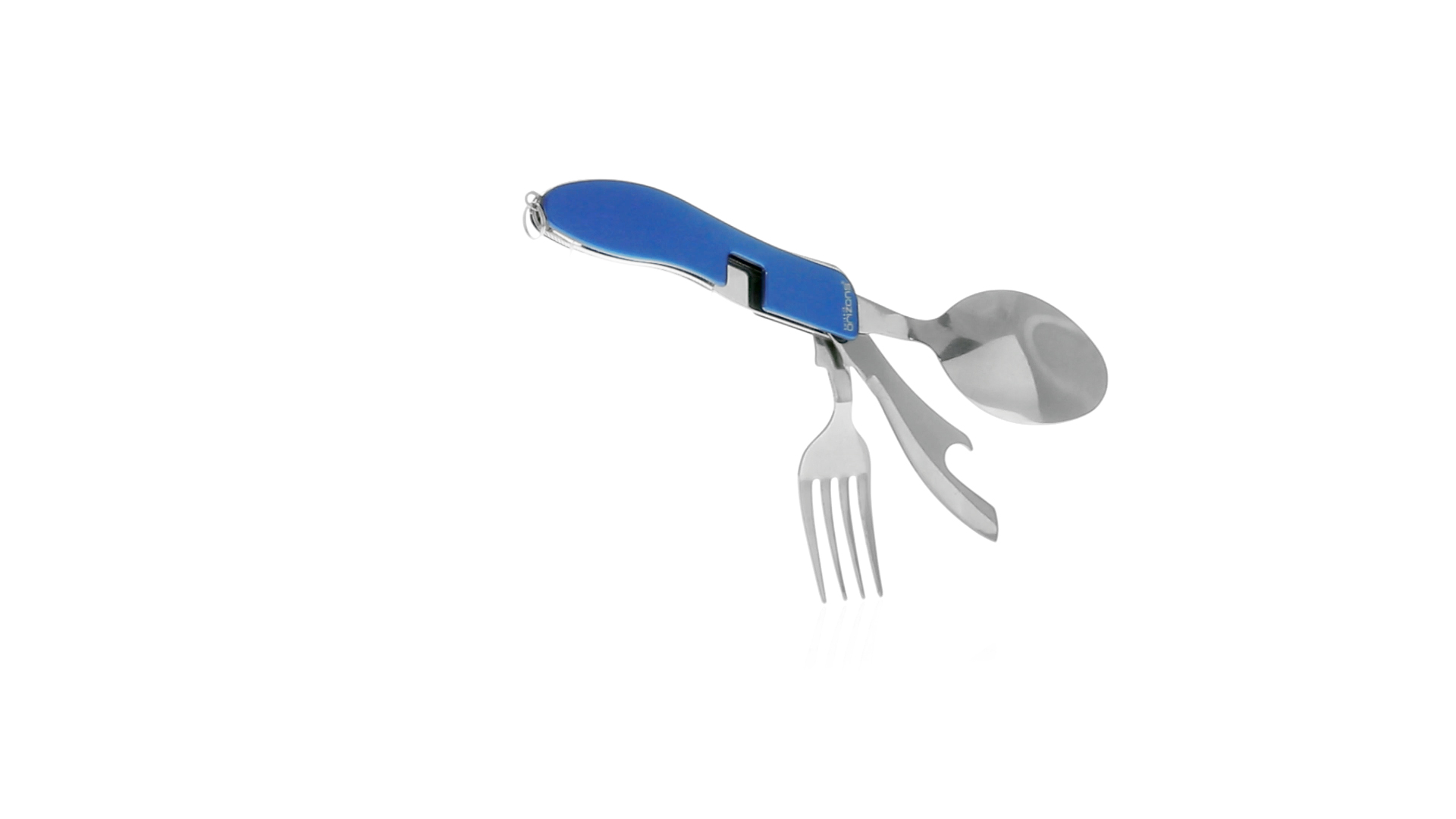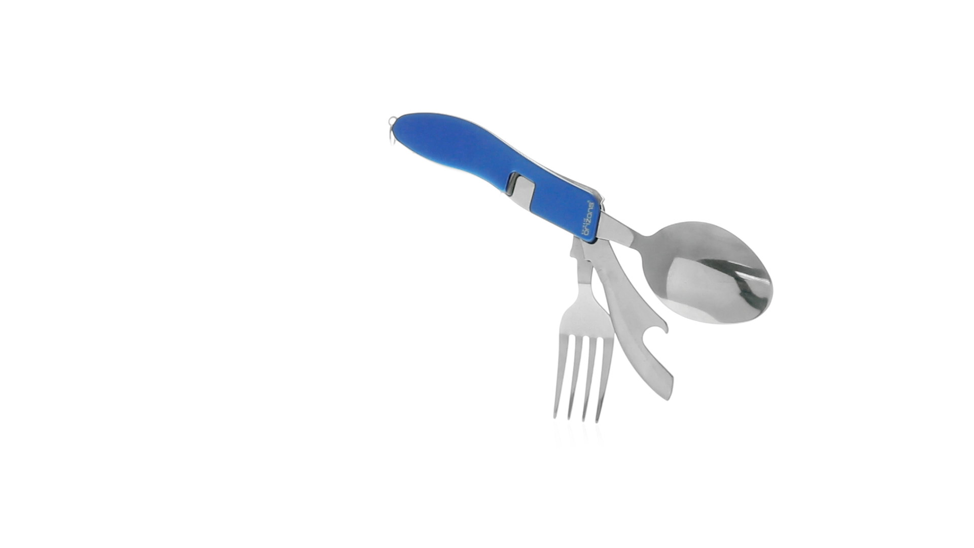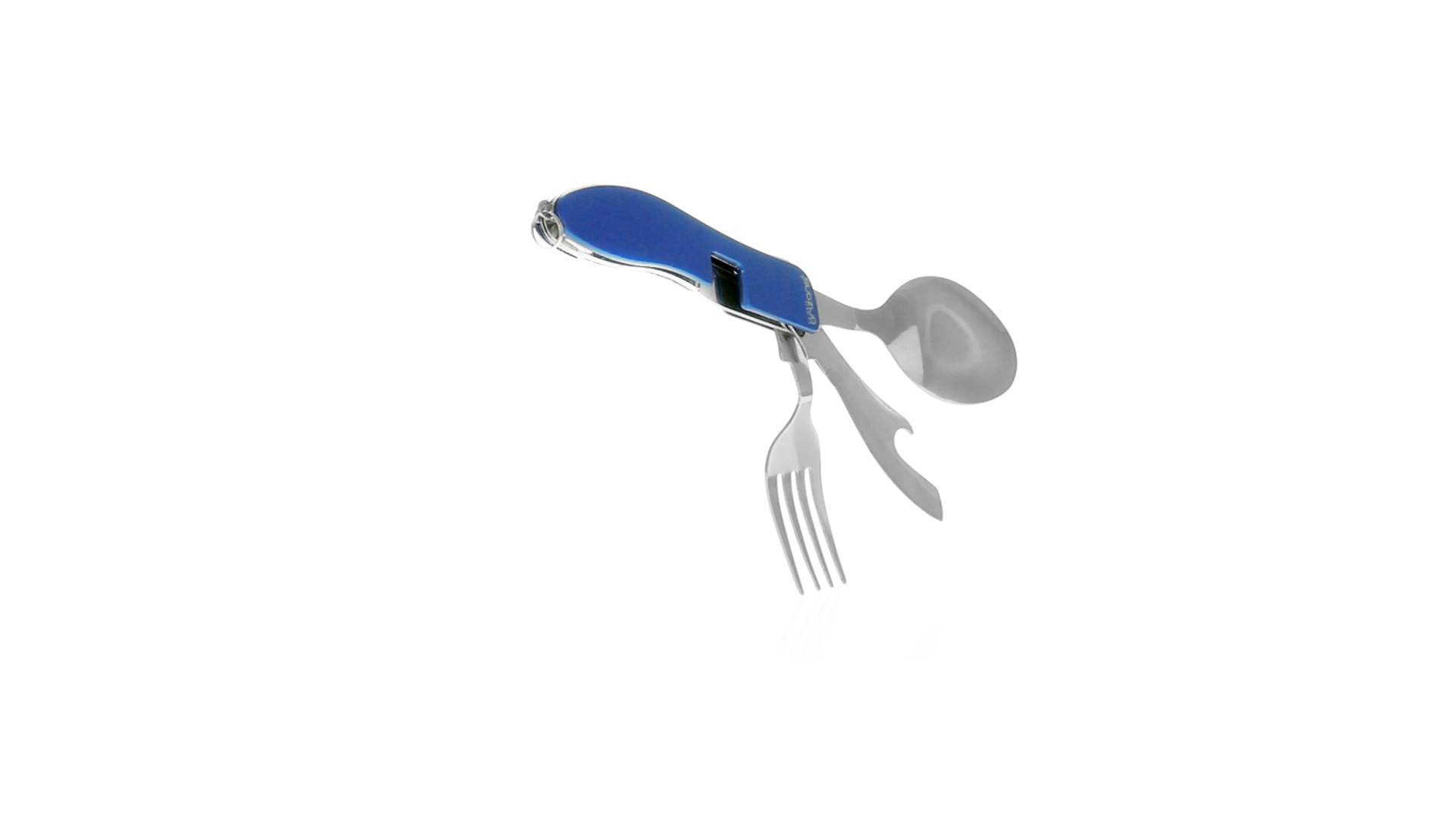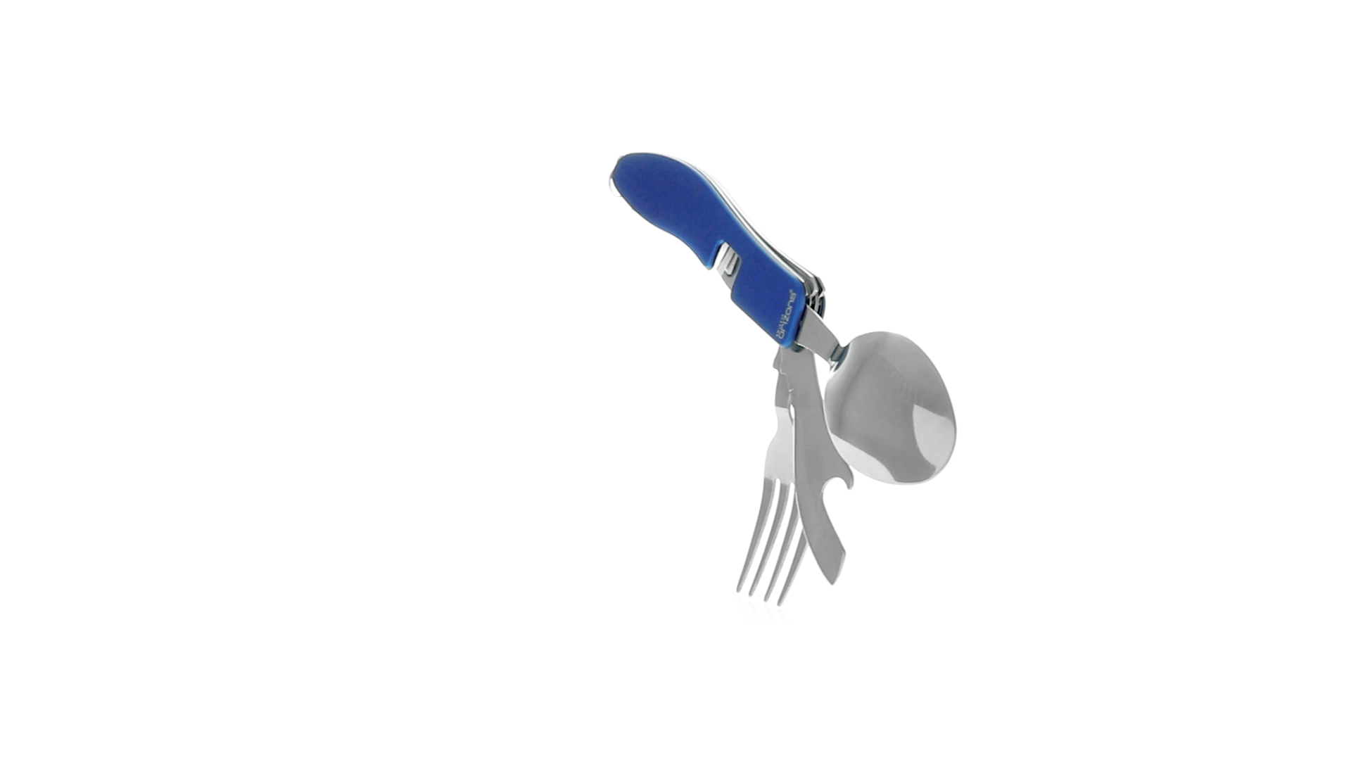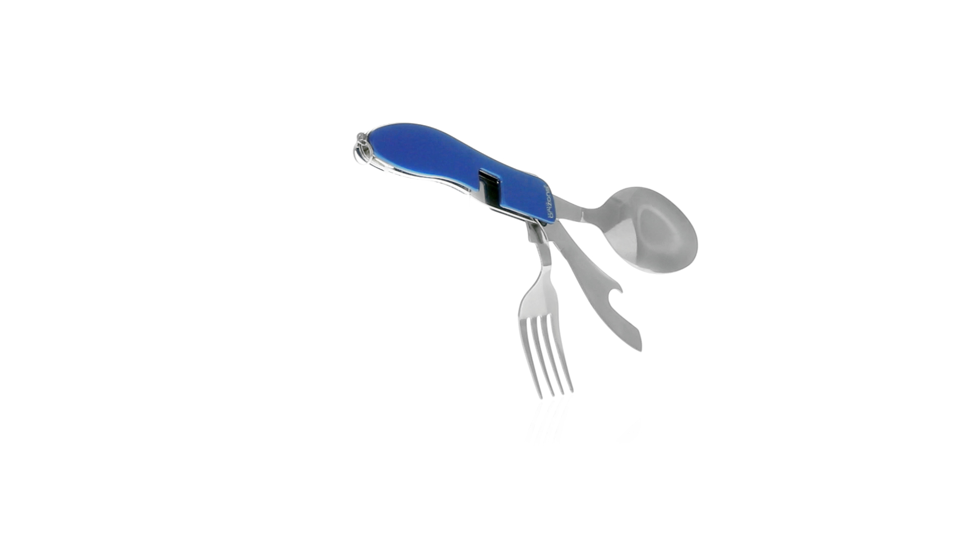 Multi-Tool von Orizons mit 5 Edelstahl-Funktionen und Aluminiumgriff in lebendigen Farben. Mit Löffel, Gabel, Messer mit Dosenöffner und Schlüsselring. Mit Hülle aus resistentem Polyester mit Klettverschluss und dem Markenlogo. Präsentiert in einer attraktiven Designbox mit dem Markenlogo.