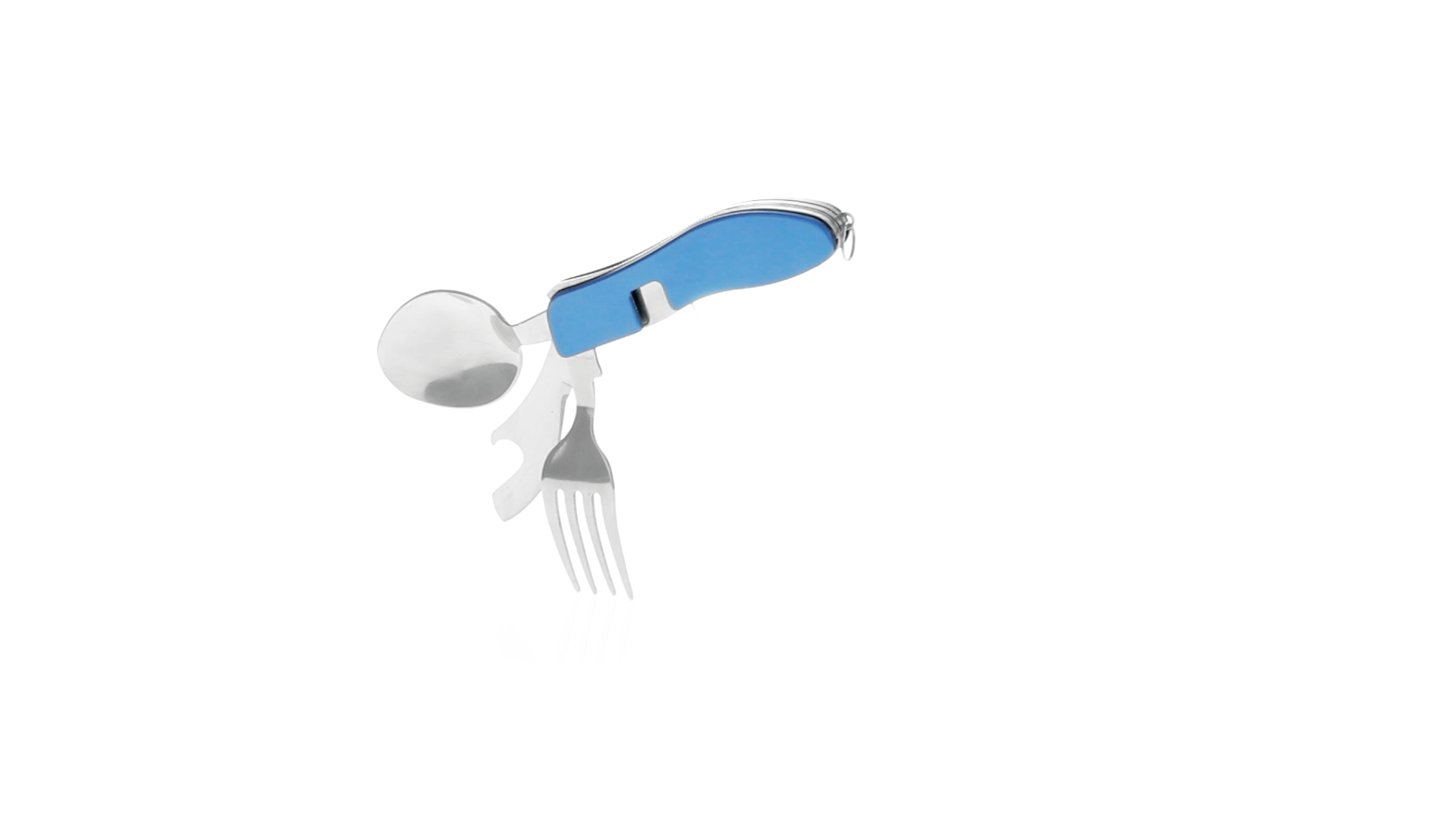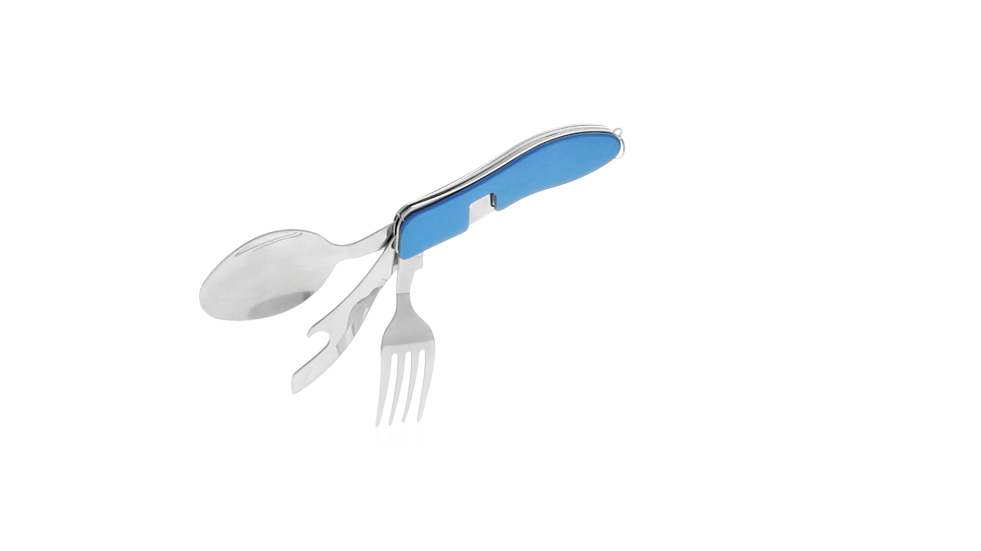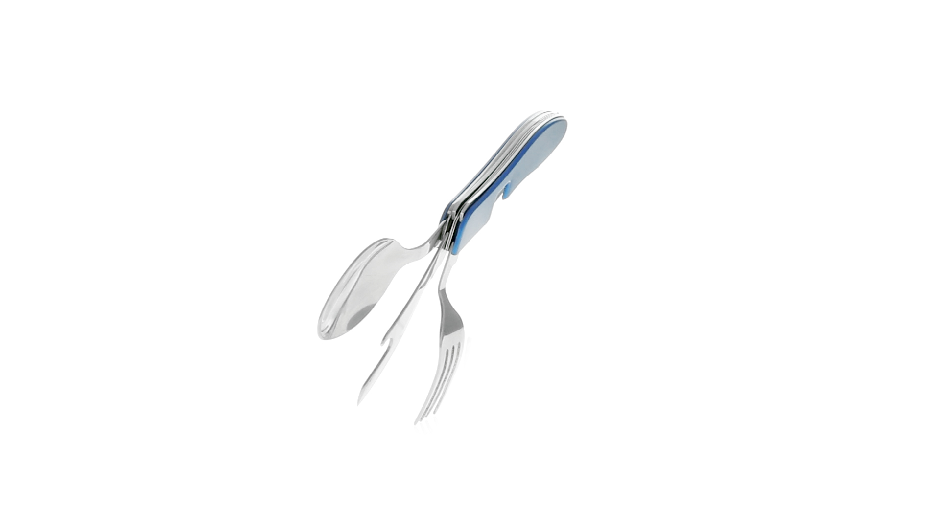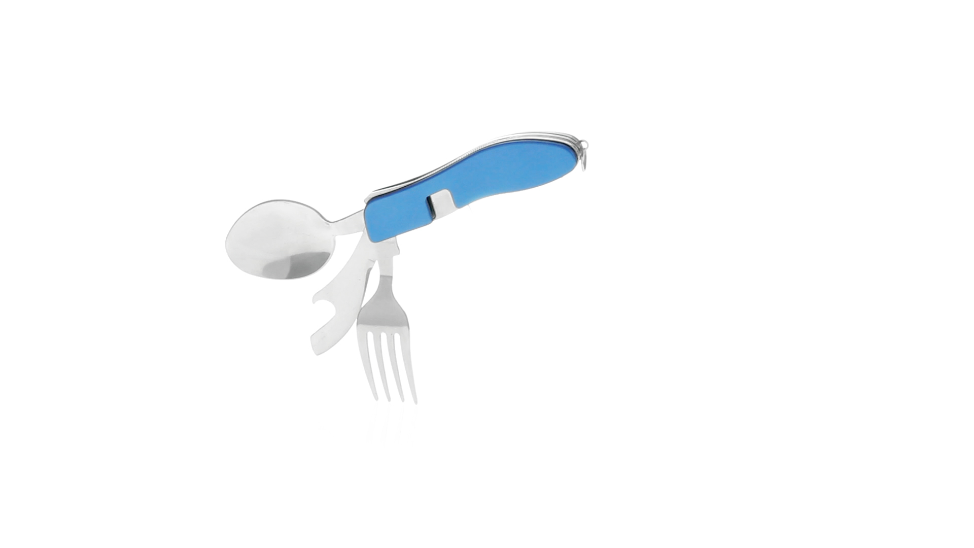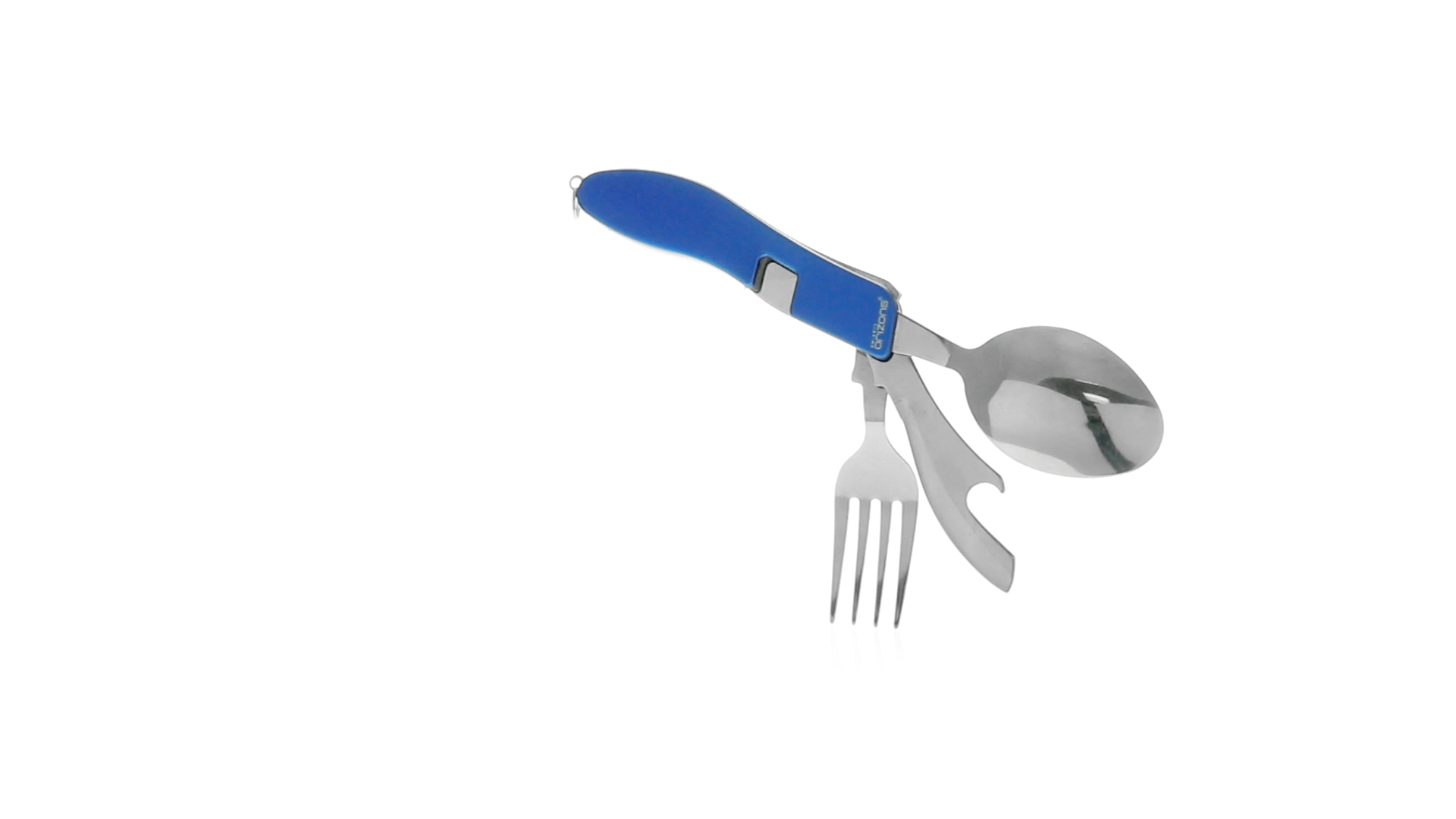 Multi-Tool von Orizons mit 5 Edelstahl-Funktionen und Aluminiumgriff in lebendigen Farben. Mit Löffel, Gabel, Messer mit Dosenöffner und Schlüsselring. Mit Hülle aus resistentem Polyester mit Klettverschluss und dem Markenlogo. Präsentiert in einer attraktiven Designbox mit dem Markenlogo.