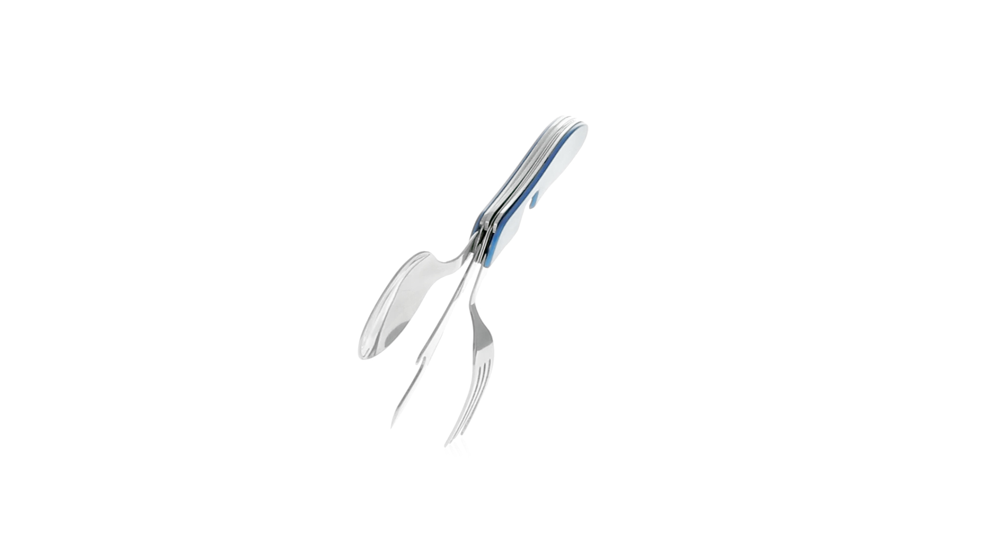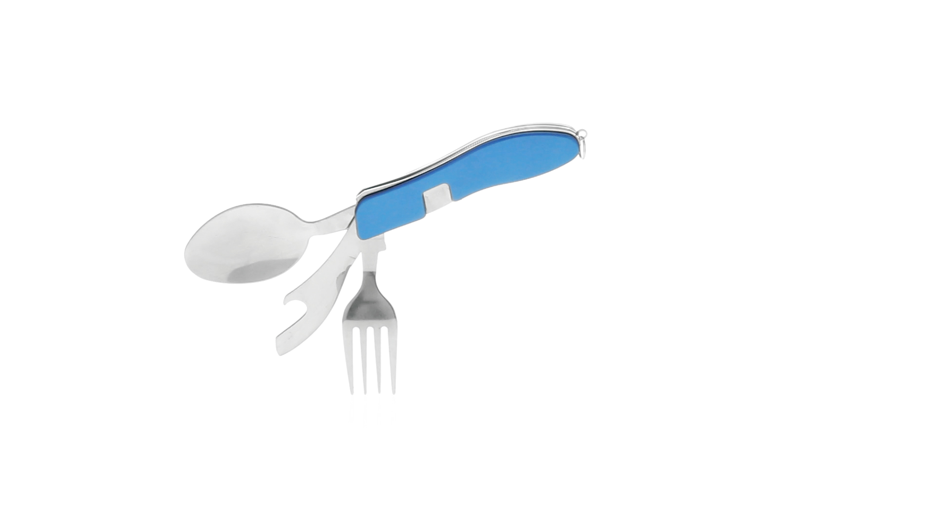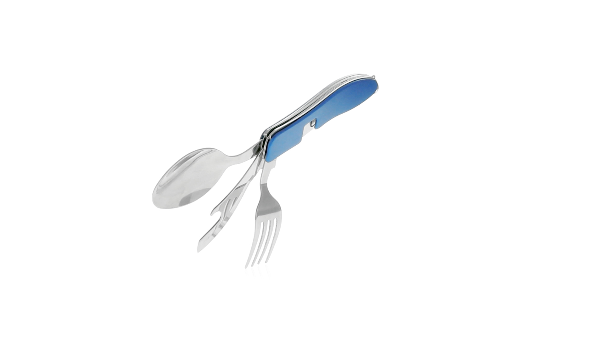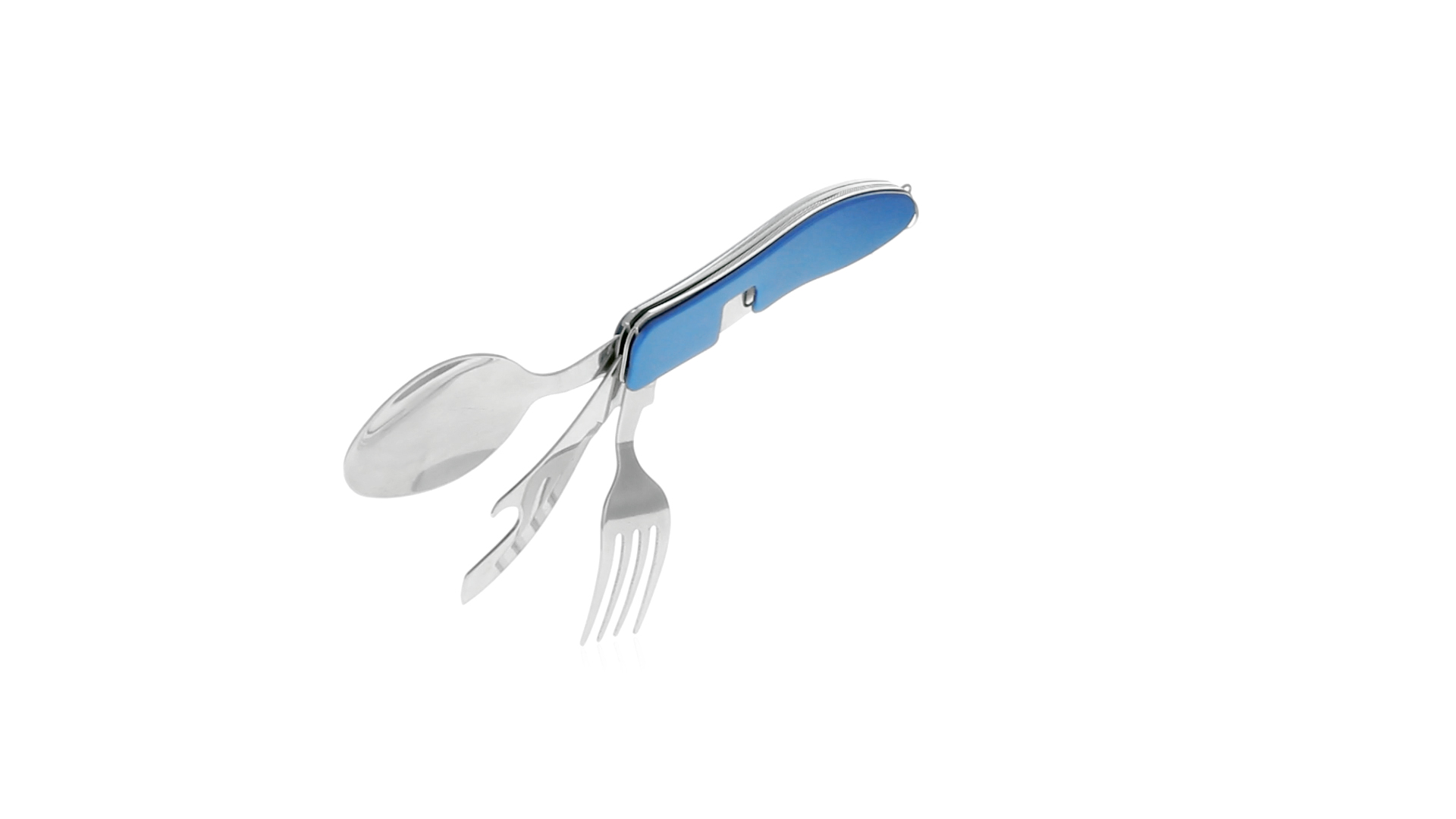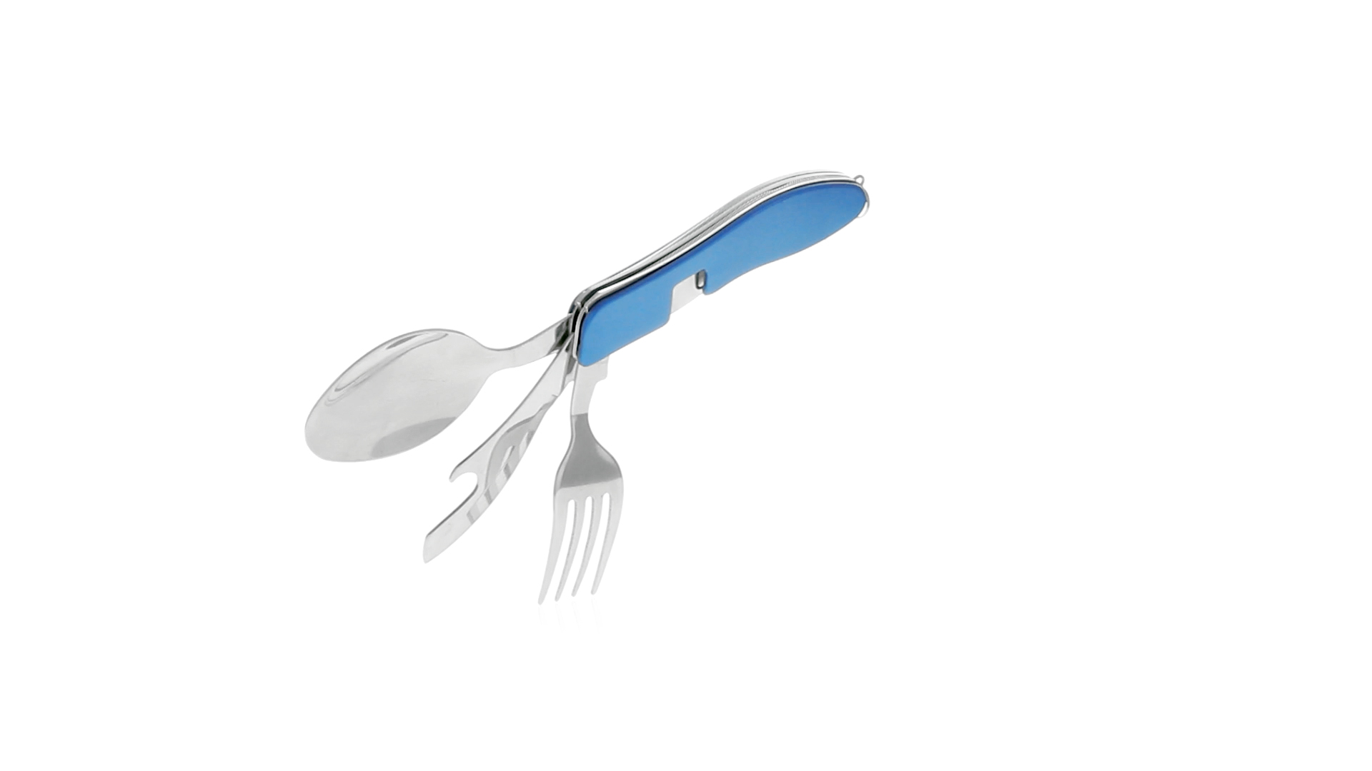 Multi-Tool von Orizons mit 5 Edelstahl-Funktionen und Aluminiumgriff in lebendigen Farben. Mit Löffel, Gabel, Messer mit Dosenöffner und Schlüsselring. Mit Hülle aus resistentem Polyester mit Klettverschluss und dem Markenlogo. Präsentiert in einer attraktiven Designbox mit dem Markenlogo.