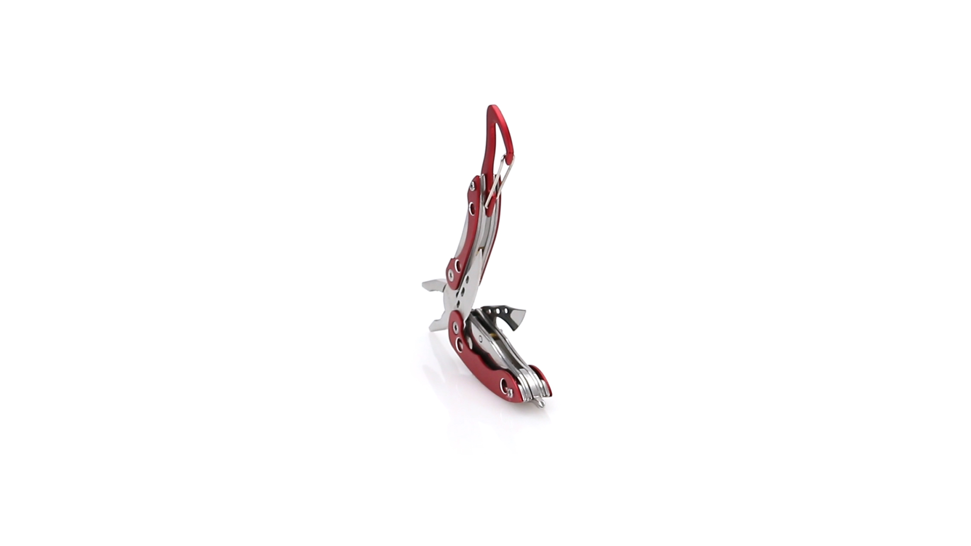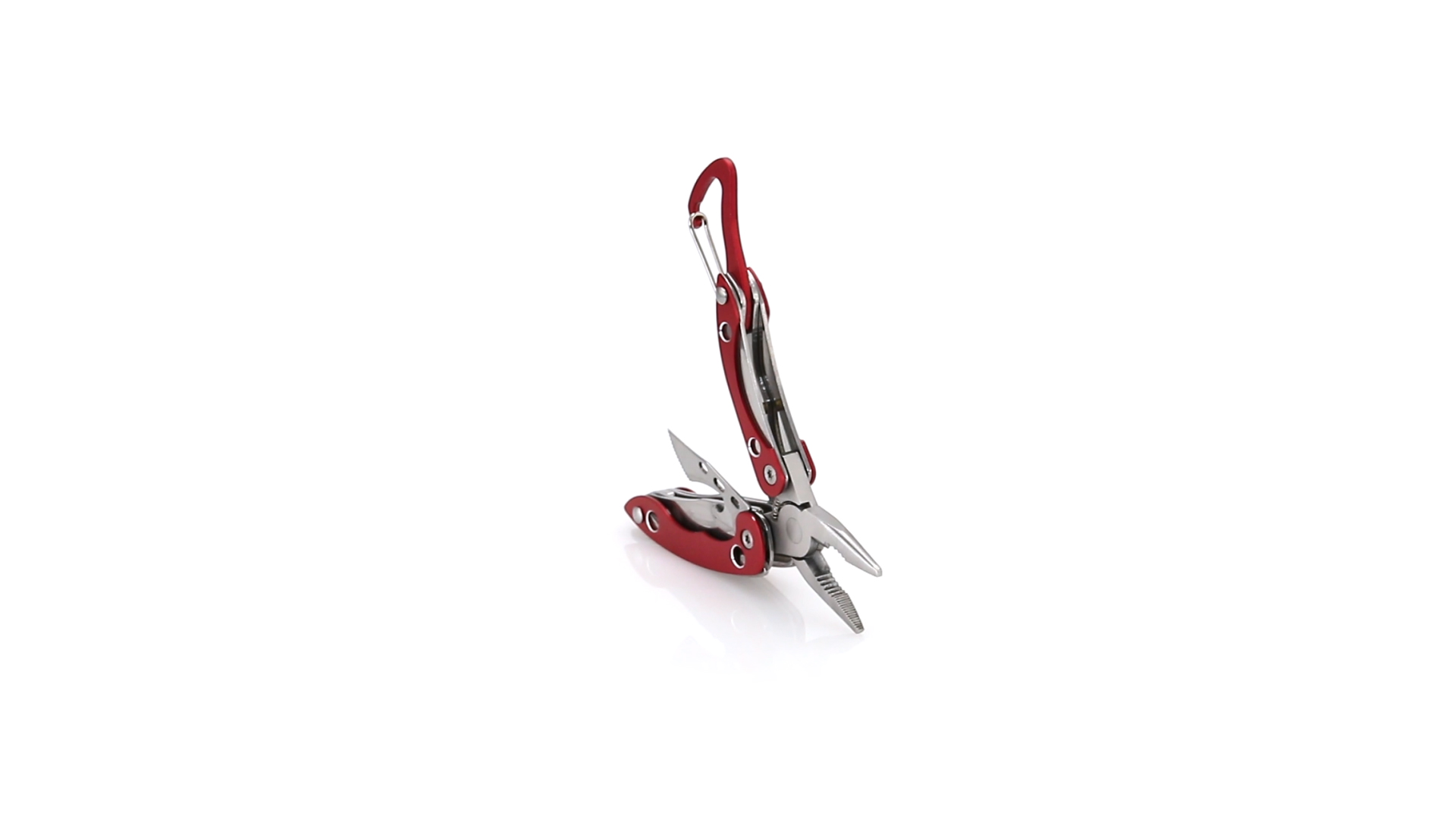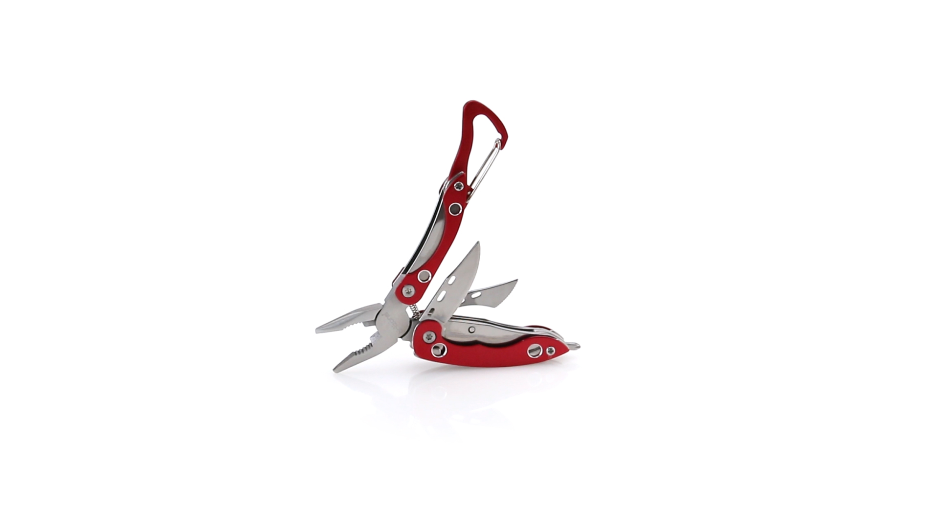 Multi-Tool von Orizons mit 6 Edelstahl-Funktionen und Aluminiumgriff in lebendigen Farben. Mit Zange, Taschenmesser, Dosenöffner mit Schlitzschraubendreher mit Flaschenöffnerfunktion, Kreuzschraubendreher und Karabiner. Präsentiert in einer attraktiven Designbox mit dem Markenlogo.