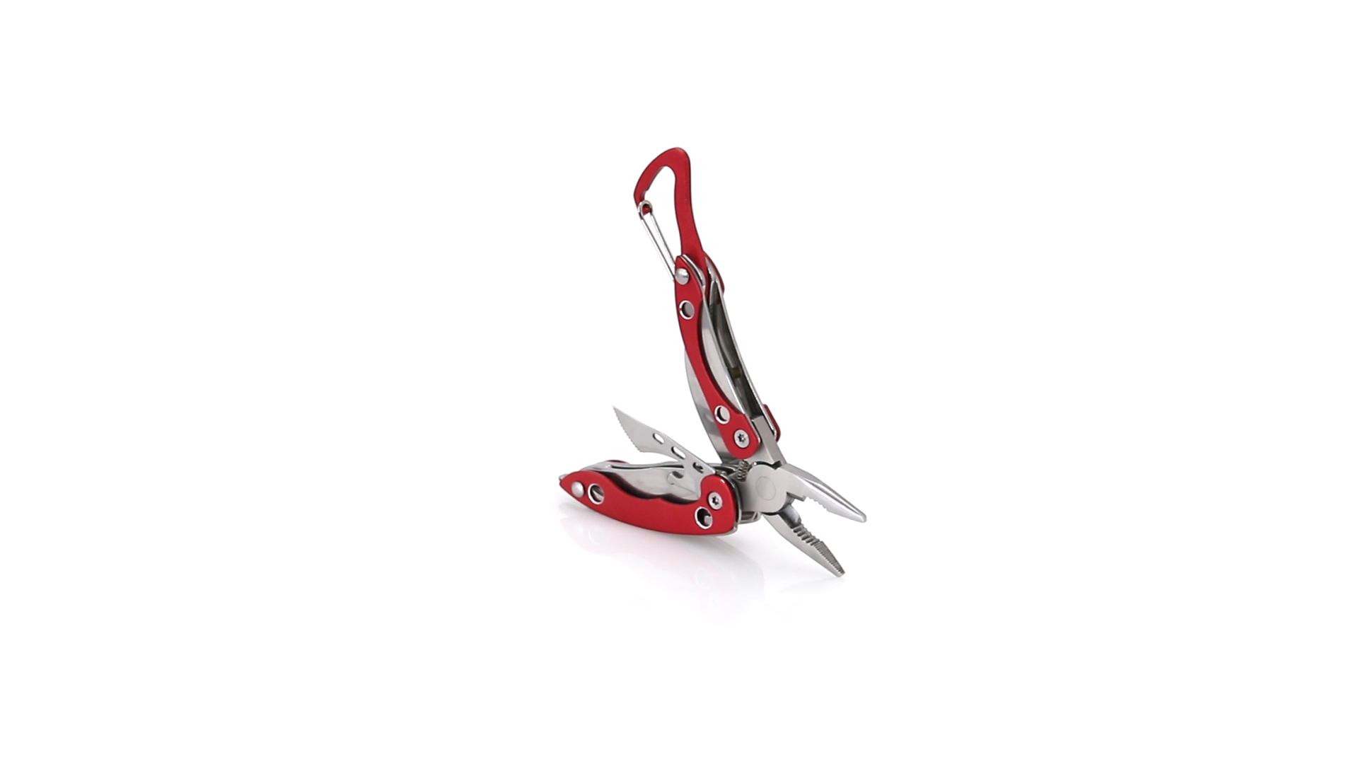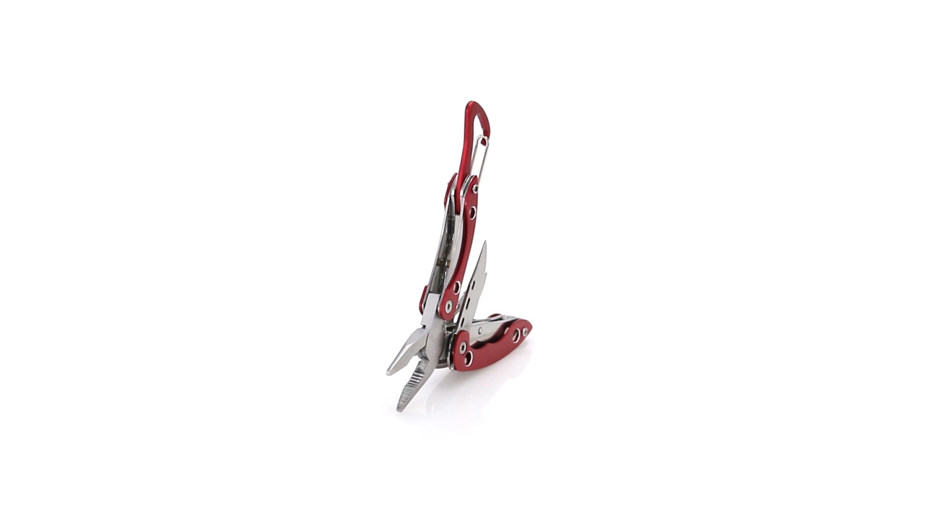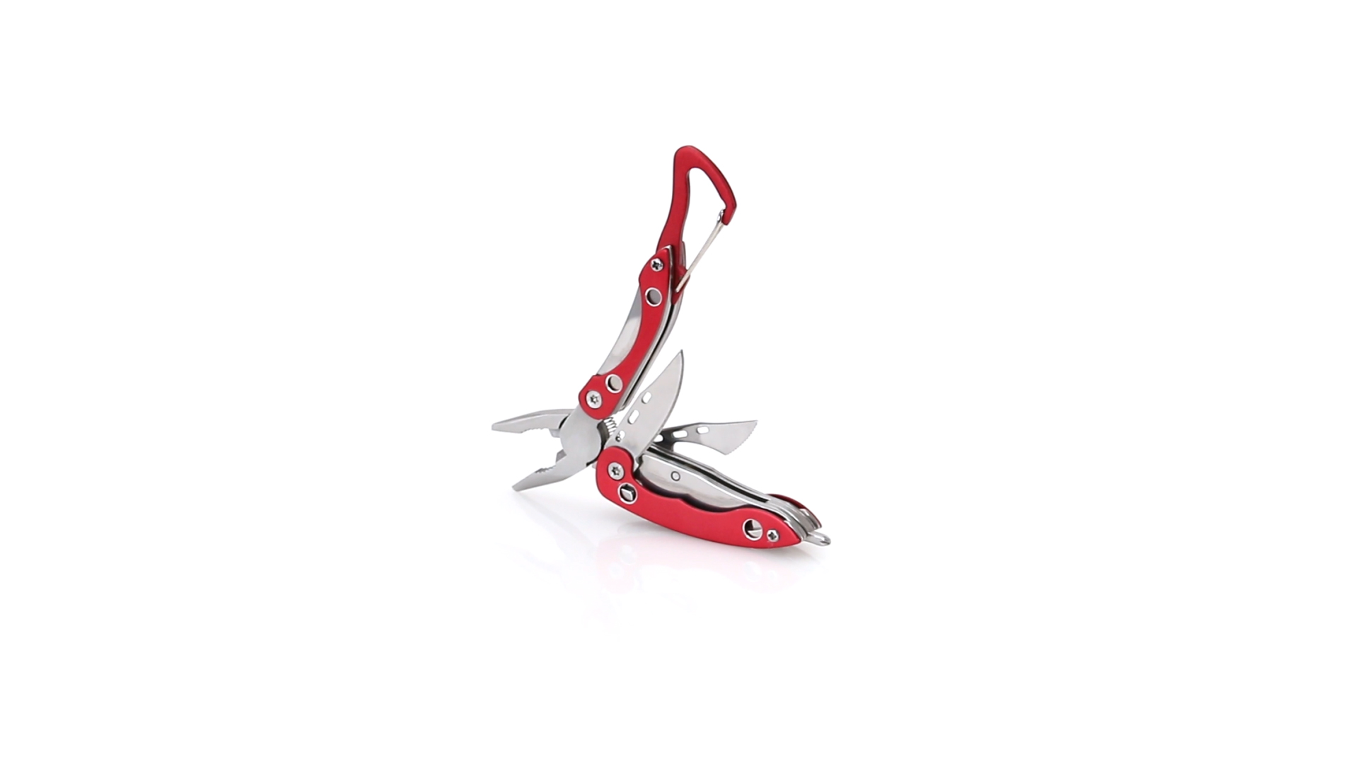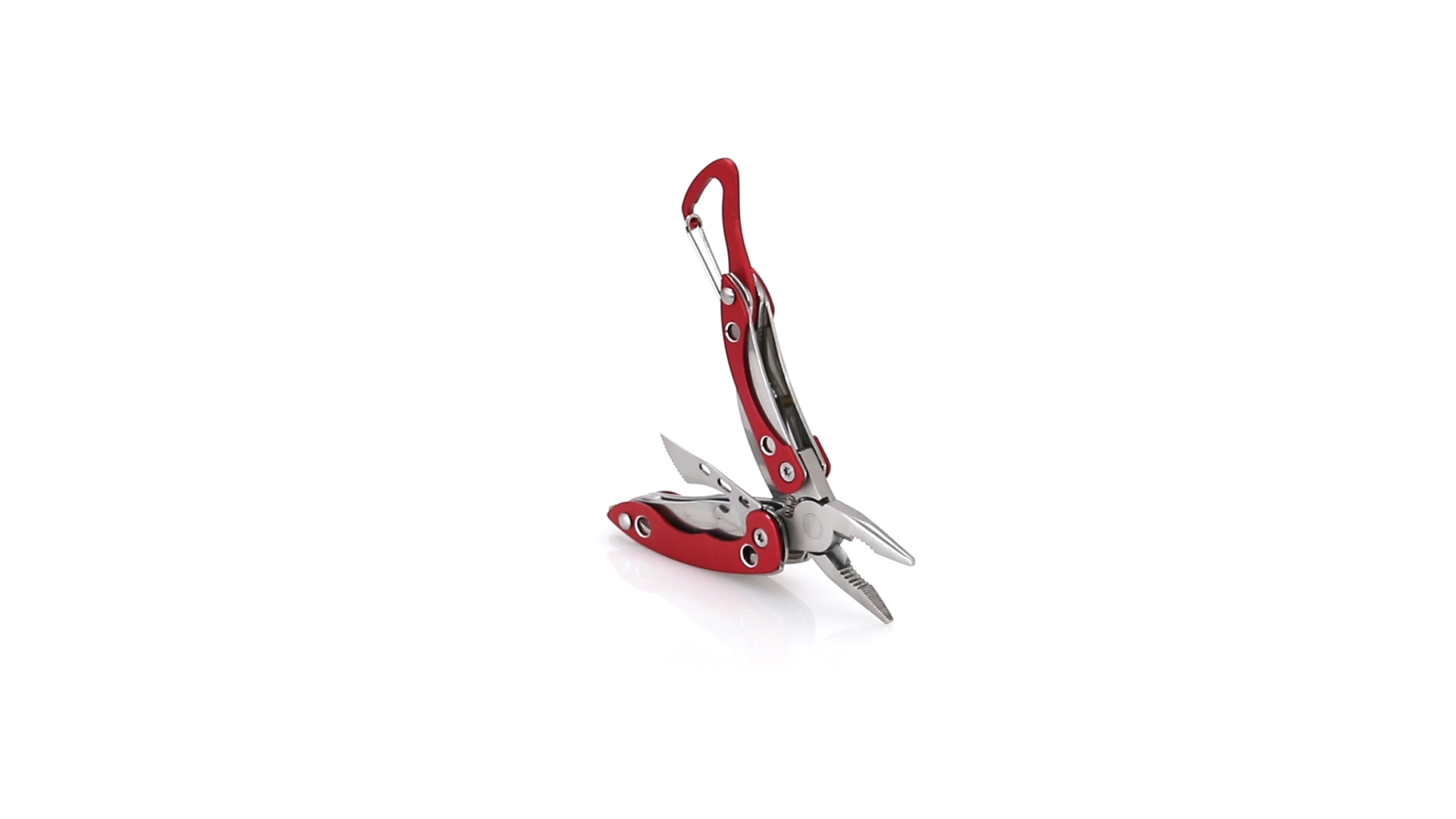 Multi-Tool von Orizons mit 6 Edelstahl-Funktionen und Aluminiumgriff in lebendigen Farben. Mit Zange, Taschenmesser, Dosenöffner mit Schlitzschraubendreher mit Flaschenöffnerfunktion, Kreuzschraubendreher und Karabiner. Präsentiert in einer attraktiven Designbox mit dem Markenlogo.