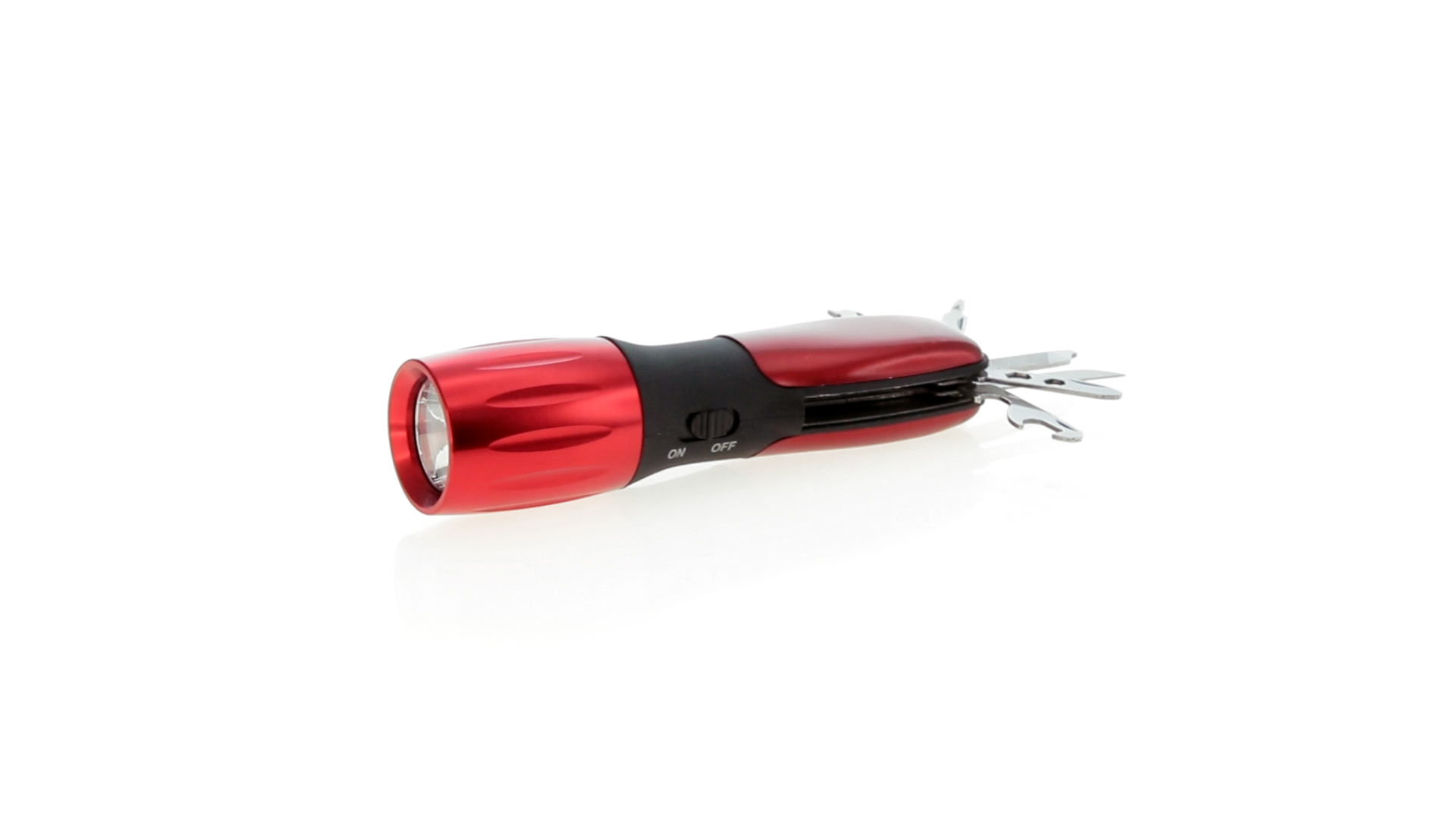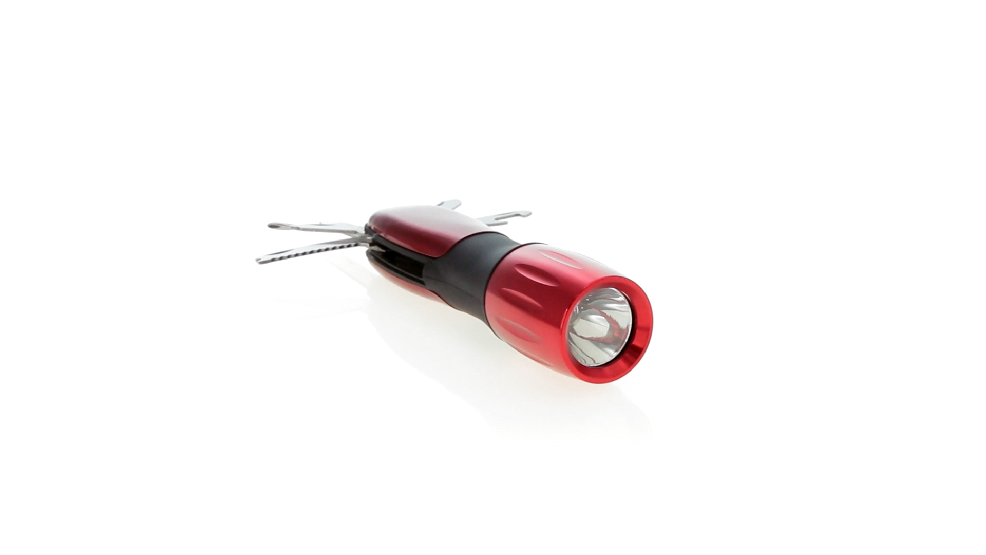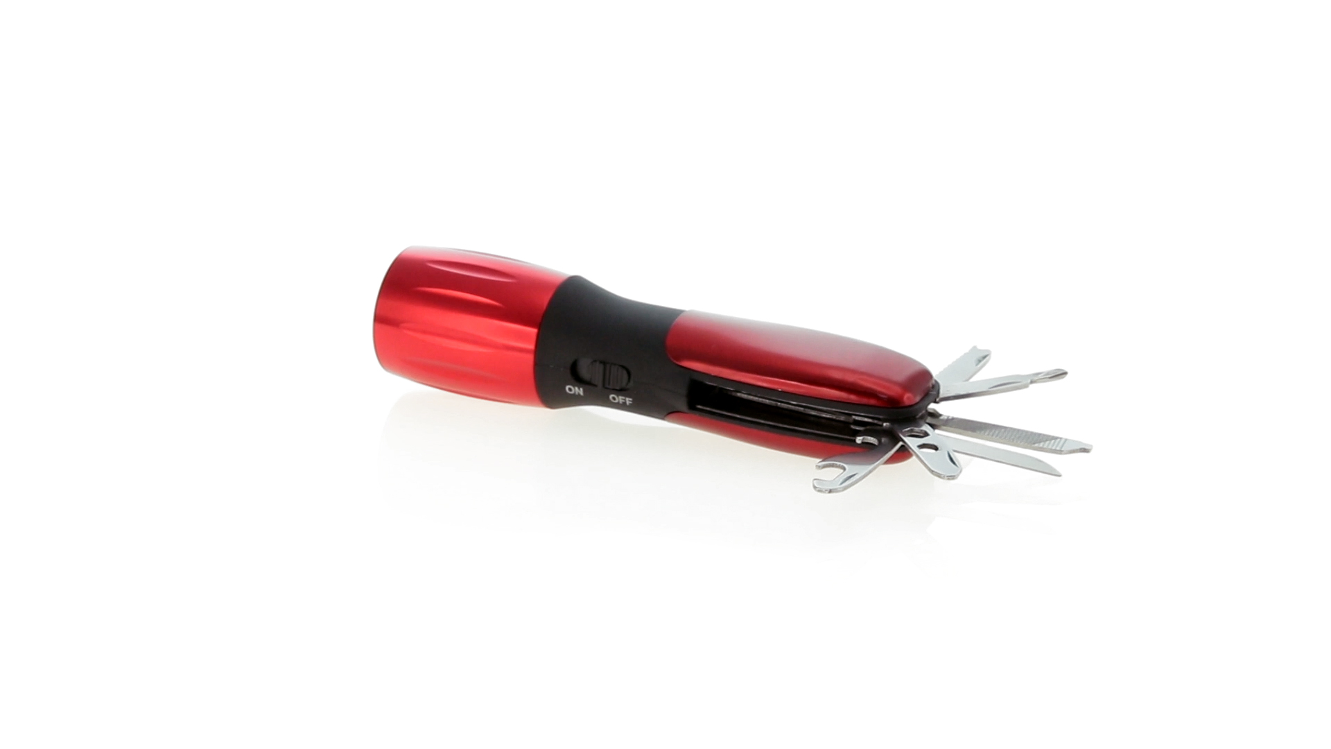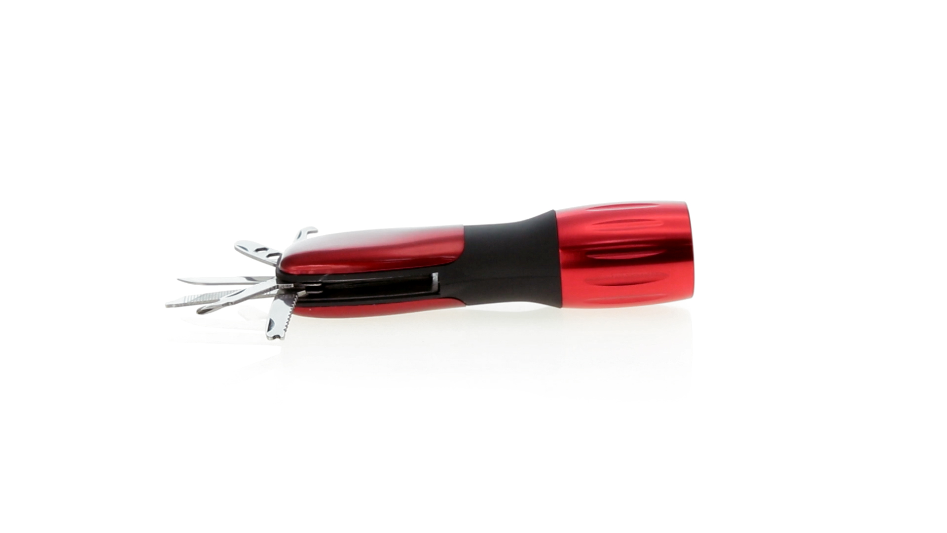 Multi-Tool mit robustem, rutschfestem Aluminiumgehäuse in einer Vielzahl von Metallic-Farben. Mit 9 Funktionen und integrierter LED-Taschenlampe. Enthält Schraubendreheraufsätze, Messer, Säge, Schraubenschlüssel und Flaschenöffner. Knopfzellen inklusive. Präsentiert in einer individuellen Box.
