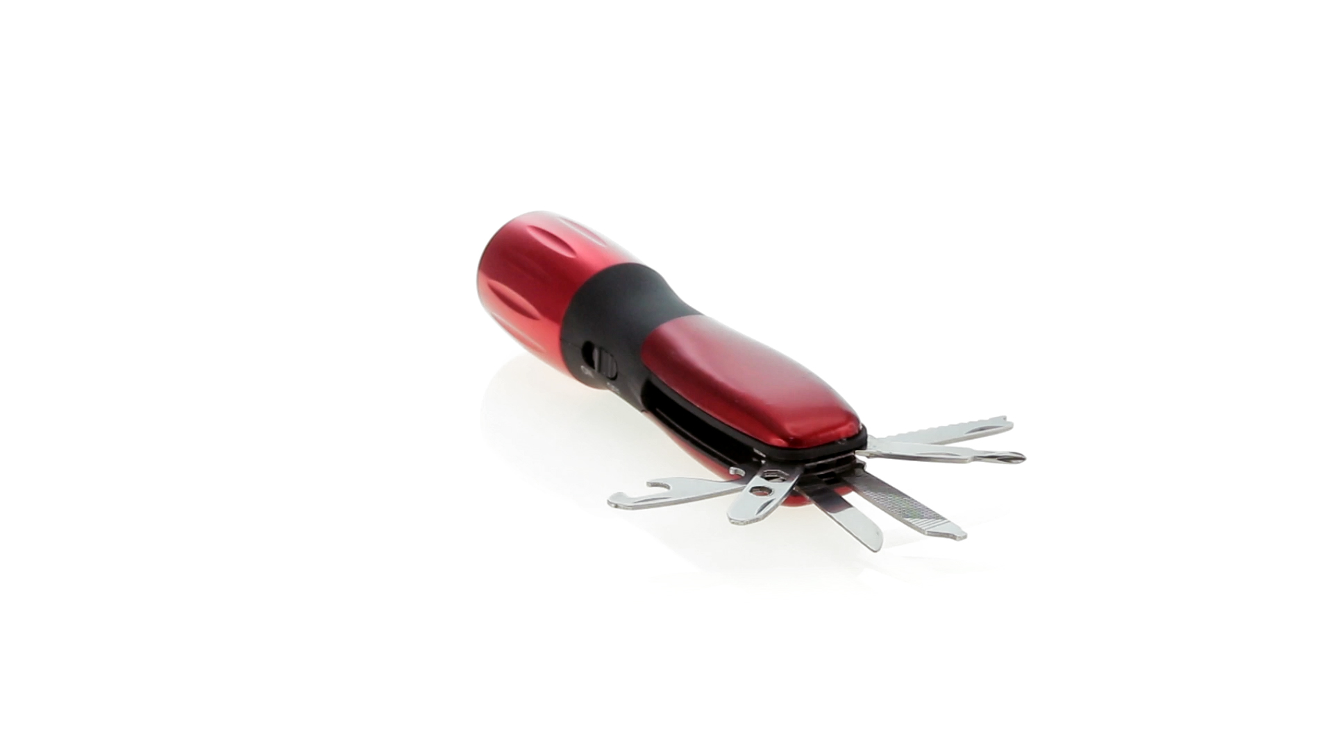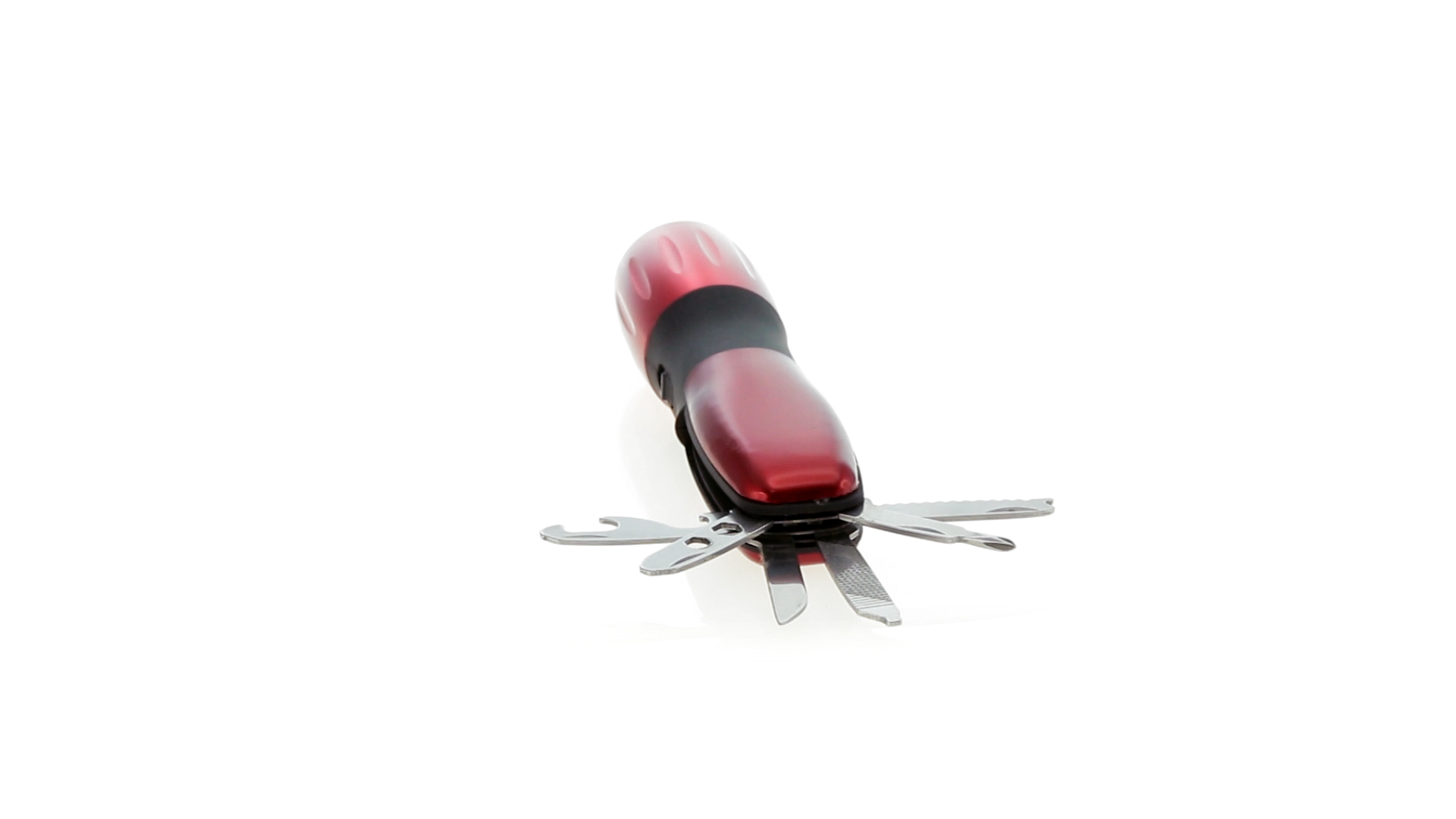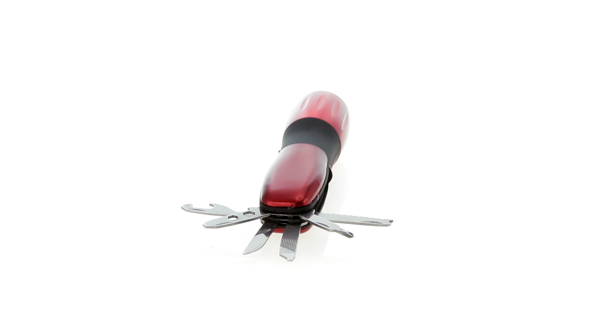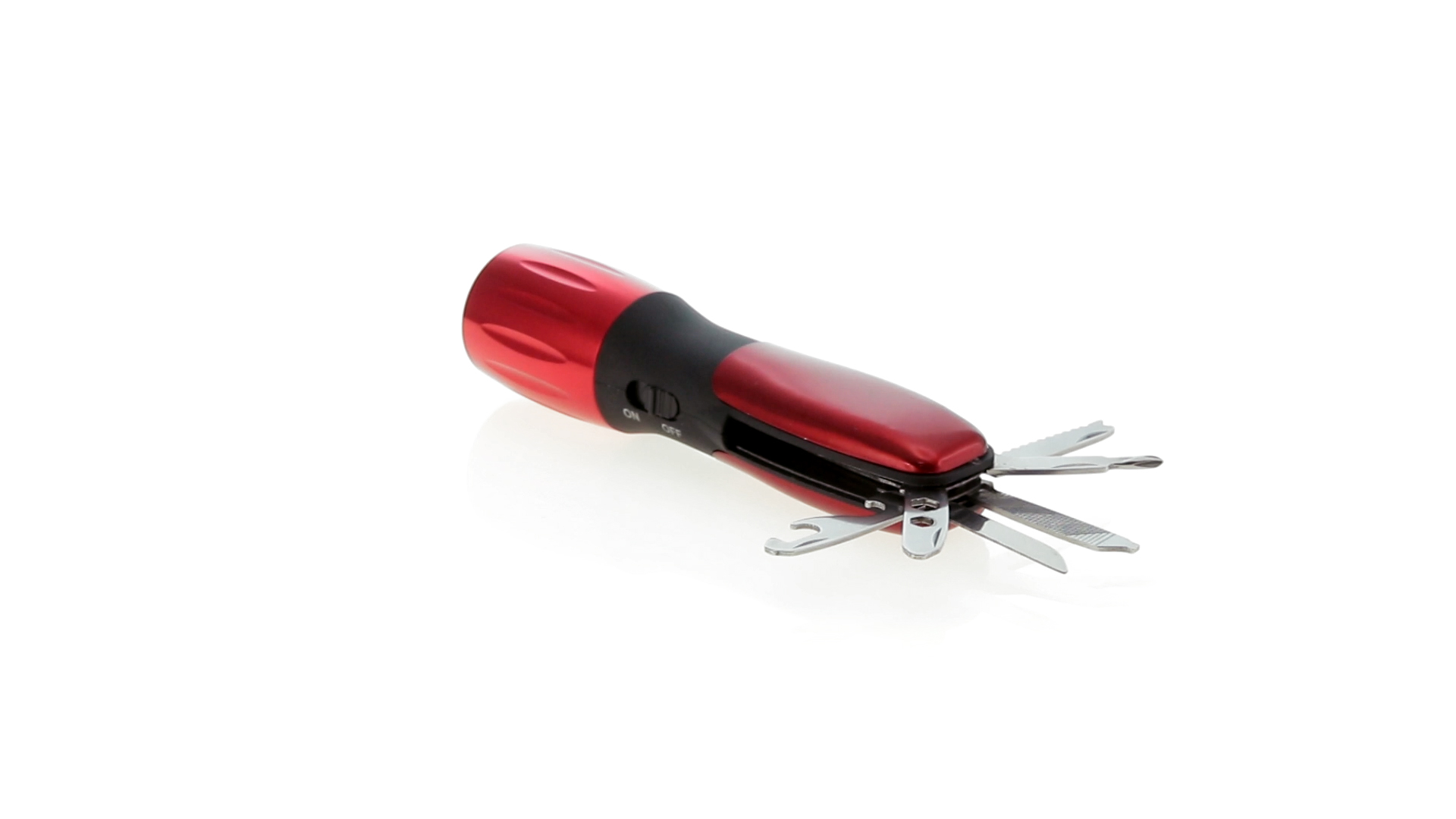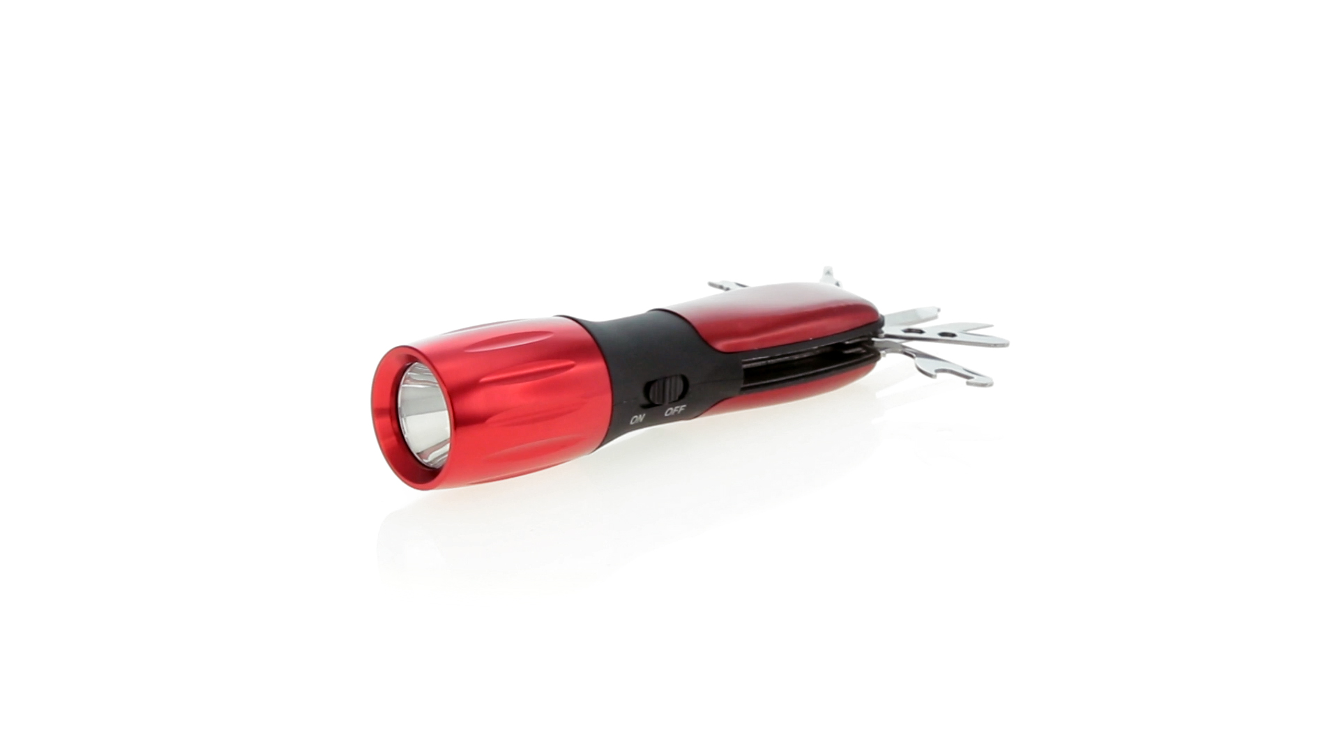 Multi-Tool mit robustem, rutschfestem Aluminiumgehäuse in einer Vielzahl von Metallic-Farben. Mit 9 Funktionen und integrierter LED-Taschenlampe. Enthält Schraubendreheraufsätze, Messer, Säge, Schraubenschlüssel und Flaschenöffner. Knopfzellen inklusive. Präsentiert in einer individuellen Box.