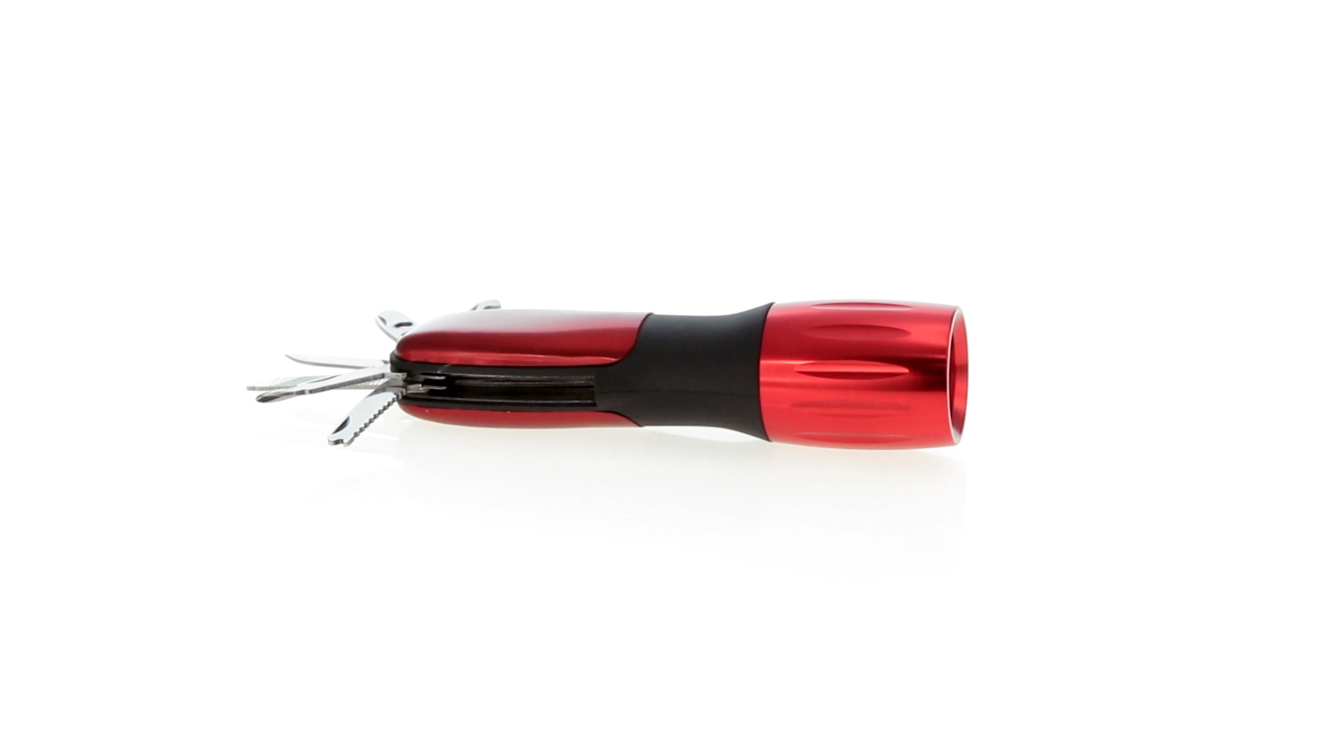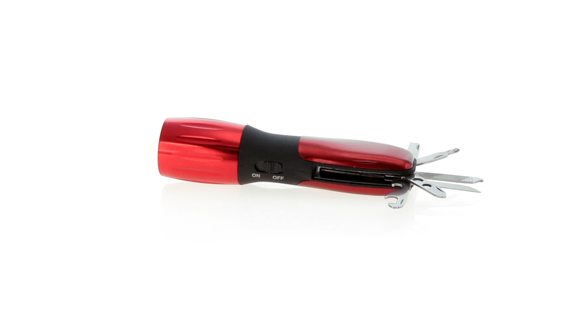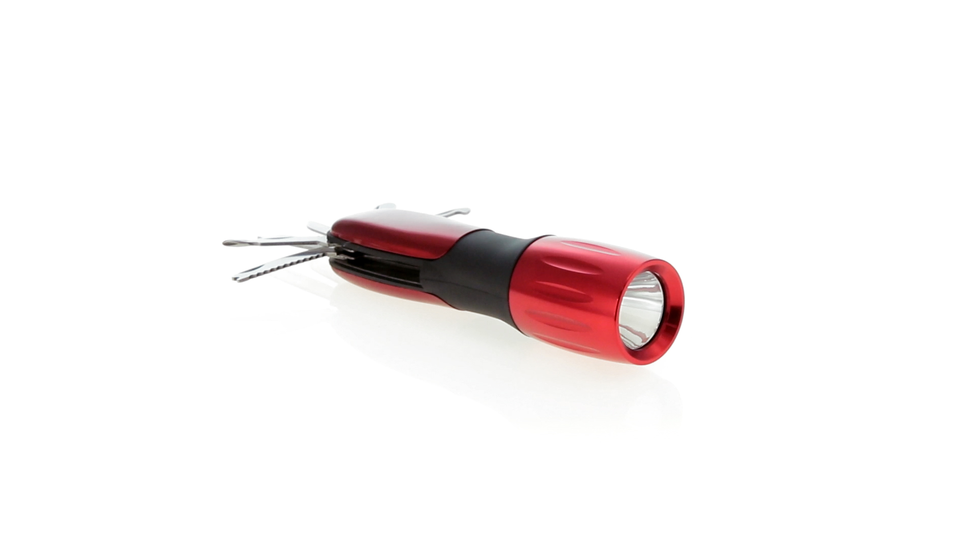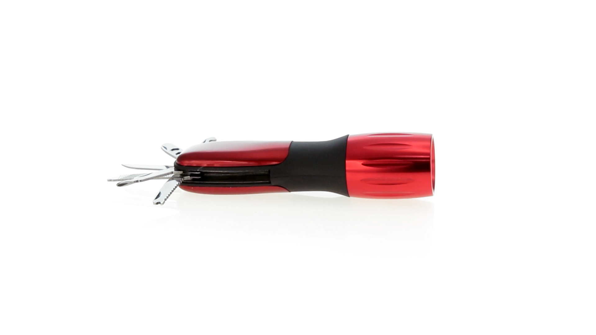 Multi-Tool mit robustem, rutschfestem Aluminiumgehäuse in einer Vielzahl von Metallic-Farben. Mit 9 Funktionen und integrierter LED-Taschenlampe. Enthält Schraubendreheraufsätze, Messer, Säge, Schraubenschlüssel und Flaschenöffner. Knopfzellen inklusive. Präsentiert in einer individuellen Box.