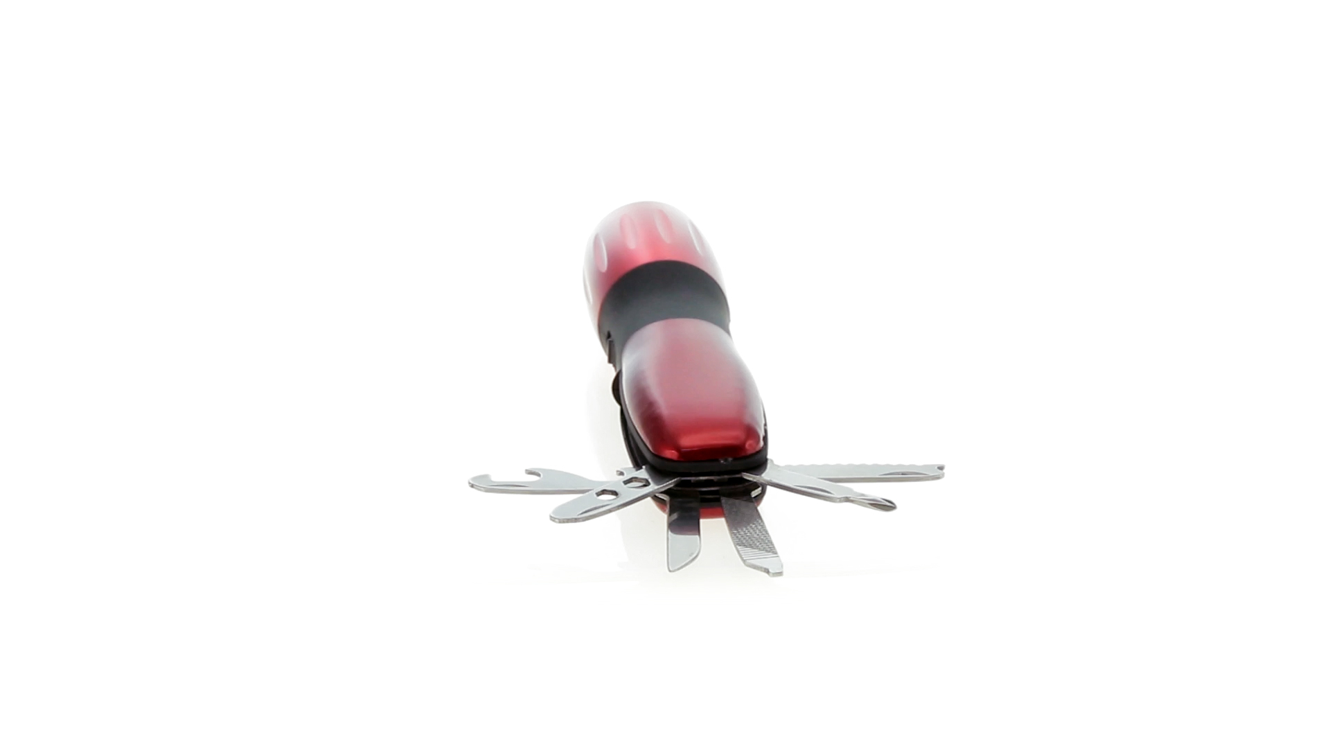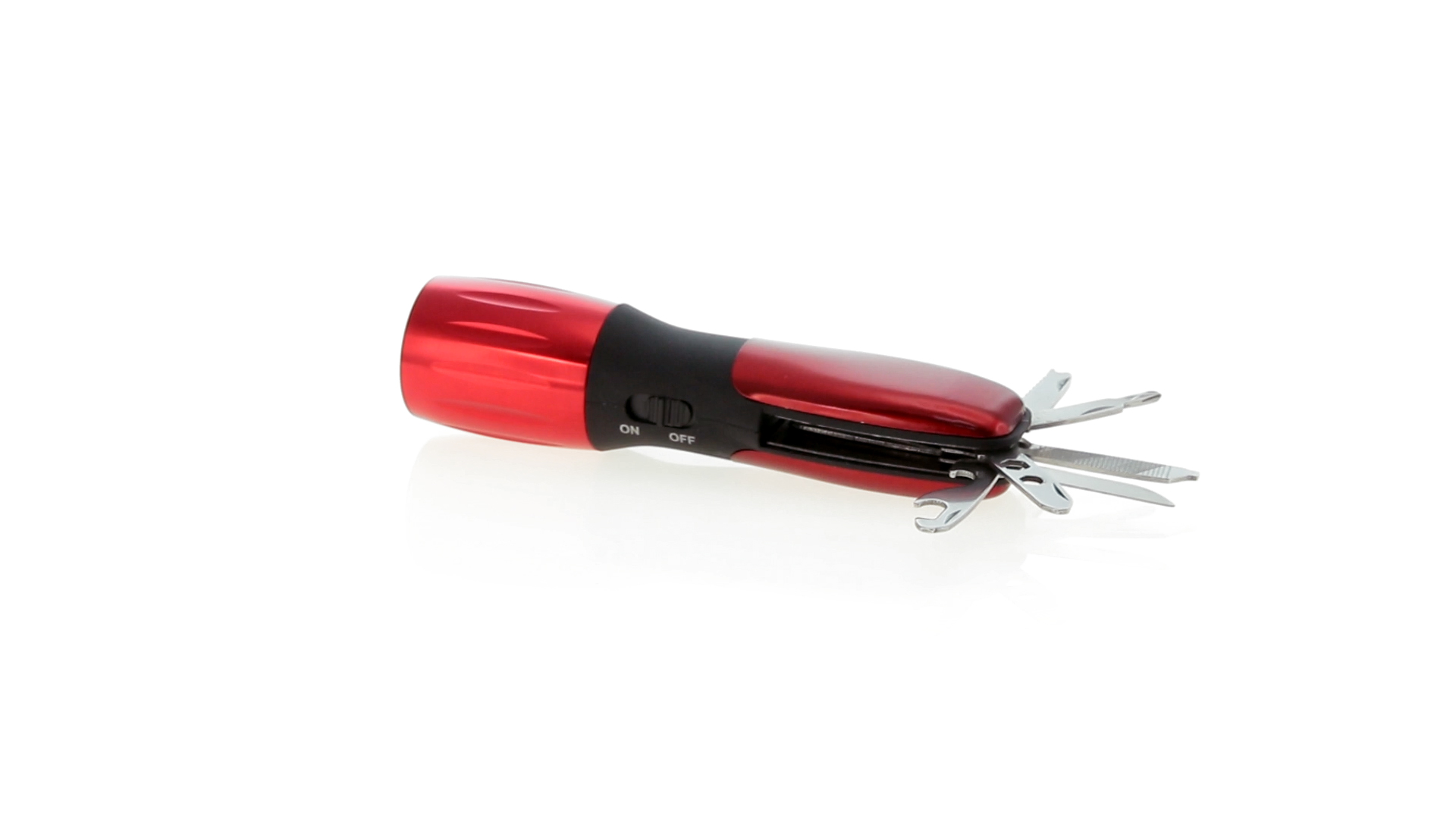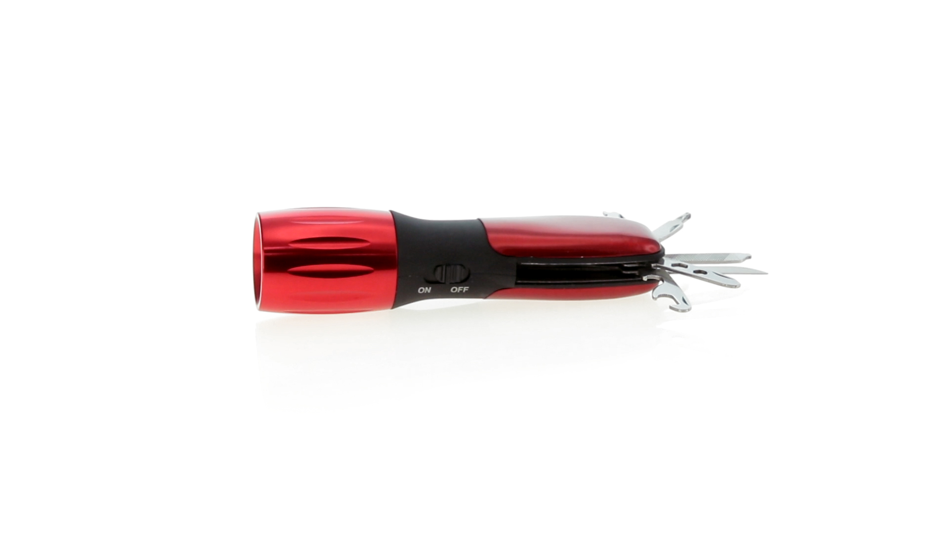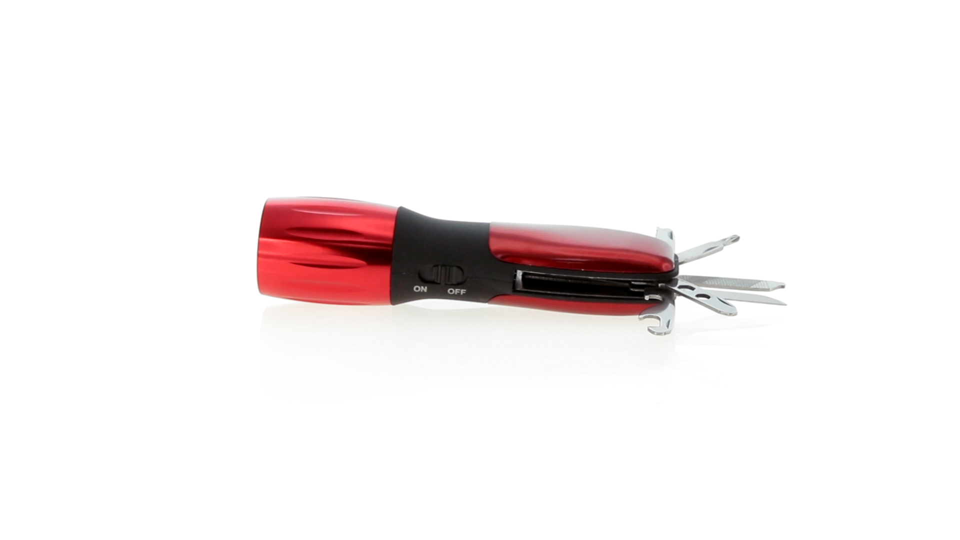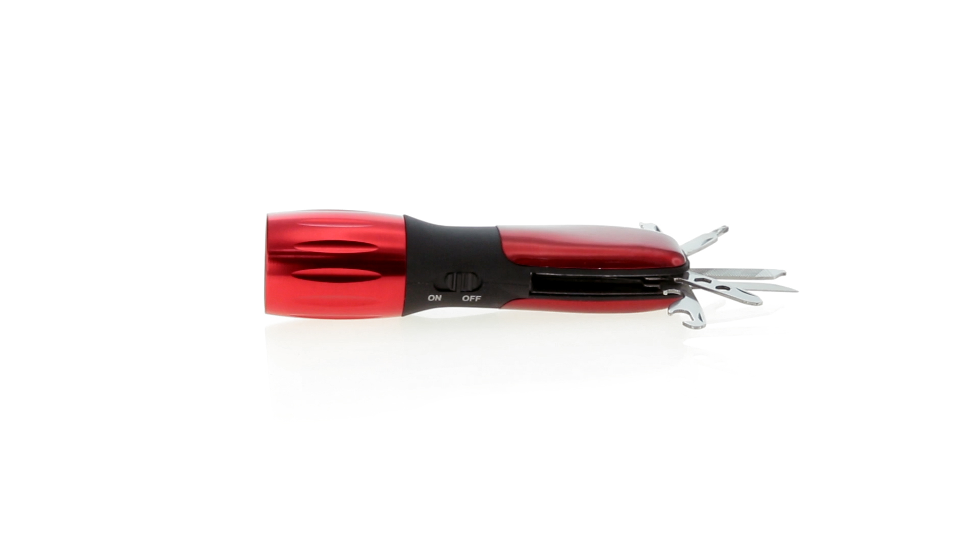 Multi-Tool mit robustem, rutschfestem Aluminiumgehäuse in einer Vielzahl von Metallic-Farben. Mit 9 Funktionen und integrierter LED-Taschenlampe. Enthält Schraubendreheraufsätze, Messer, Säge, Schraubenschlüssel und Flaschenöffner. Knopfzellen inklusive. Präsentiert in einer individuellen Box.