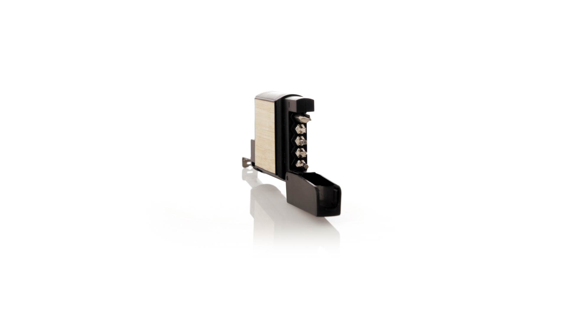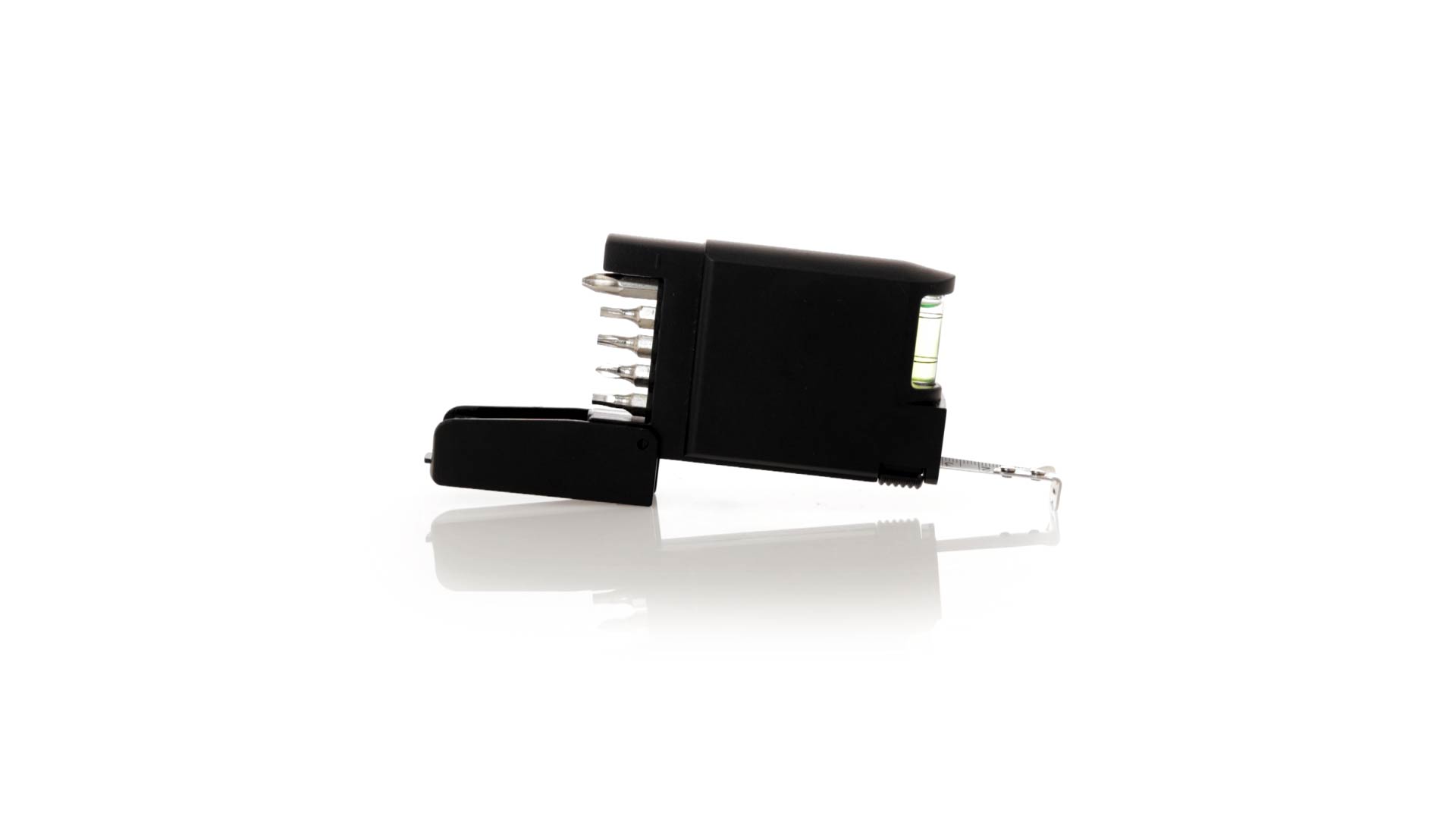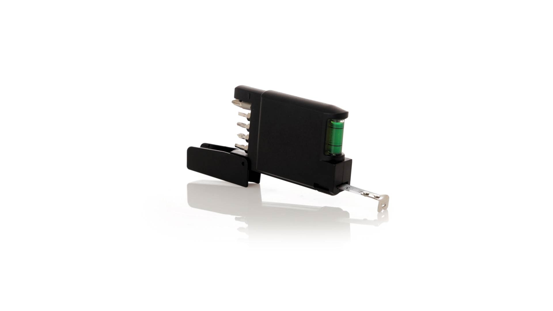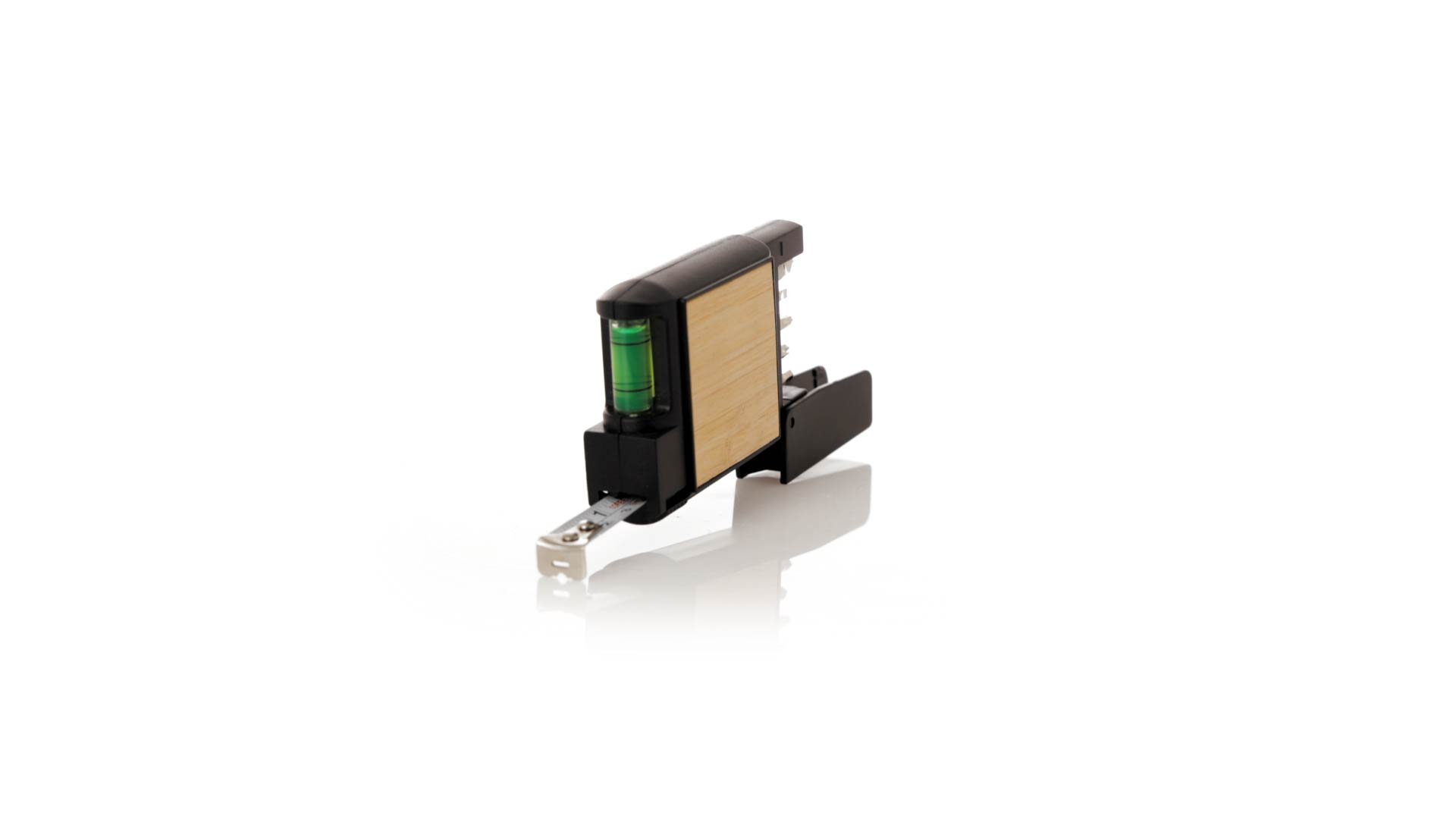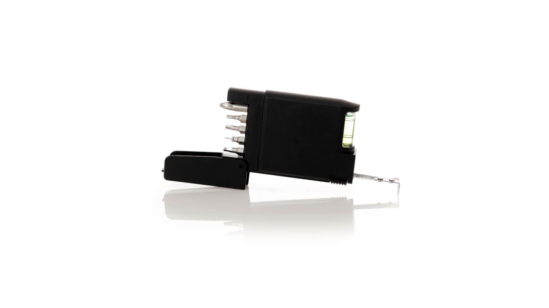 3 m langes Multifunktions-Flexometer, hergestellt aus einer langlebigen Kombination aus Bambus und ABS. Mit 7 Funktionen: 3-Meter-Massband, Schraubendreher mit verschiedenen Bits (Flach-, Kreuz- und Innensechskant) und integriertem Füllstandsmesser. Elegant in Schwarz mit Bambusdetails gestaltet und einzeln in einer Kraft-Designbox präsentiert.