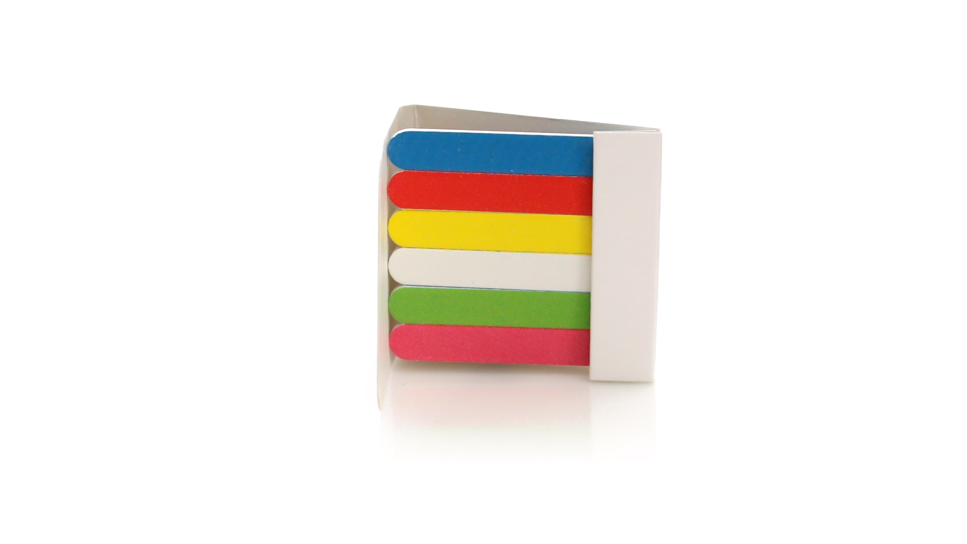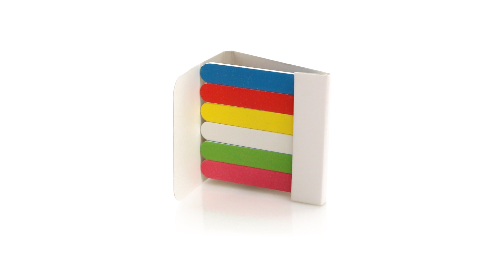 Set aus 6 Nagelfeilen in einer Vielzahl von kräftigen Farben. Präsentiert in einer individuellen Schachtel aus weissem Karton.
