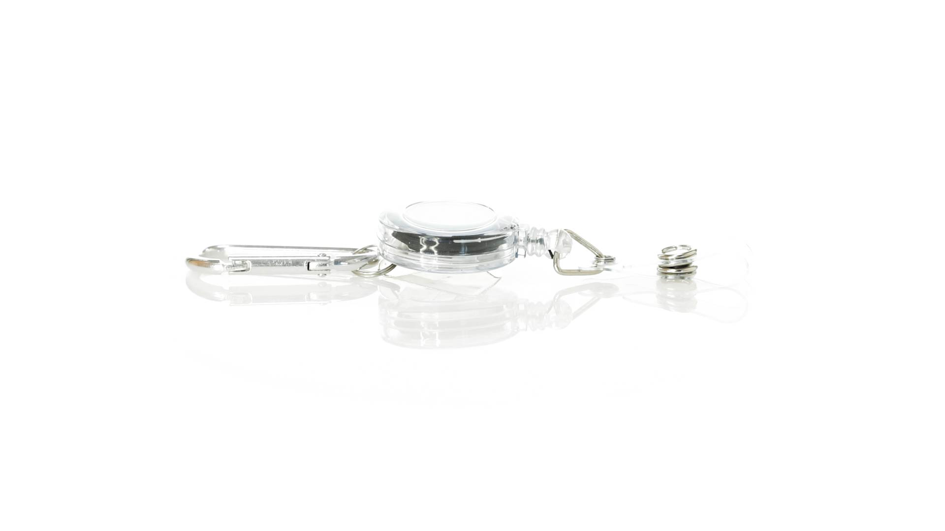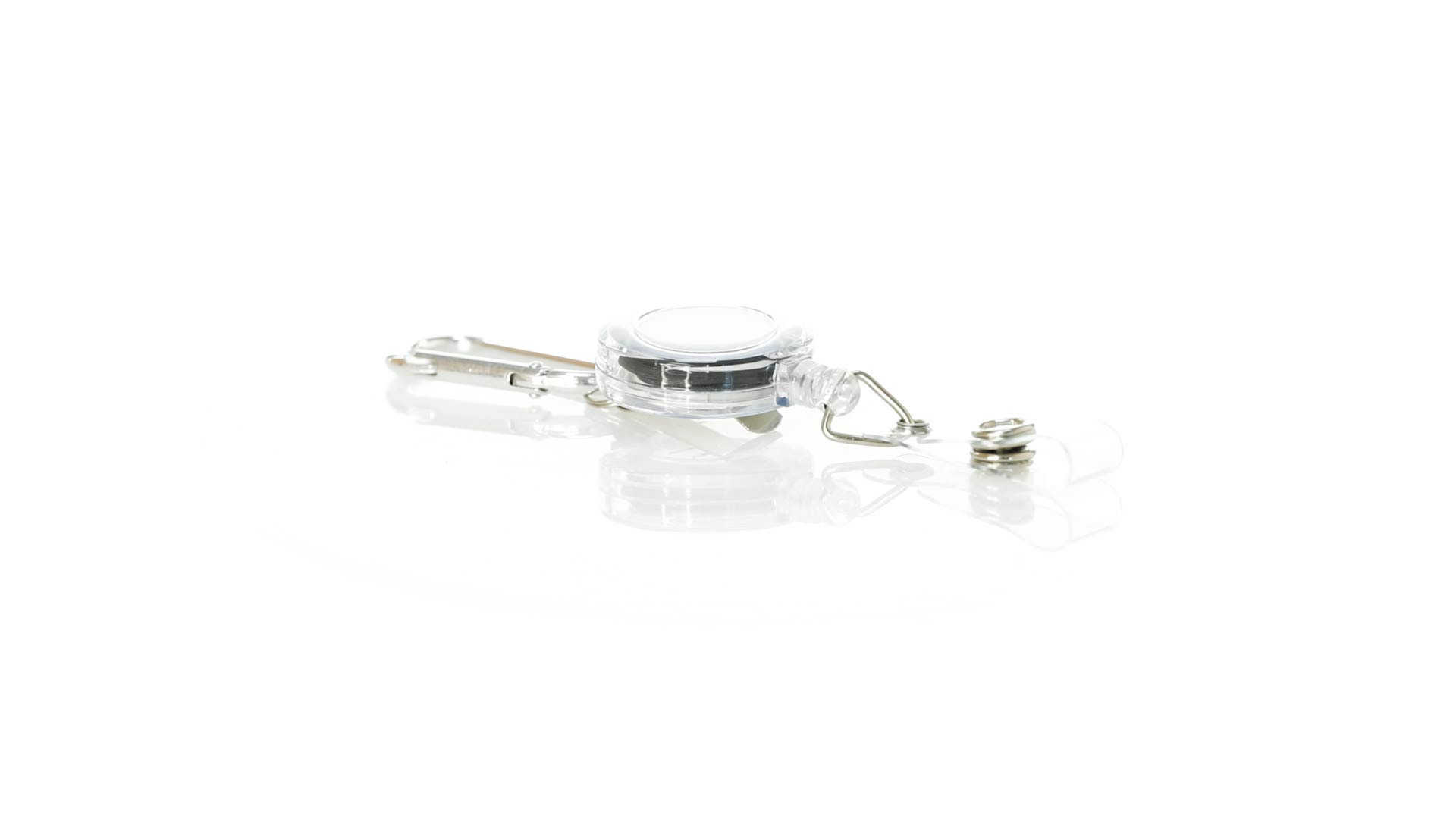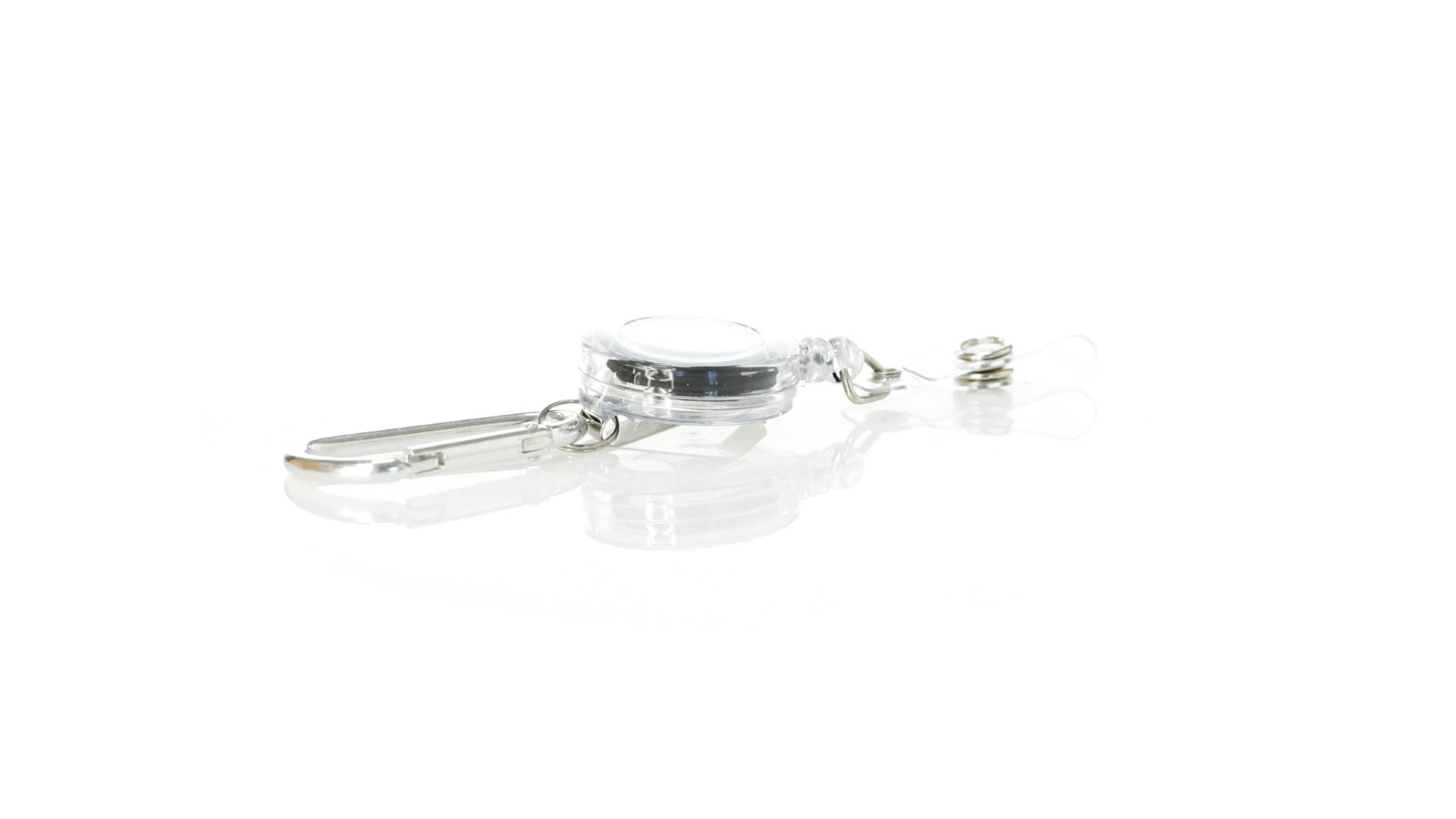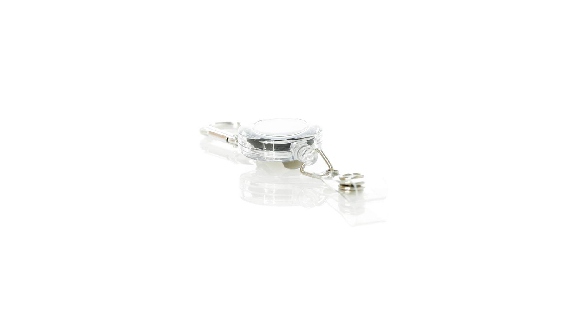 Schlicht gestalteter, ausziehbarer Gegenstandshalter mit Knopfverschlussriemen und Ausziehmechanismus bis zu 65 cm. Einschliesslich eines Metallkarabiners und speziell entworfen, um alltägliche Objekte zu tragen und leichten Zugang zu ihnen zu erhalten (berührungssichere Schlüsselanhänger, Sicherheitszeiger, Ausweis...). Grosse Markierungsfläche auf dem Mittelstück.