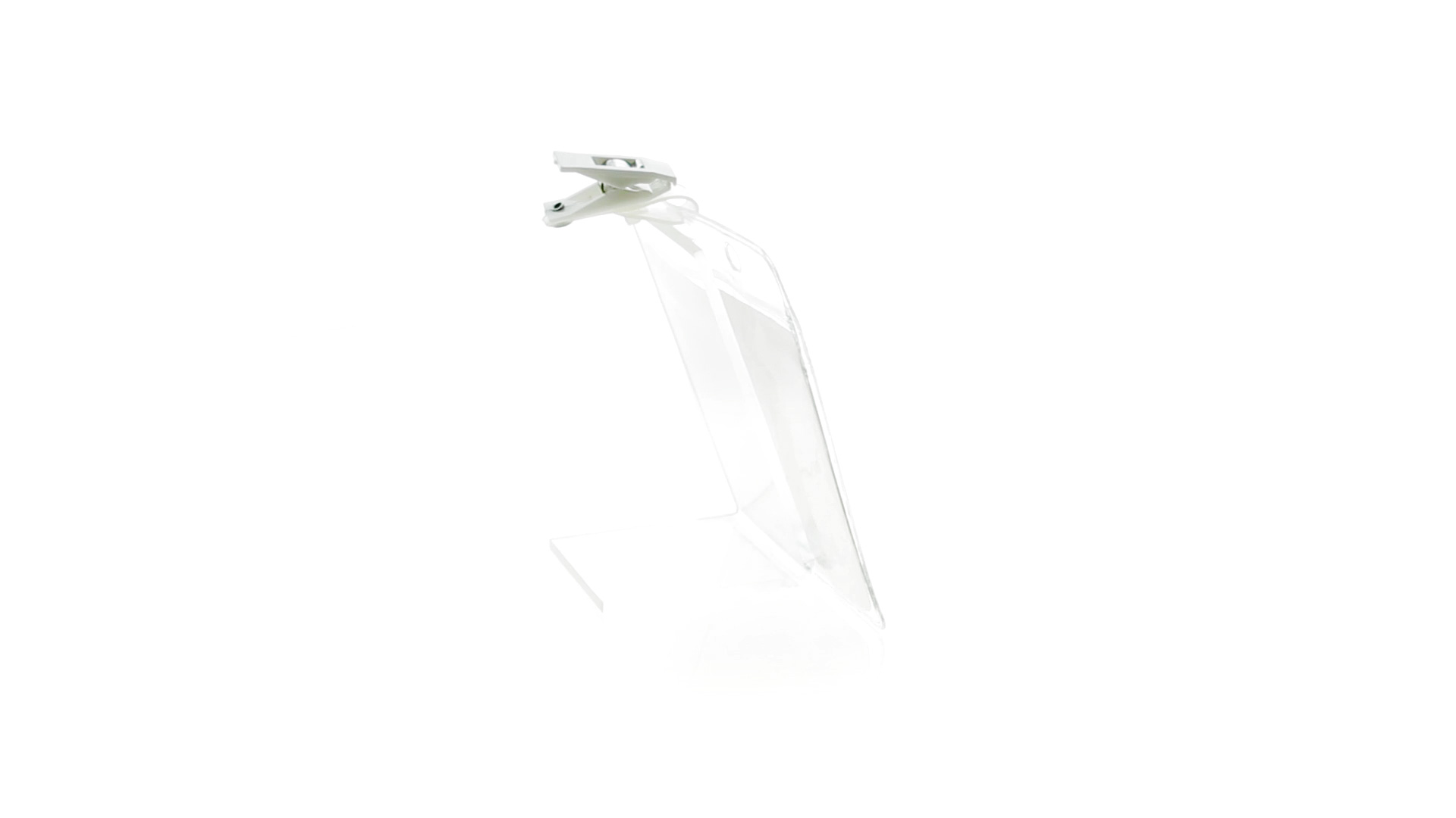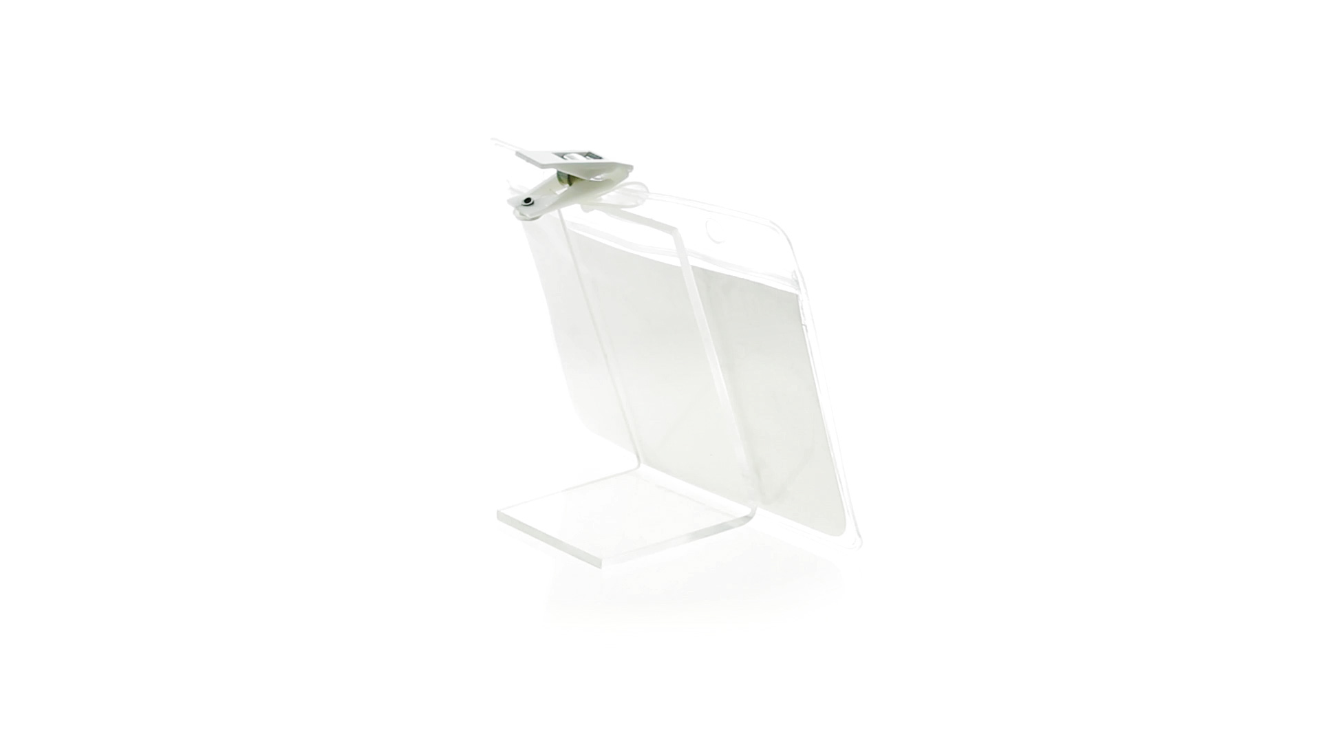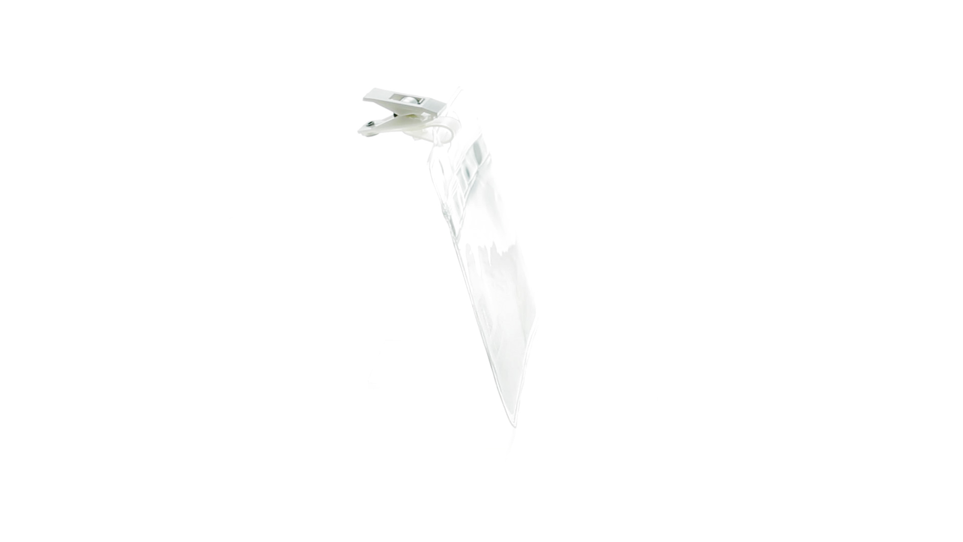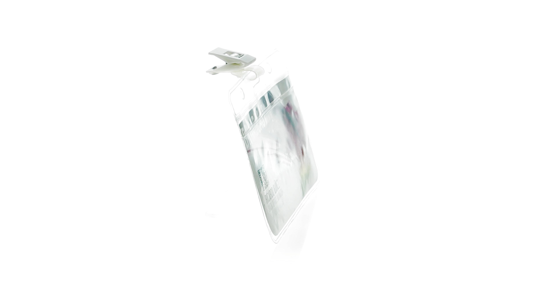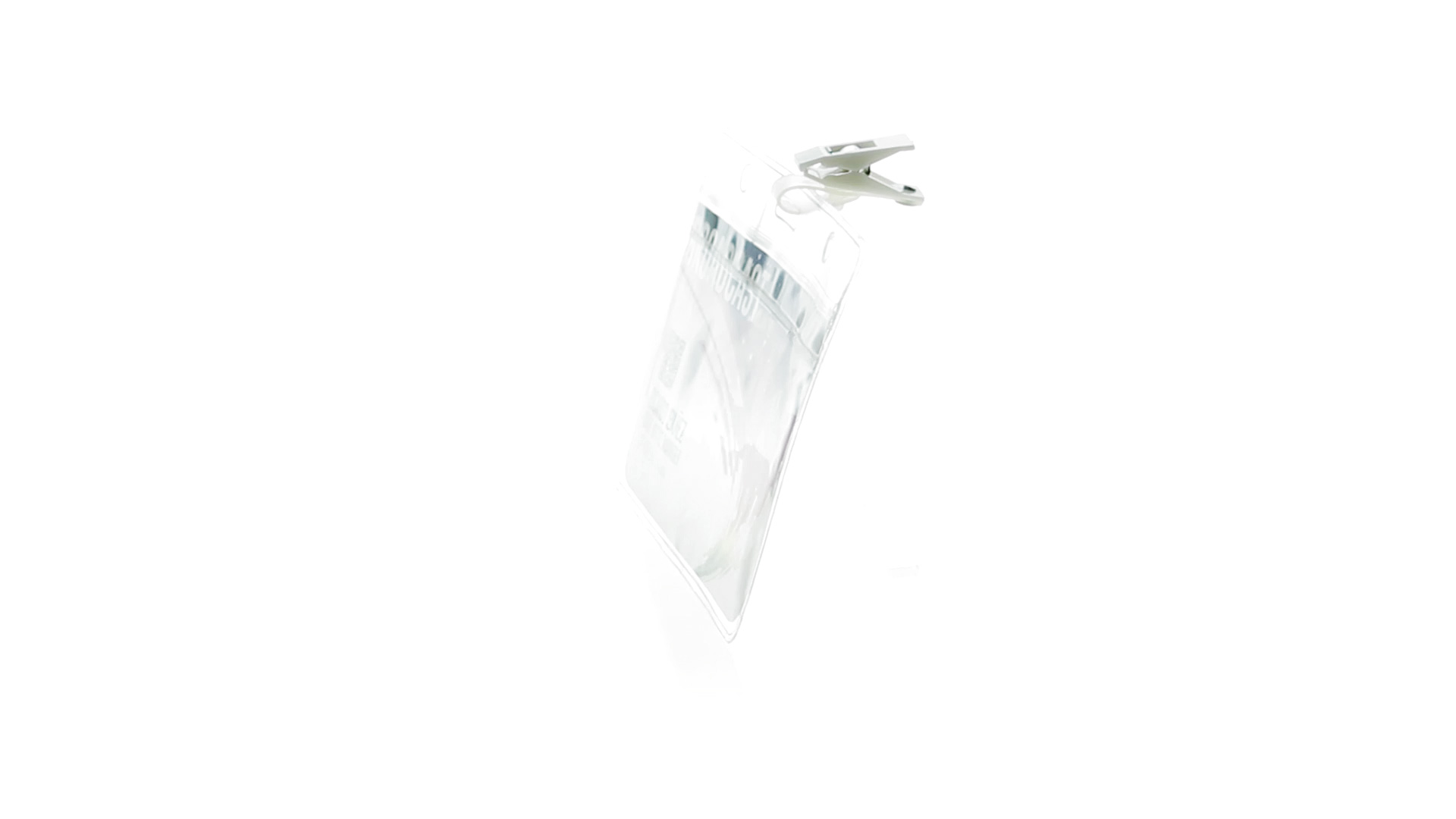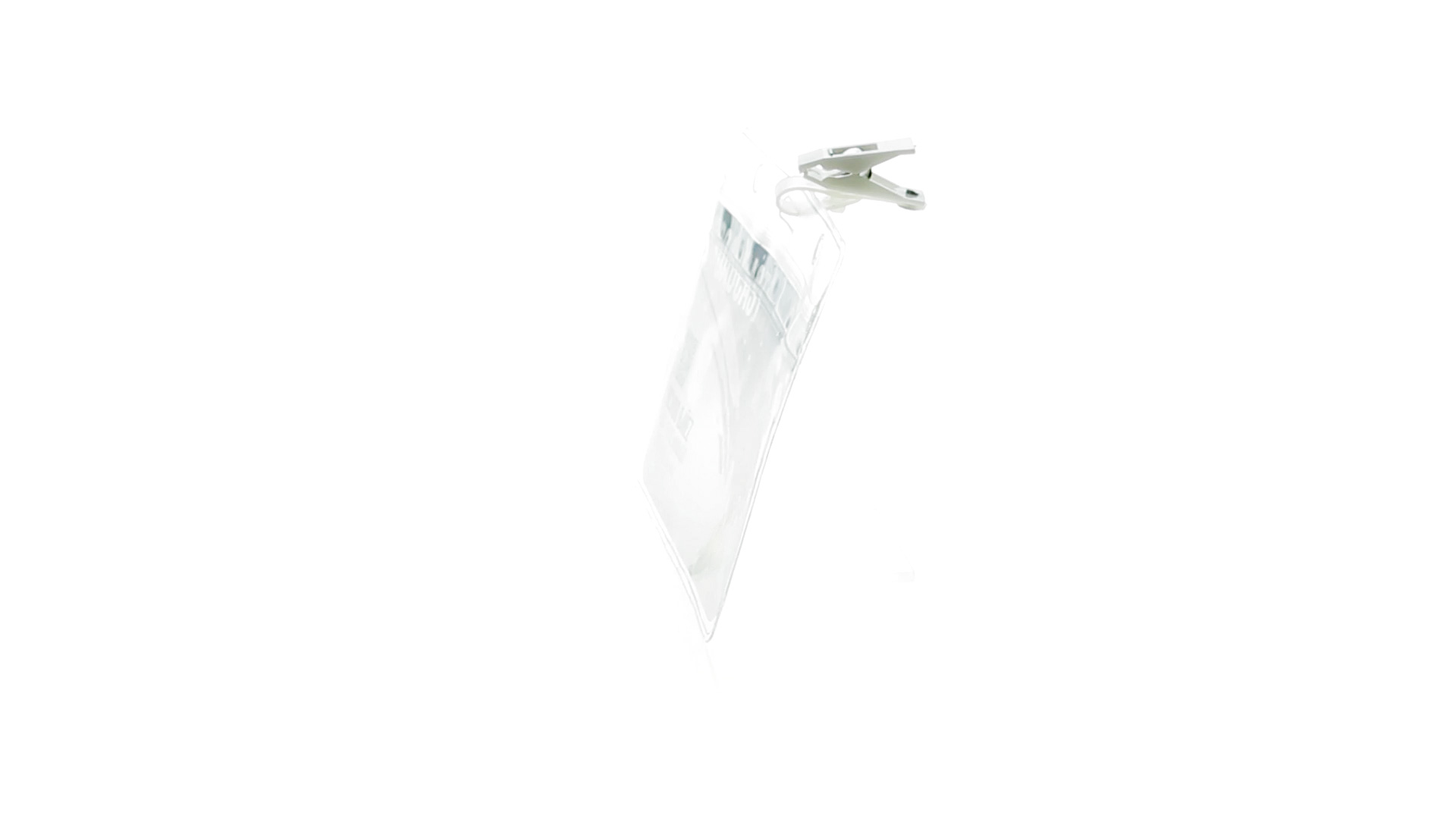 Gestanzter Ausweishalter aus PVC mit Befestigungsclip in Weiss. Erhältlich in horizontaler und vertikaler Ausführung.