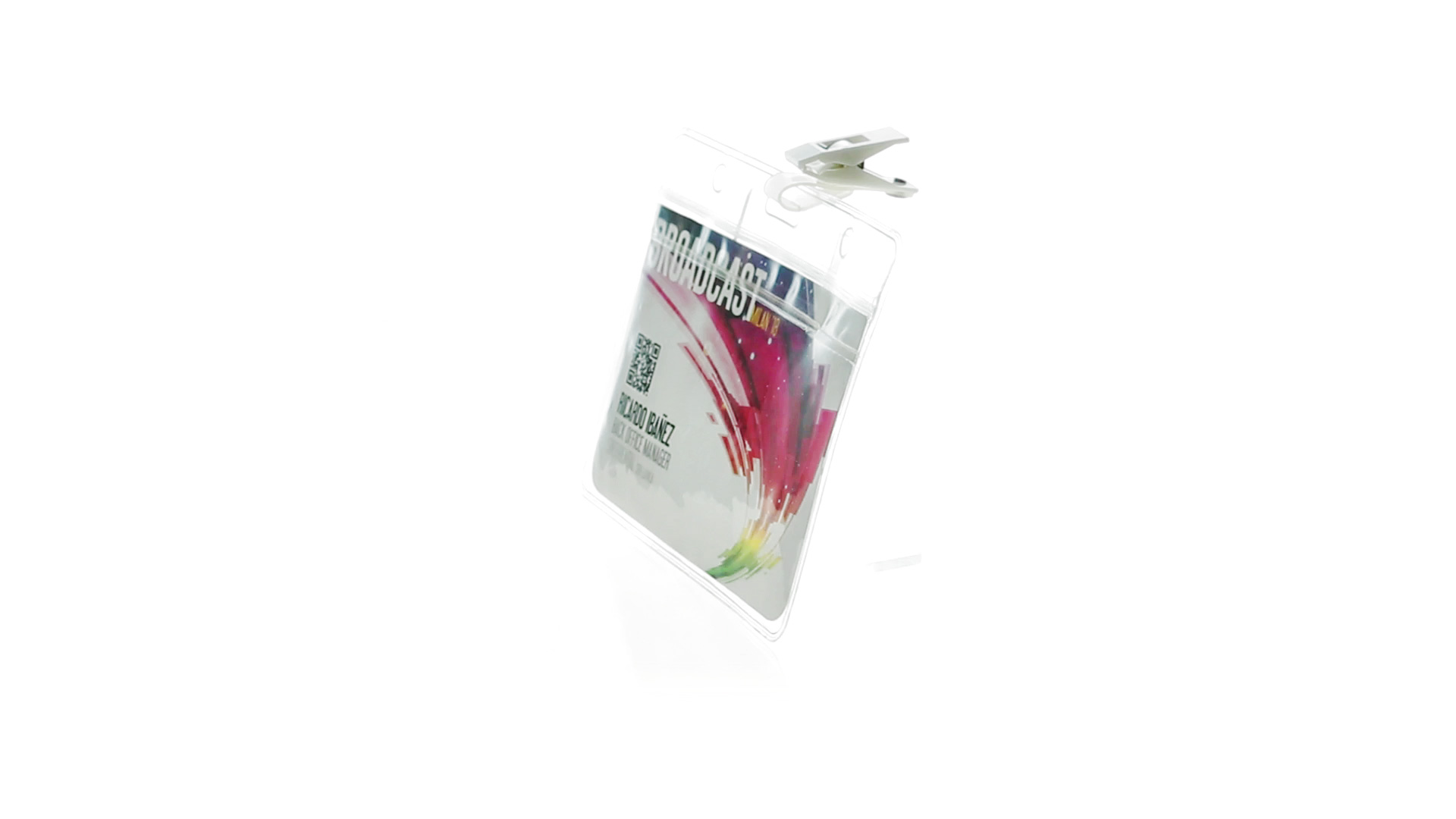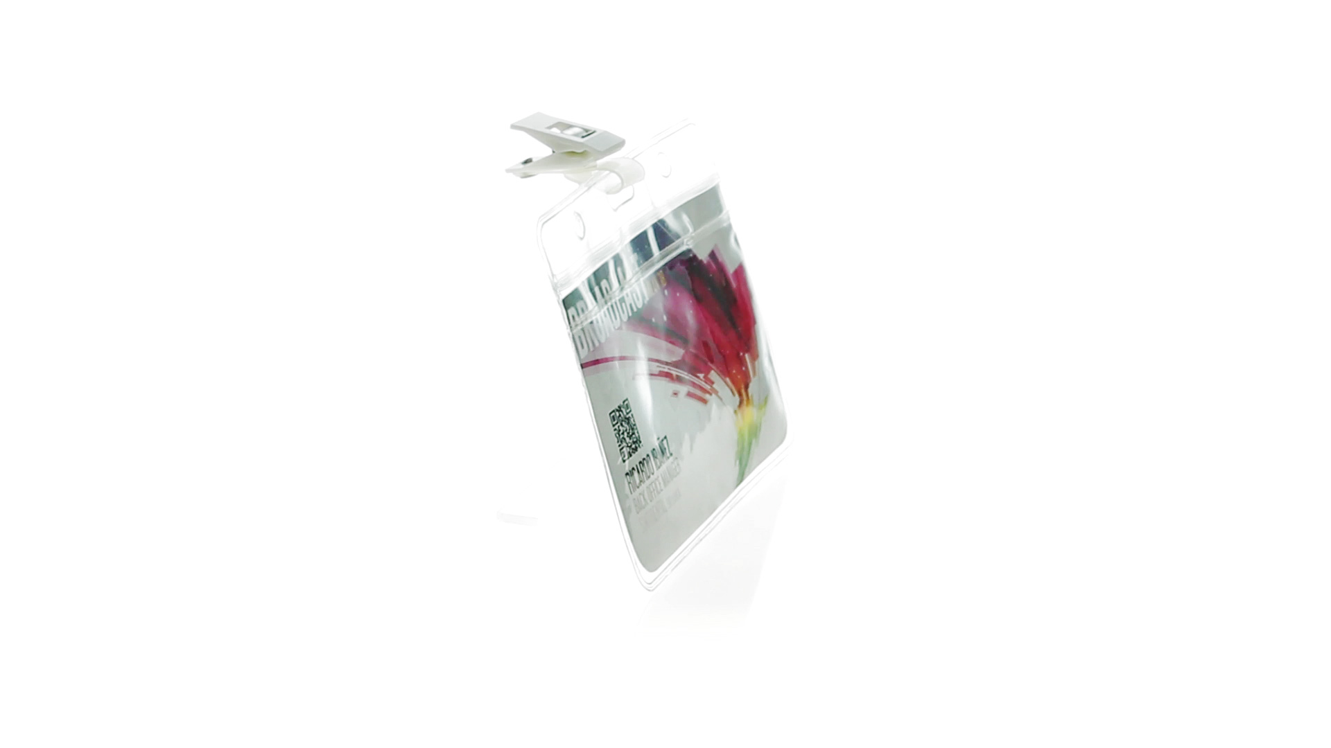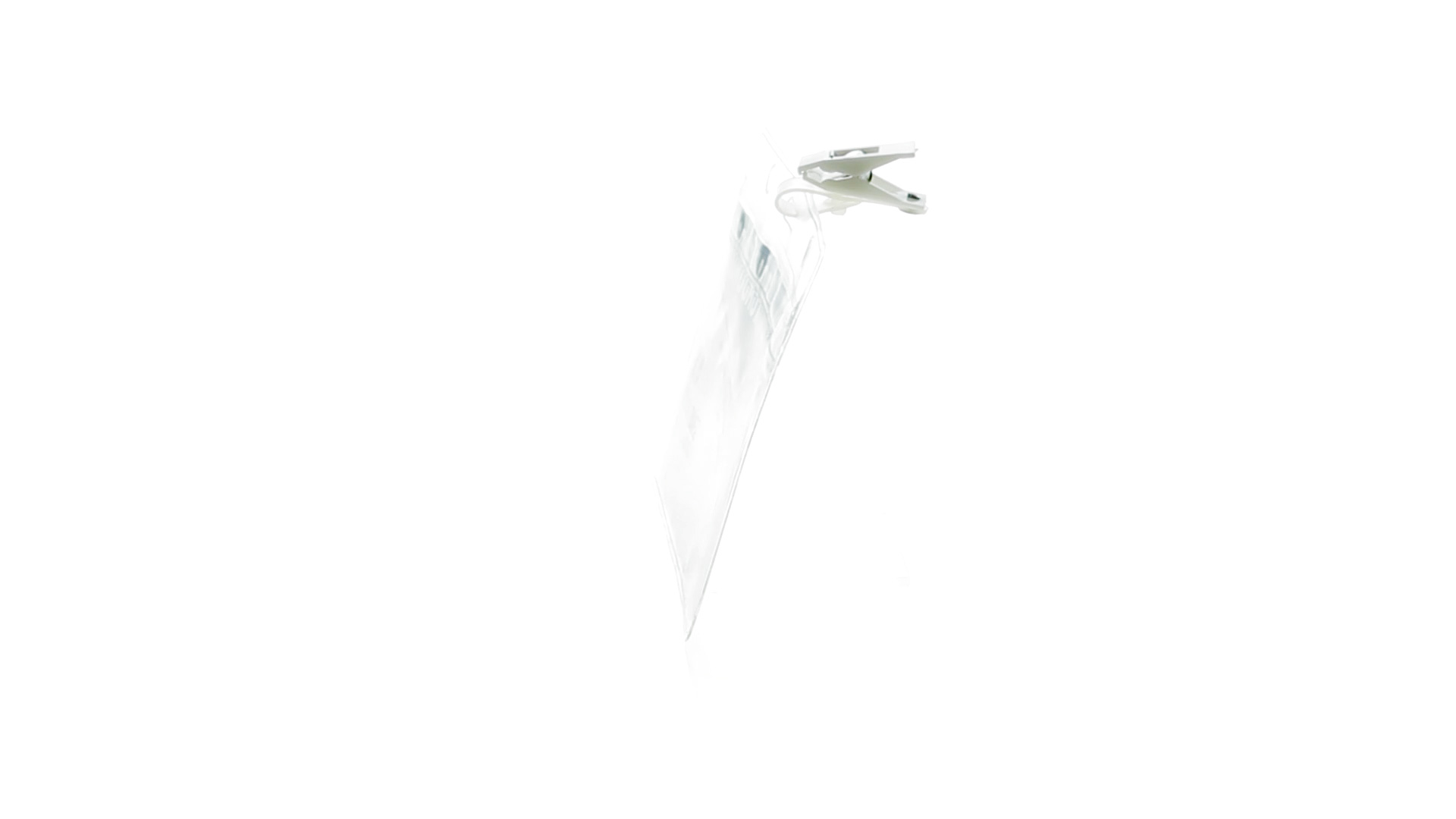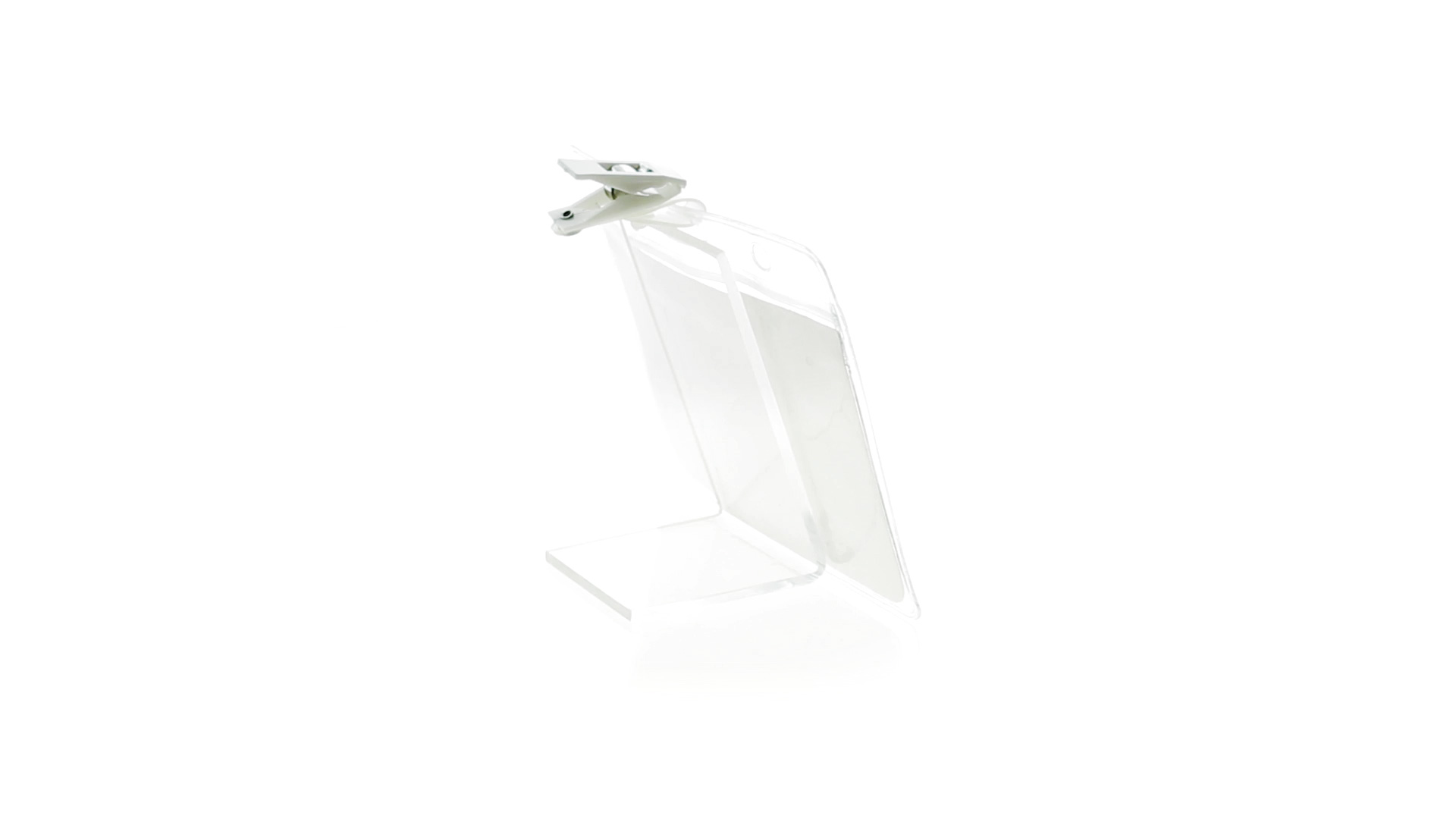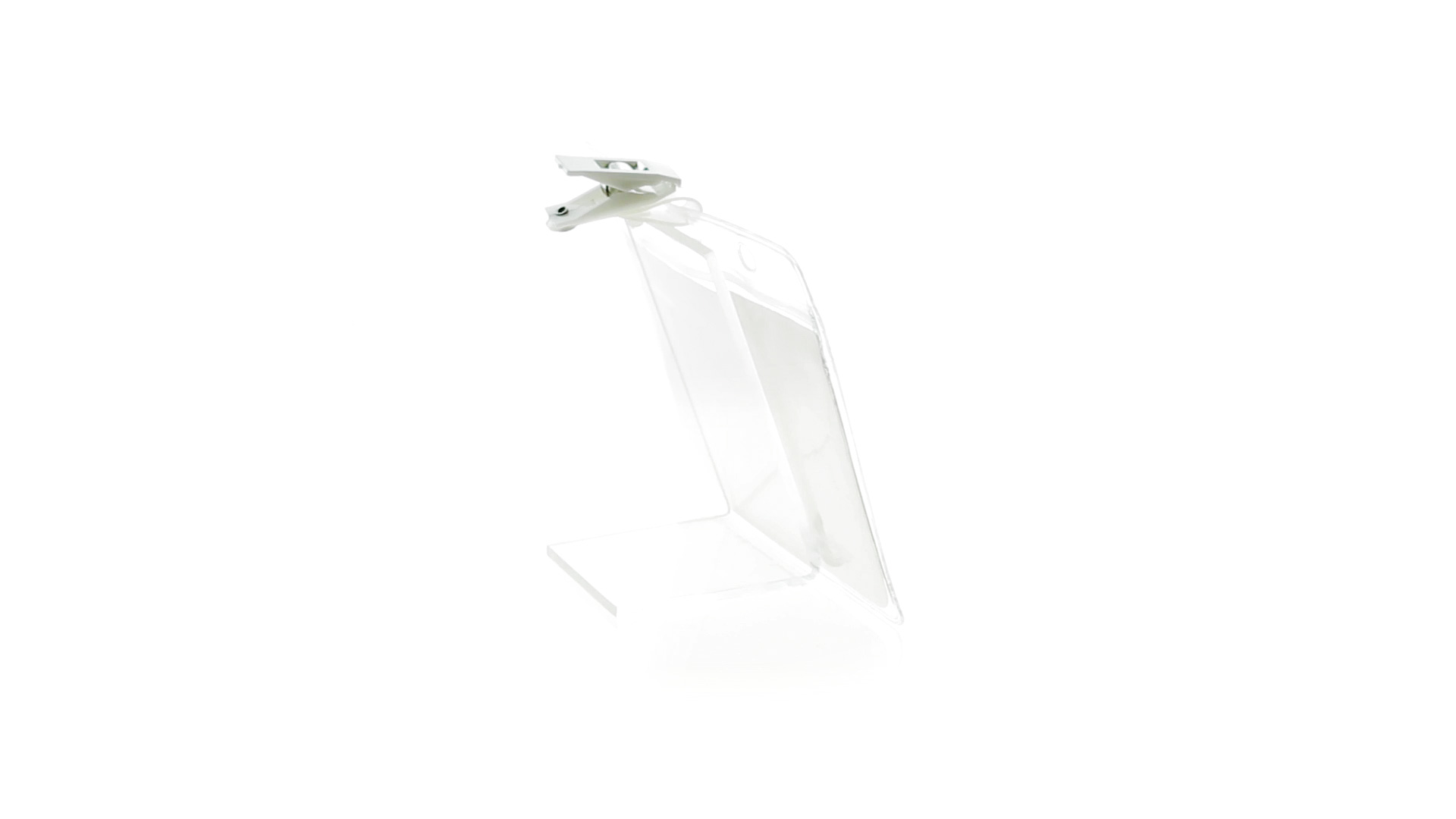 Gestanzter Ausweishalter aus PVC mit Befestigungsclip in Weiss. Erhältlich in horizontaler und vertikaler Ausführung.