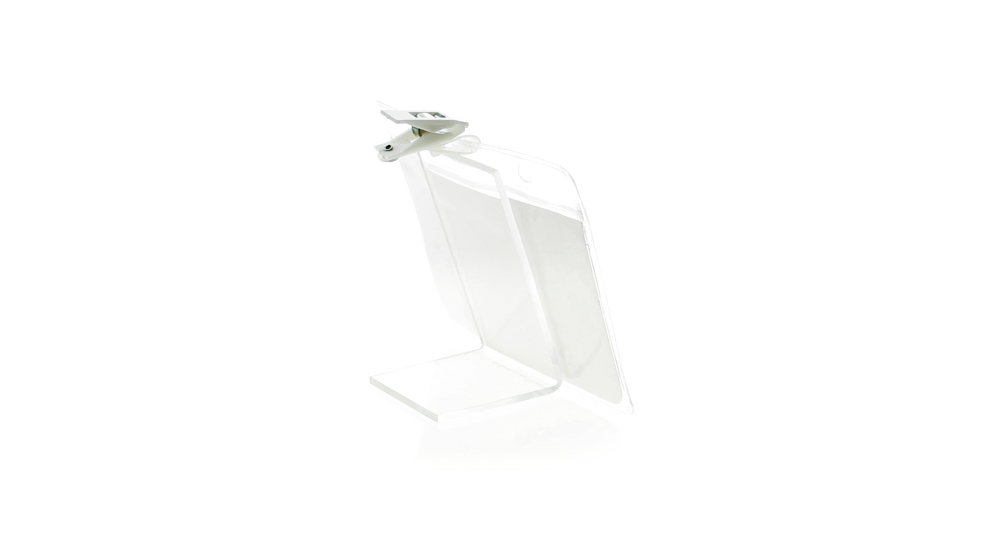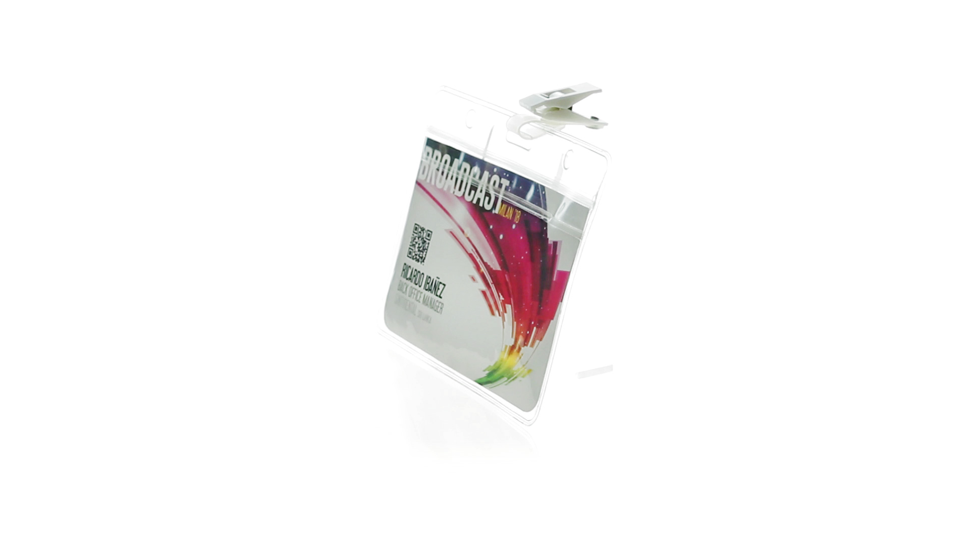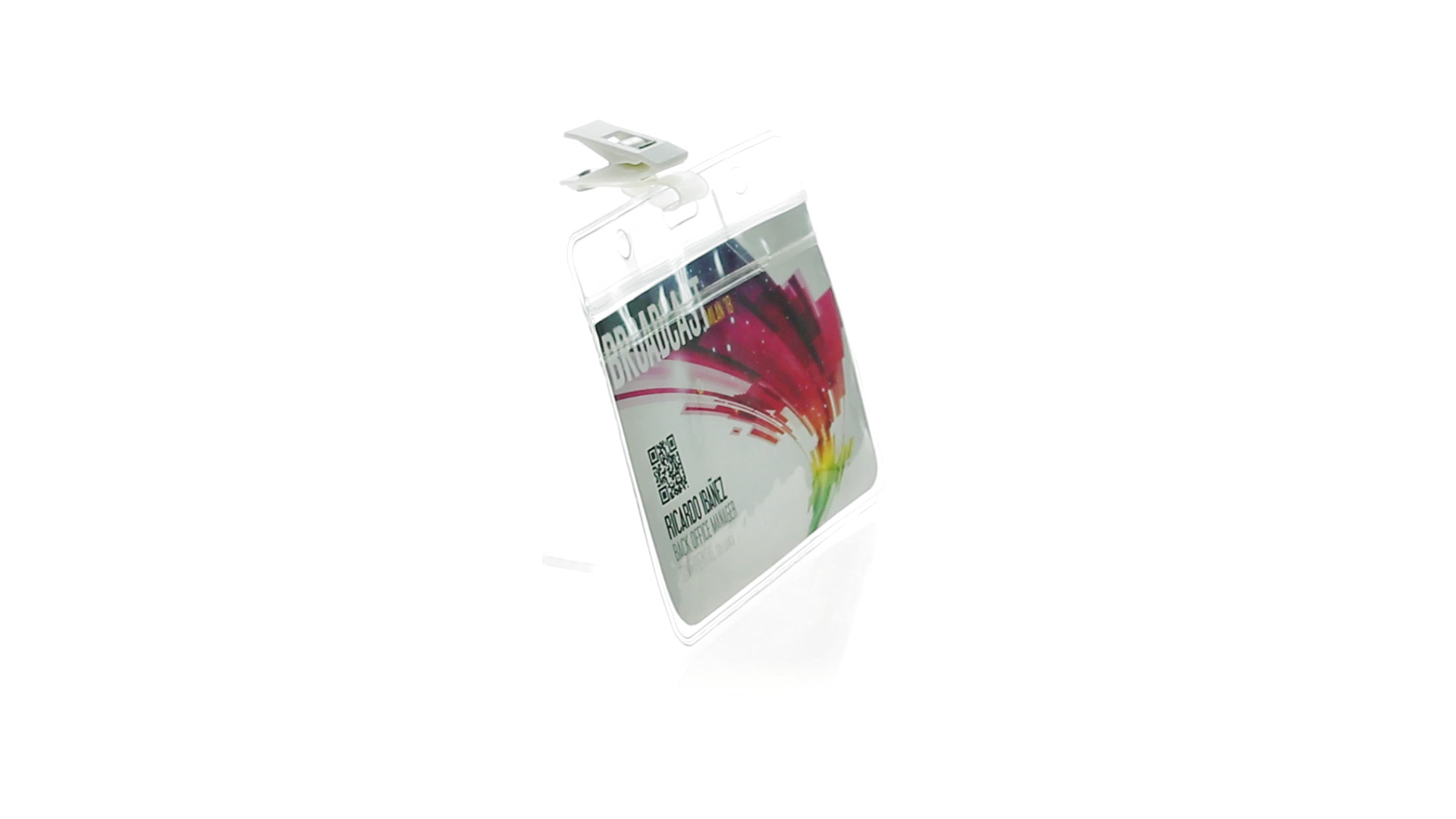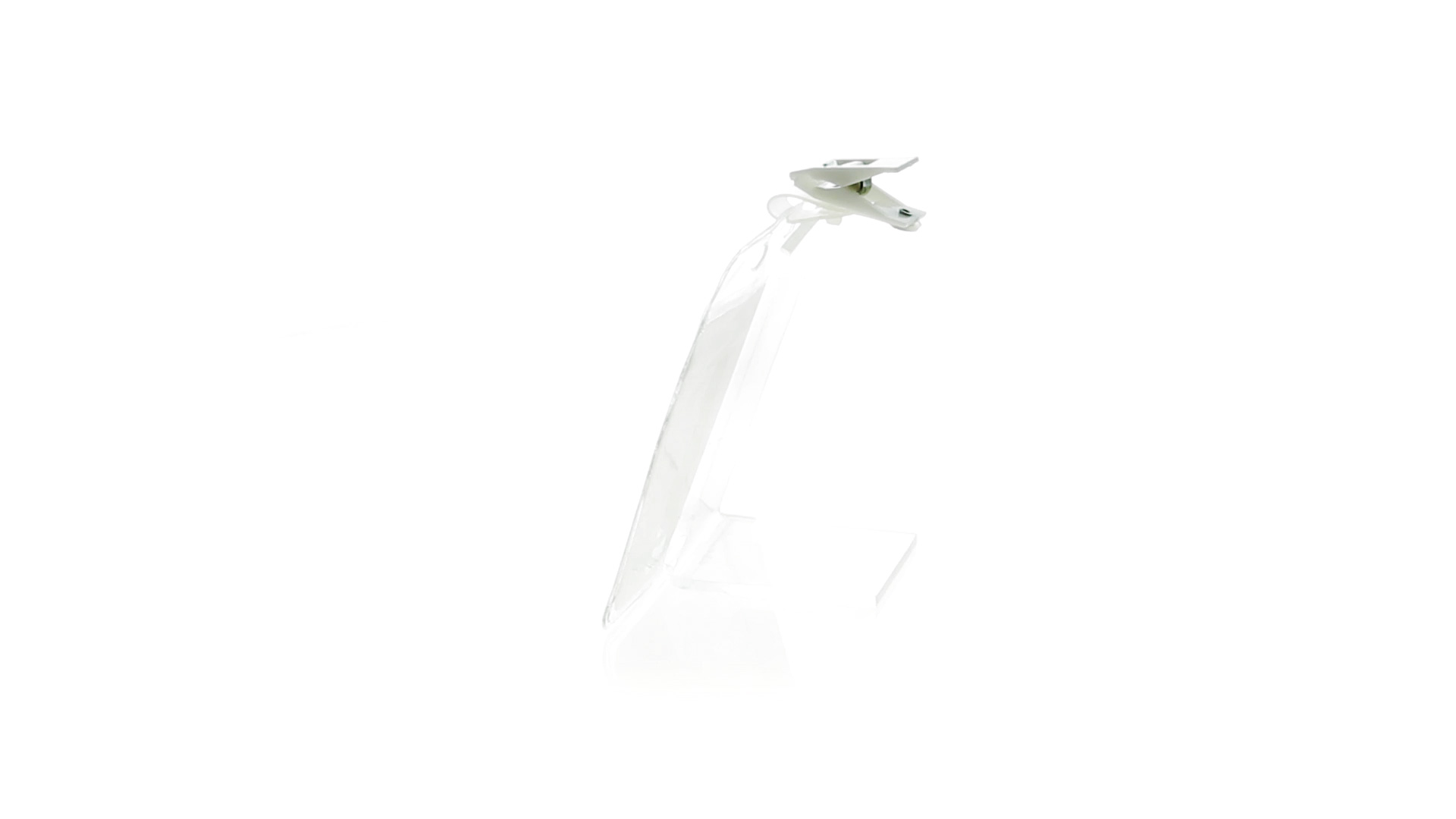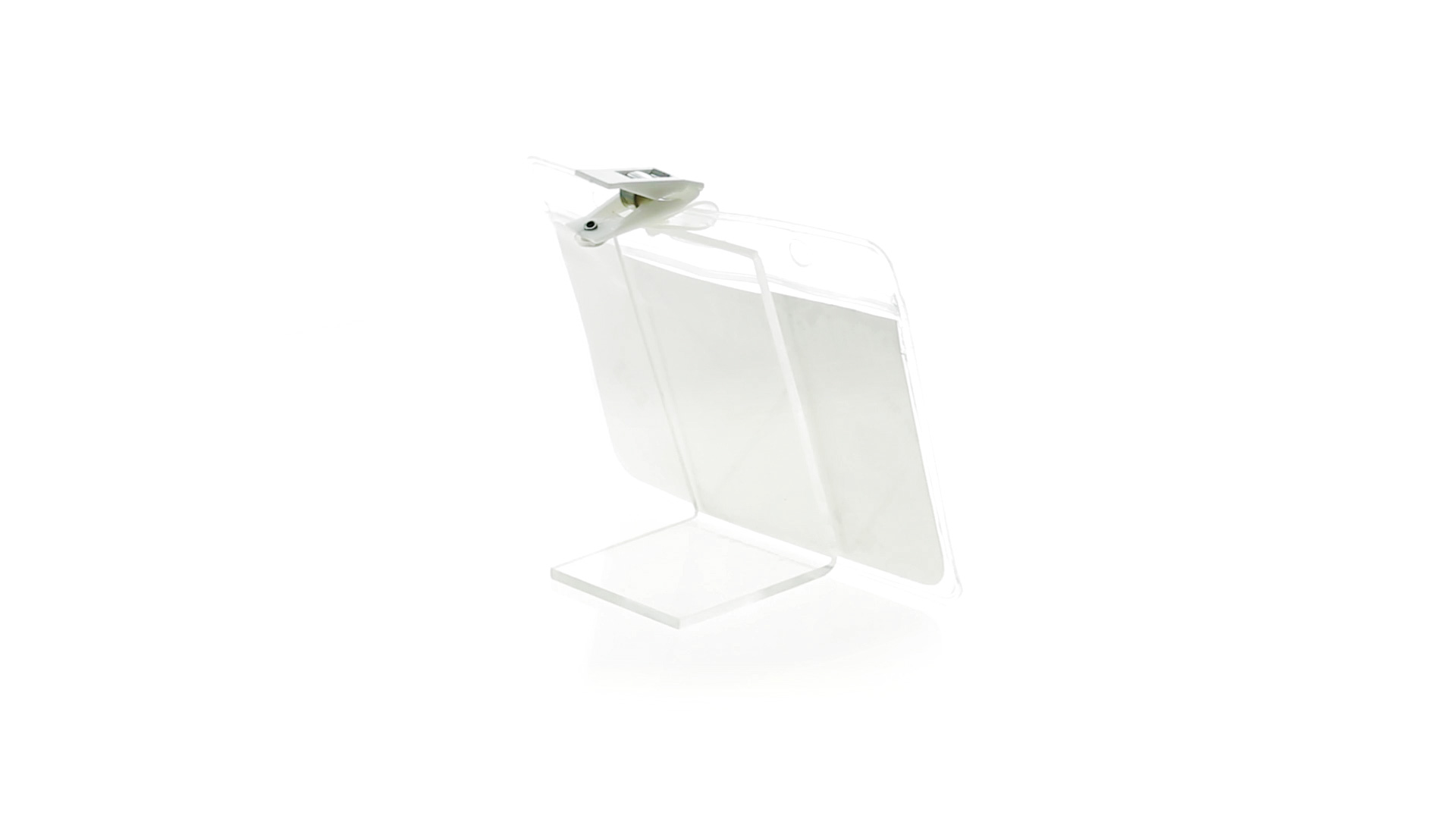 Gestanzter Ausweishalter aus PVC mit Befestigungsclip in Weiss. Erhältlich in horizontaler und vertikaler Ausführung.