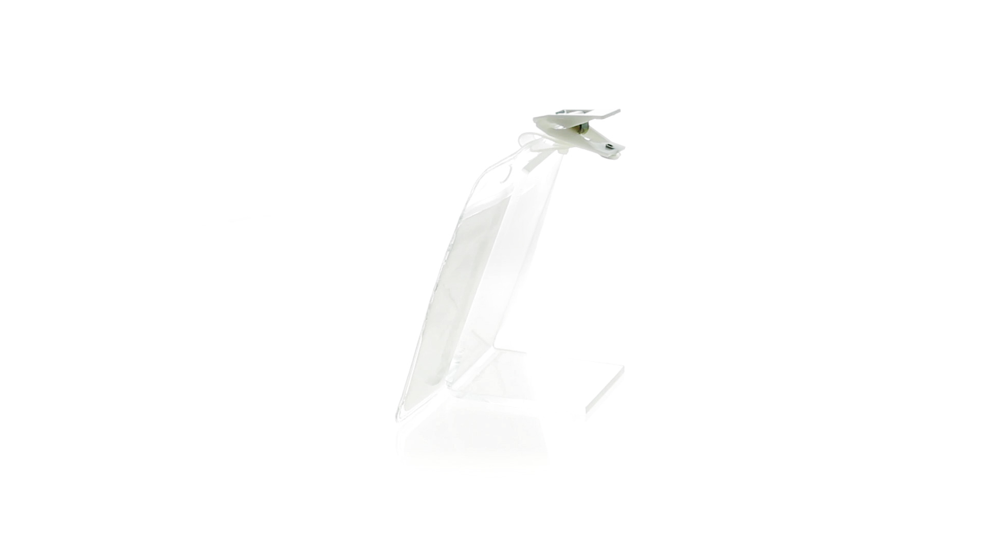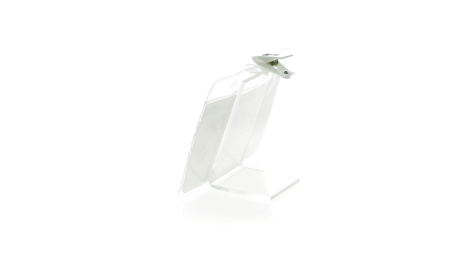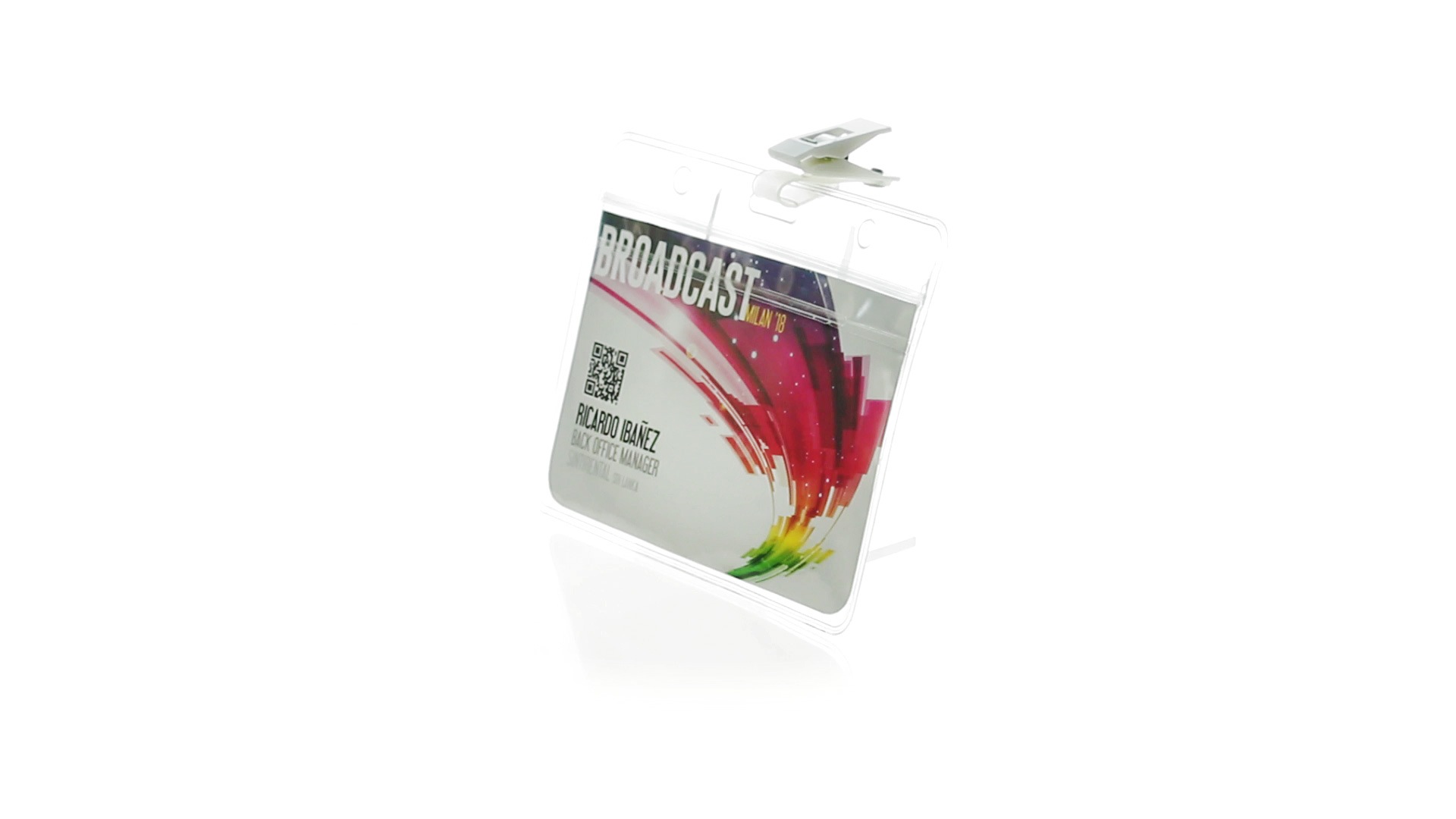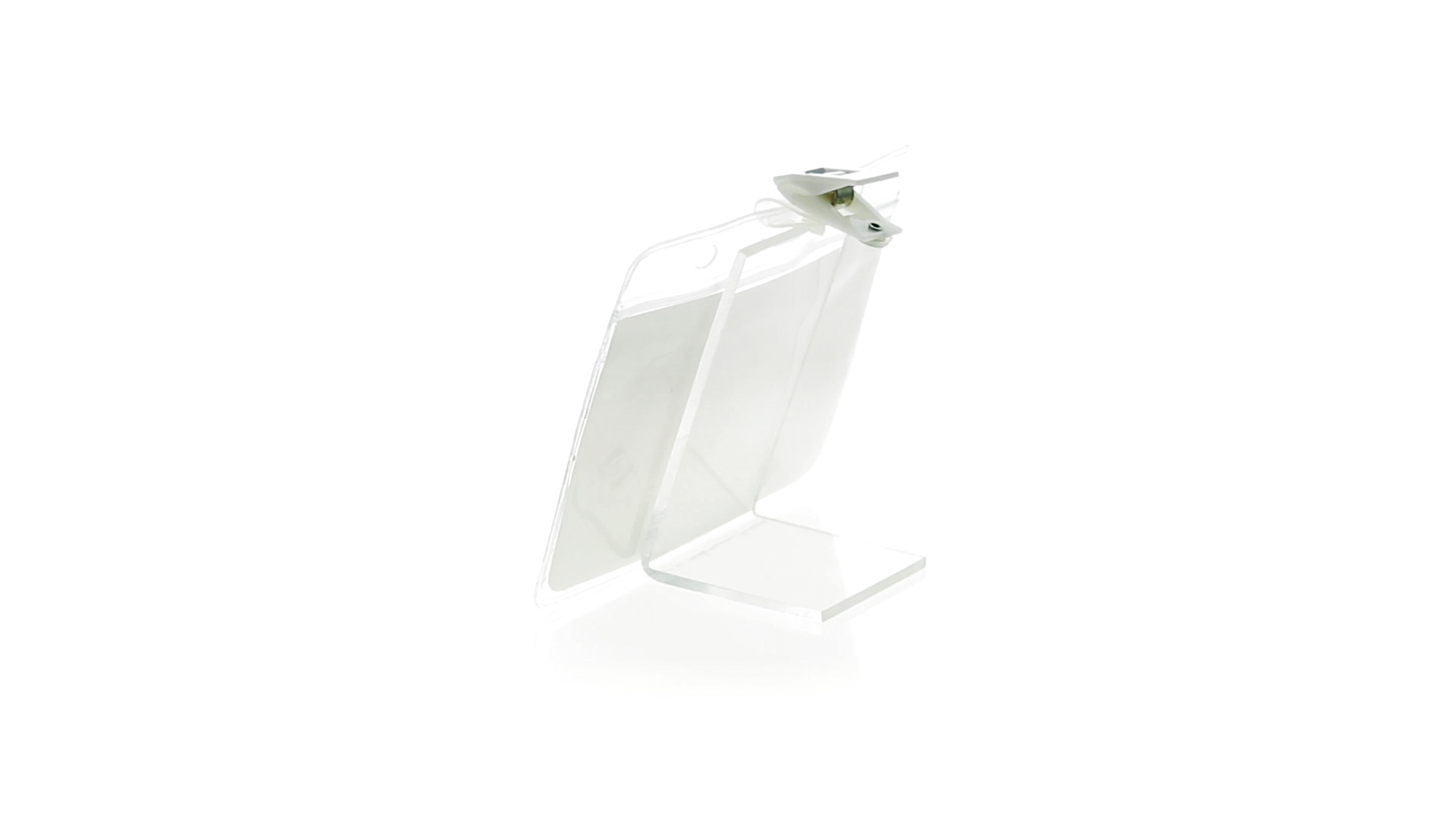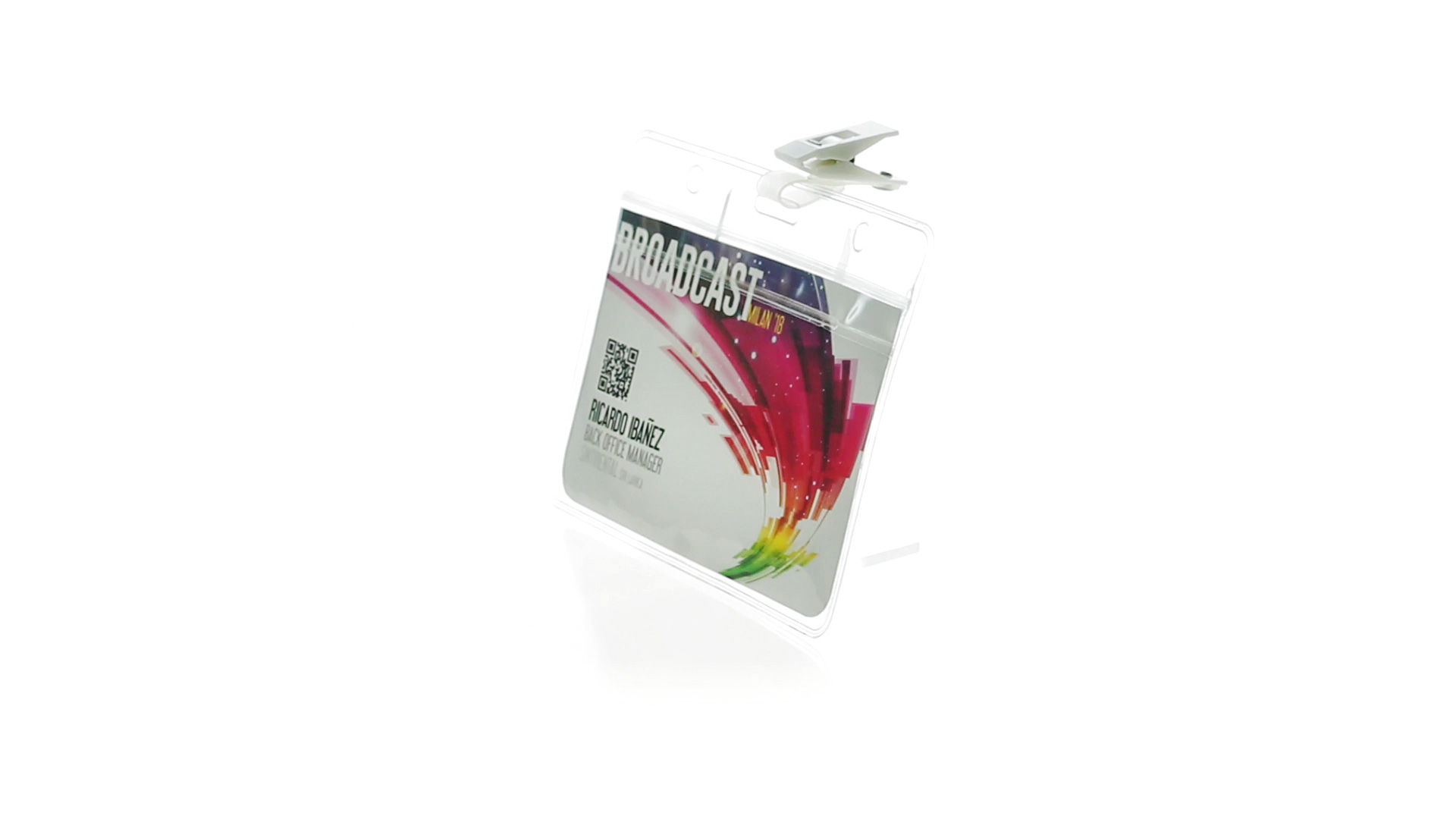 Gestanzter Ausweishalter aus PVC mit Befestigungsclip in Weiss. Erhältlich in horizontaler und vertikaler Ausführung.