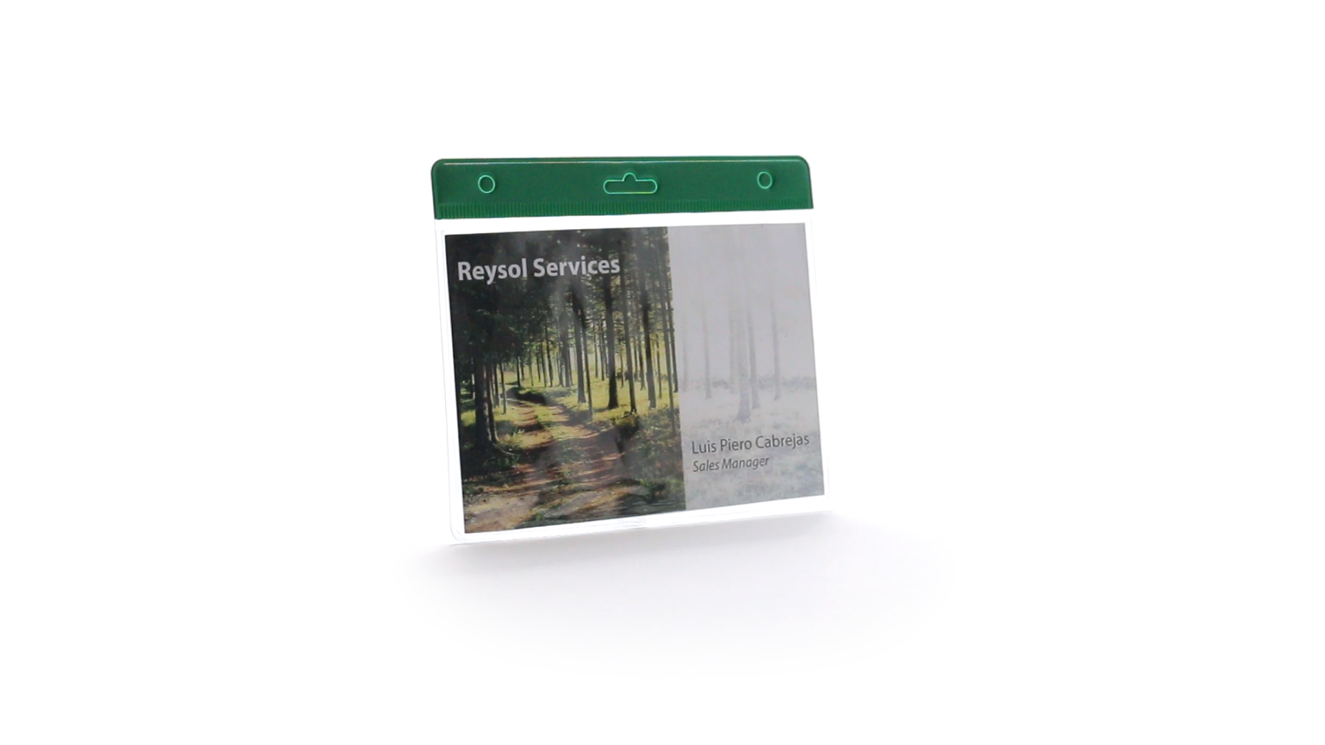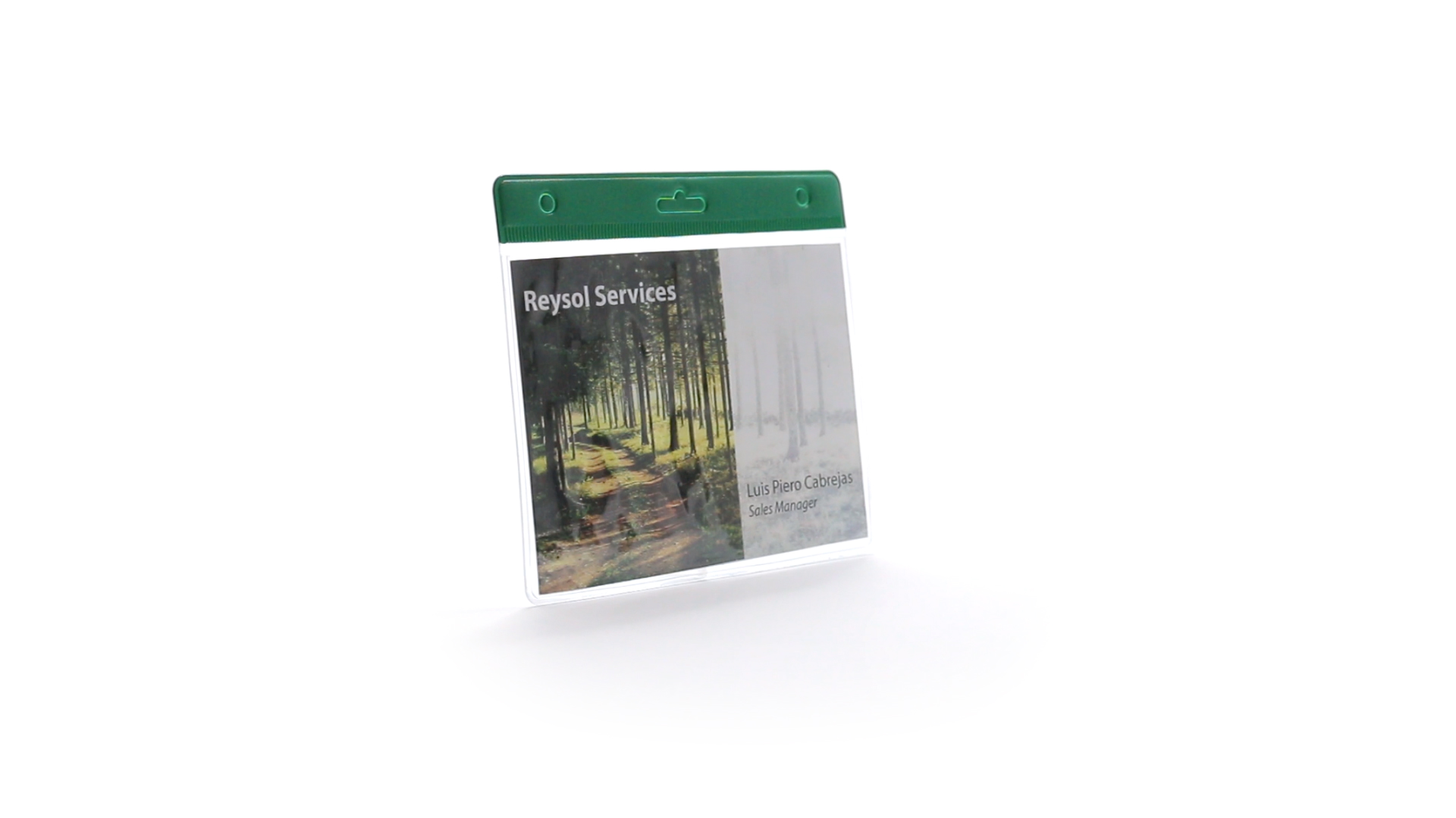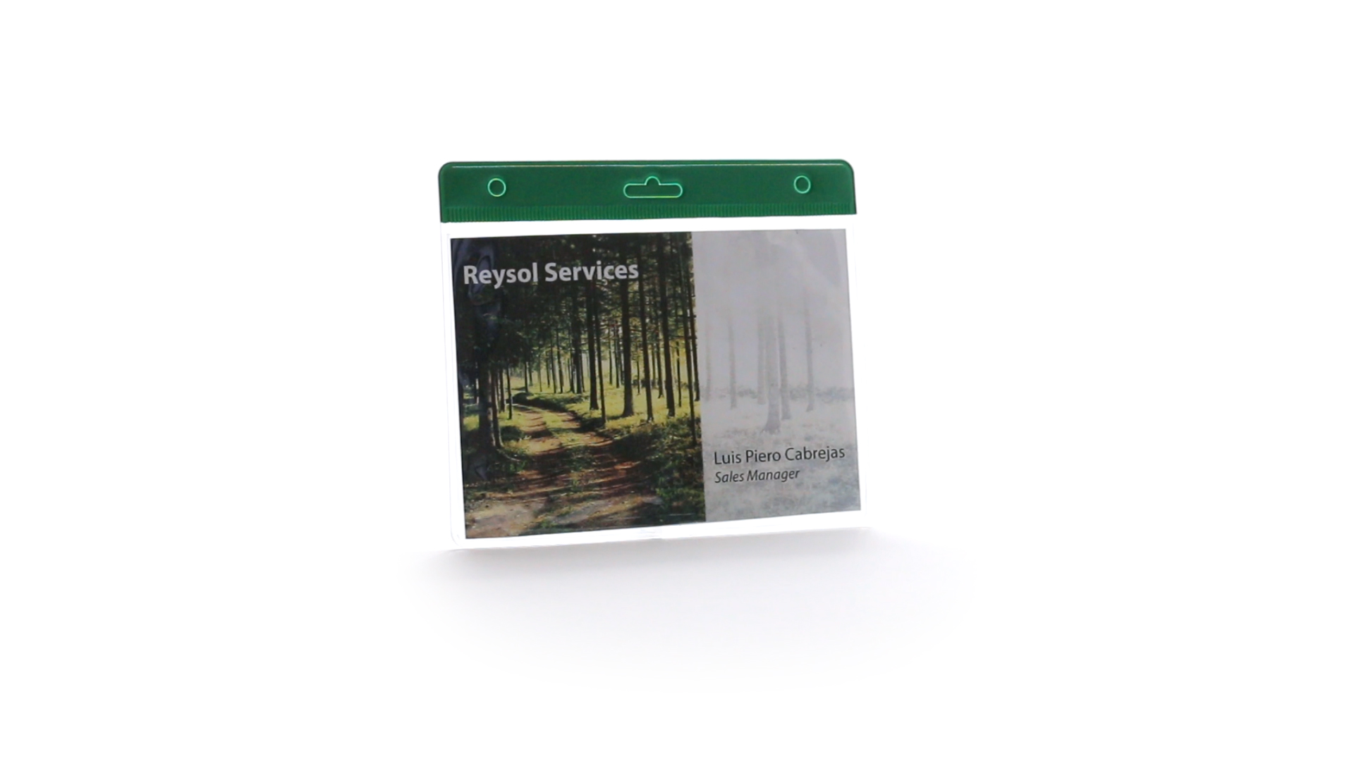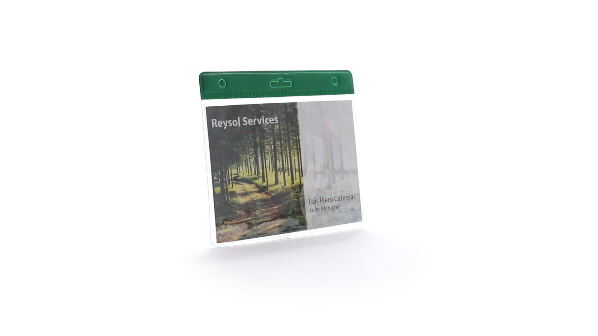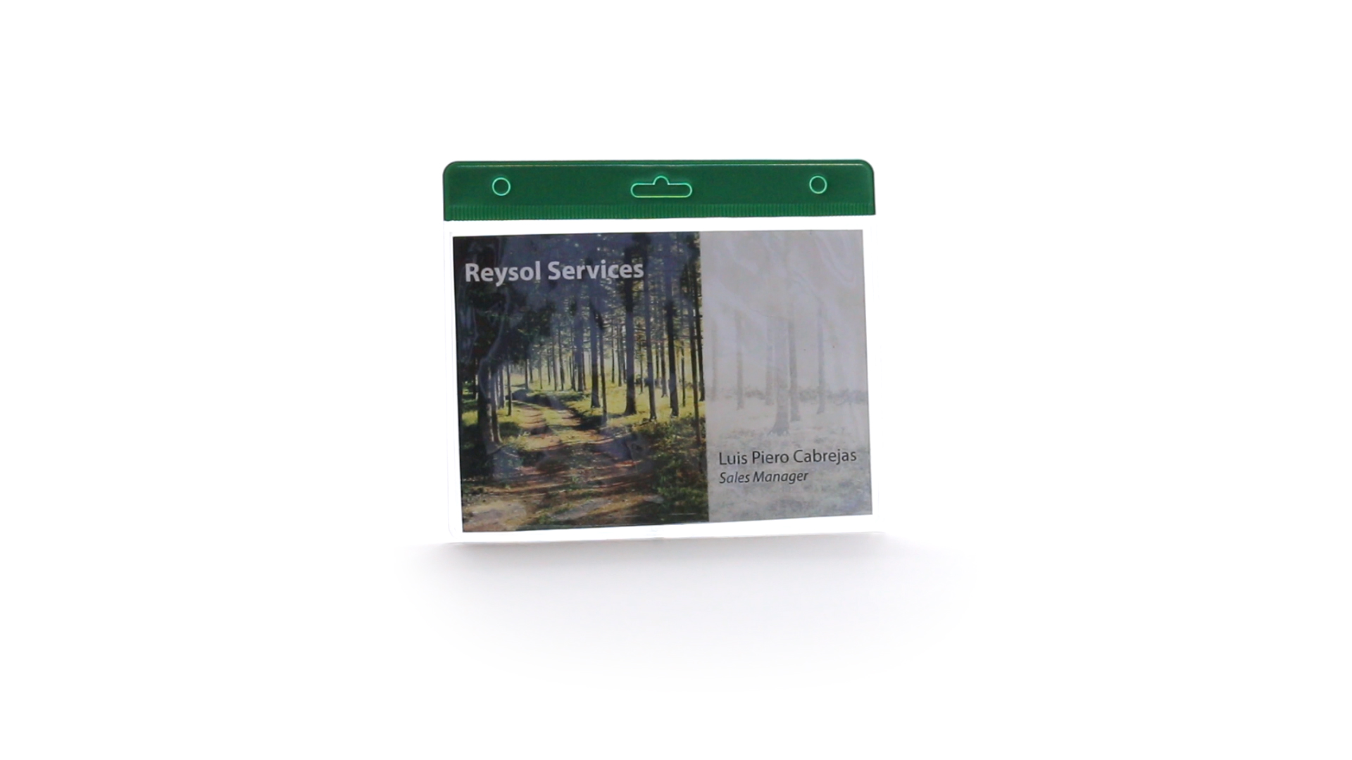 Gestanzte Ausweishülle aus PVC. Mit oberer Kante in verschiedenen Farben, transparentem Frontfenster und weisser Rückseite.