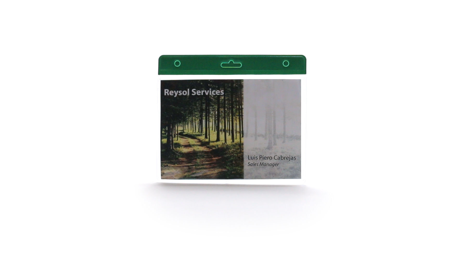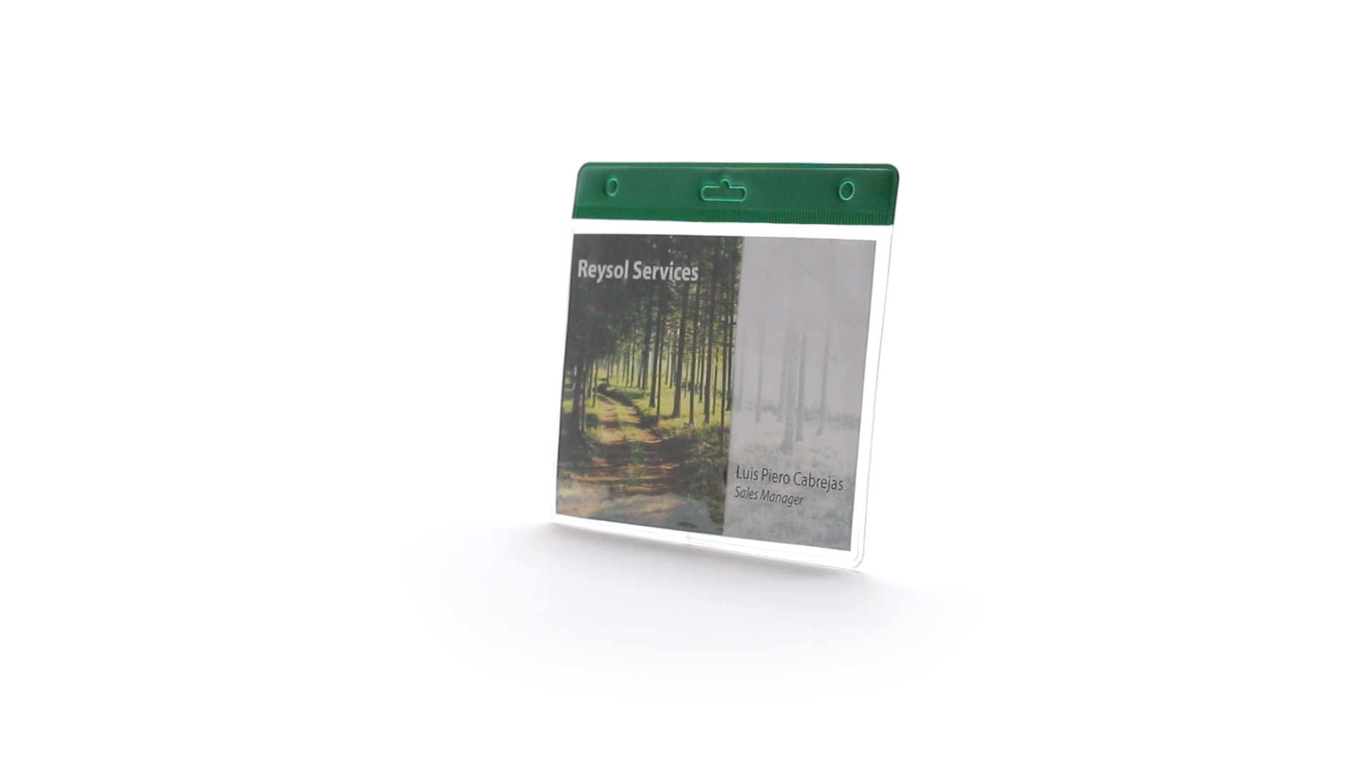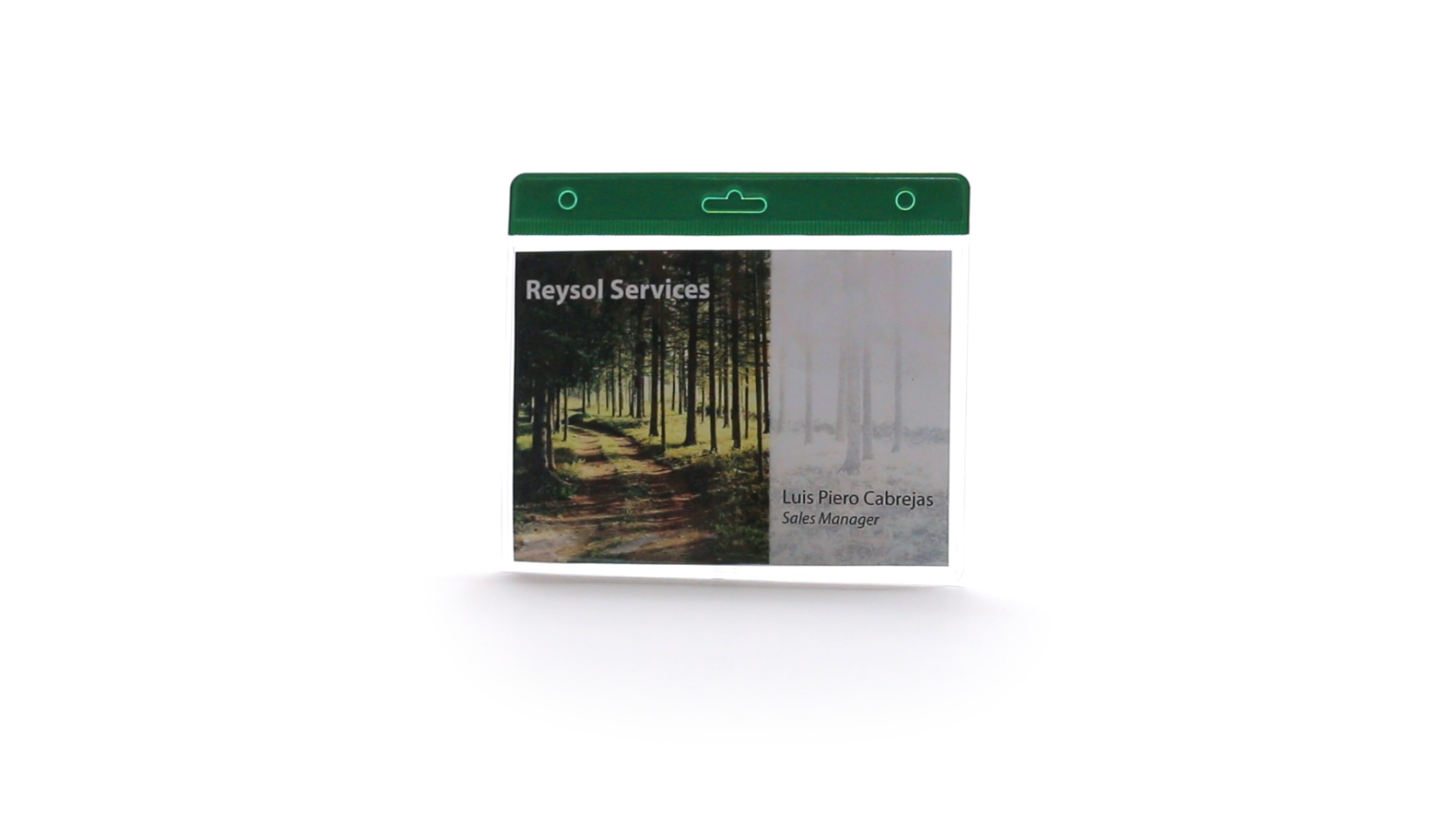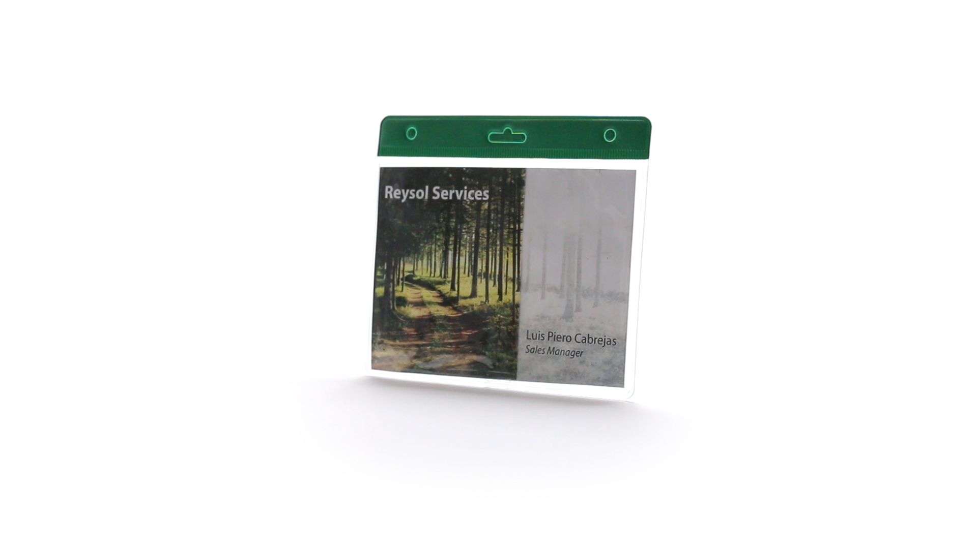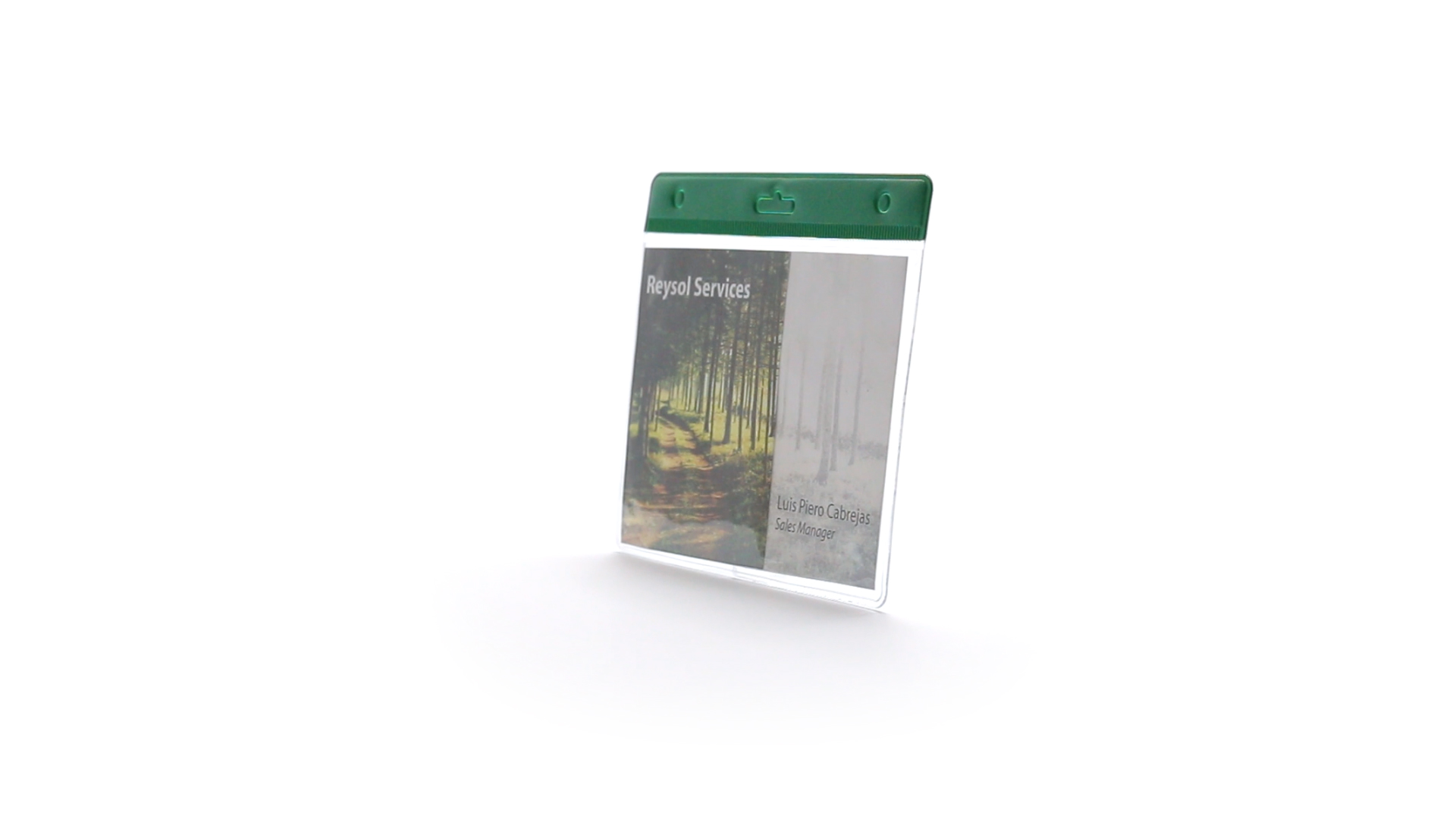 Gestanzte Ausweishülle aus PVC. Mit oberer Kante in verschiedenen Farben, transparentem Frontfenster und weisser Rückseite.