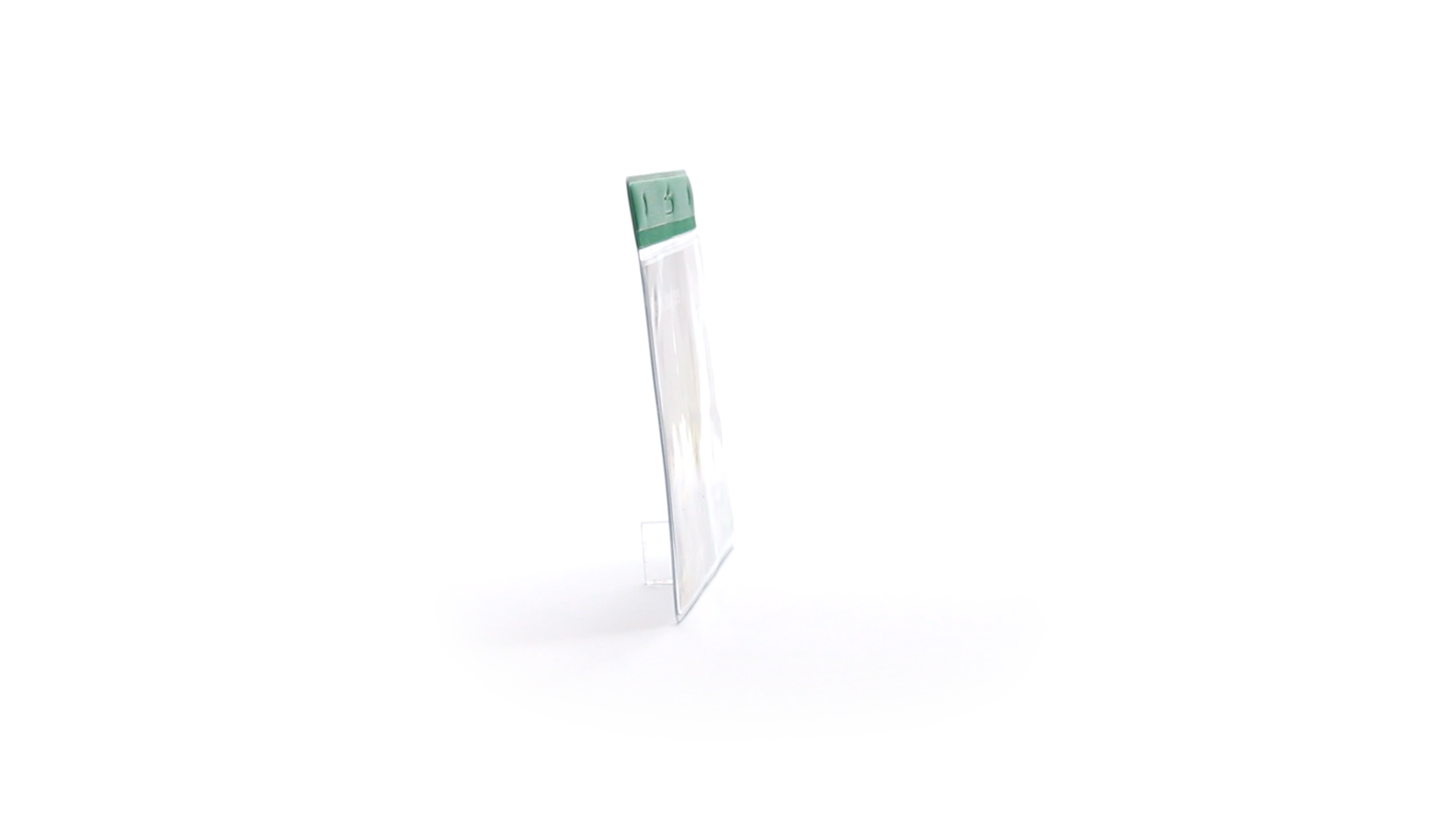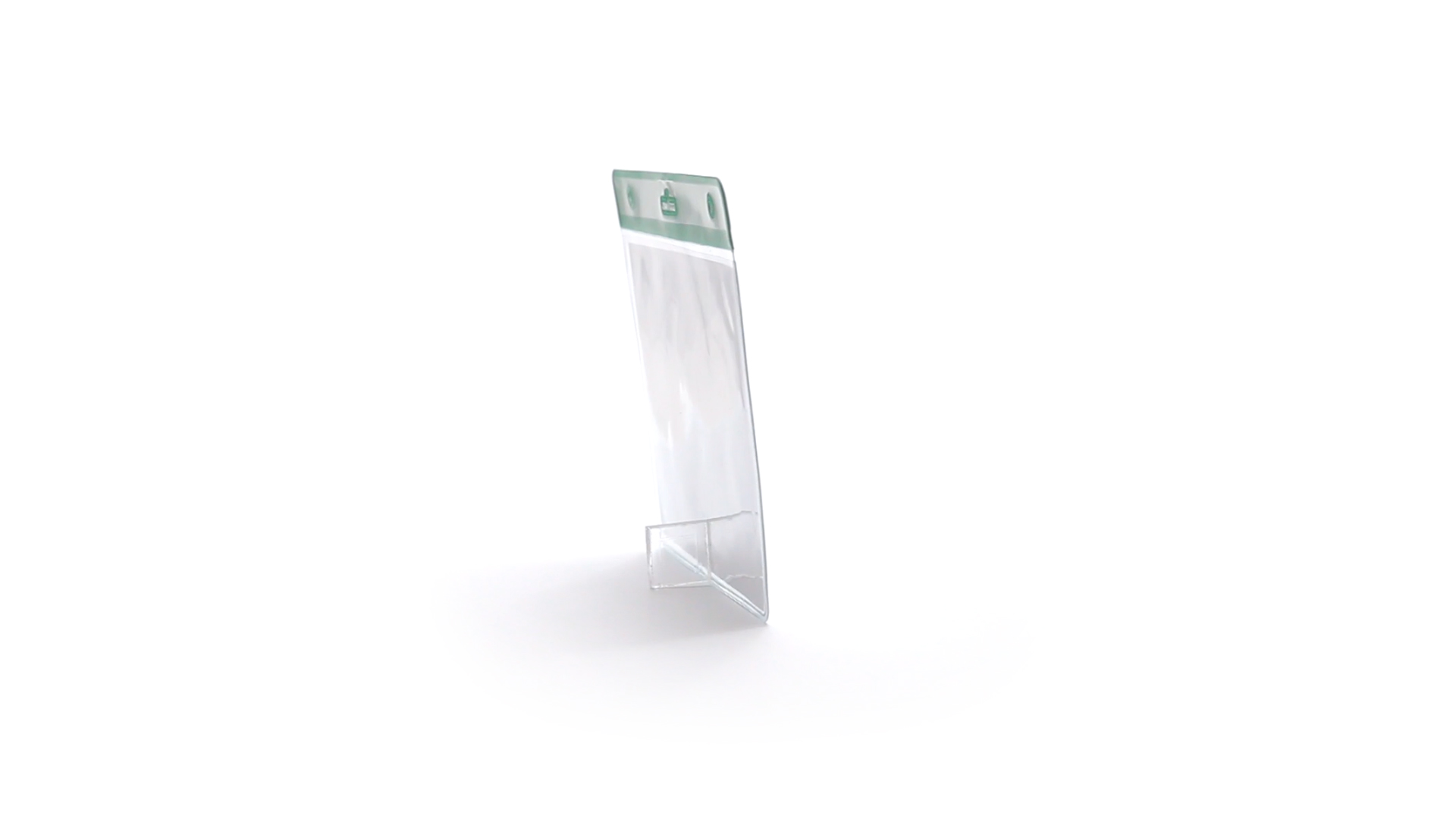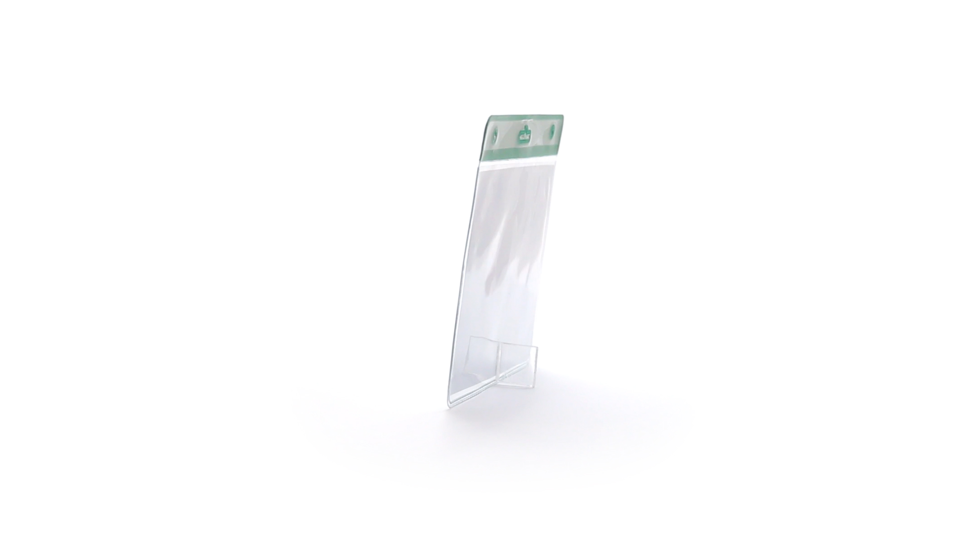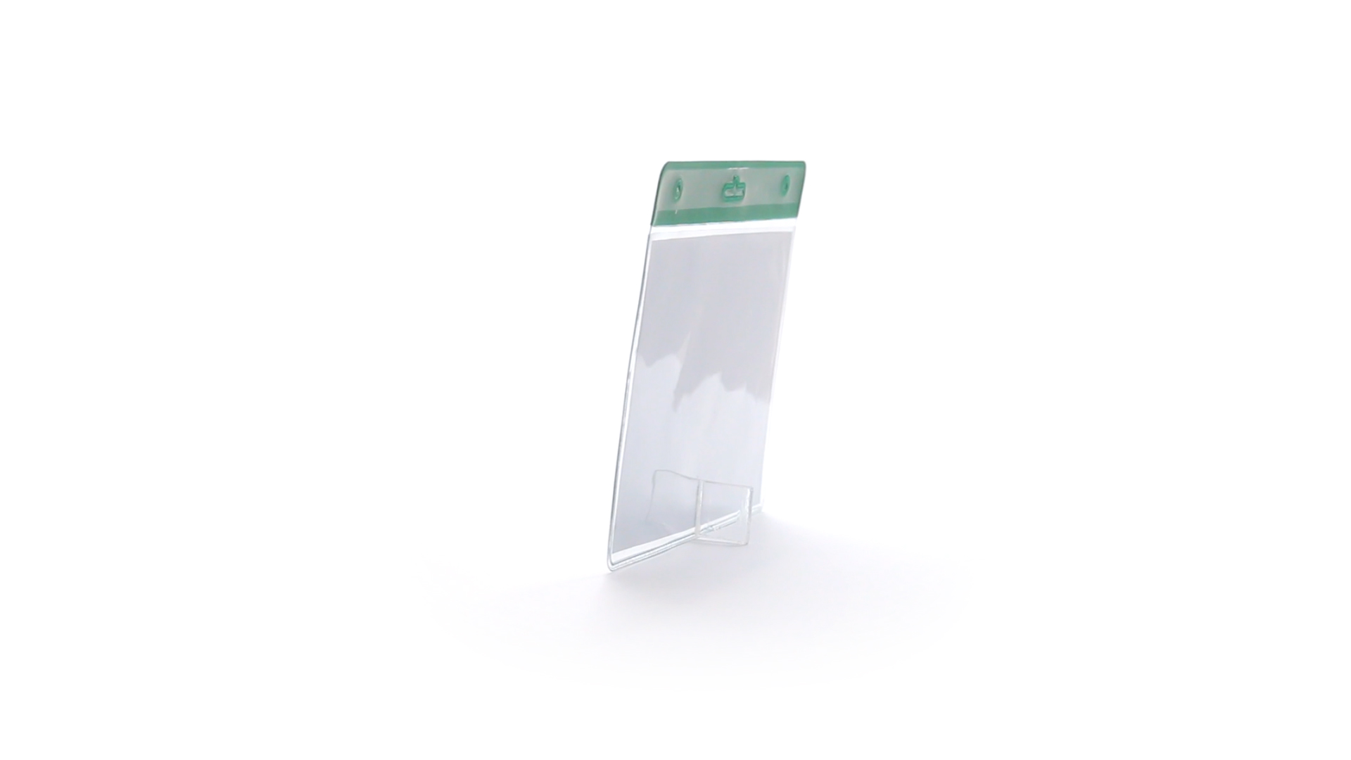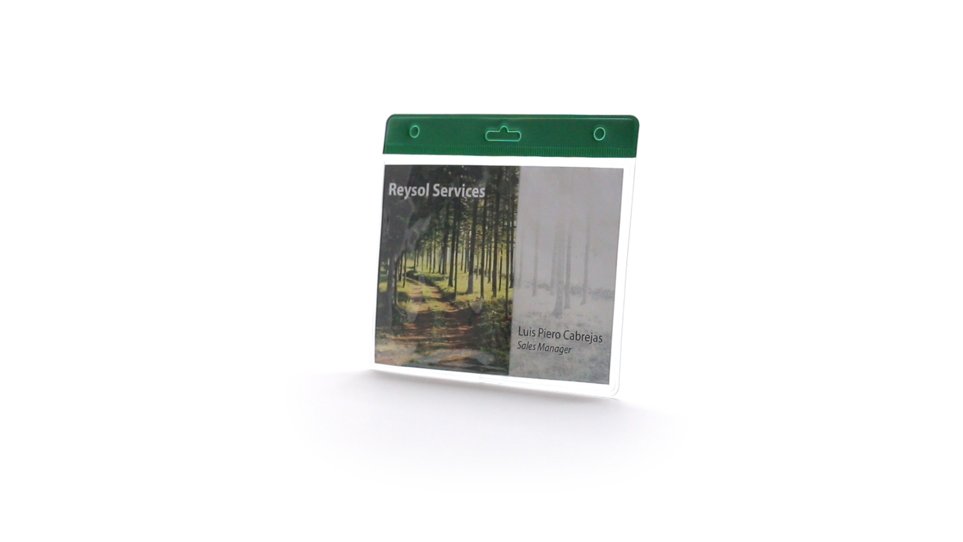 Gestanzte Ausweishülle aus PVC. Mit oberer Kante in verschiedenen Farben, transparentem Frontfenster und weisser Rückseite.